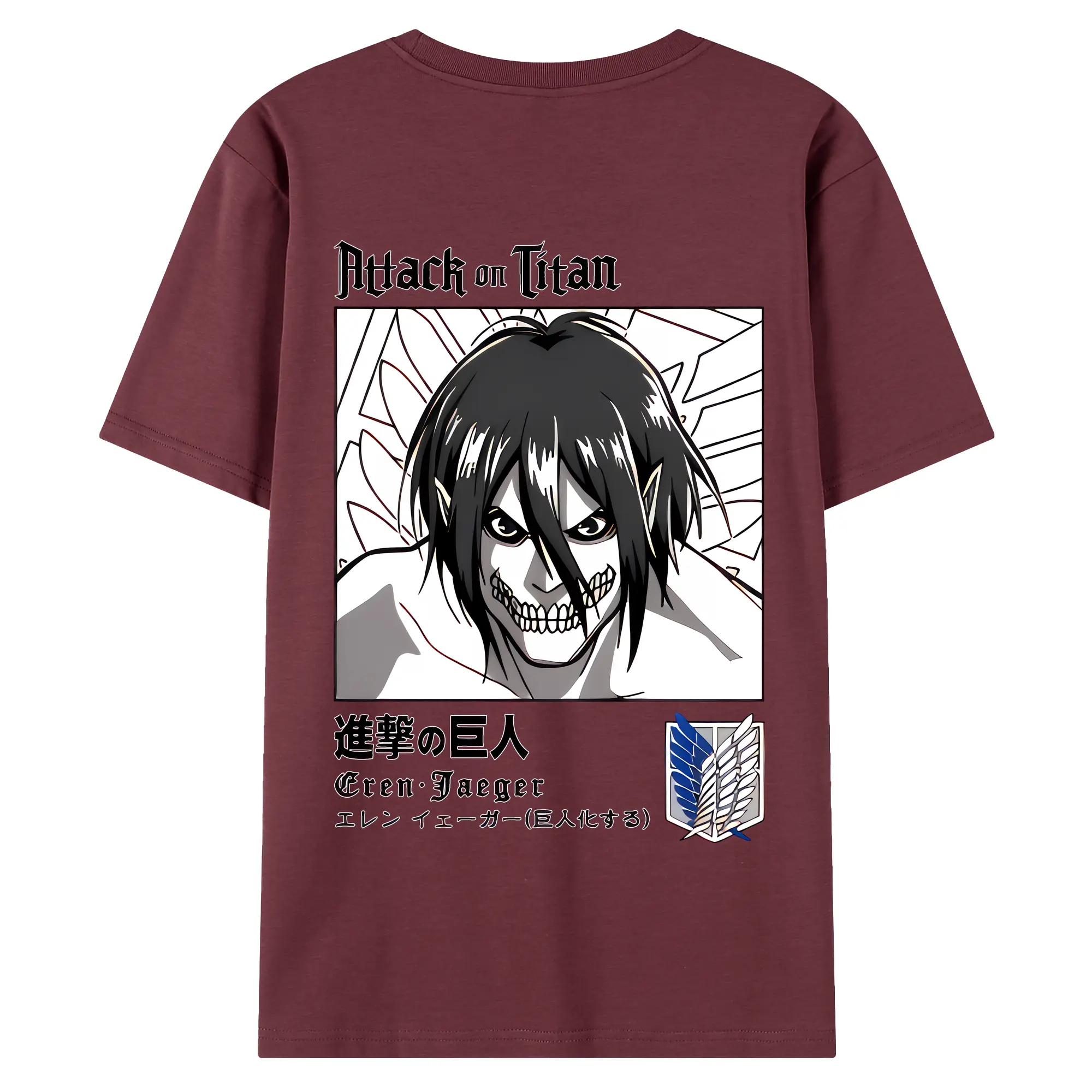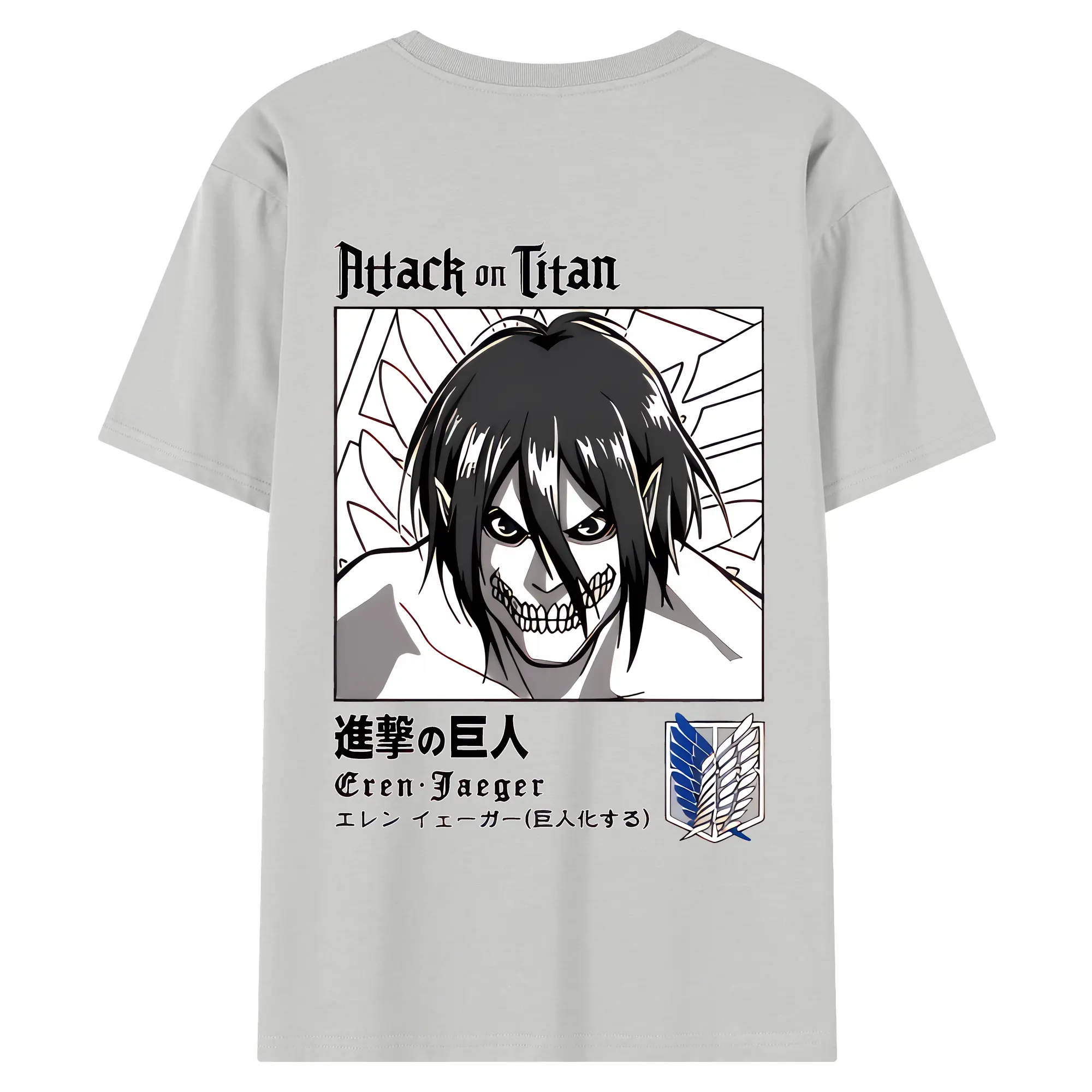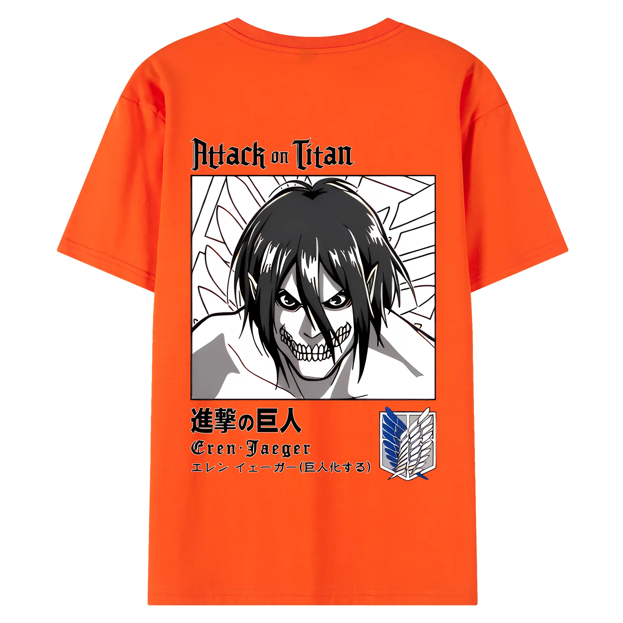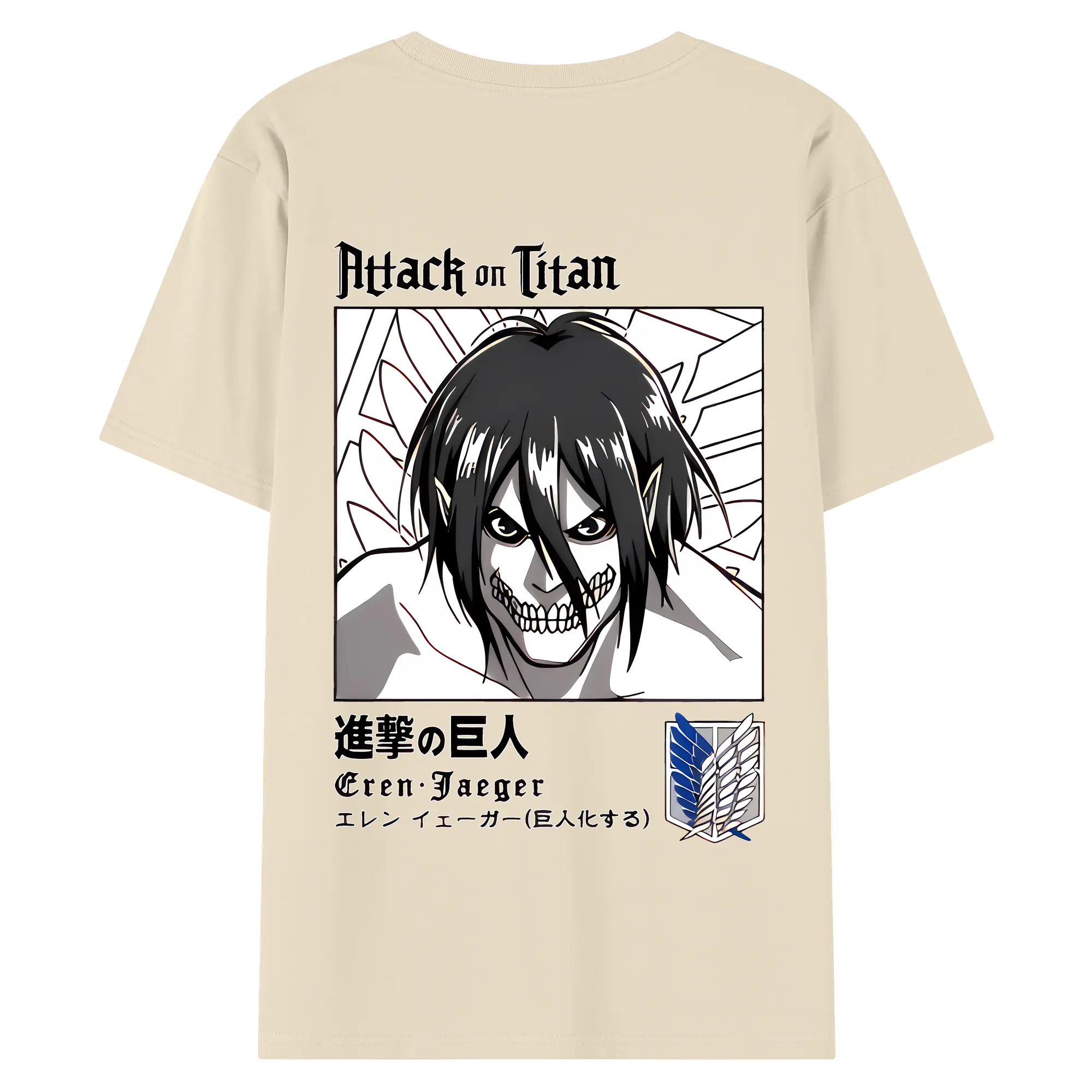 進撃の巨人 グッズ エレン・イェーガー - 綿100% ヴィンテージ風 半袖Tシャツ ・ 背面プリント ・ 柔らか肌触り ・ 通気性 快適 ・ スポーツ カジュアル 外出用