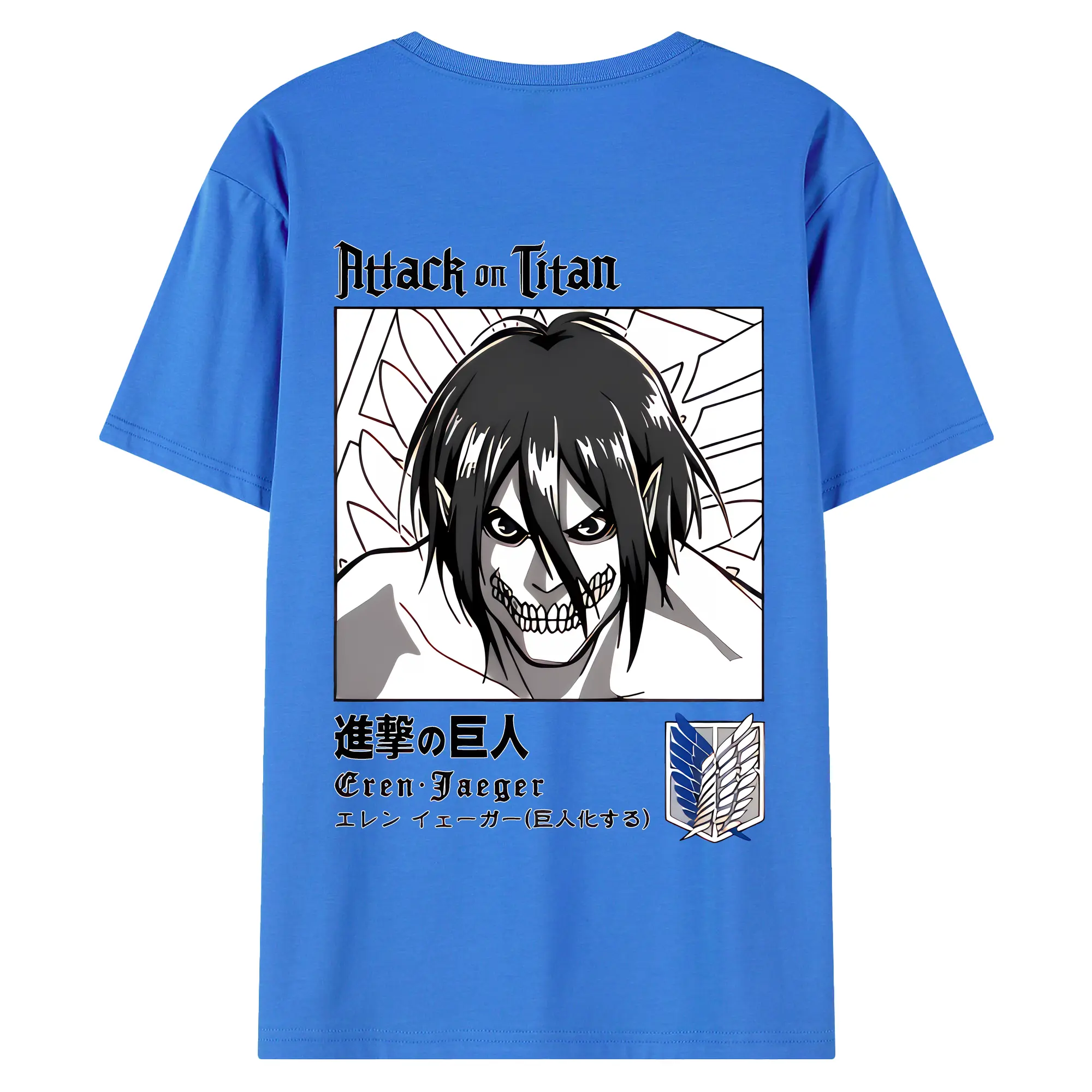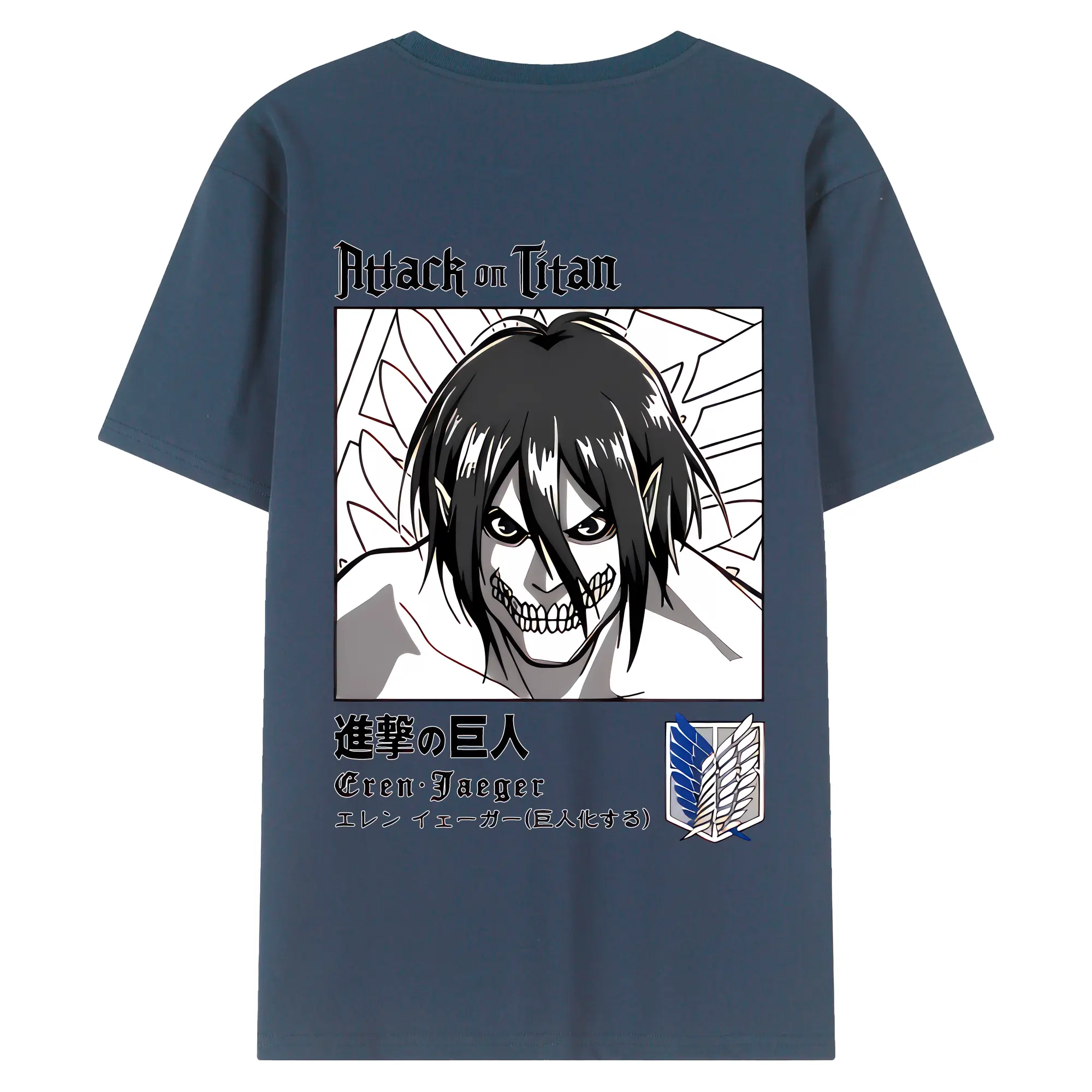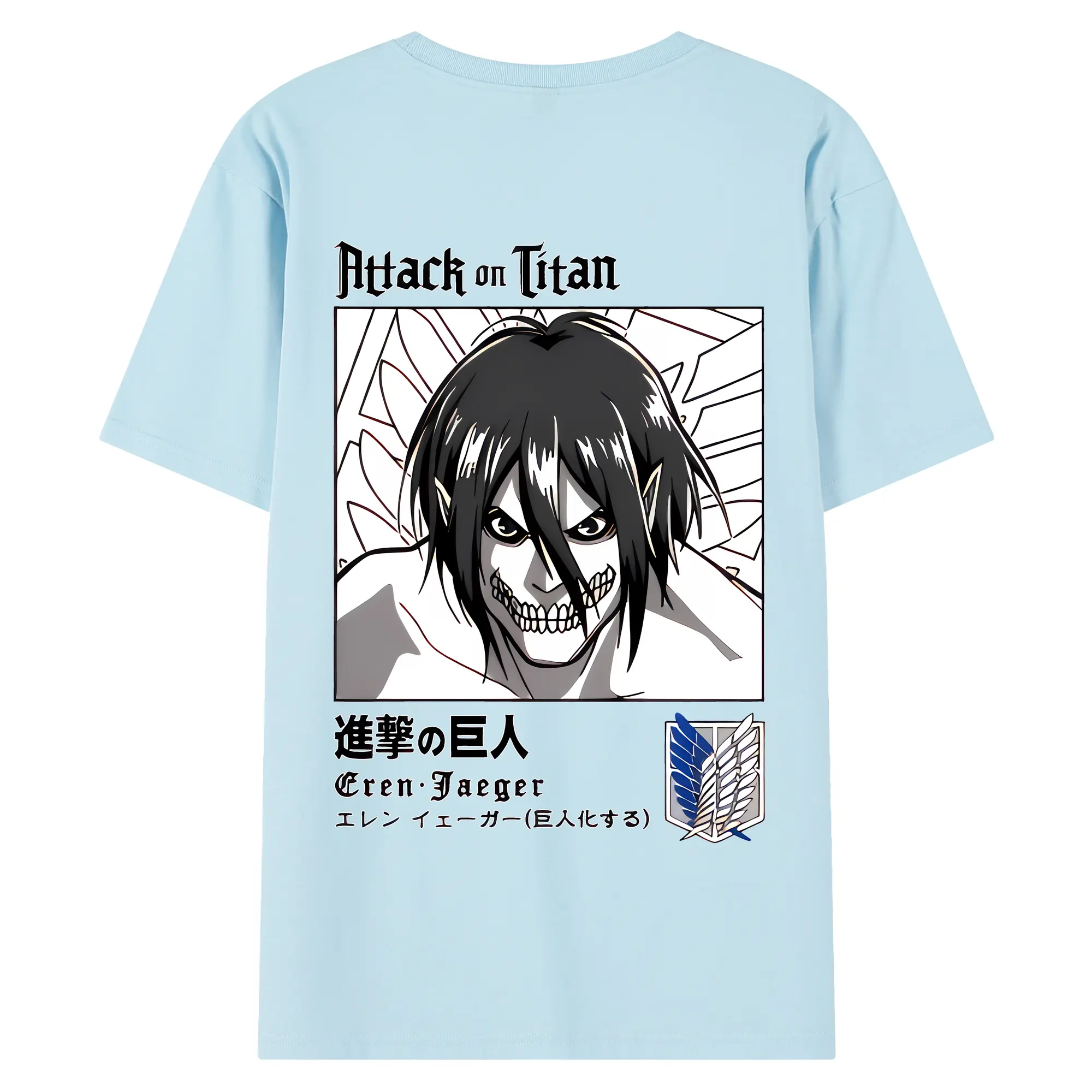 進撃の巨人 グッズ エレン・イェーガー - 綿100% 半袖Tシャツ ・ フロントプリント ・ 快適 通気性 ・ 日常使い 散歩 スポーツ用