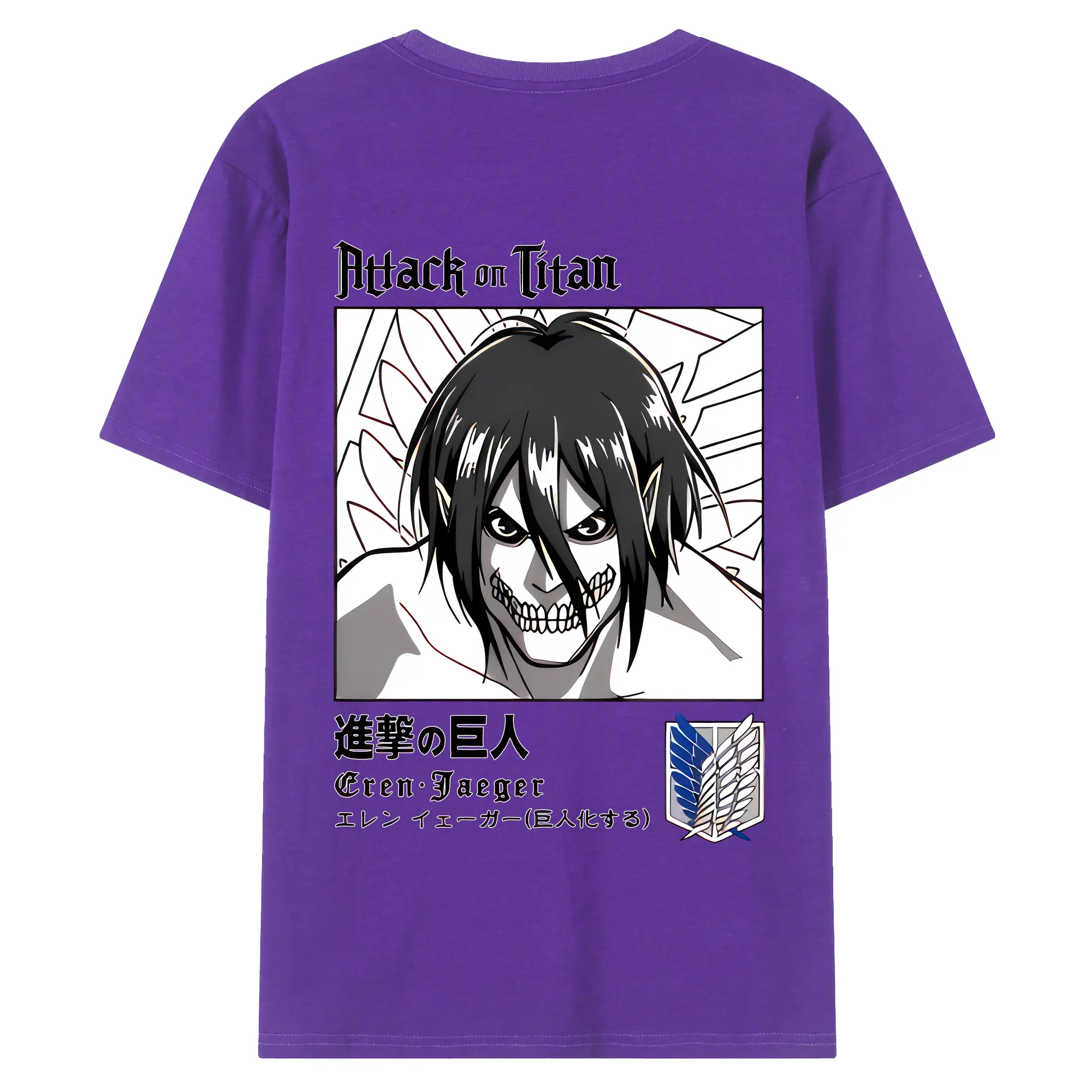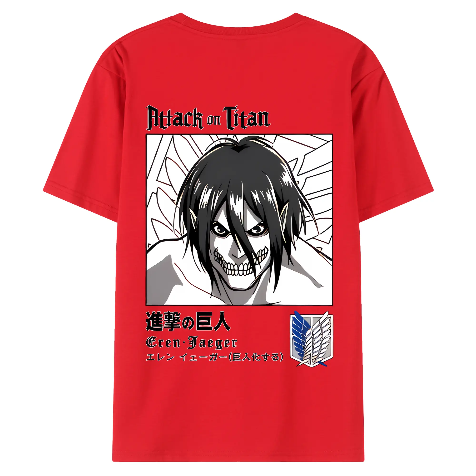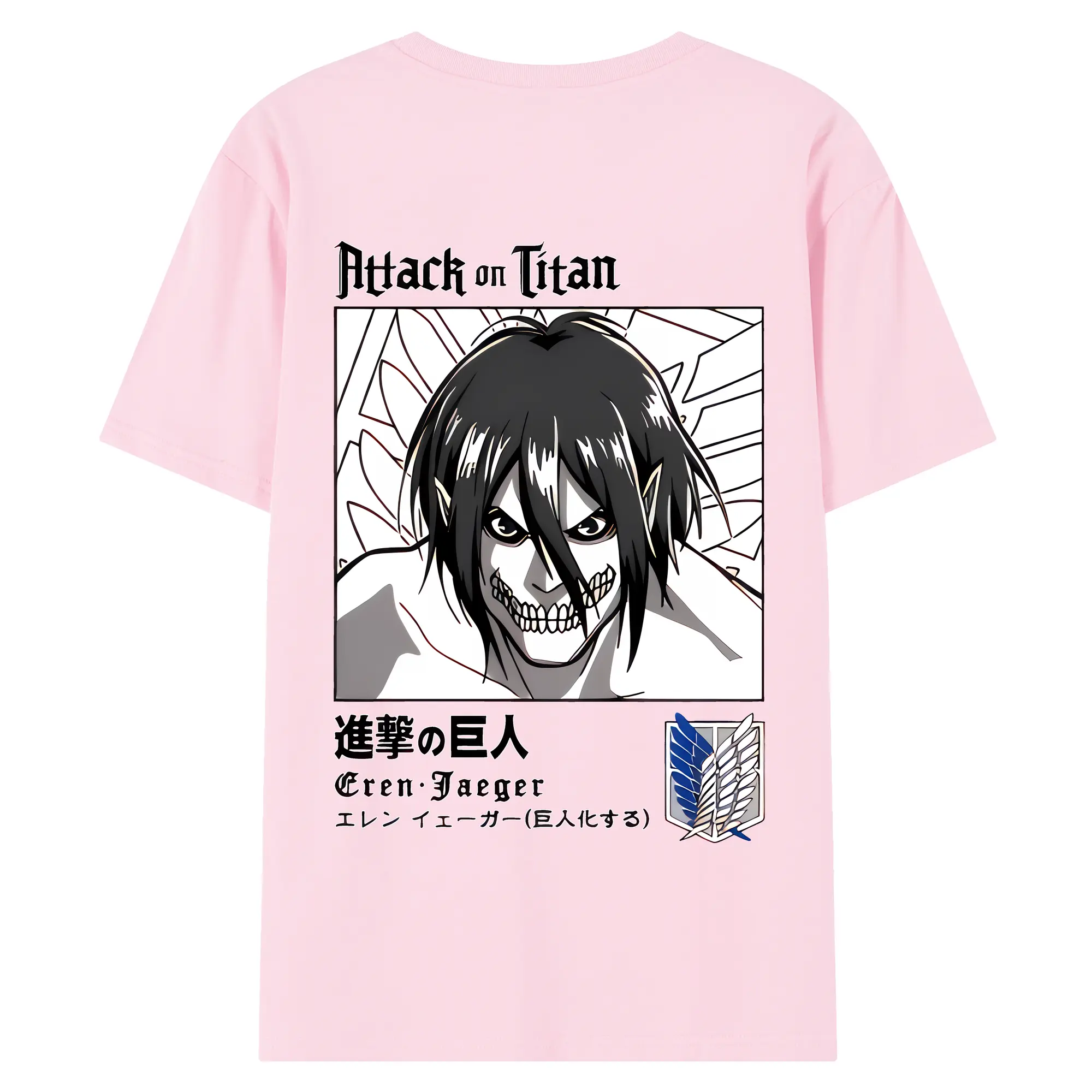 進撃の巨人 グッズ エレン・イェーガー - 綿100% 半袖Tシャツ ・ フロントプリント ・ 快適 通気性 ・ 日常使い 散歩 スポーツ用