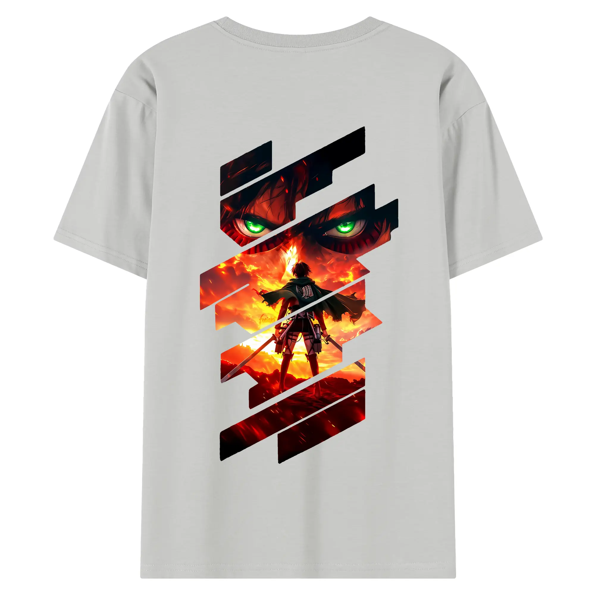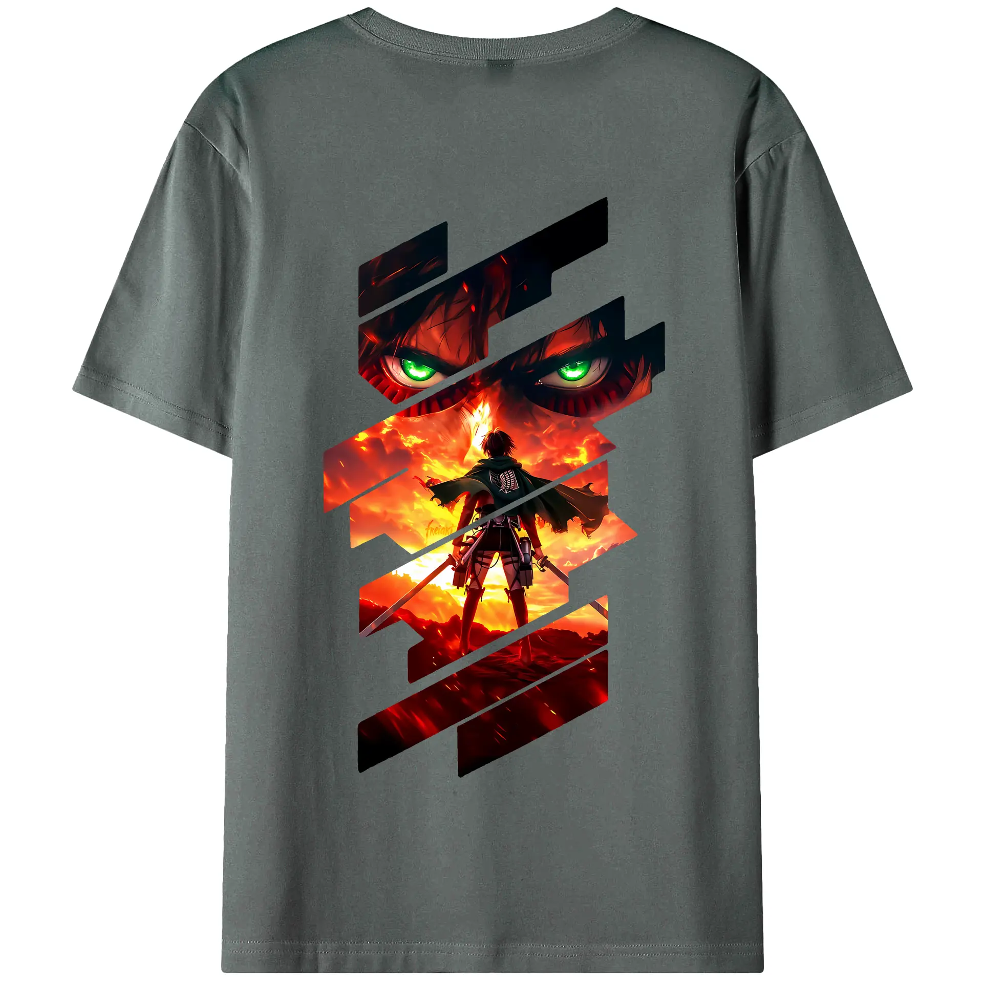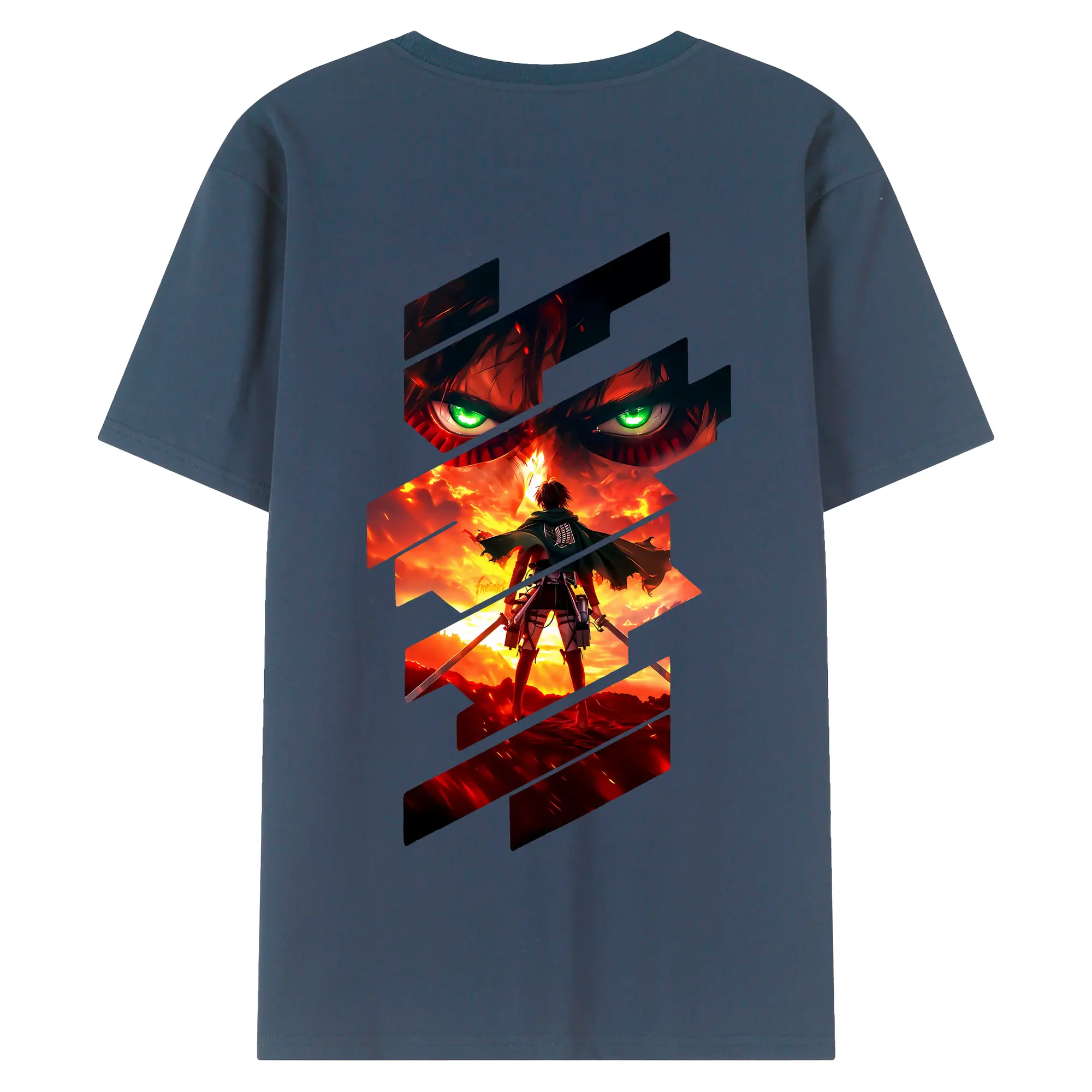 進撃の巨人 グッズ エレン・イェーガー - 綿100% ヴィンテージ風 半袖Tシャツ ・ 背面プリント ・ 柔らか肌触り ・ 通気性 快適 ・ スポーツ カジュアル 外出用