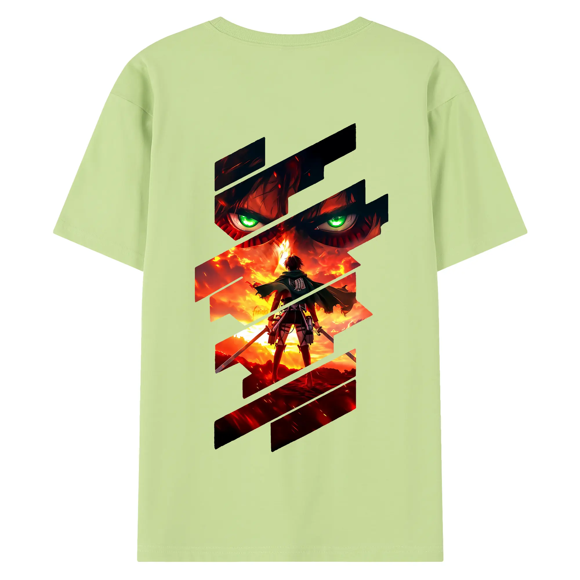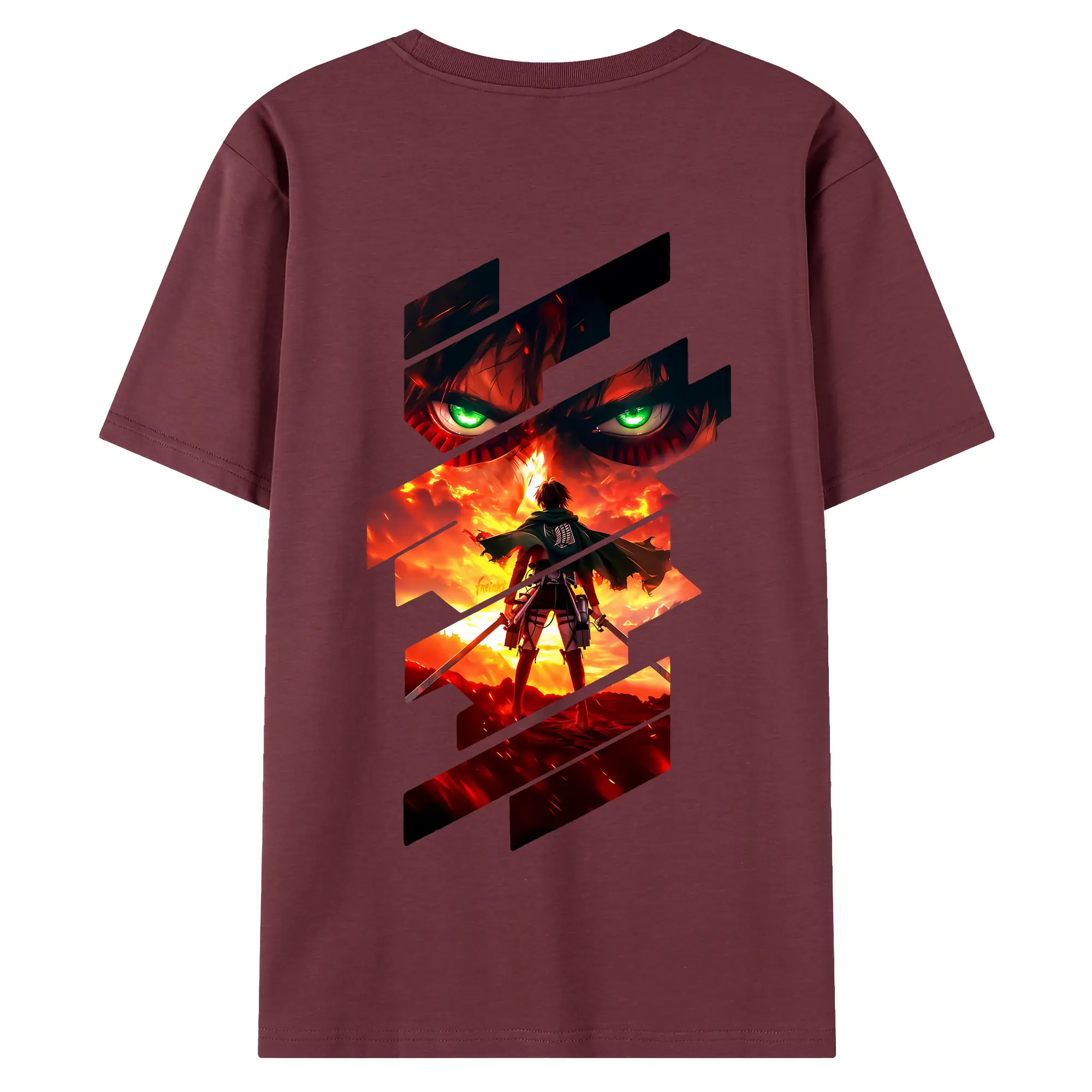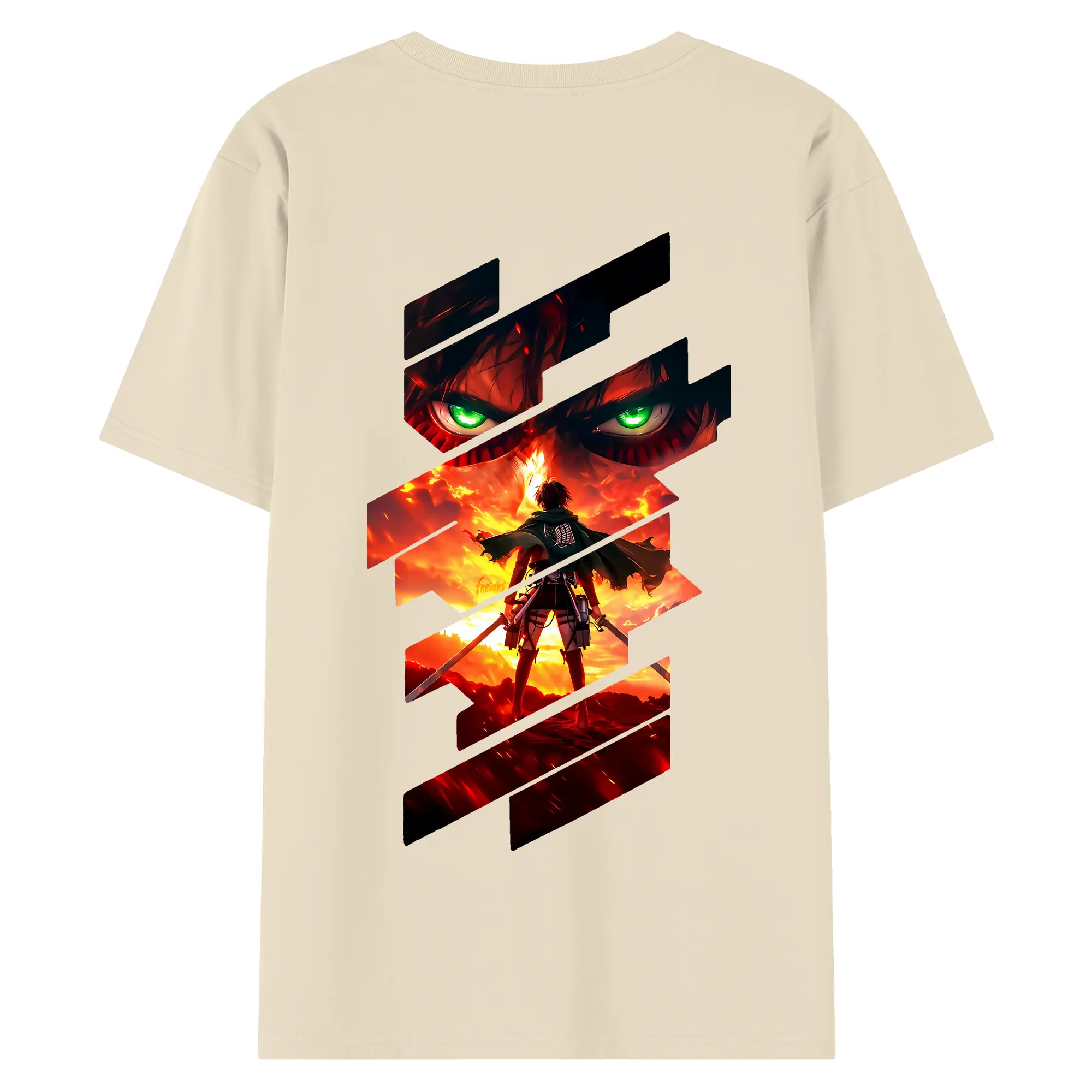 進撃の巨人 グッズ エレン・イェーガー - 綿100% ヴィンテージ風 半袖Tシャツ ・ 背面プリント ・ 柔らか肌触り ・ 通気性 快適 ・ スポーツ カジュアル 外出用