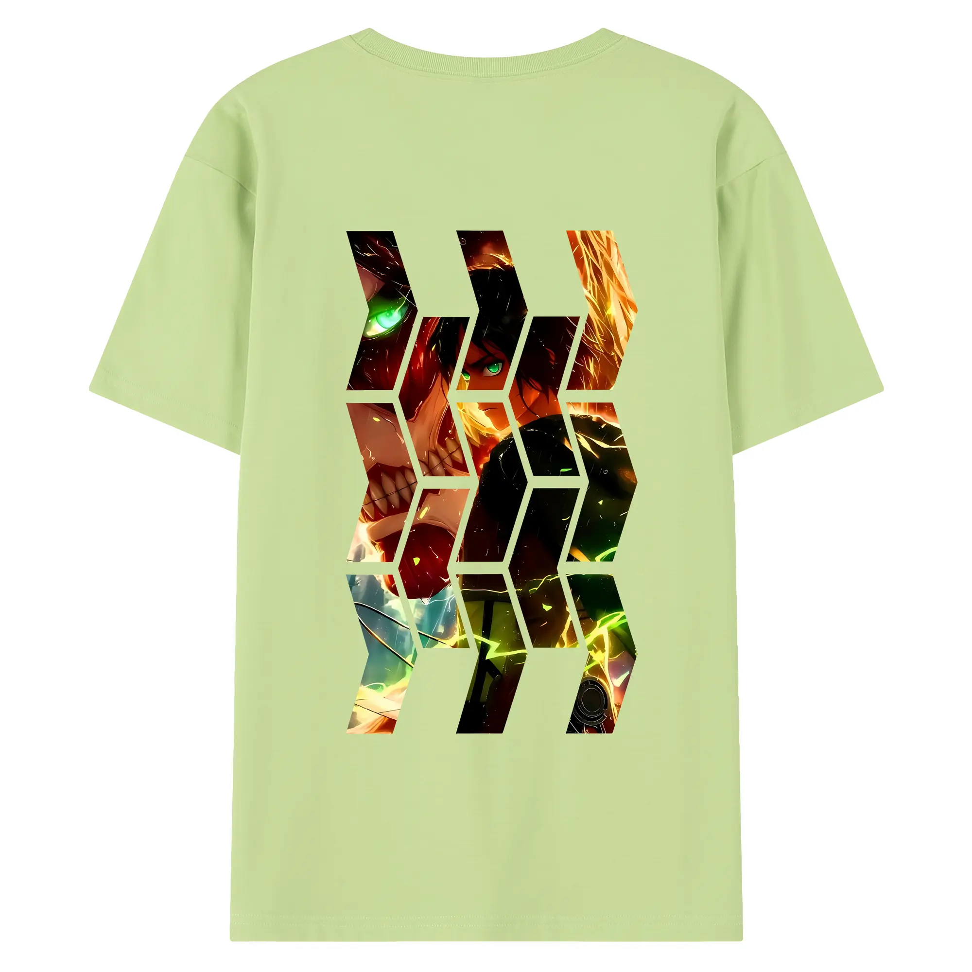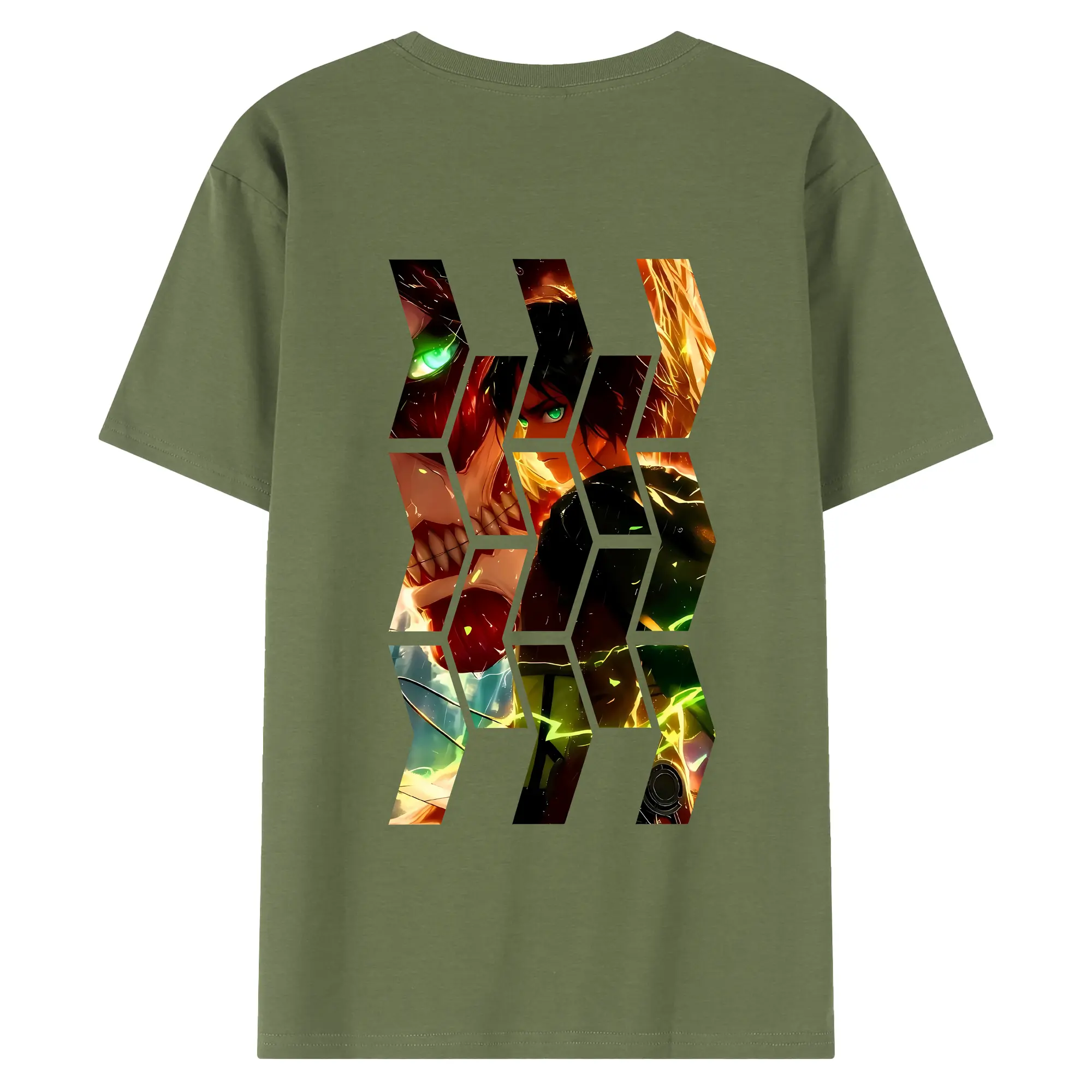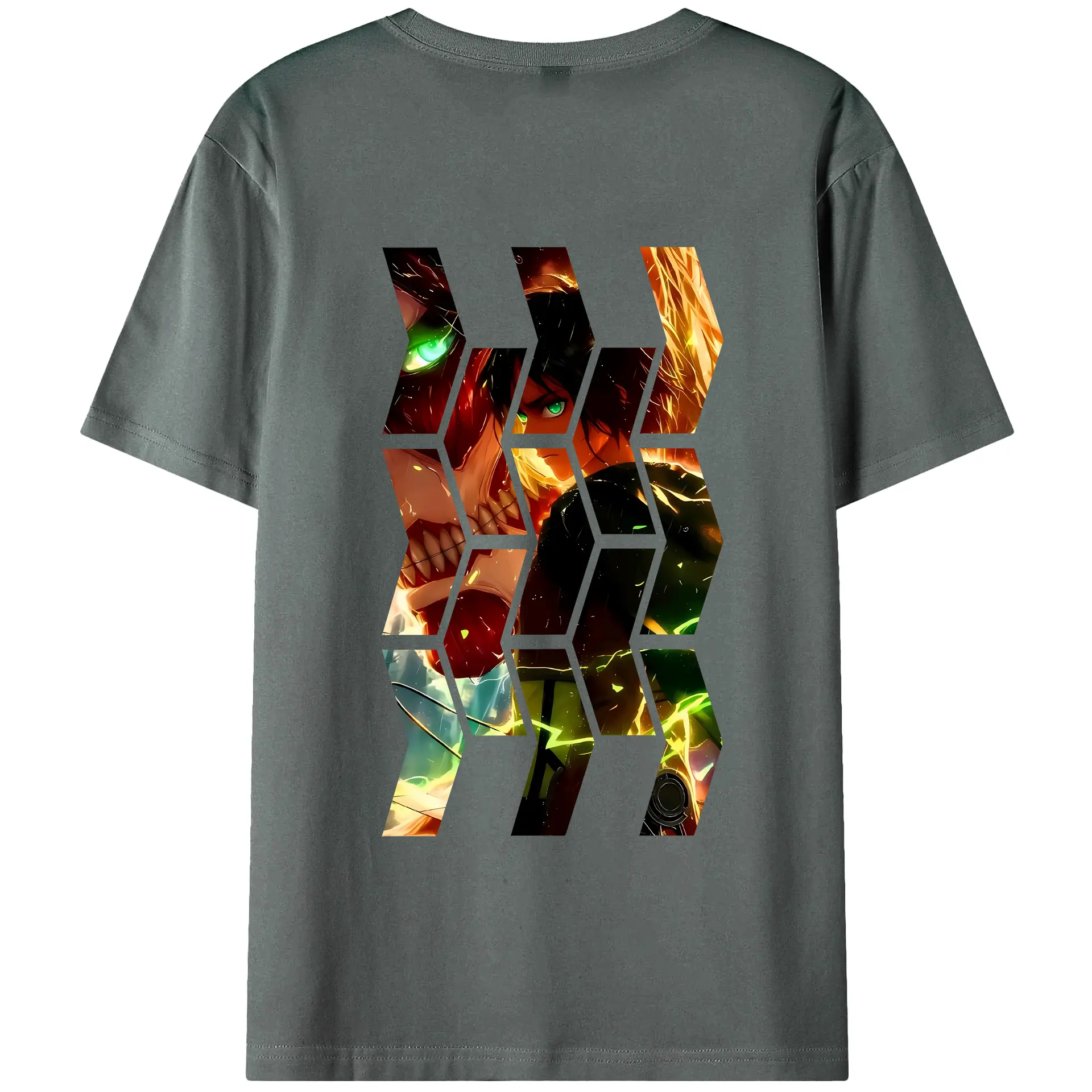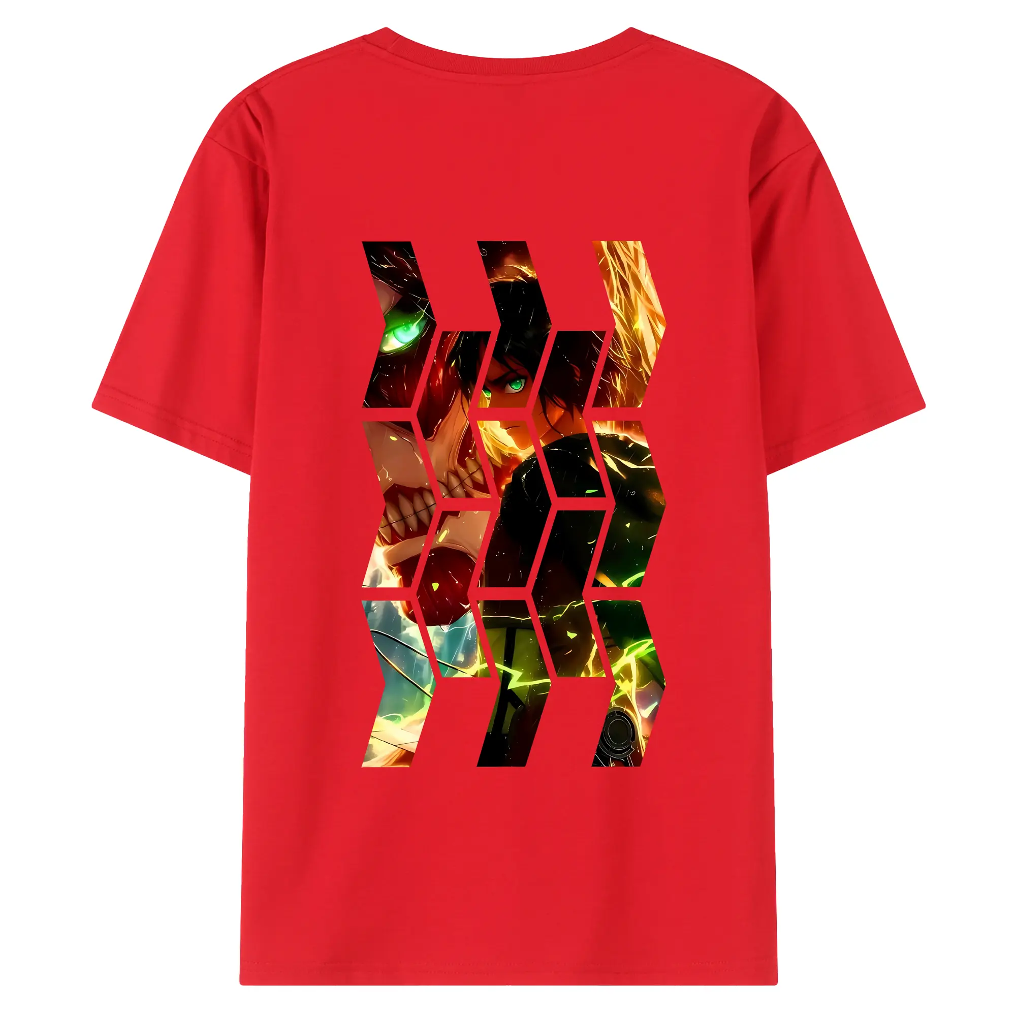 進撃の巨人 グッズ エレン・イェーガー - 綿100% 半袖Tシャツ ・ フロントプリント ・ 快適 通気性 ・ 日常使い 散歩 スポーツ用