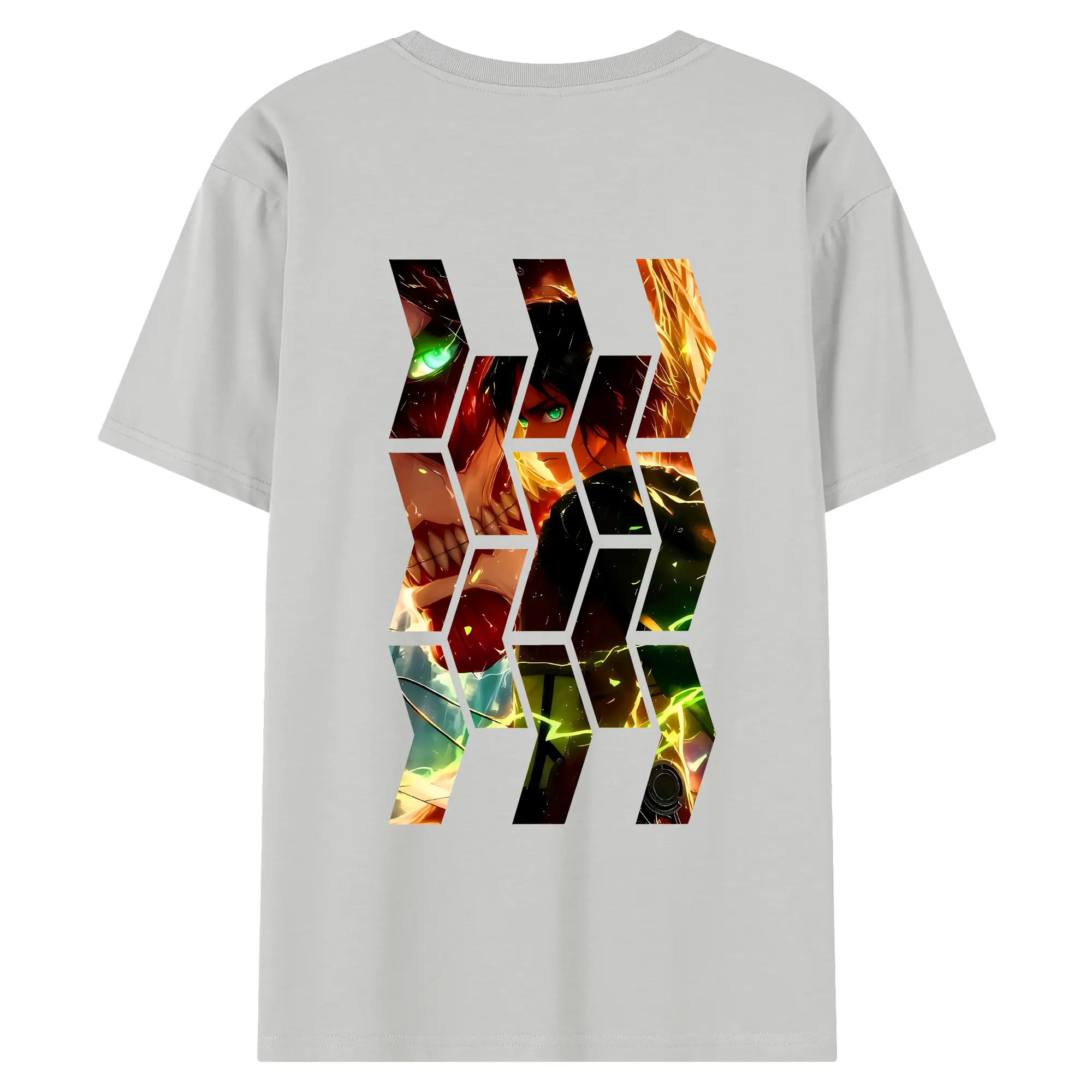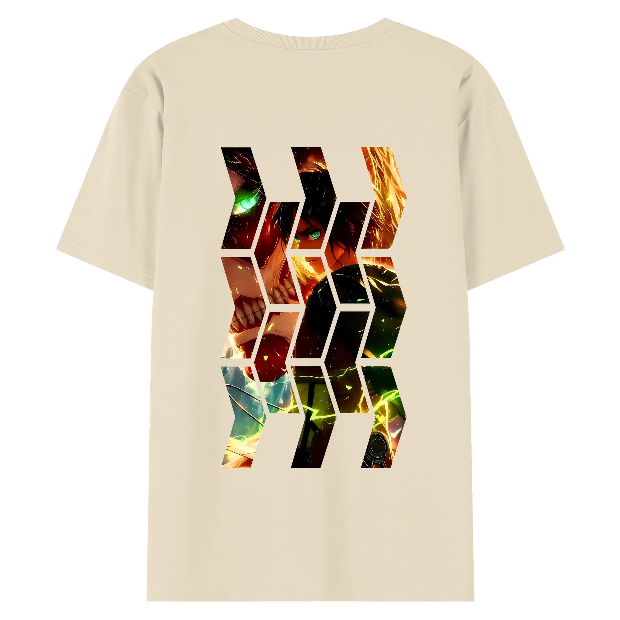 進撃の巨人 グッズ エレン・イェーガー - 綿100% ヴィンテージ風 半袖Tシャツ ・ 背面プリント ・ 柔らか肌触り ・ 通気性 快適 ・ スポーツ カジュアル 外出用