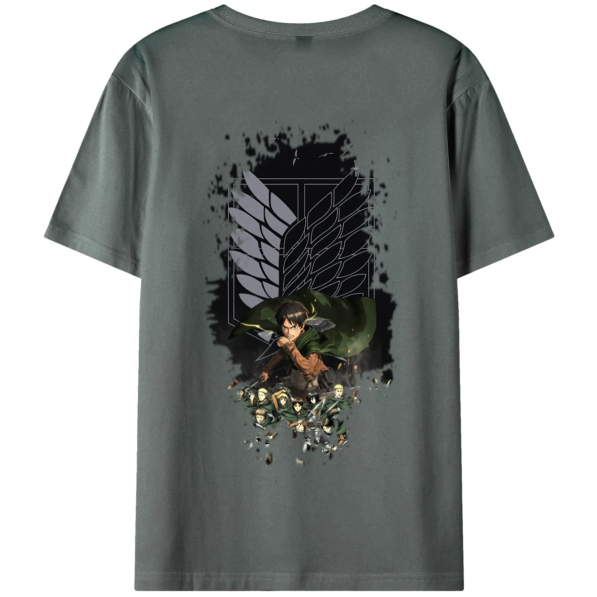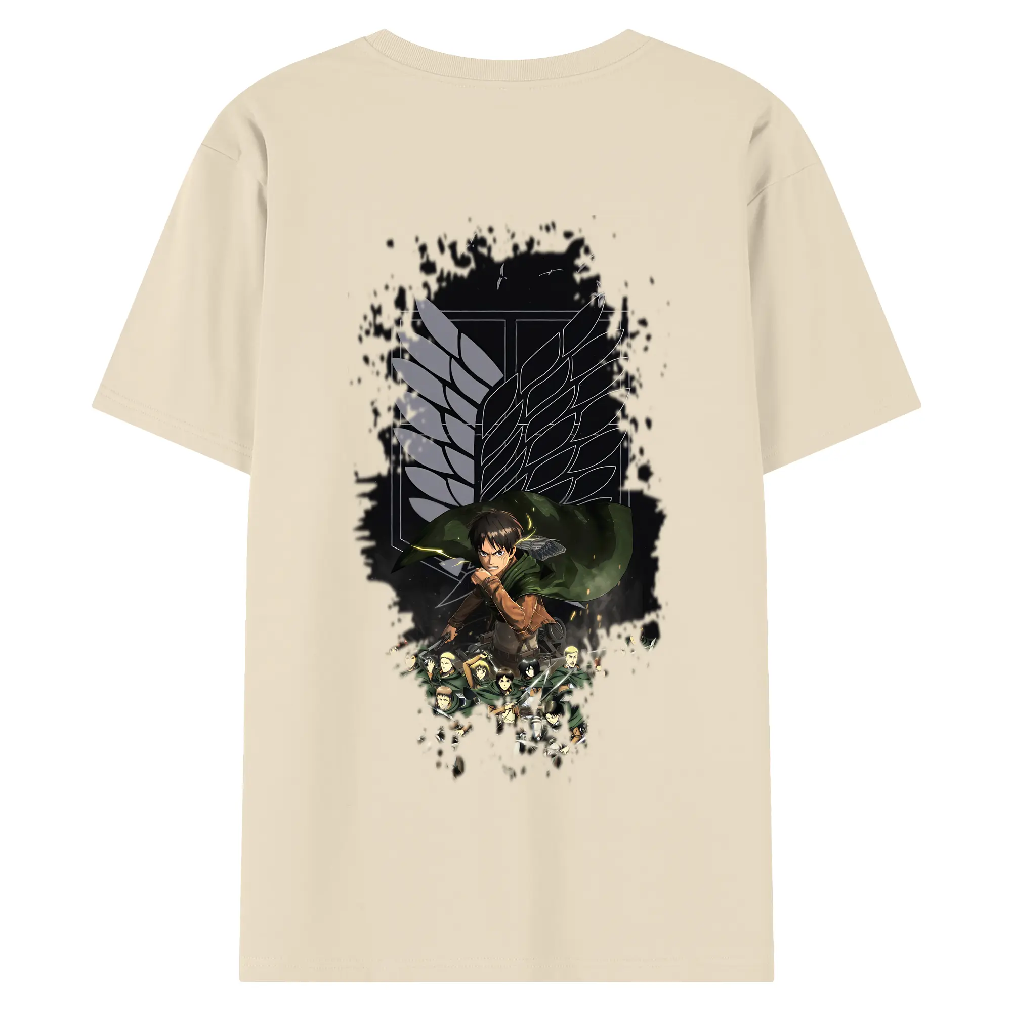進撃の巨人 グッズ エレン・イェーガー - 綿100% ヴィンテージ風 半袖Tシャツ ・ 背面プリント ・ 柔らか肌触り ・ 通気性 快適 ・ スポーツ カジュアル 外出用