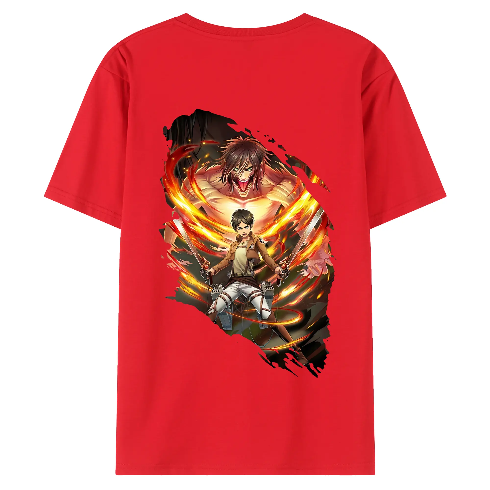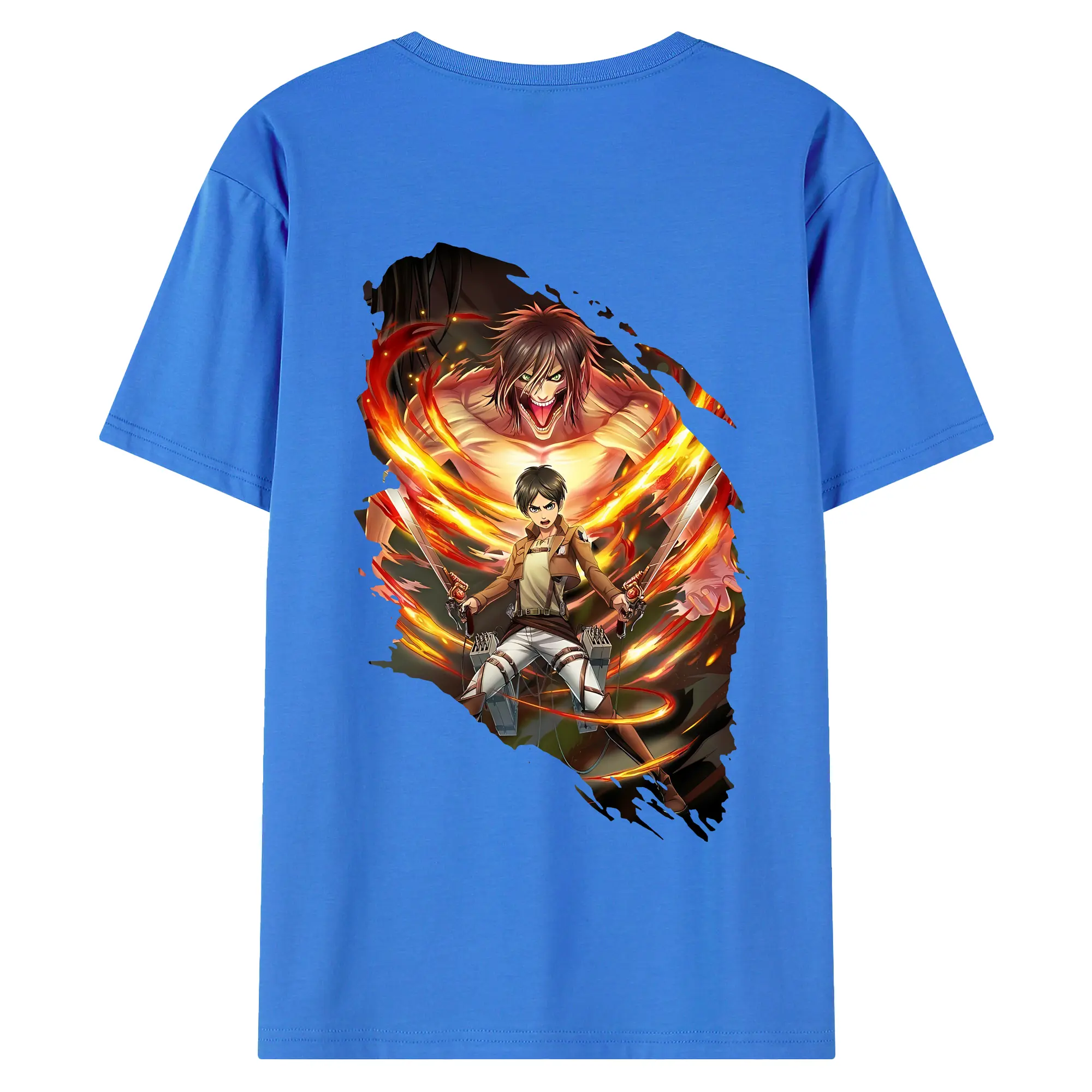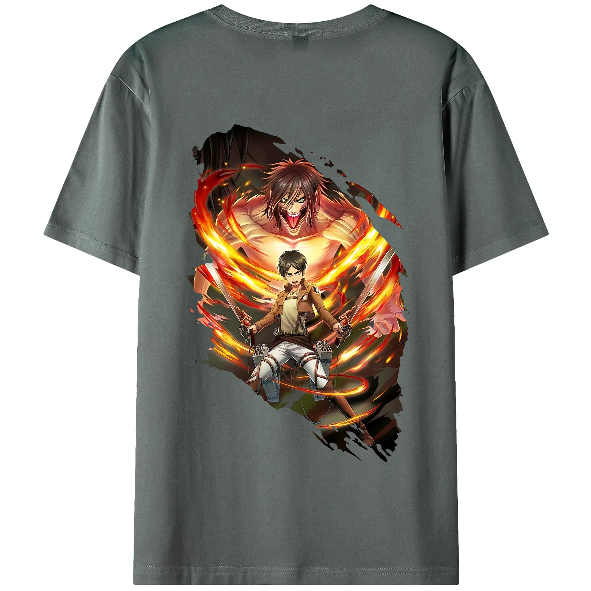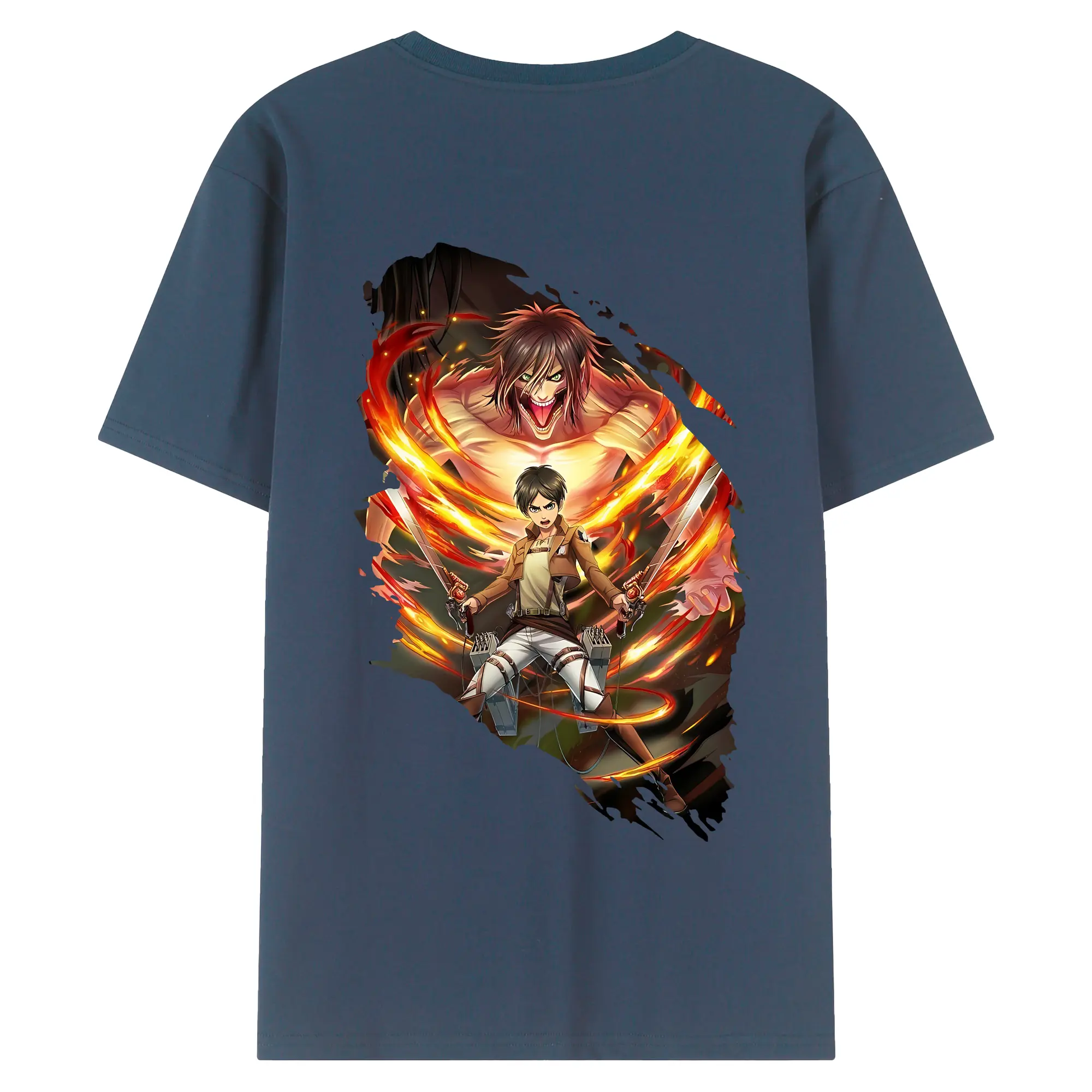 進撃の巨人 グッズ エレン・イェーガー - 綿100% 半袖Tシャツ ・ フロントプリント ・ 快適 通気性 ・ 日常使い 散歩 スポーツ用