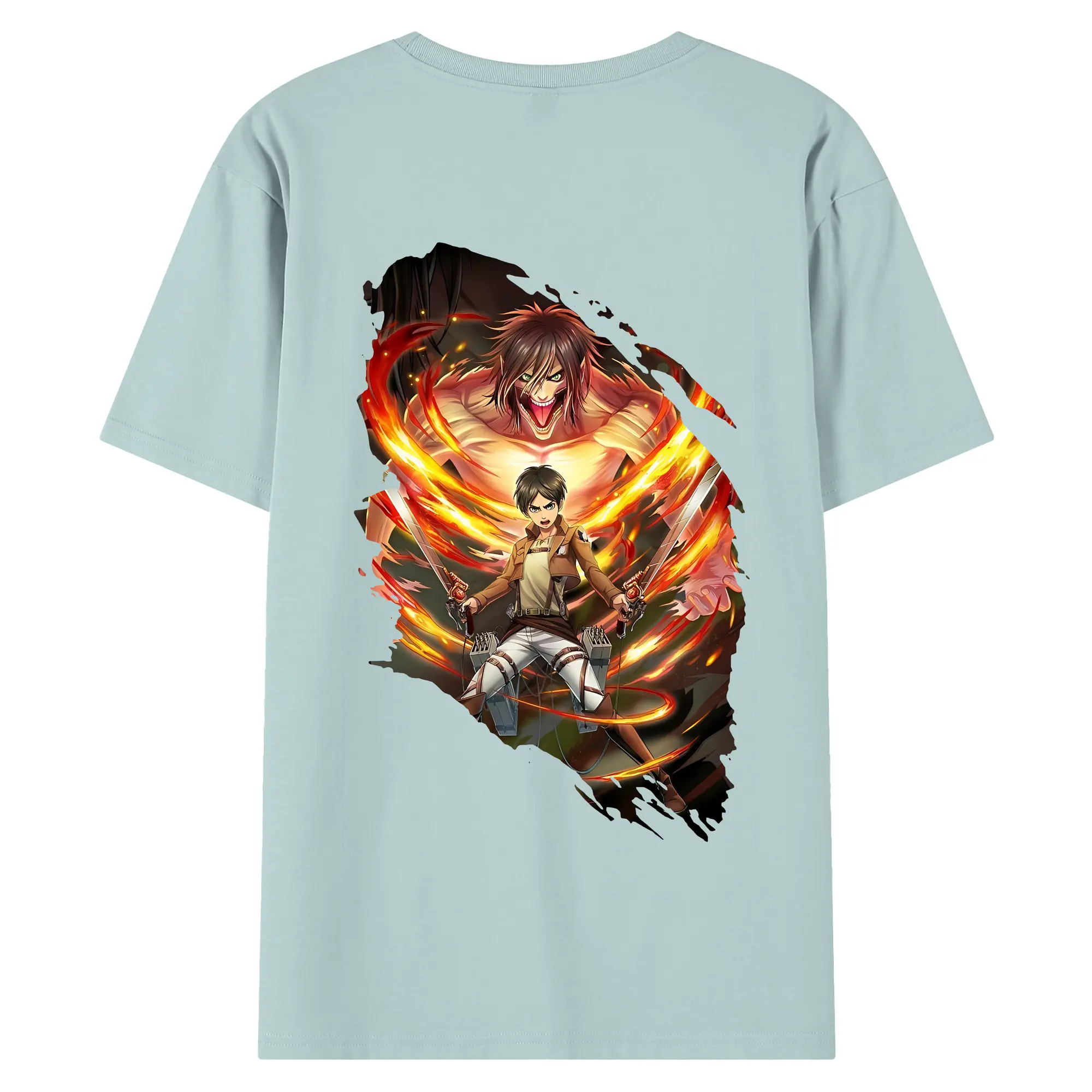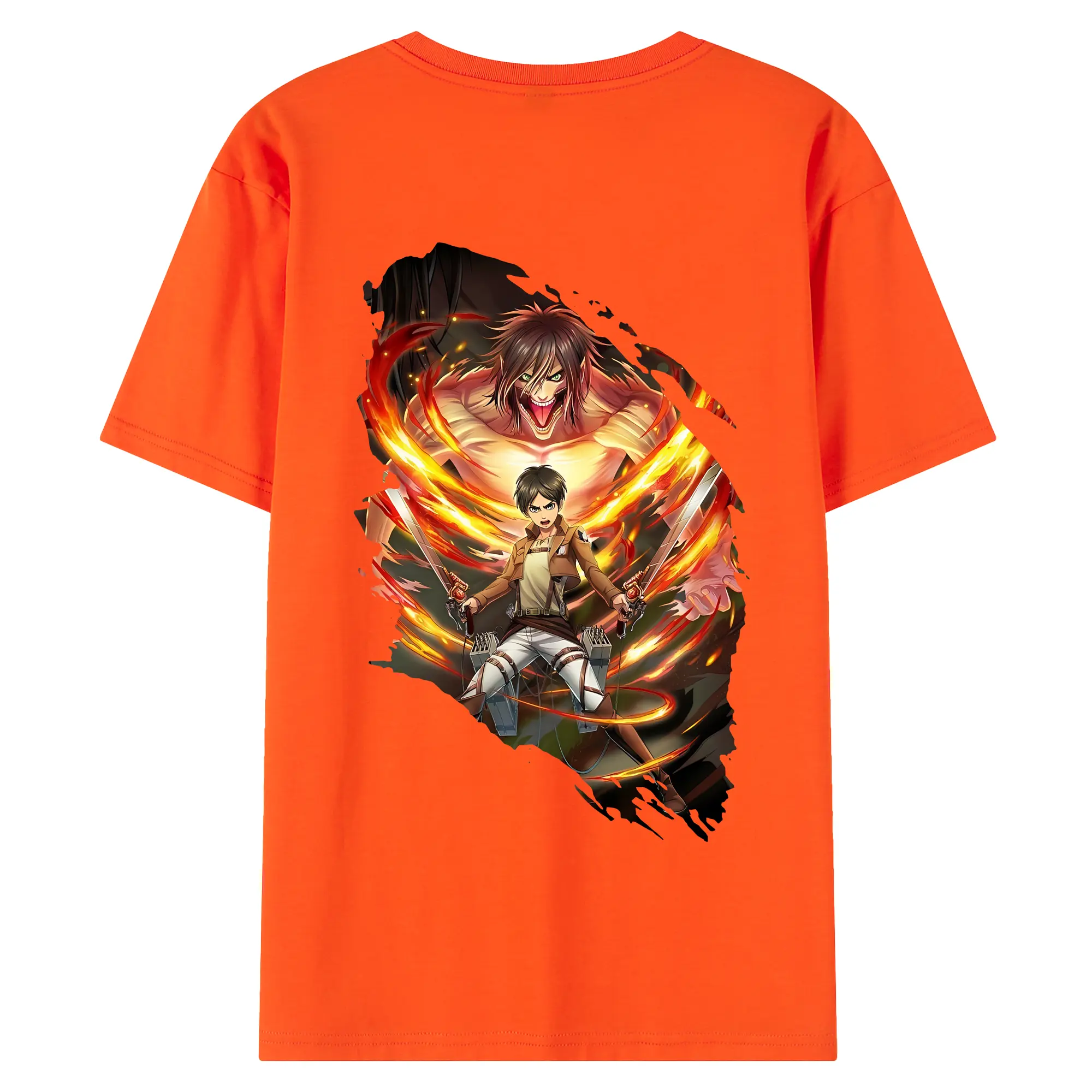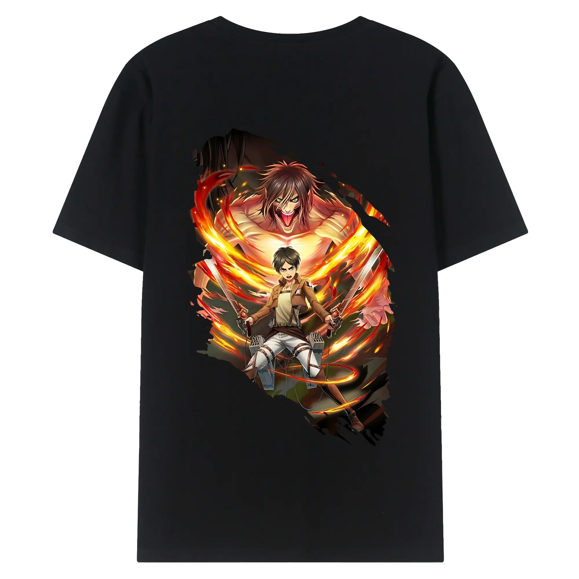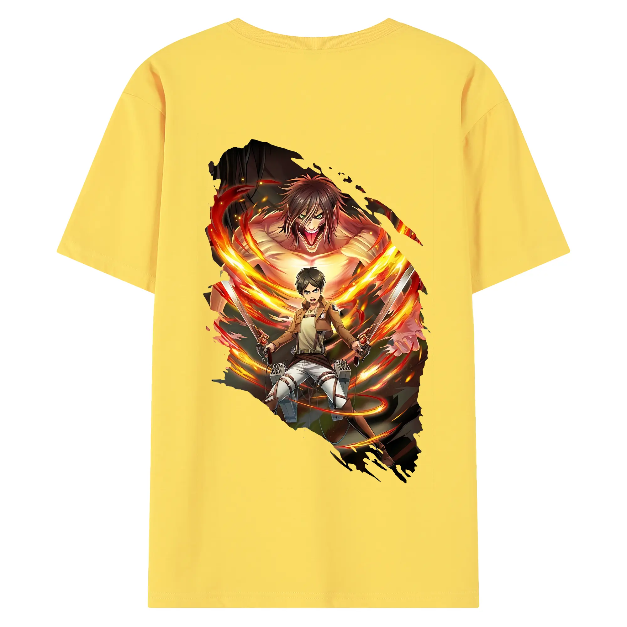 進撃の巨人 グッズ エレン・イェーガー - 綿100% 半袖Tシャツ ・ フロントプリント ・ 快適 通気性 ・ 日常使い 散歩 スポーツ用