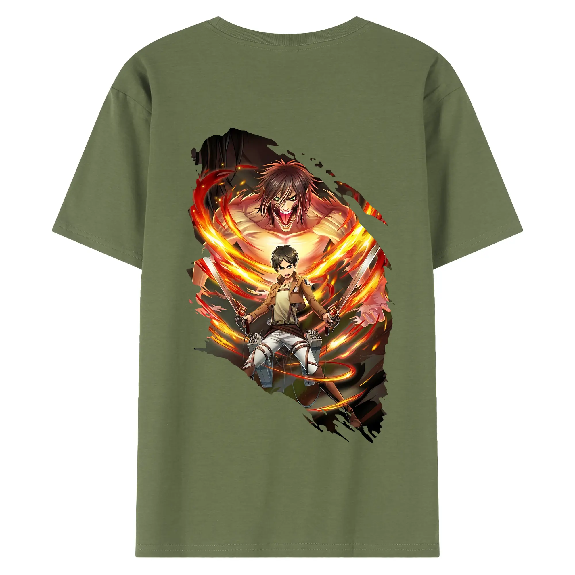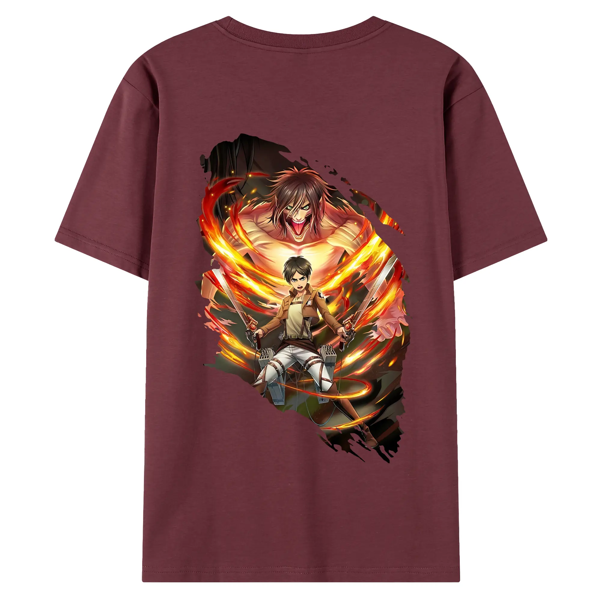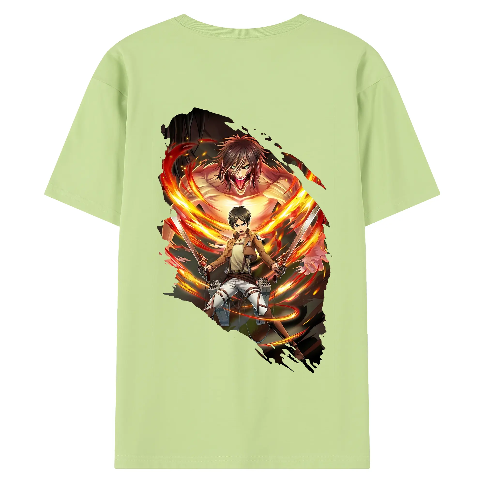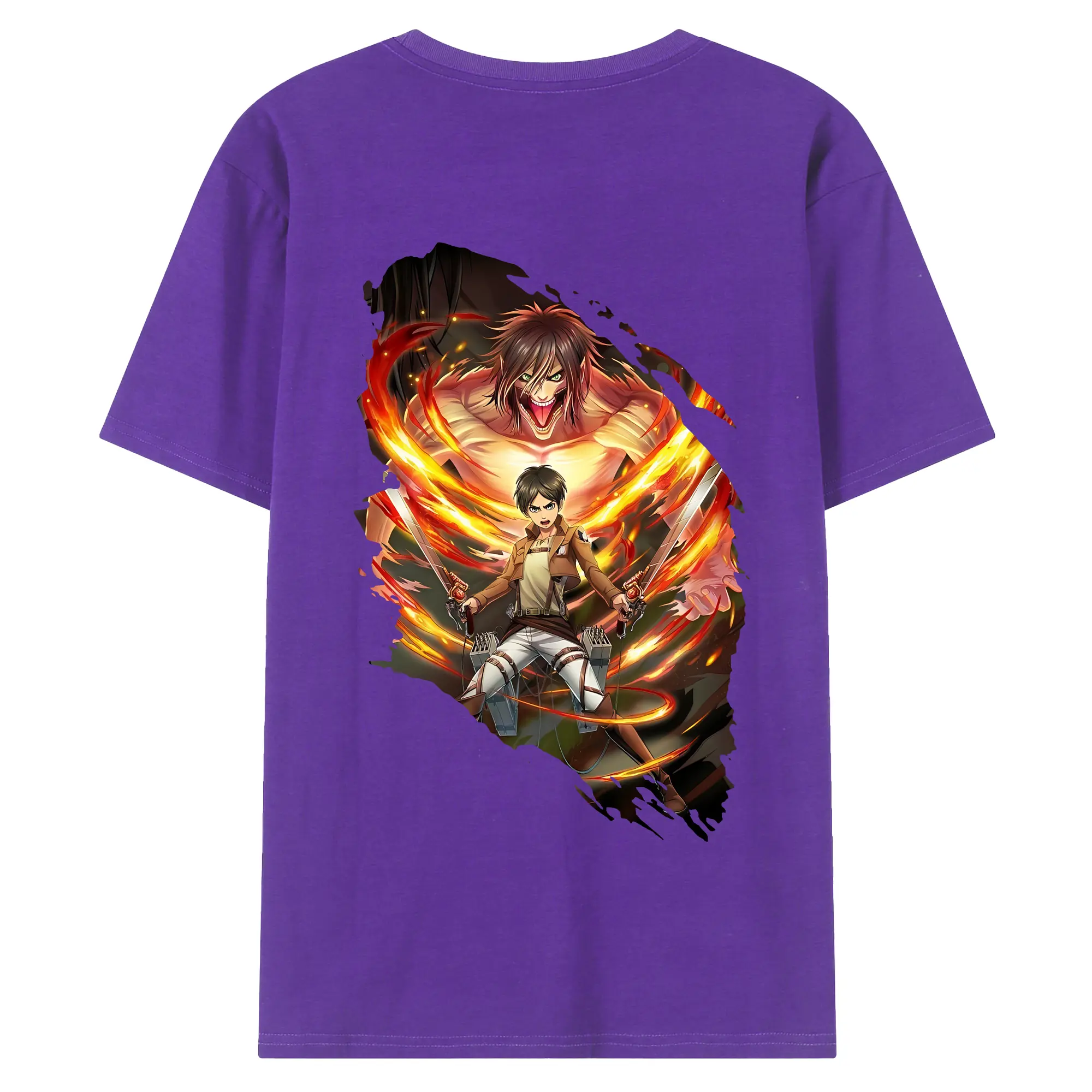 進撃の巨人 グッズ エレン・イェーガー - 綿100% 半袖Tシャツ ・ フロントプリント ・ 快適 通気性 ・ 日常使い 散歩 スポーツ用