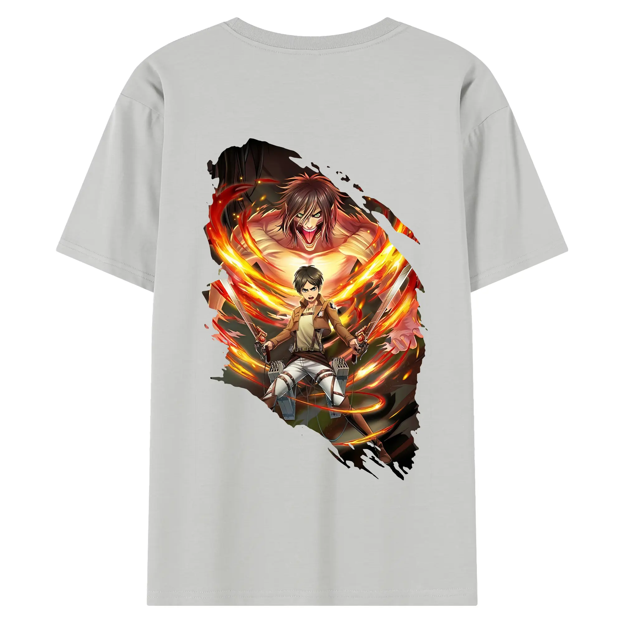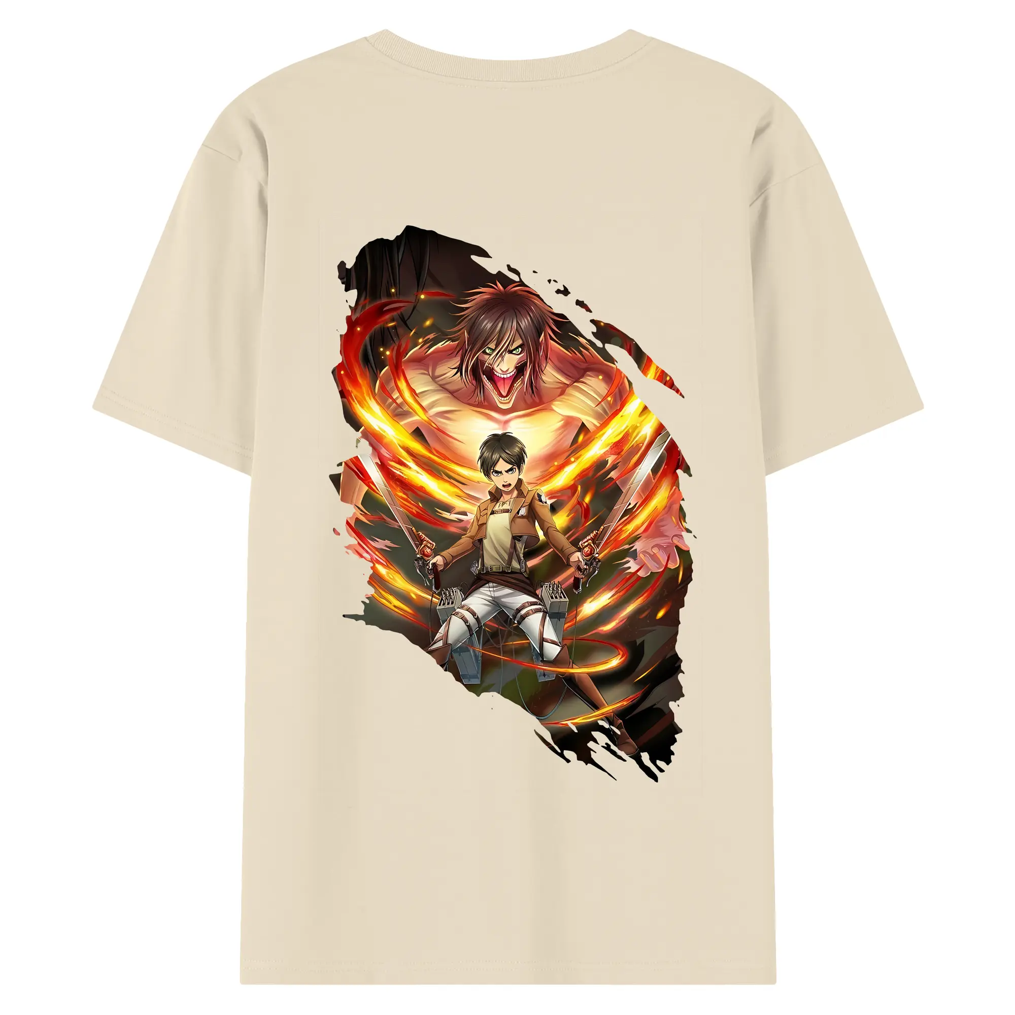 進撃の巨人 グッズ エレン・イェーガー - 綿100% ヴィンテージ風 半袖Tシャツ ・ 背面プリント ・ 柔らか肌触り ・ 通気性 快適 ・ スポーツ カジュアル 外出用