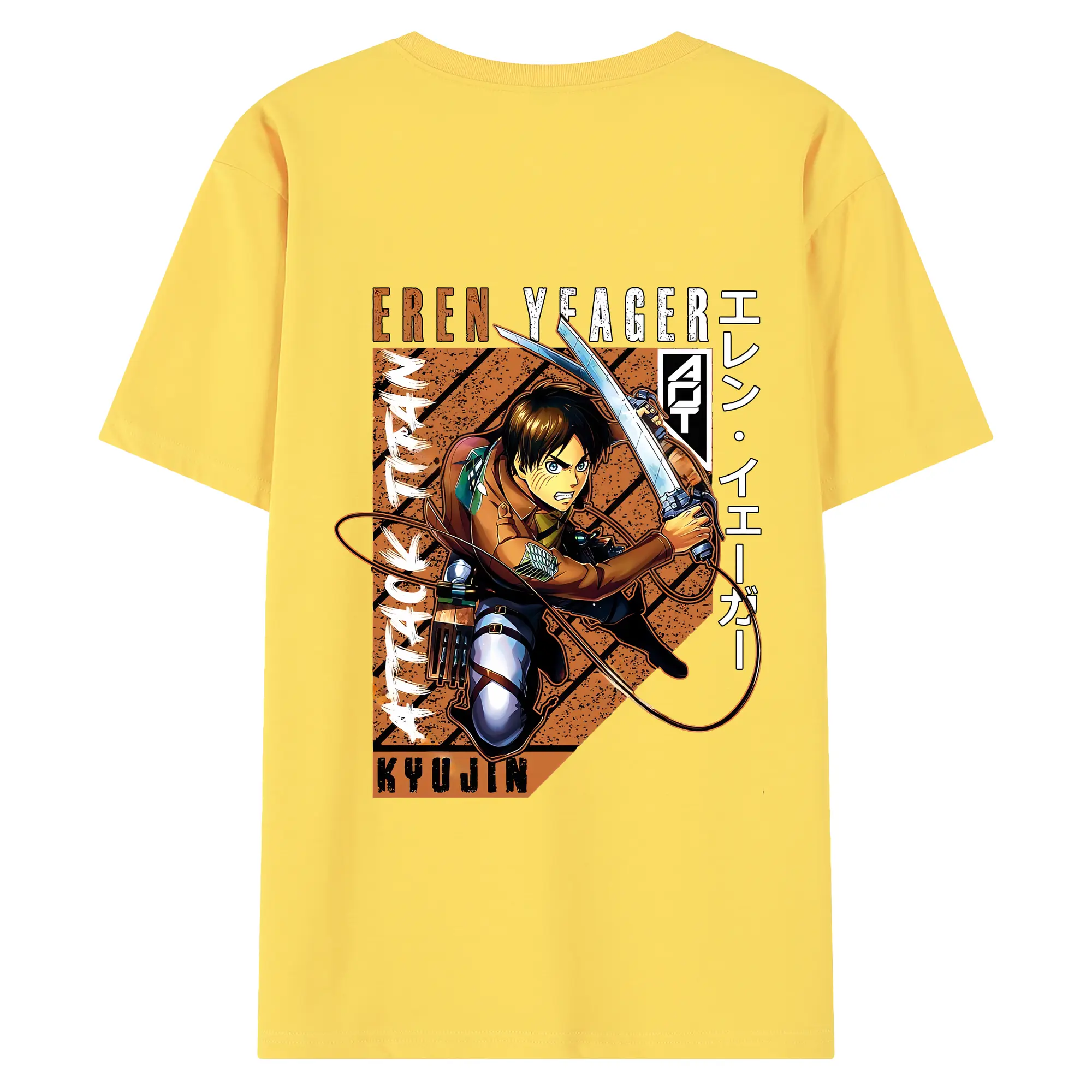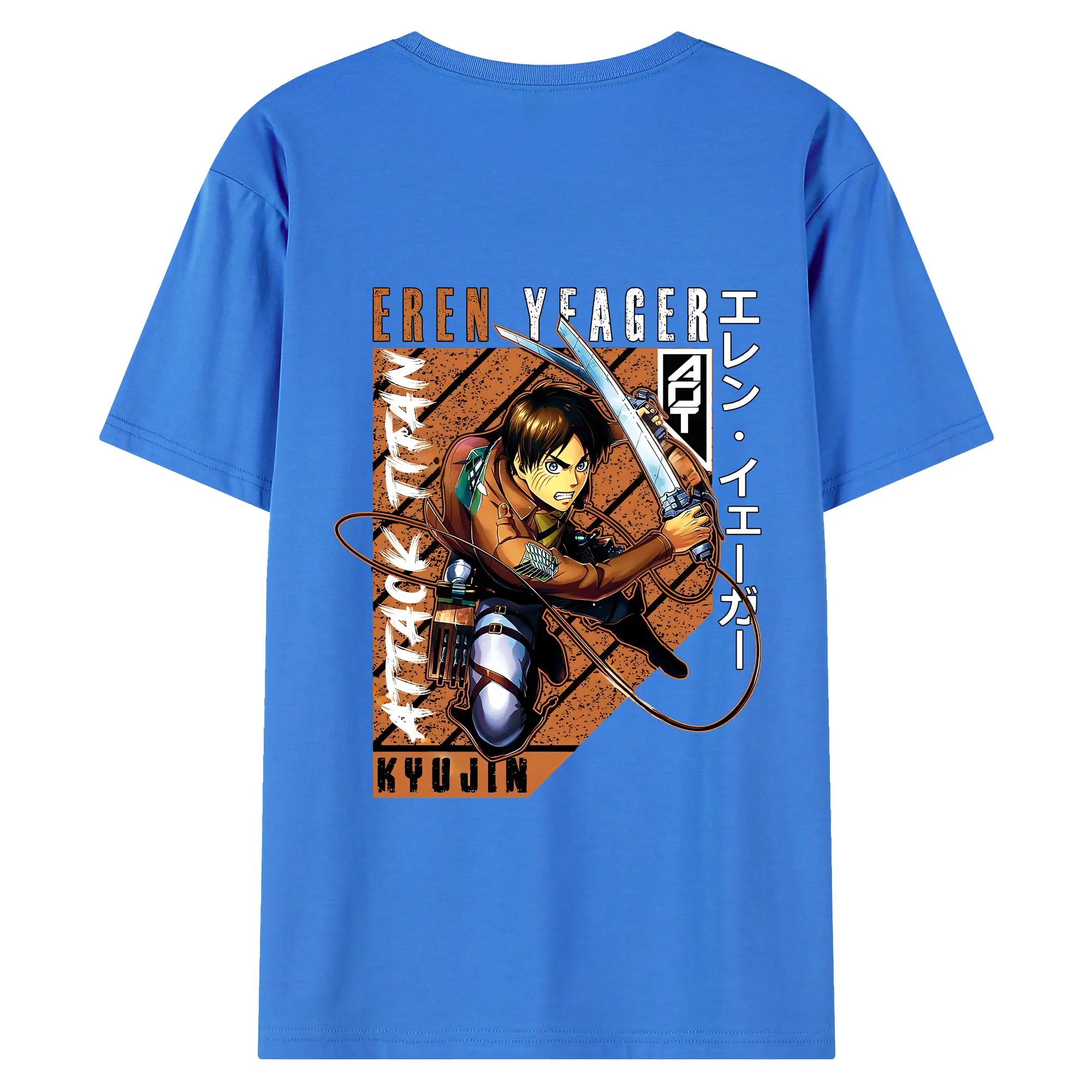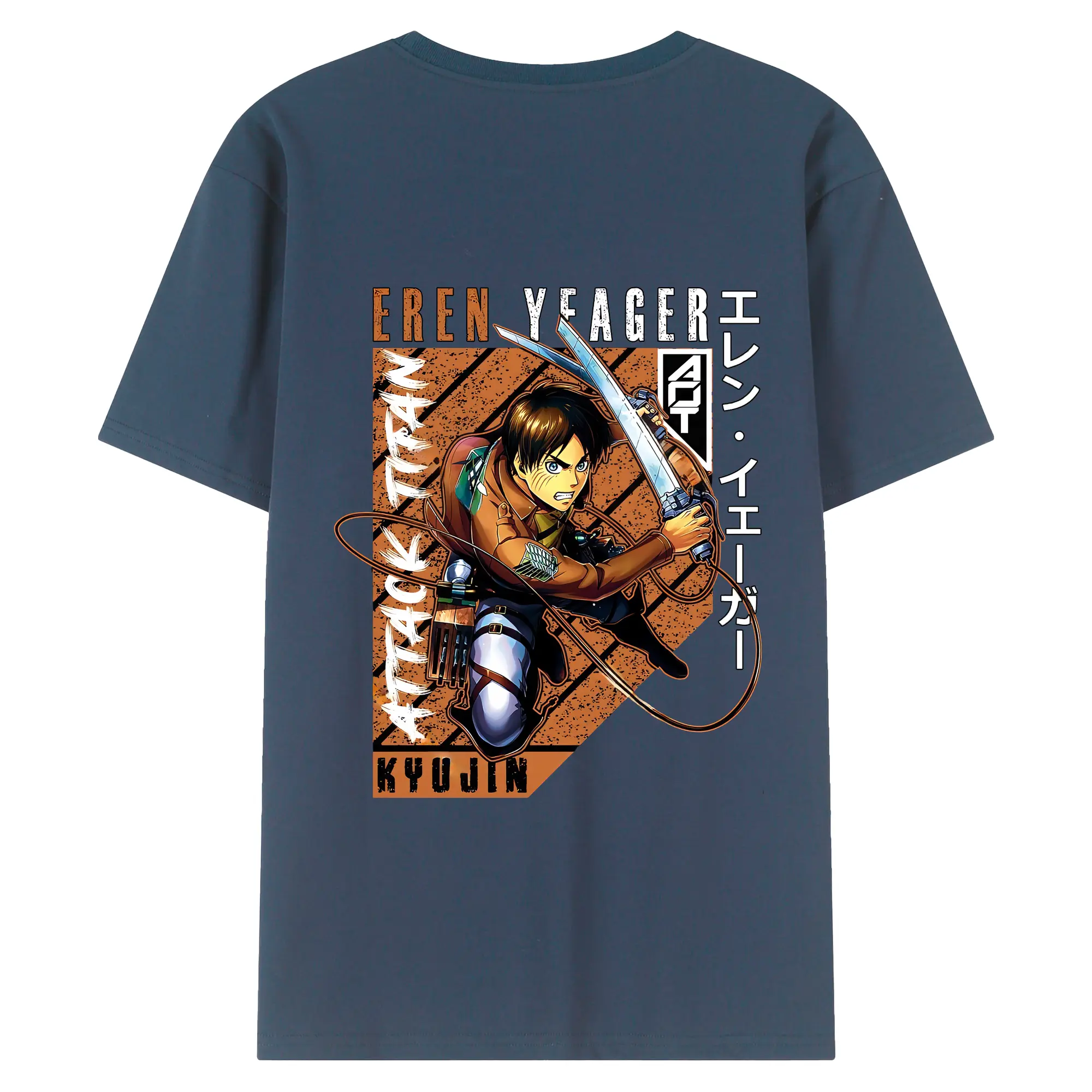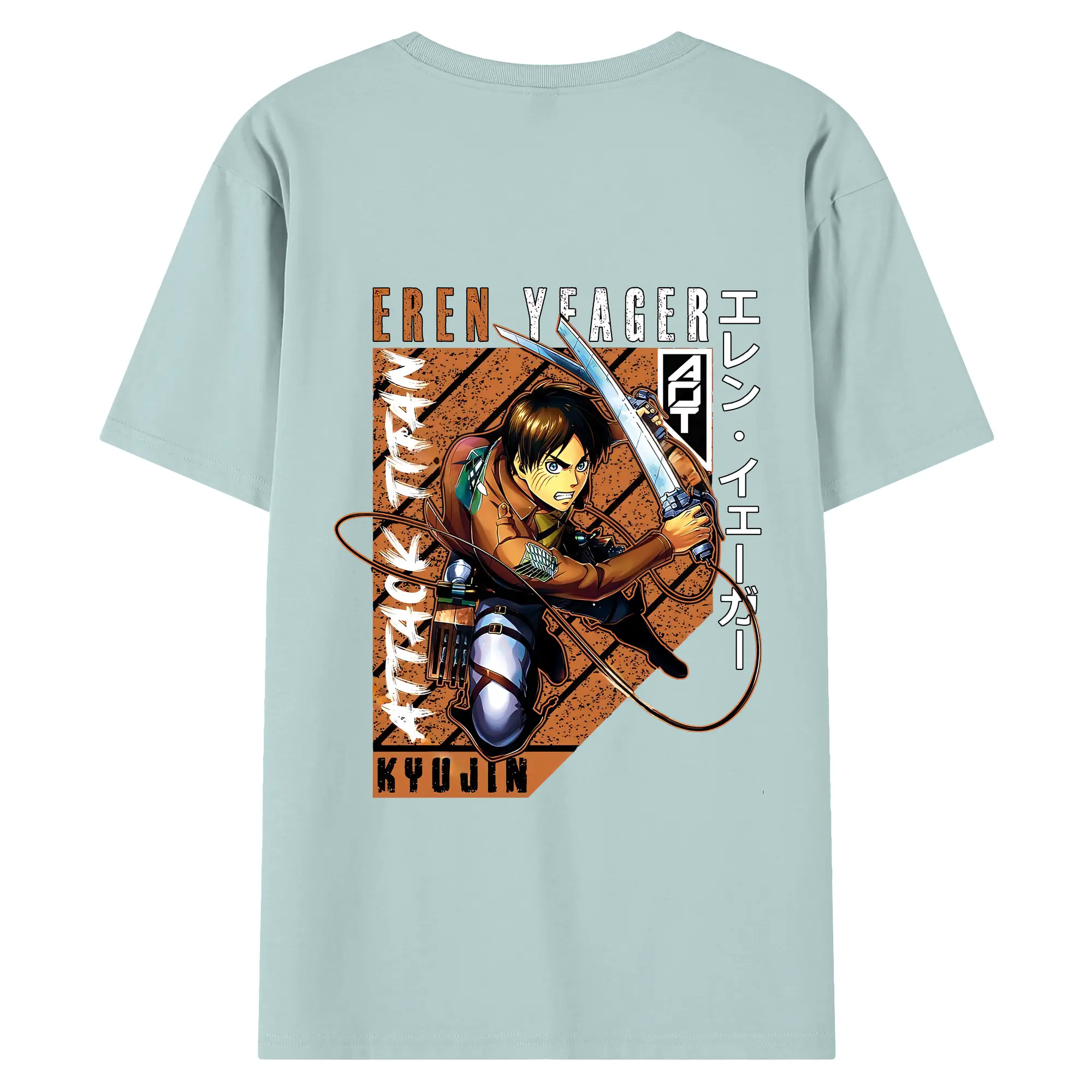 進撃の巨人 グッズ エレン・イェーガー - 綿100% 半袖Tシャツ ・ フロントプリント ・ 快適 通気性 ・ 日常使い 散歩 スポーツ用