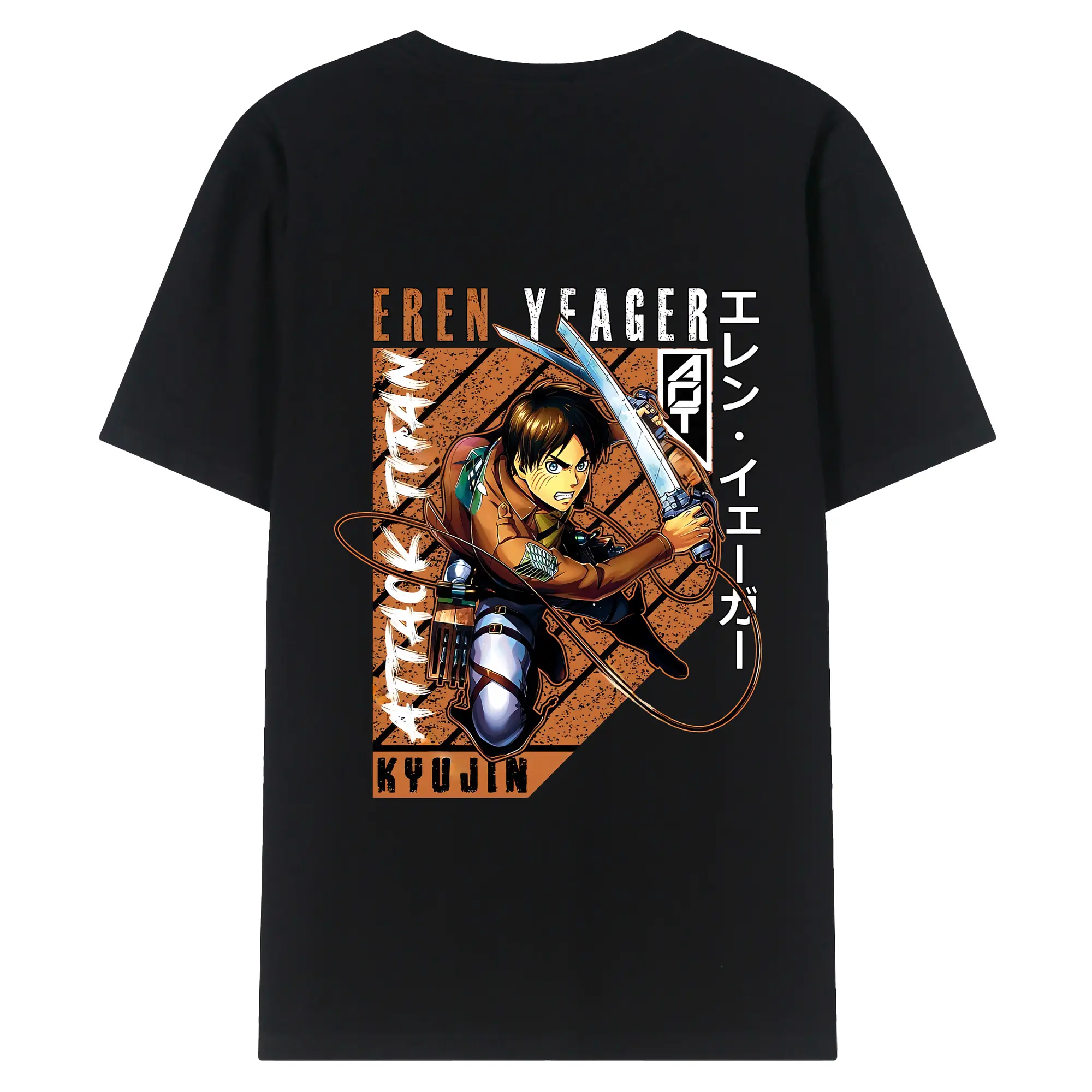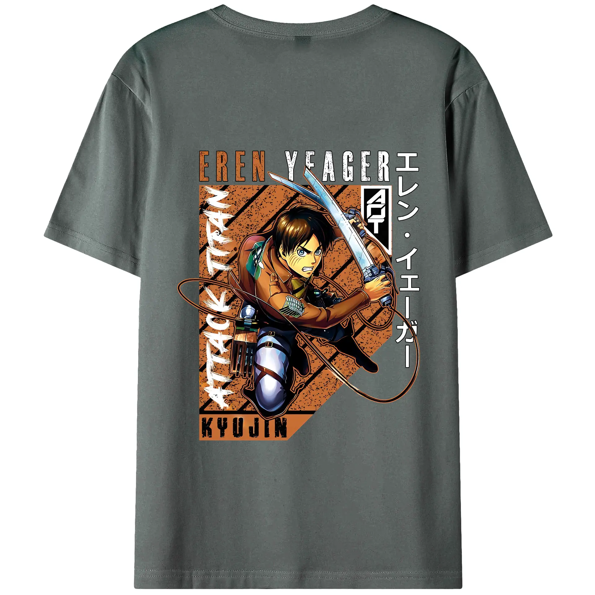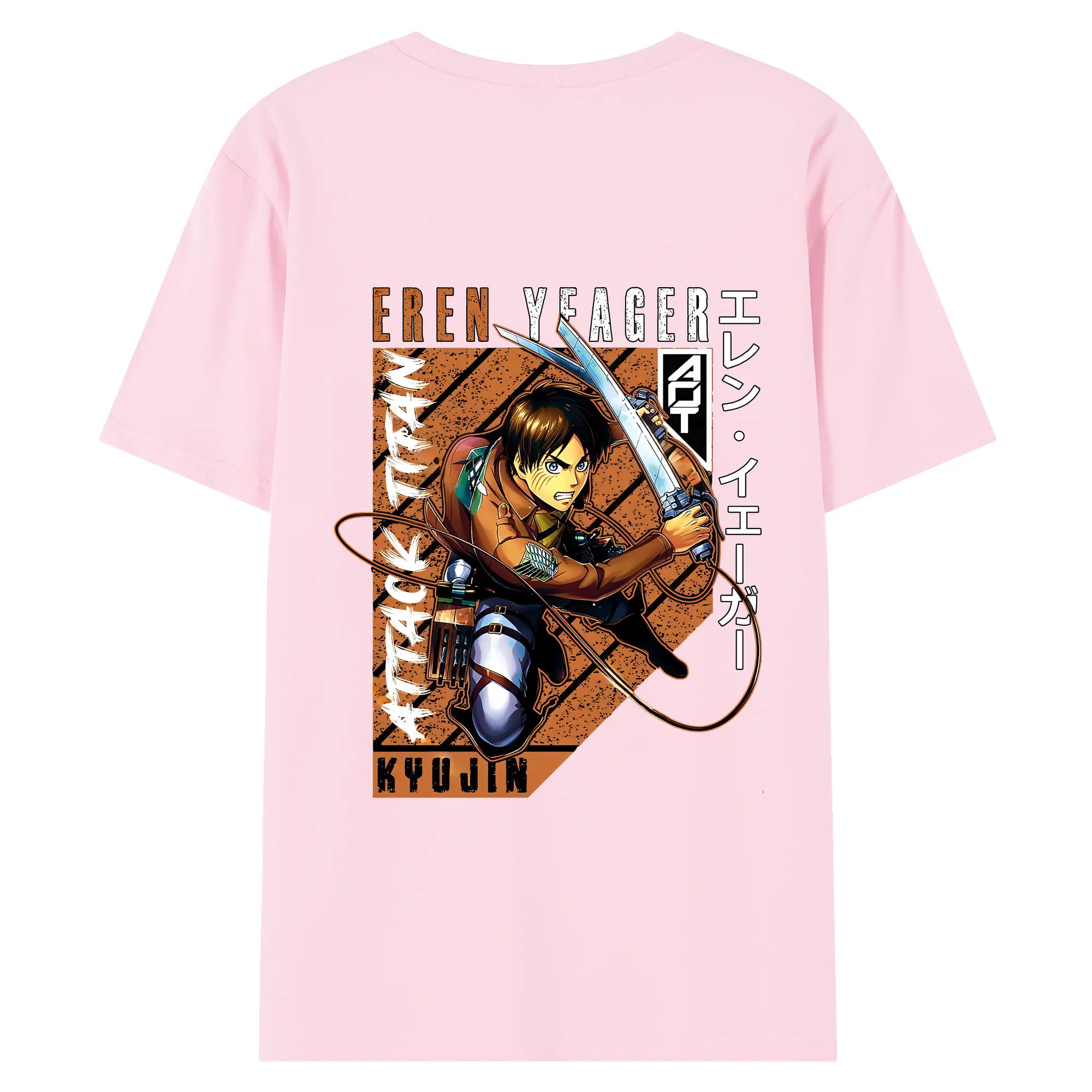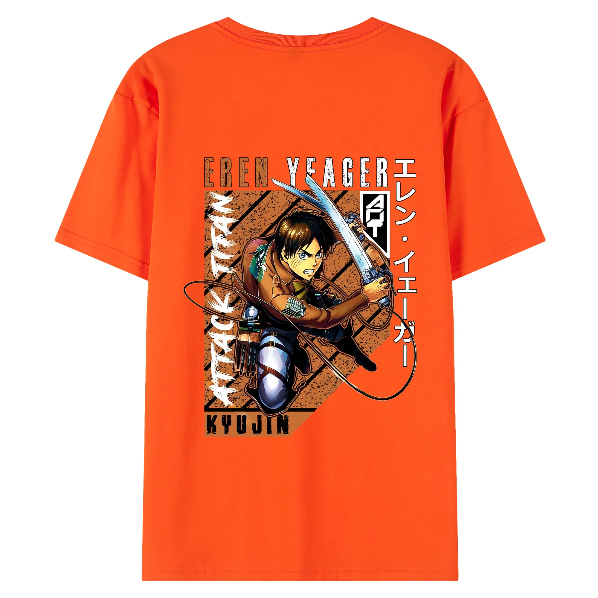 進撃の巨人 グッズ エレン・イェーガー - 綿100% 半袖Tシャツ ・ フロントプリント ・ 快適 通気性 ・ 日常使い 散歩 スポーツ用