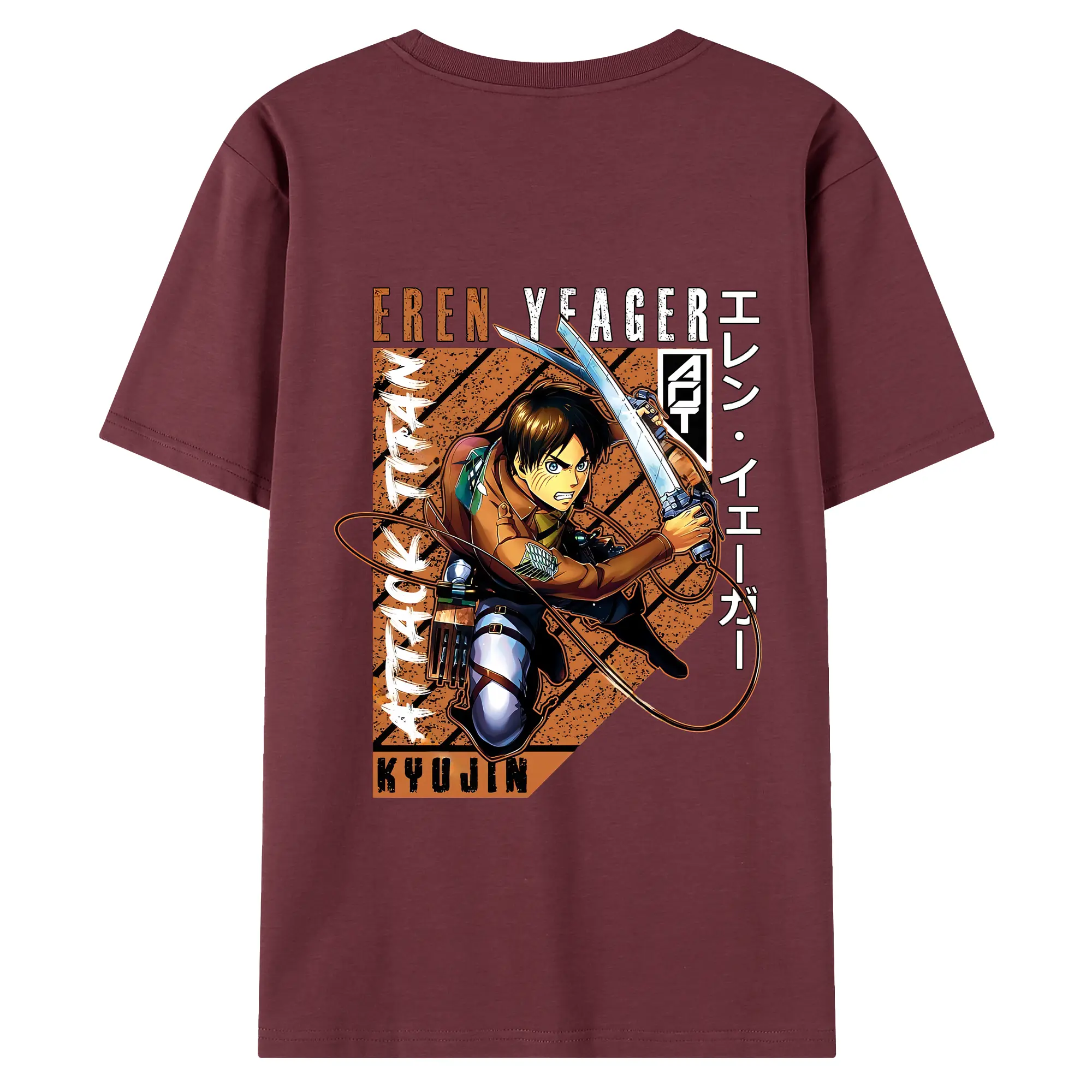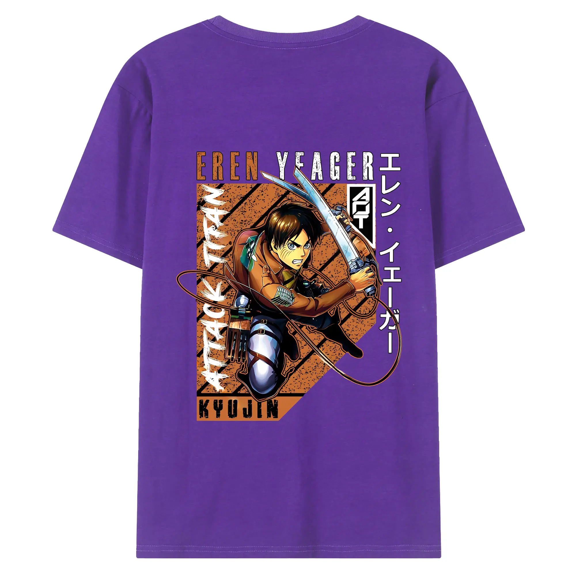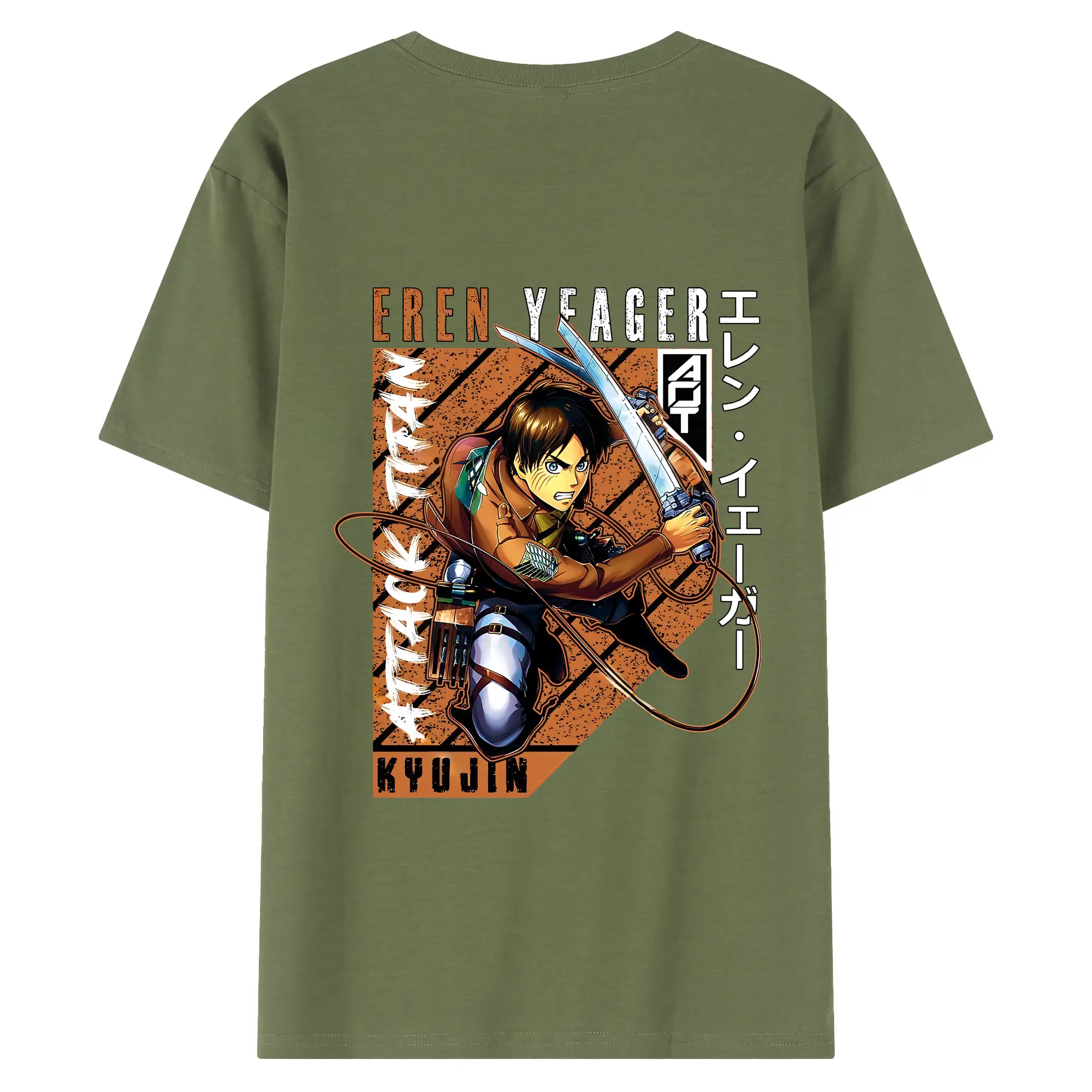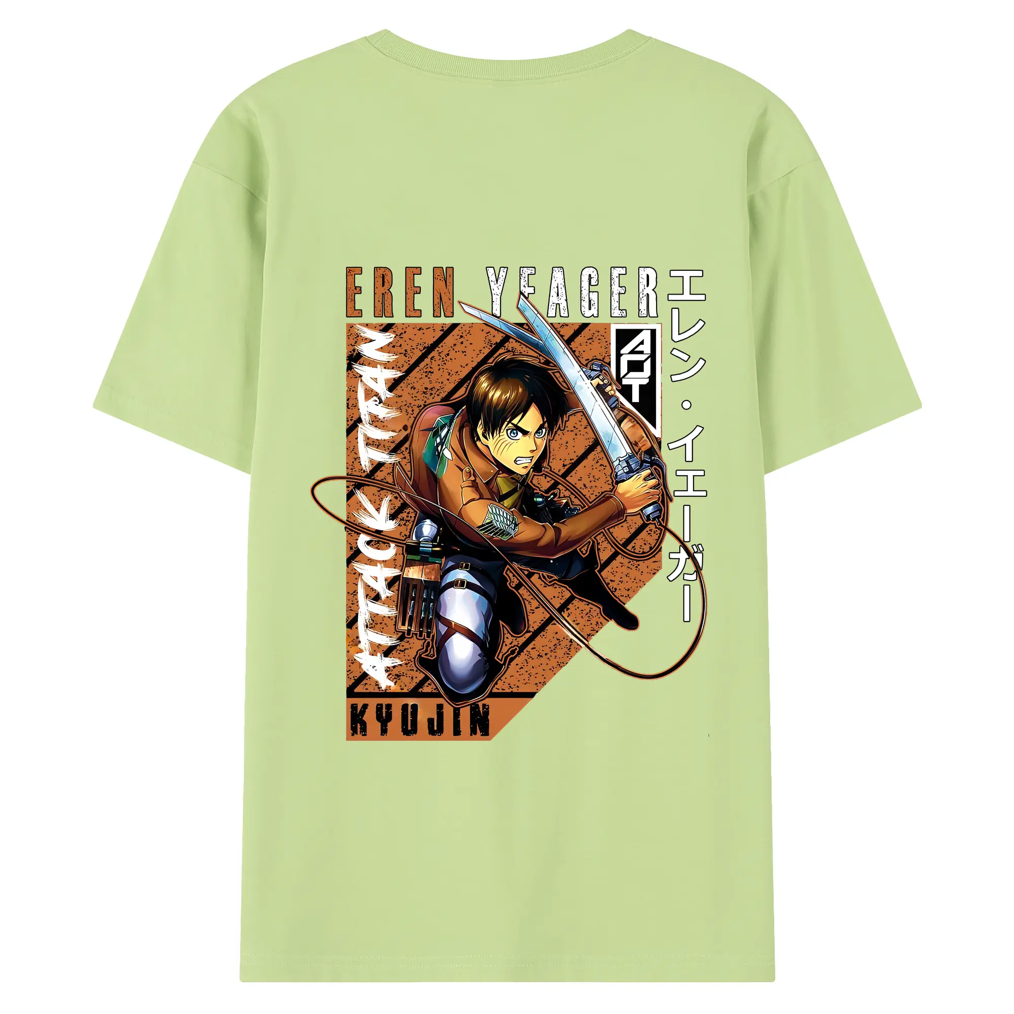 進撃の巨人 グッズ エレン・イェーガー - 綿100% 半袖Tシャツ ・ フロントプリント ・ 快適 通気性 ・ 日常使い 散歩 スポーツ用