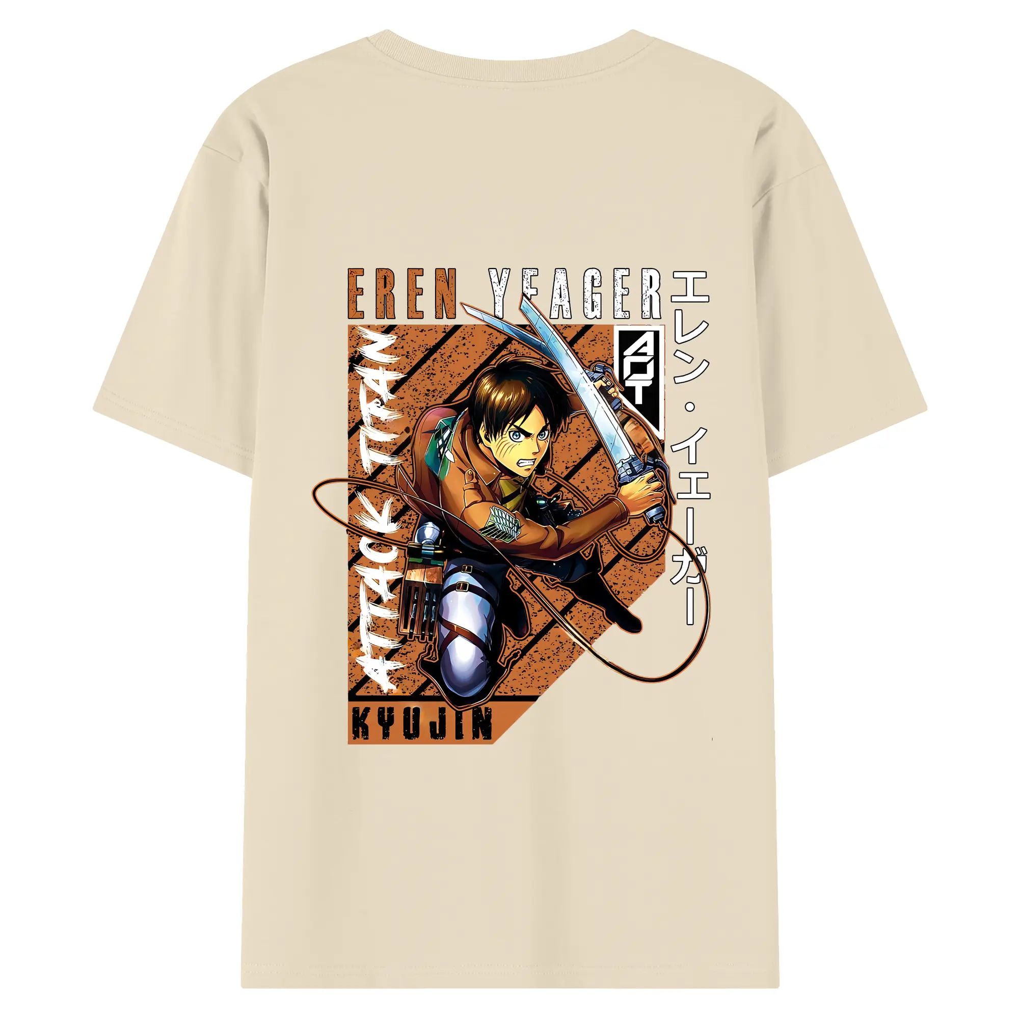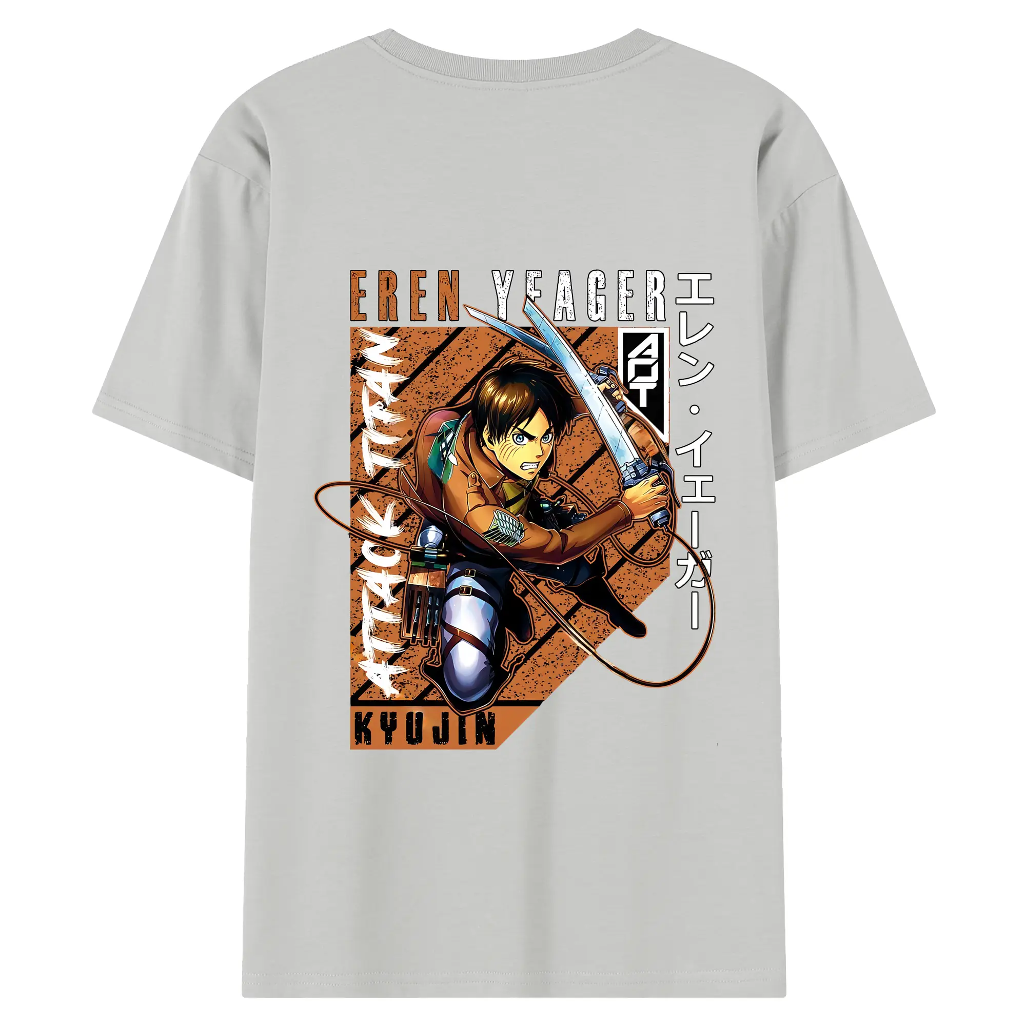 進撃の巨人 グッズ エレン・イェーガー - 綿100% ヴィンテージ風 半袖Tシャツ ・ 背面プリント ・ 柔らか肌触り ・ 通気性 快適 ・ スポーツ カジュアル 外出用