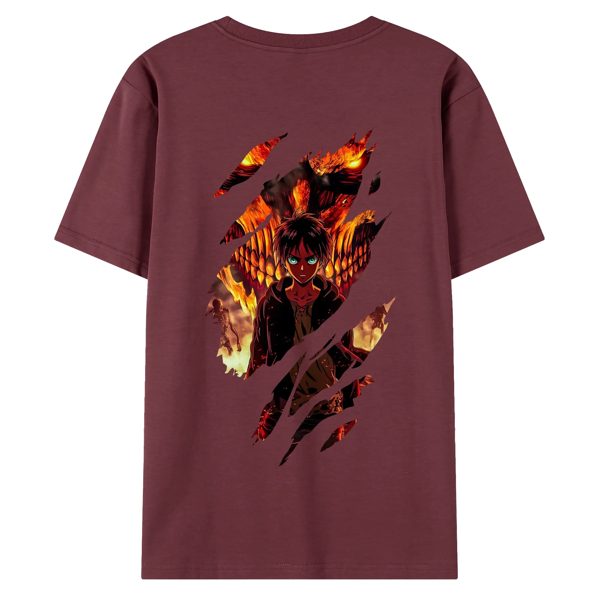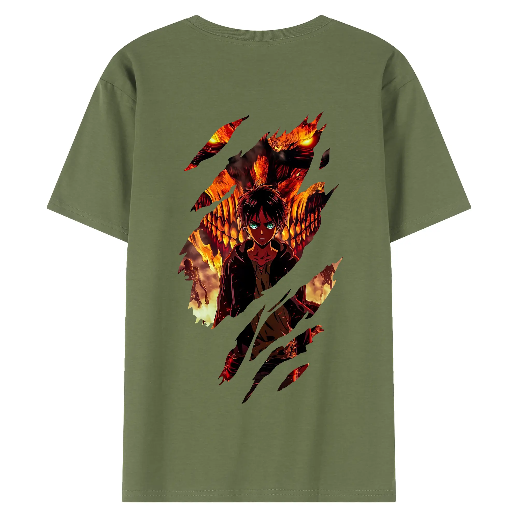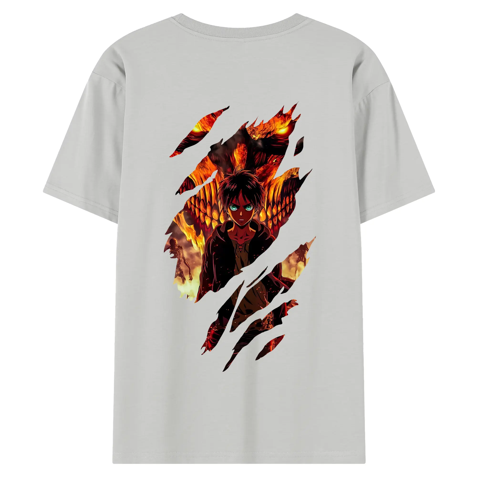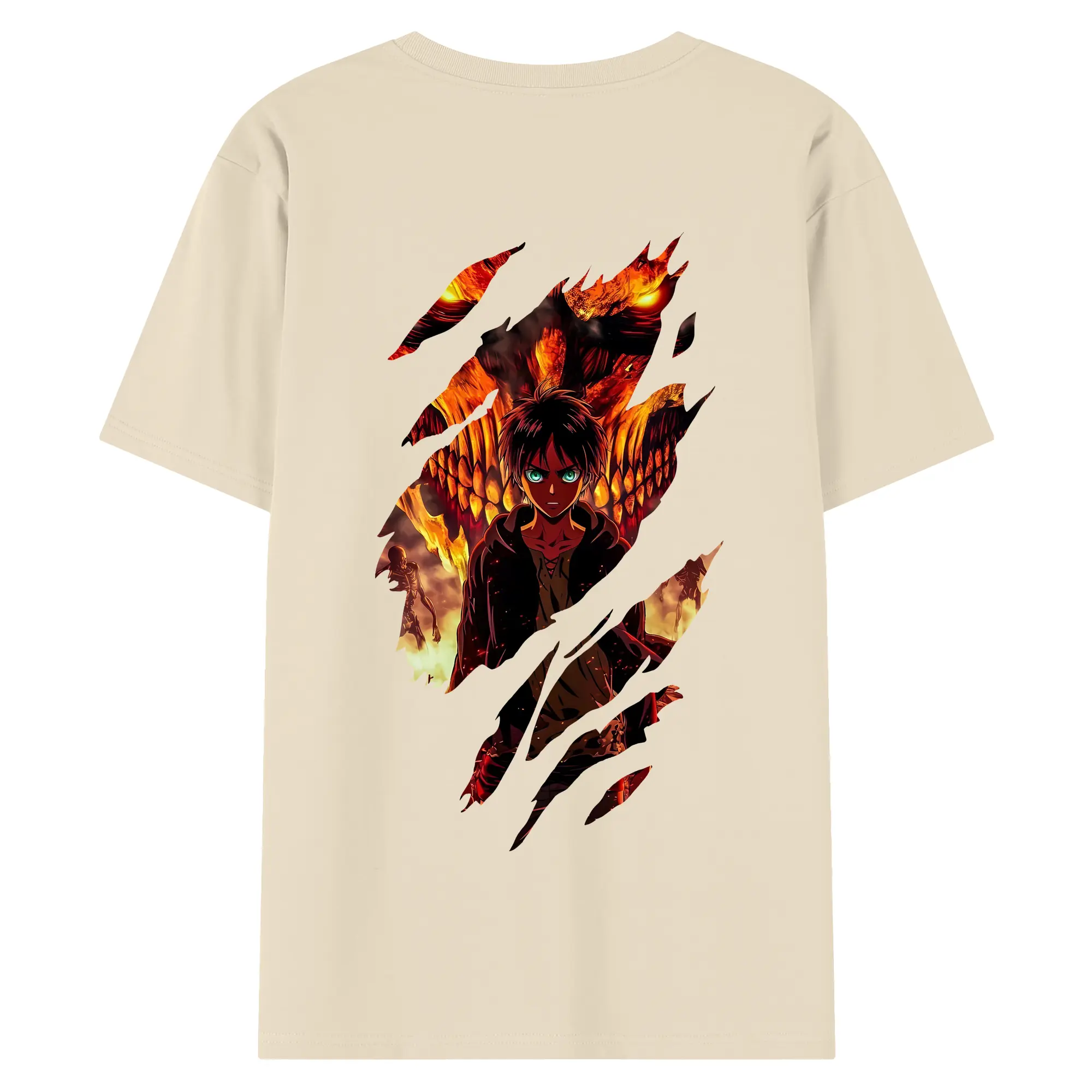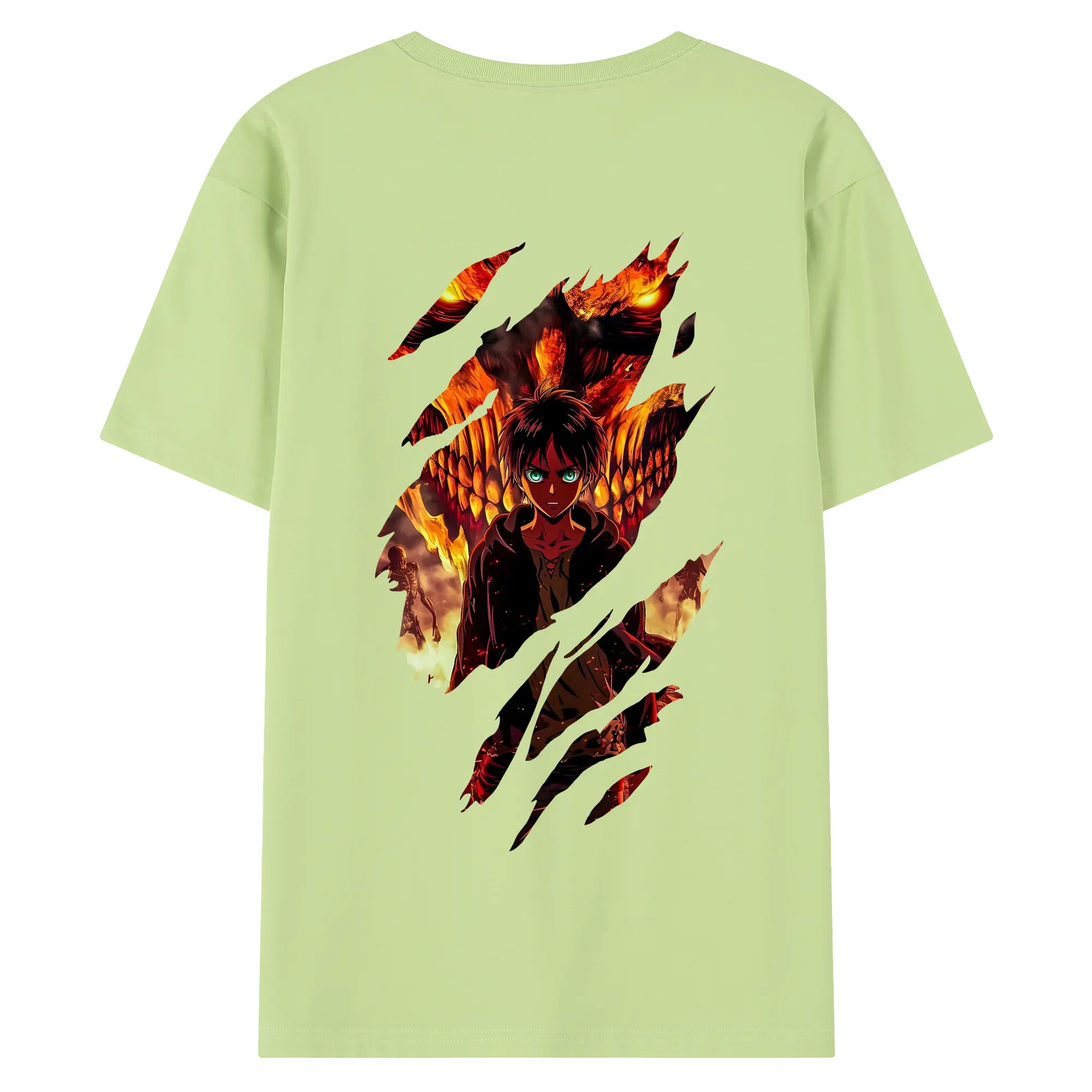 進撃の巨人 グッズ エレン・イェーガー - 綿100% ヴィンテージ風 半袖Tシャツ ・ 背面プリント ・ 柔らか肌触り ・ 通気性 快適 ・ スポーツ カジュアル 外出用