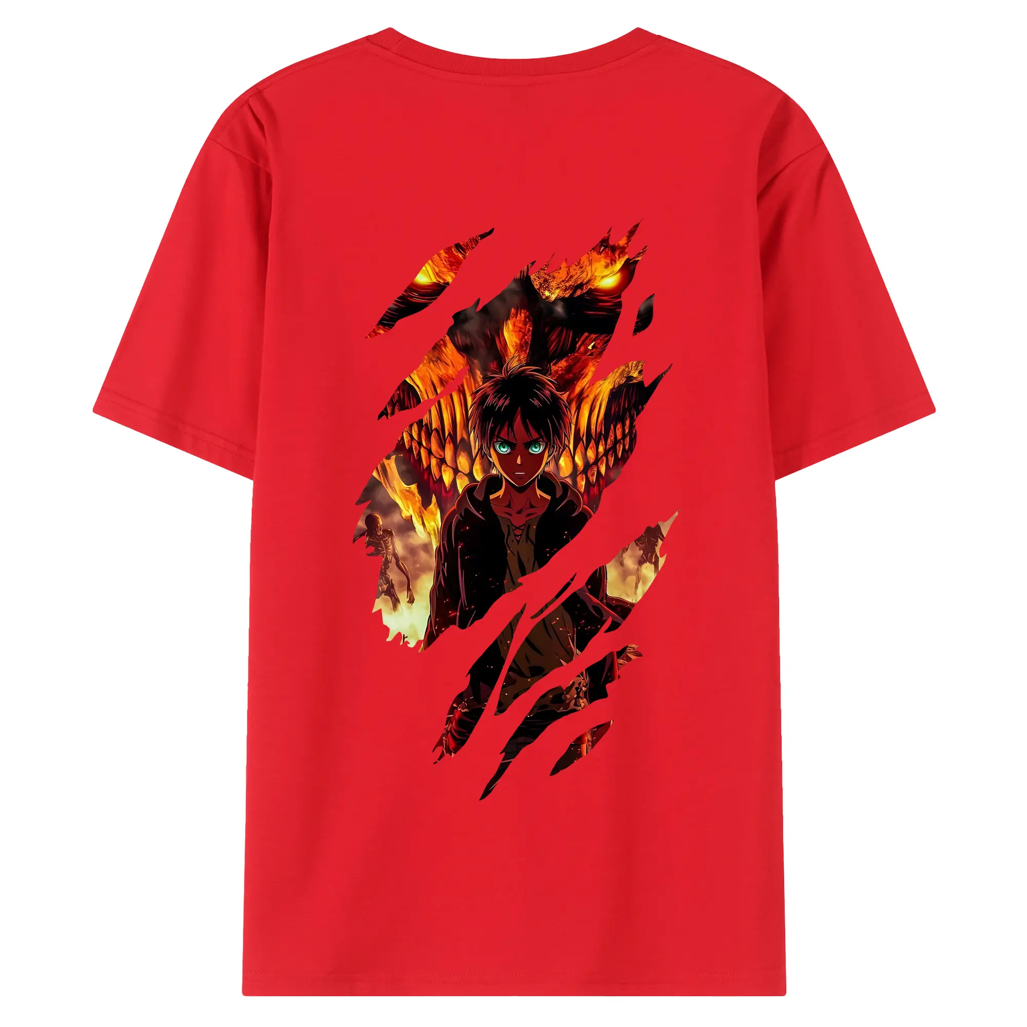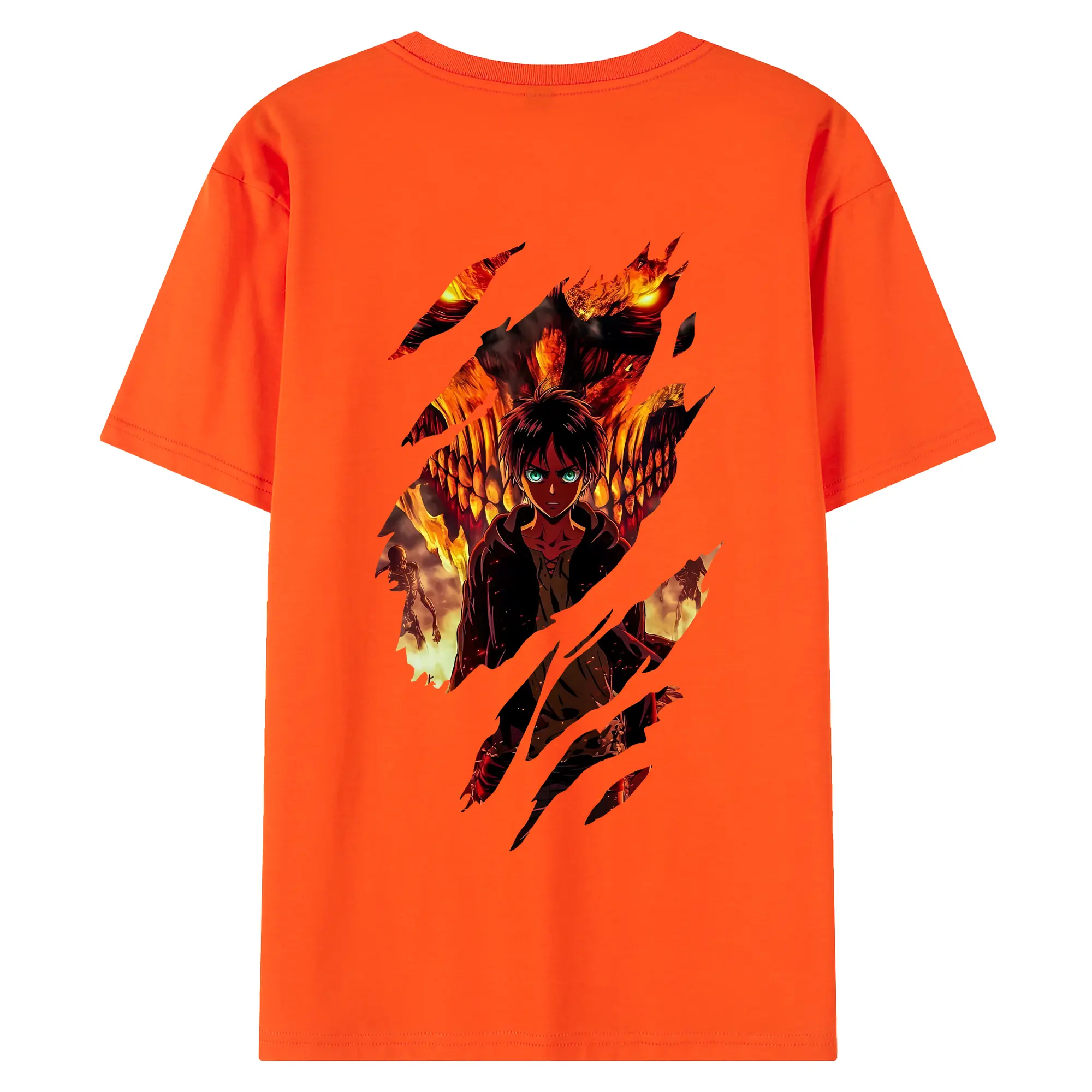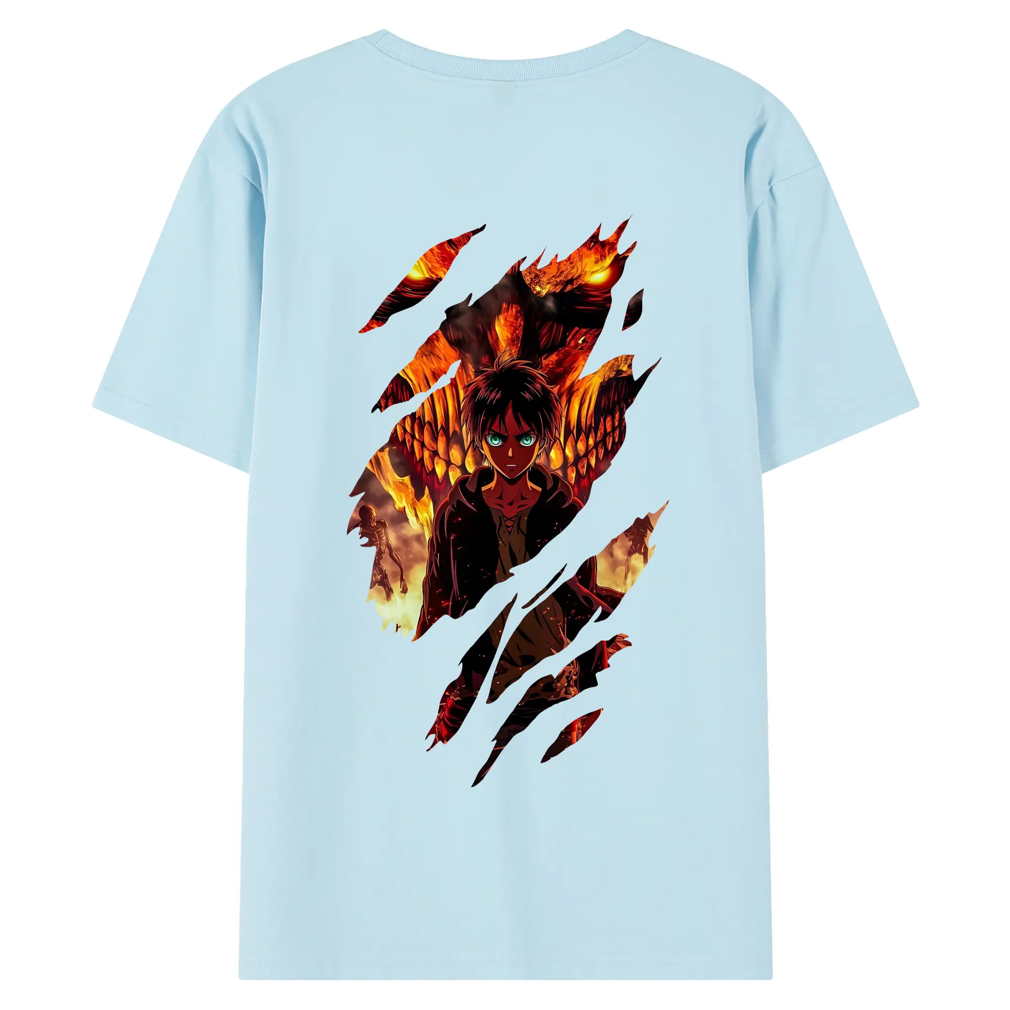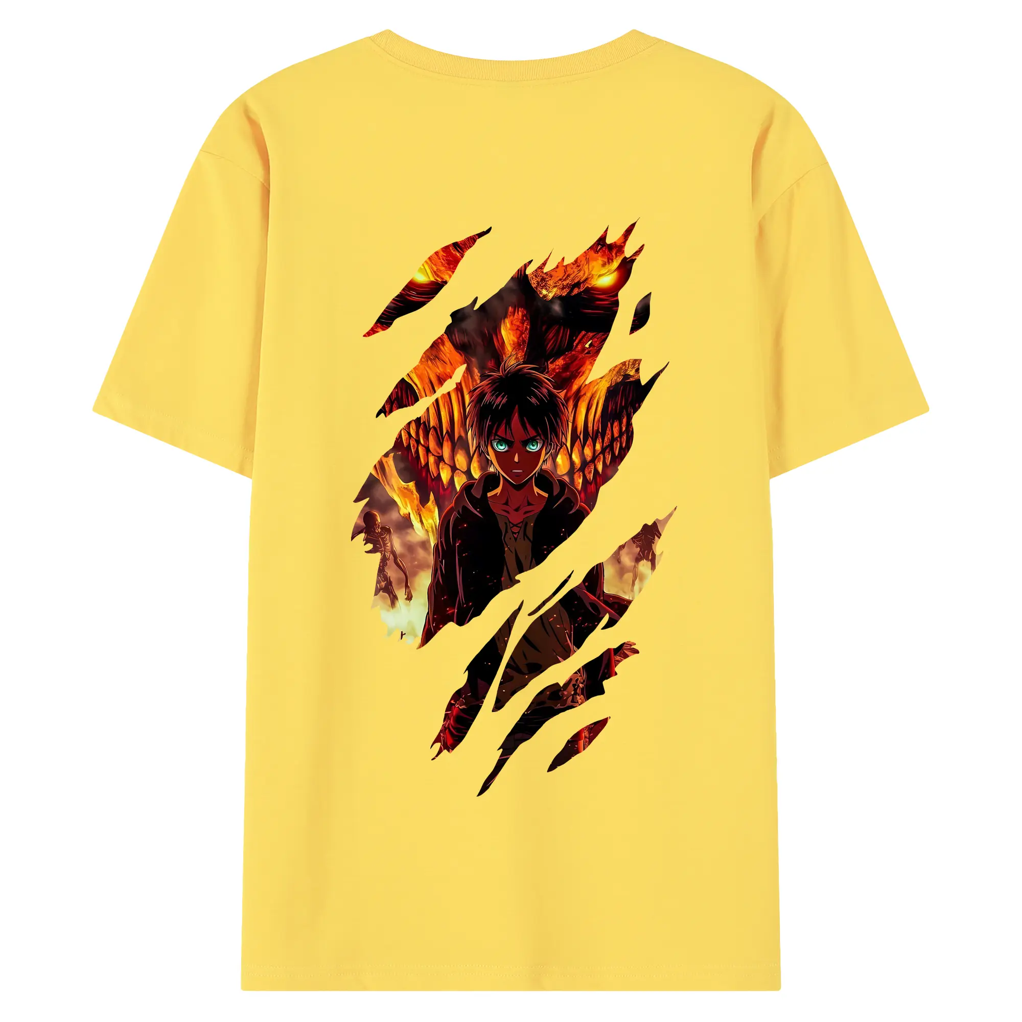 進撃の巨人 グッズ エレン・イェーガー - 綿100% 半袖Tシャツ ・ フロントプリント ・ 快適 通気性 ・ 日常使い 散歩 スポーツ用