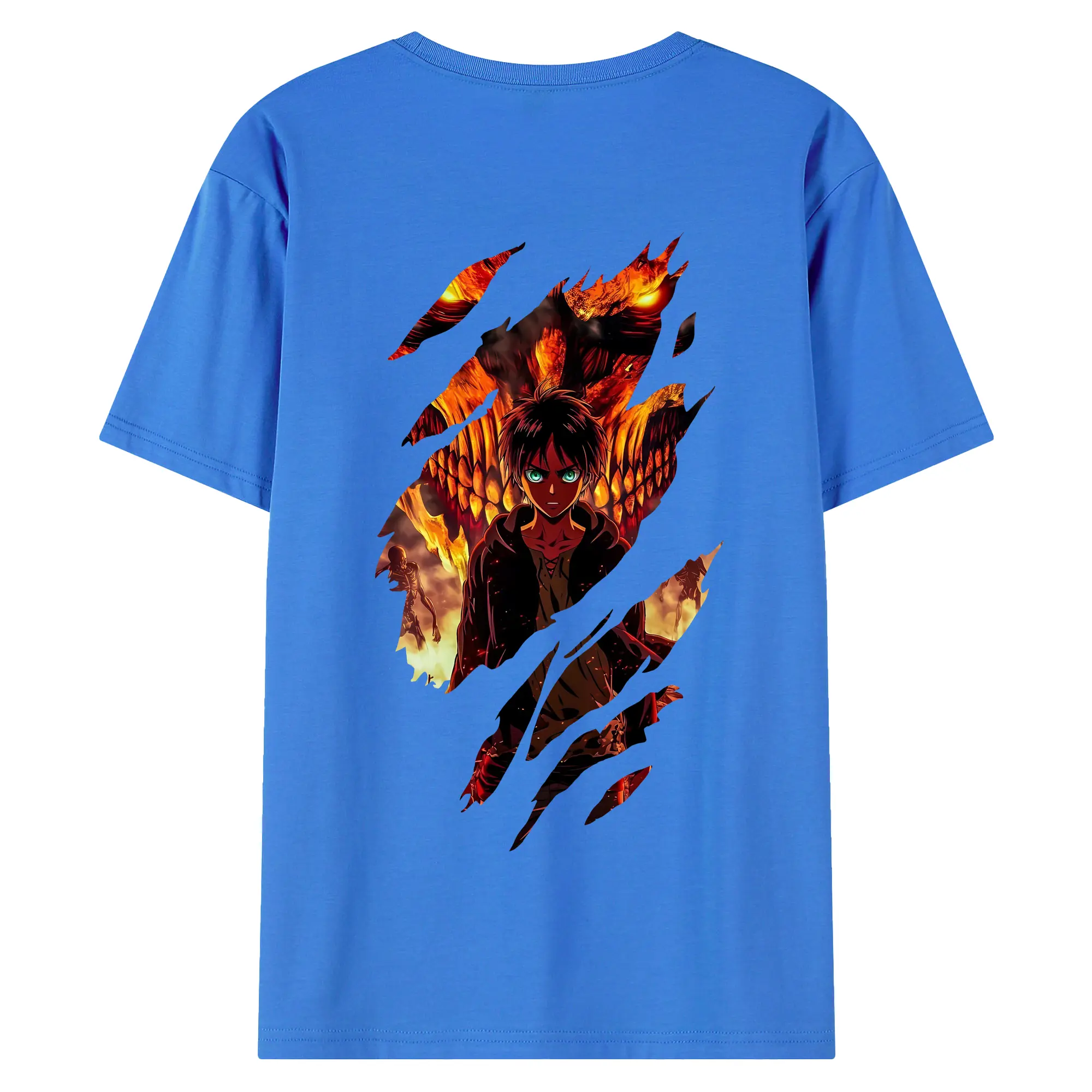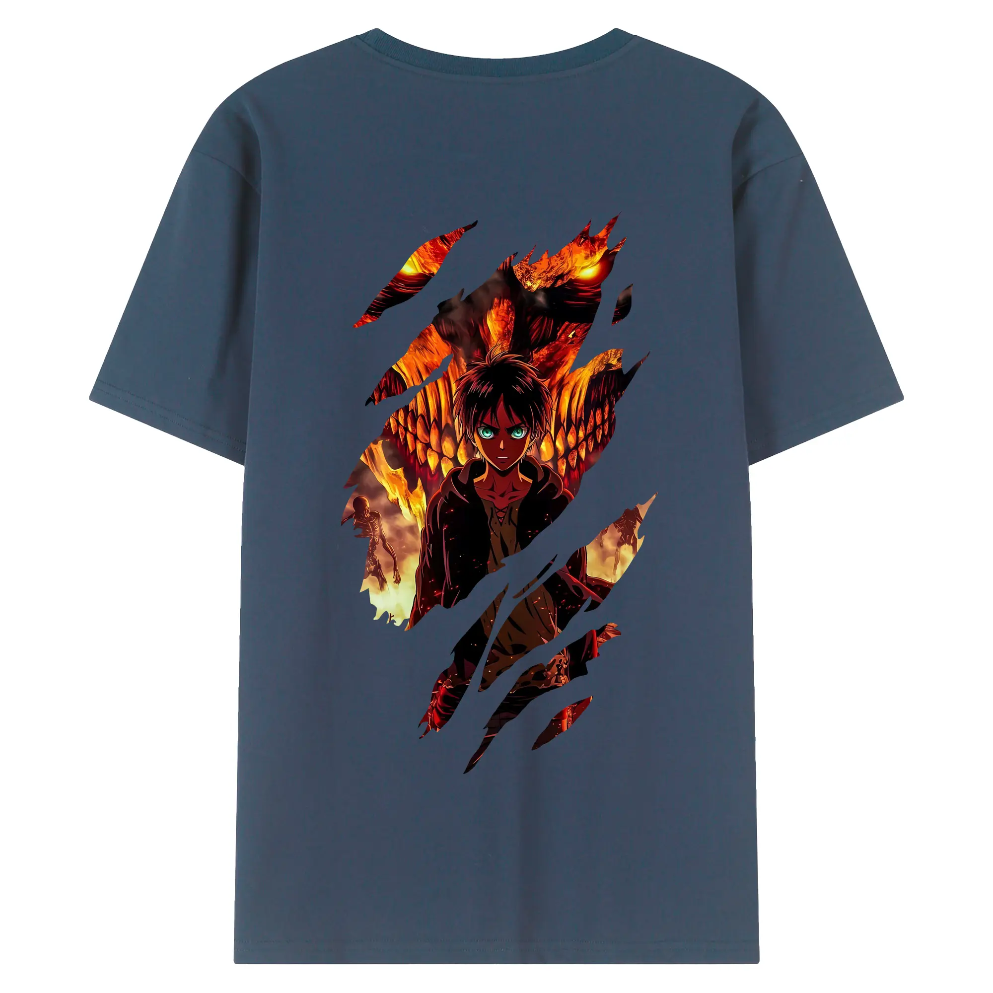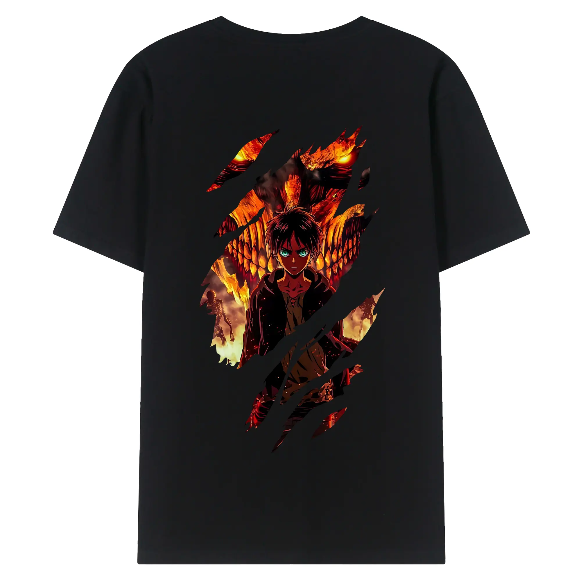 進撃の巨人 グッズ エレン・イェーガー - 綿100% 半袖Tシャツ ・ フロントプリント ・ 快適 通気性 ・ 日常使い 散歩 スポーツ用