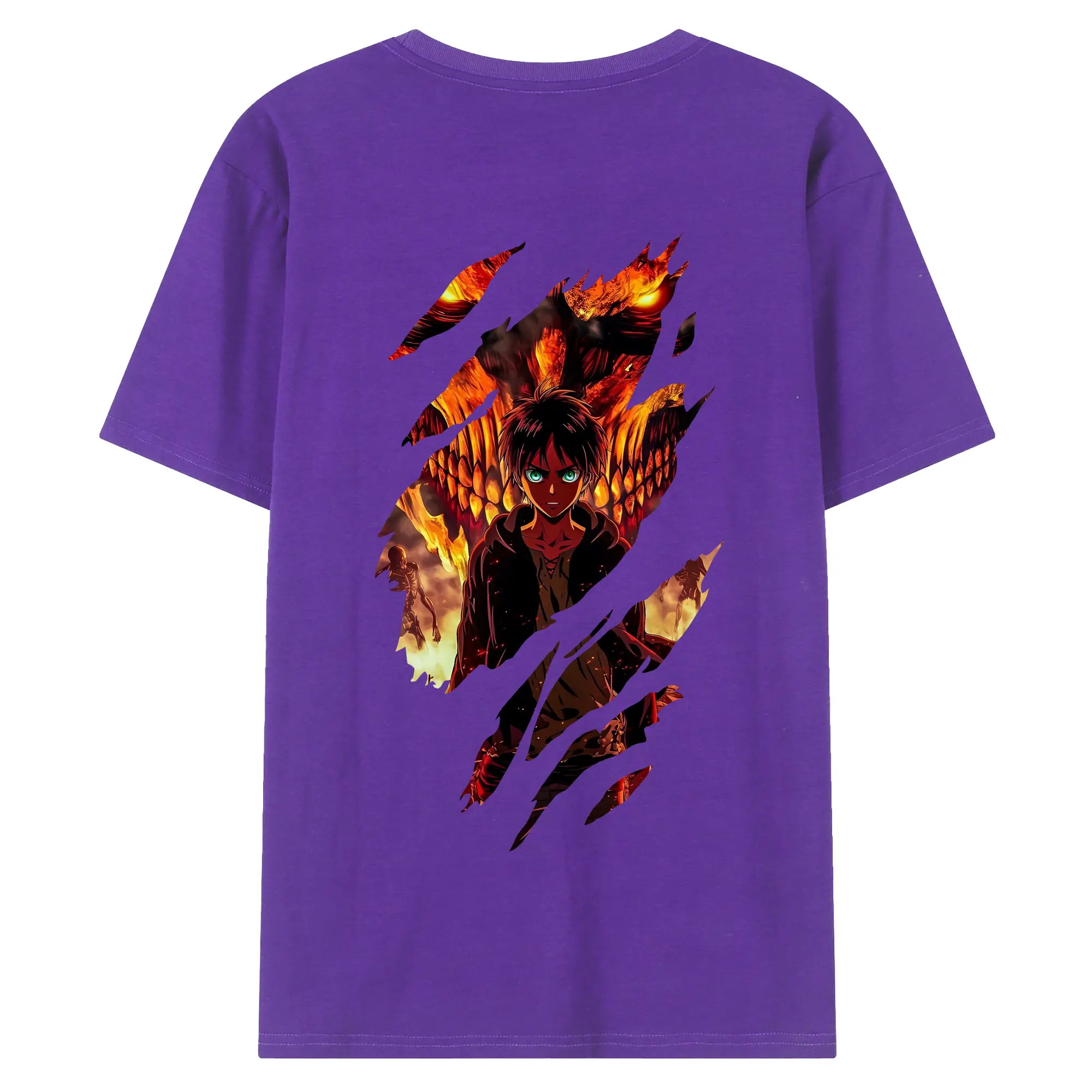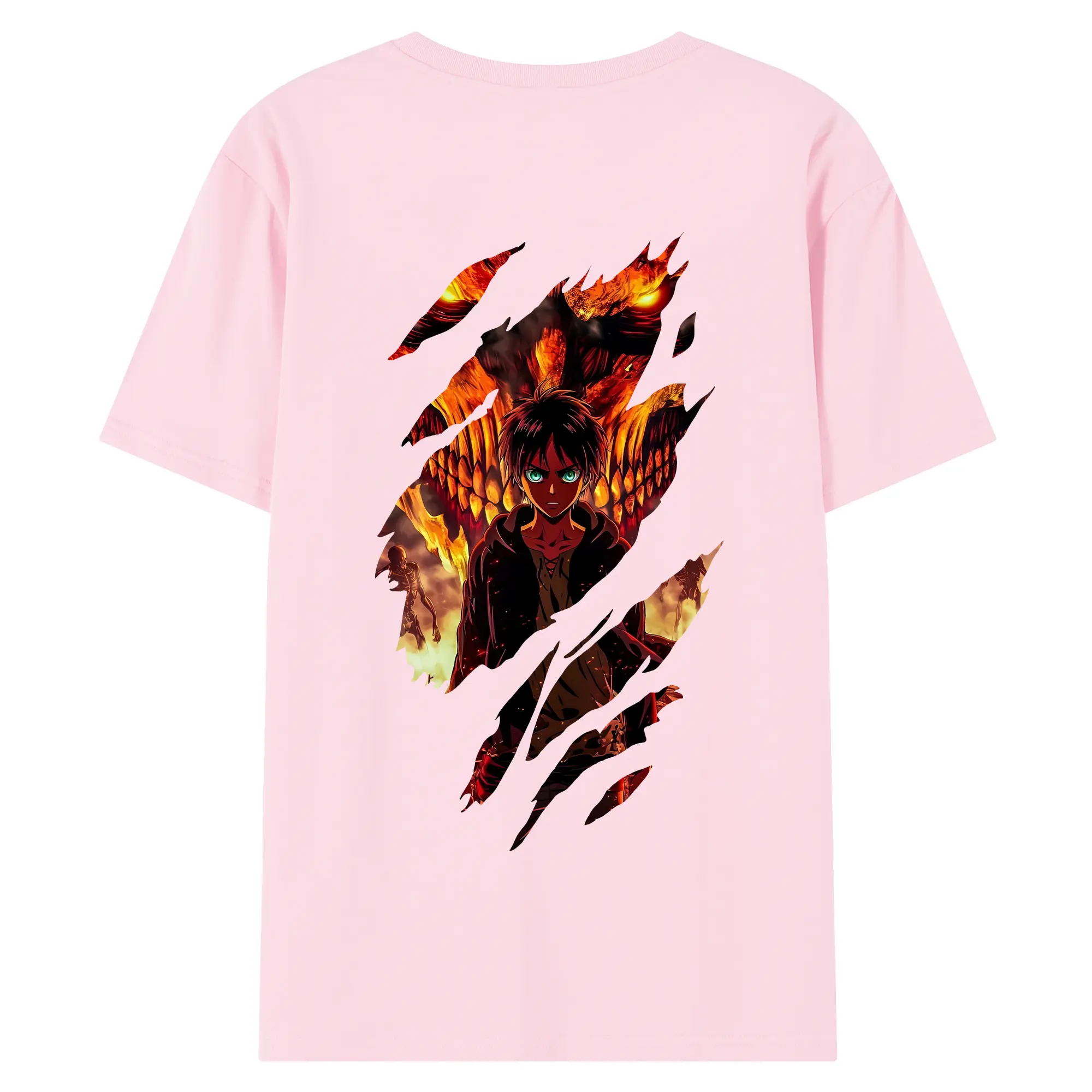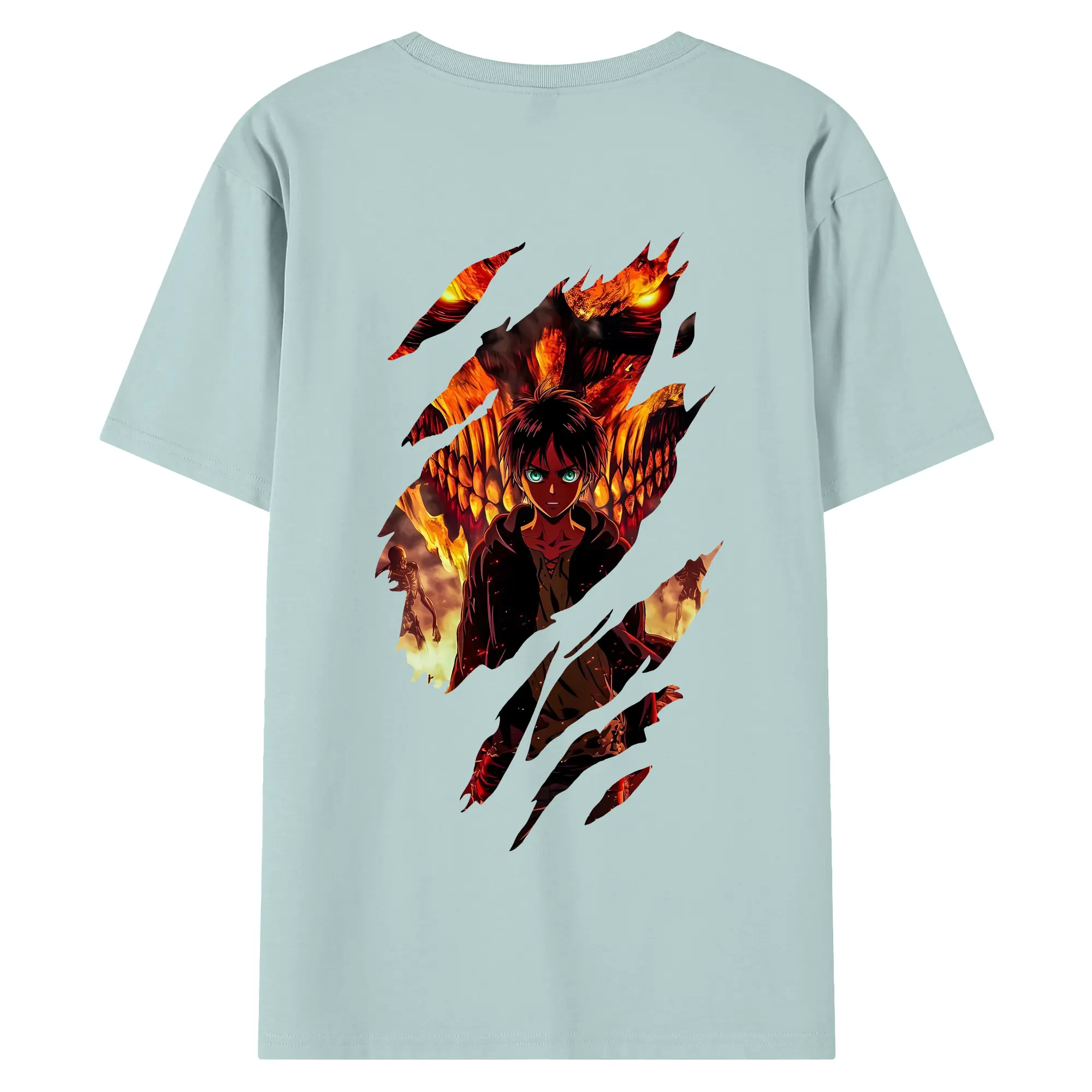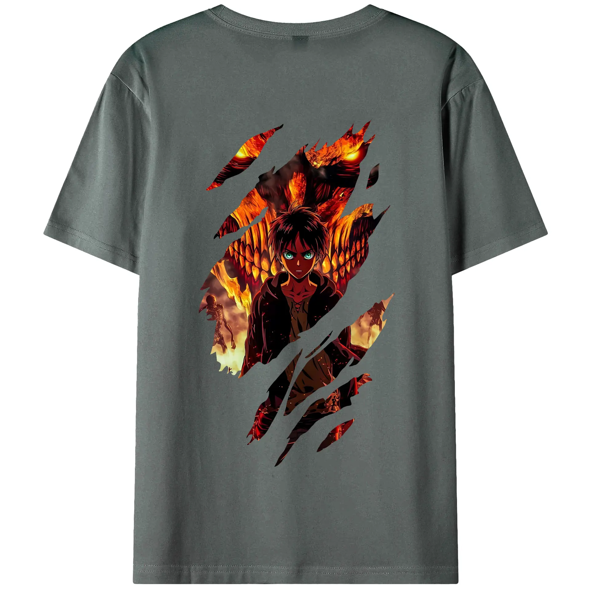 進撃の巨人 グッズ エレン・イェーガー - 綿100% 半袖Tシャツ ・ フロントプリント ・ 快適 通気性 ・ 日常使い 散歩 スポーツ用