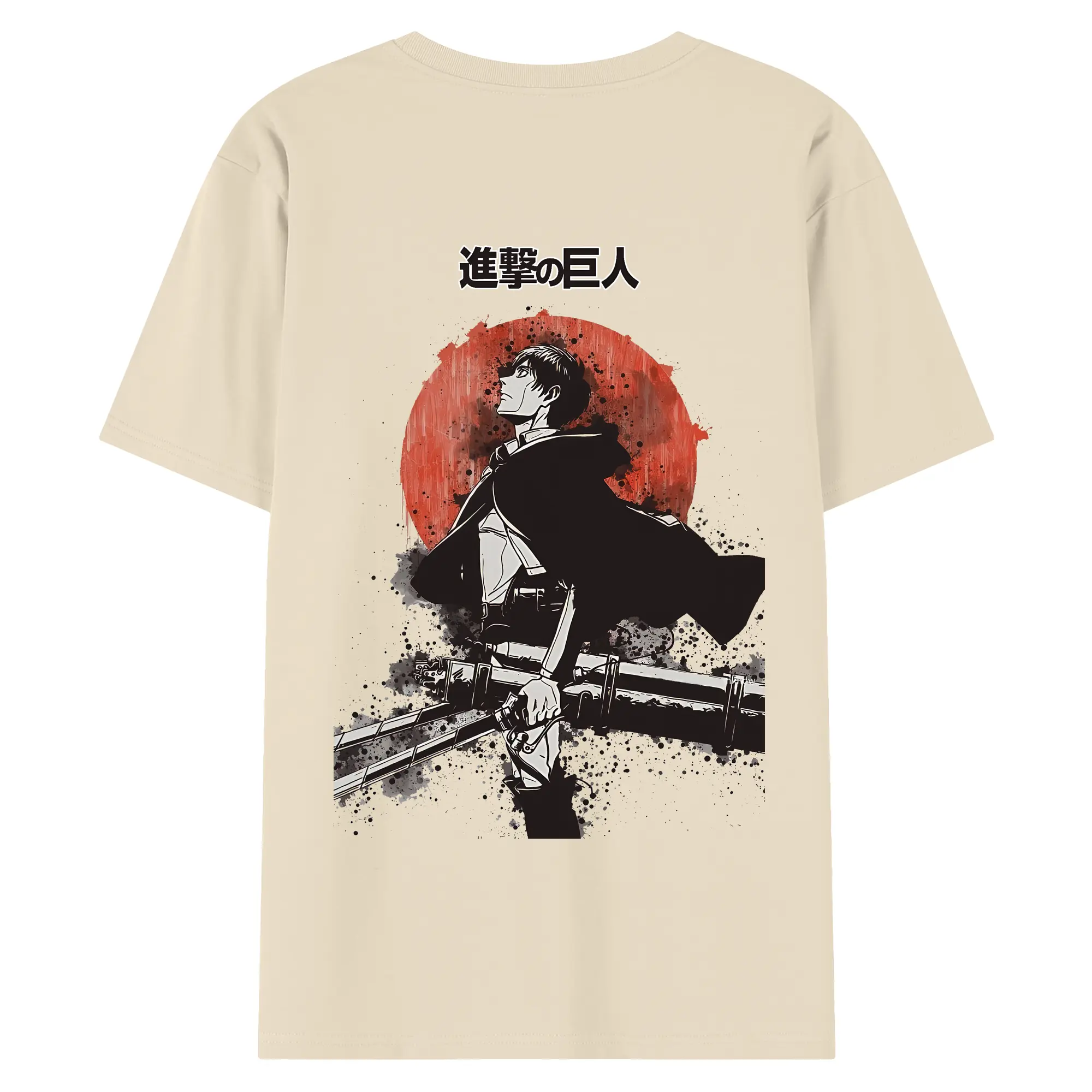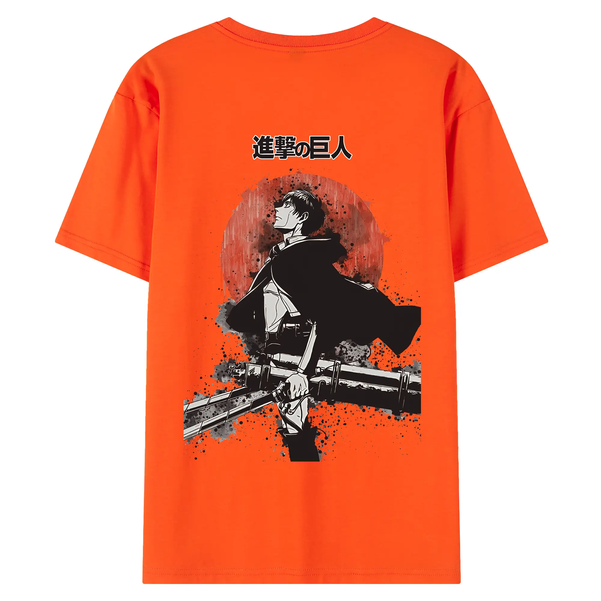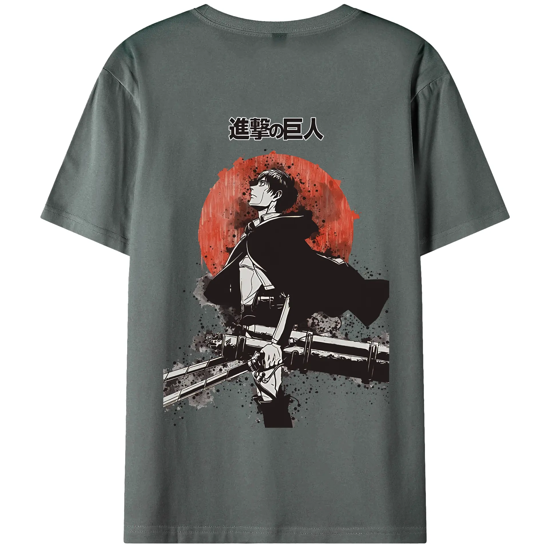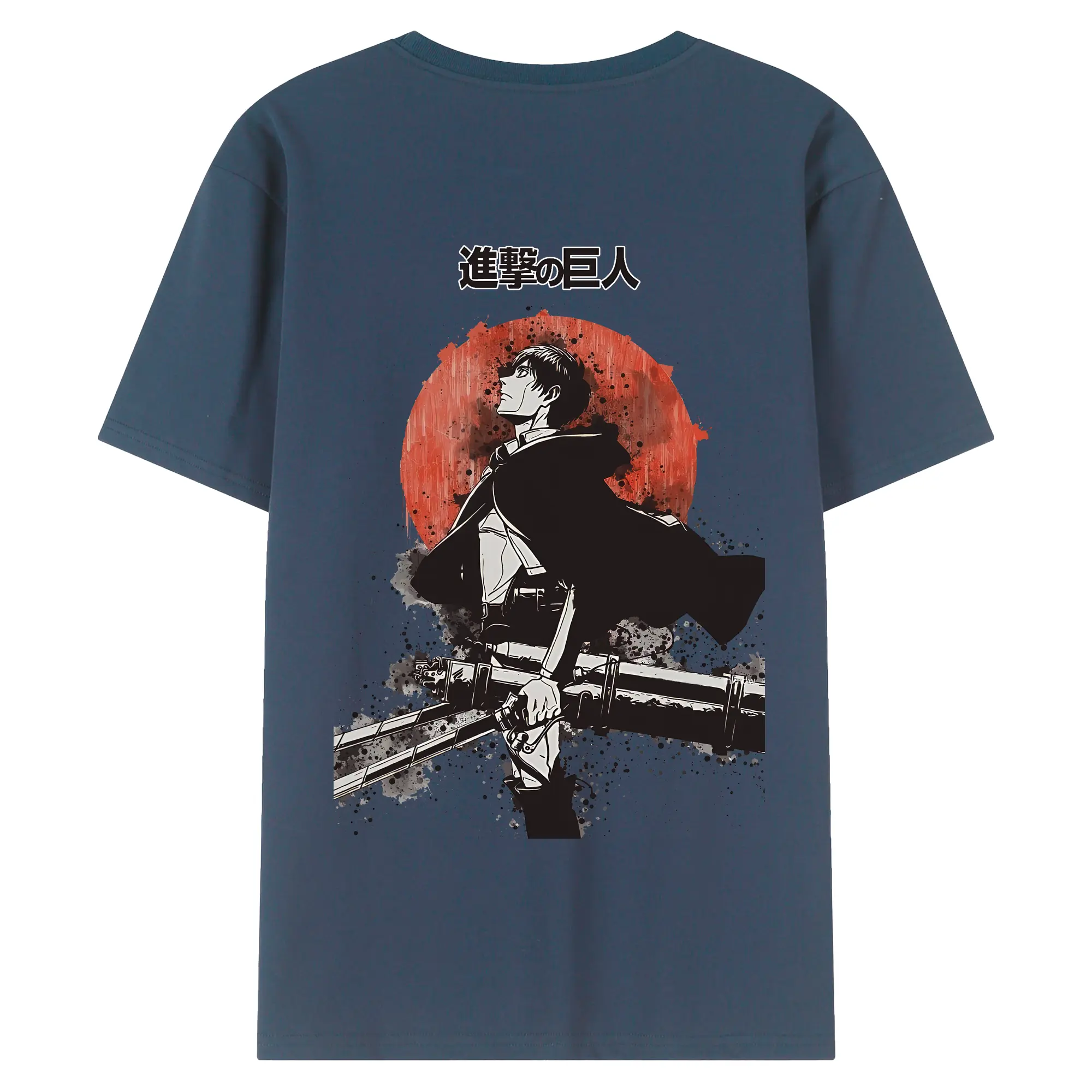 進撃の巨人 グッズ エレン・イェーガー - 綿100% ヴィンテージ風 半袖Tシャツ ・ 背面プリント ・ 柔らか肌触り ・ 通気性 快適 ・ スポーツ カジュアル 外出用