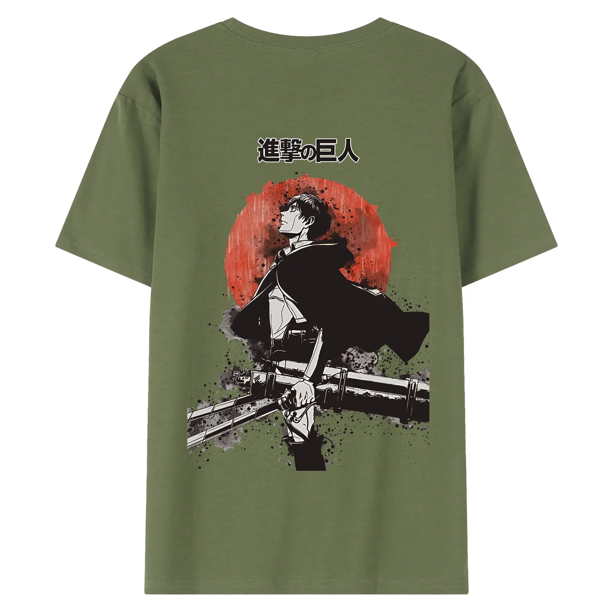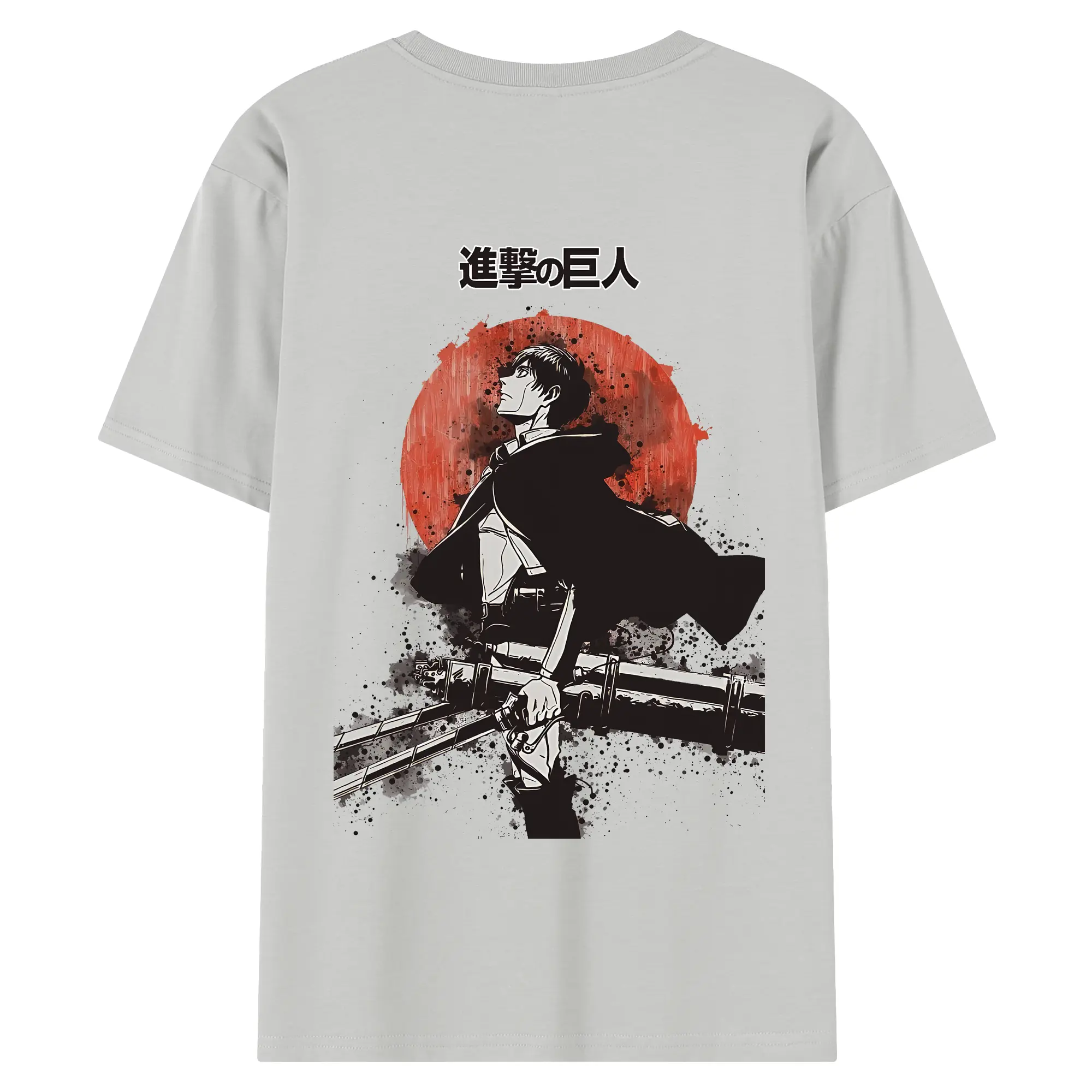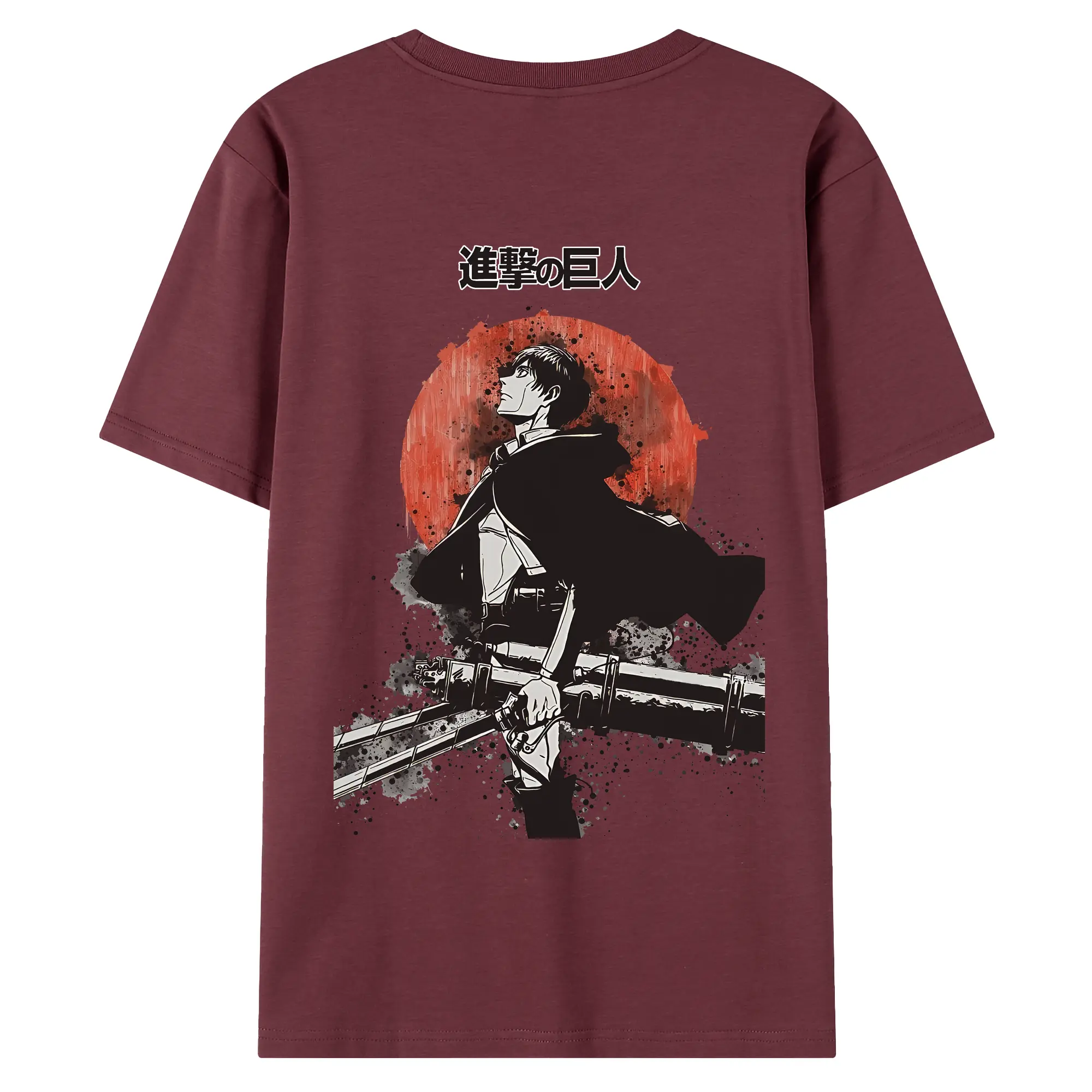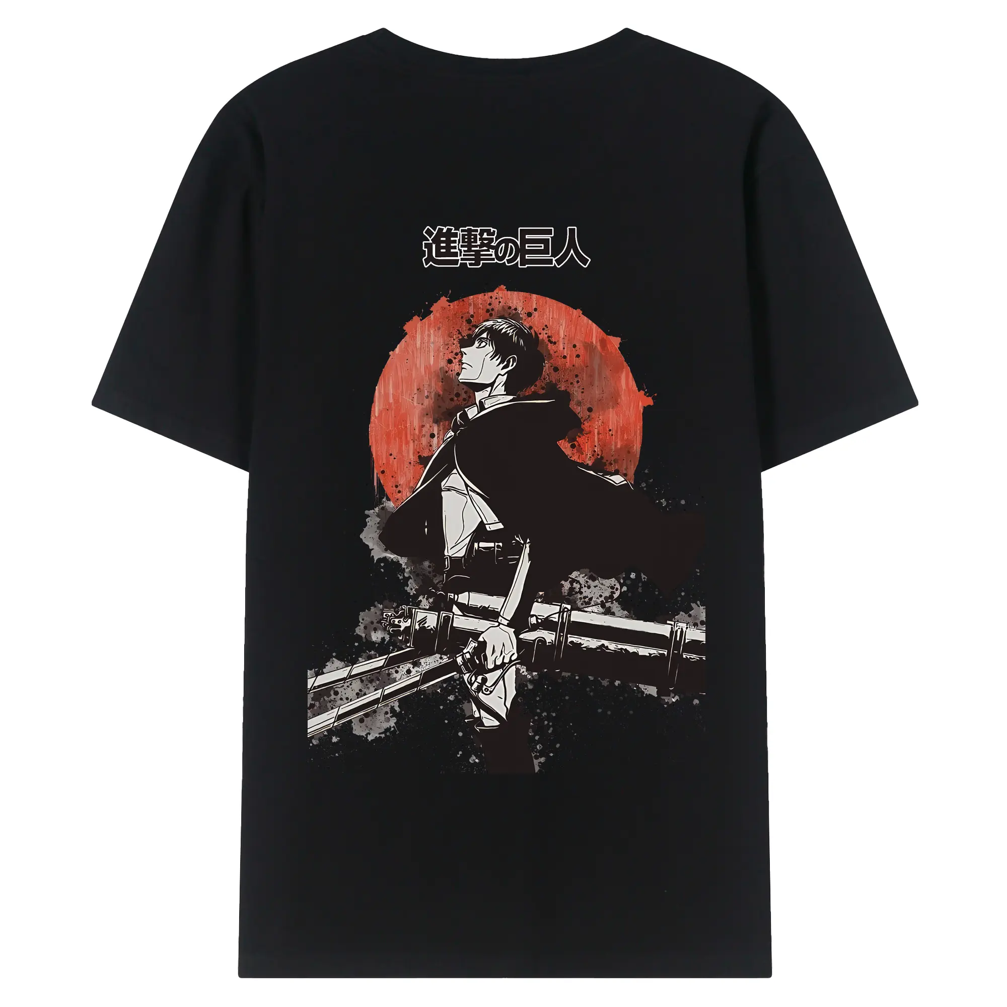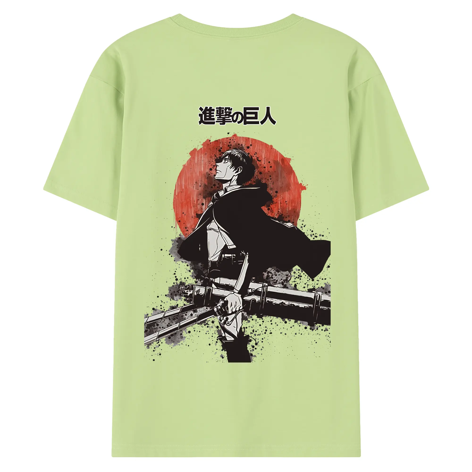進撃の巨人 グッズ エレン・イェーガー - 綿100% ヴィンテージ風 半袖Tシャツ ・ 背面プリント ・ 柔らか肌触り ・ 通気性 快適 ・ スポーツ カジュアル 外出用