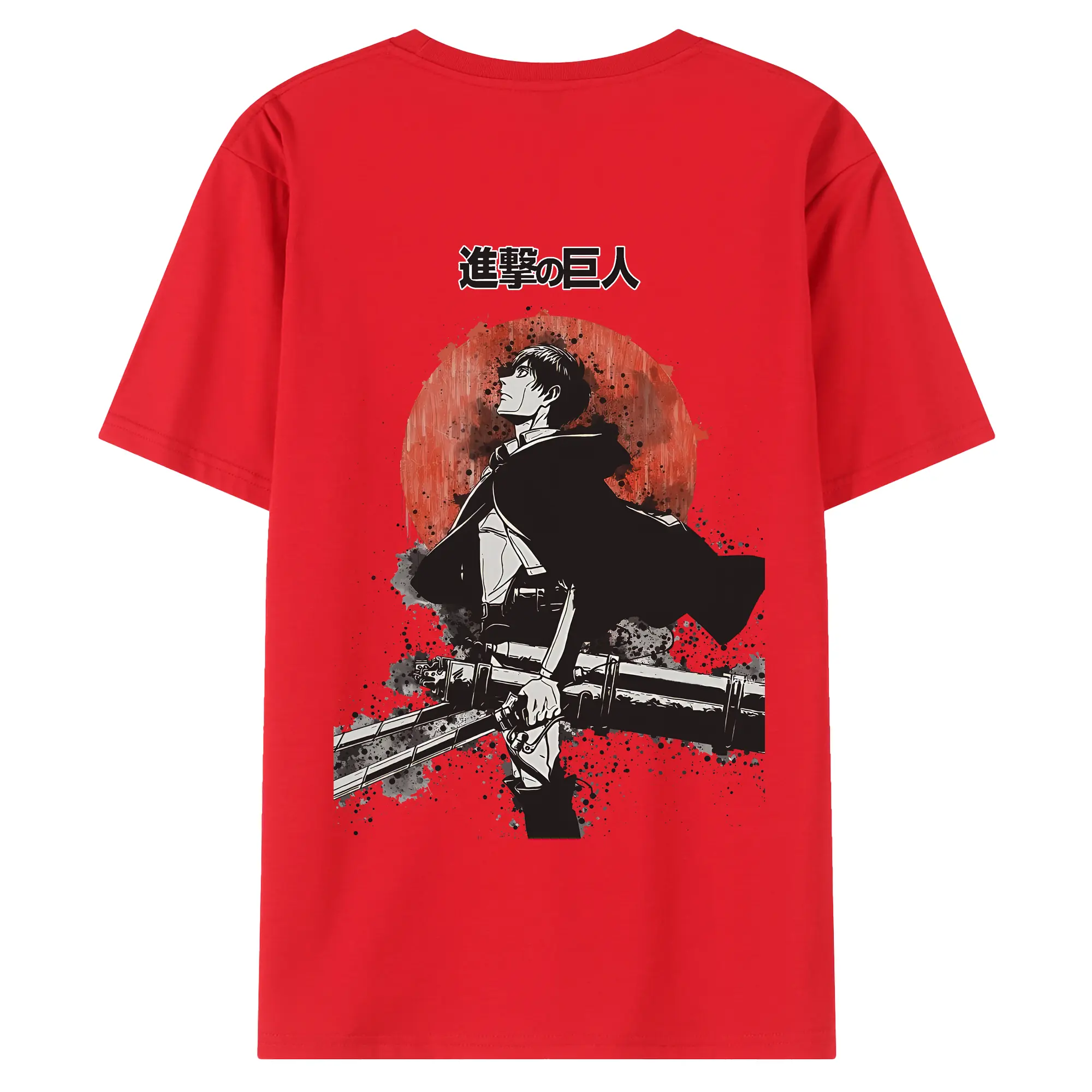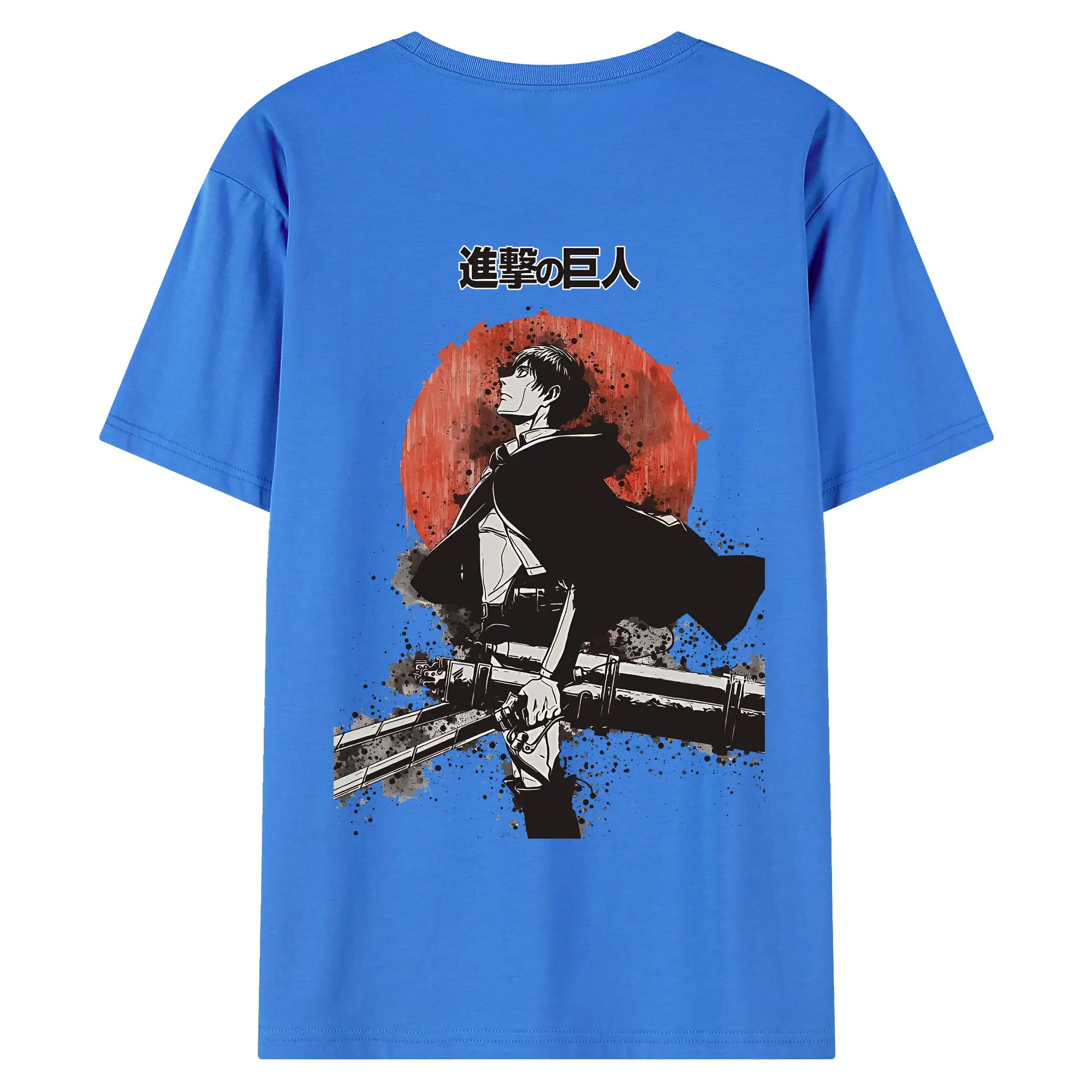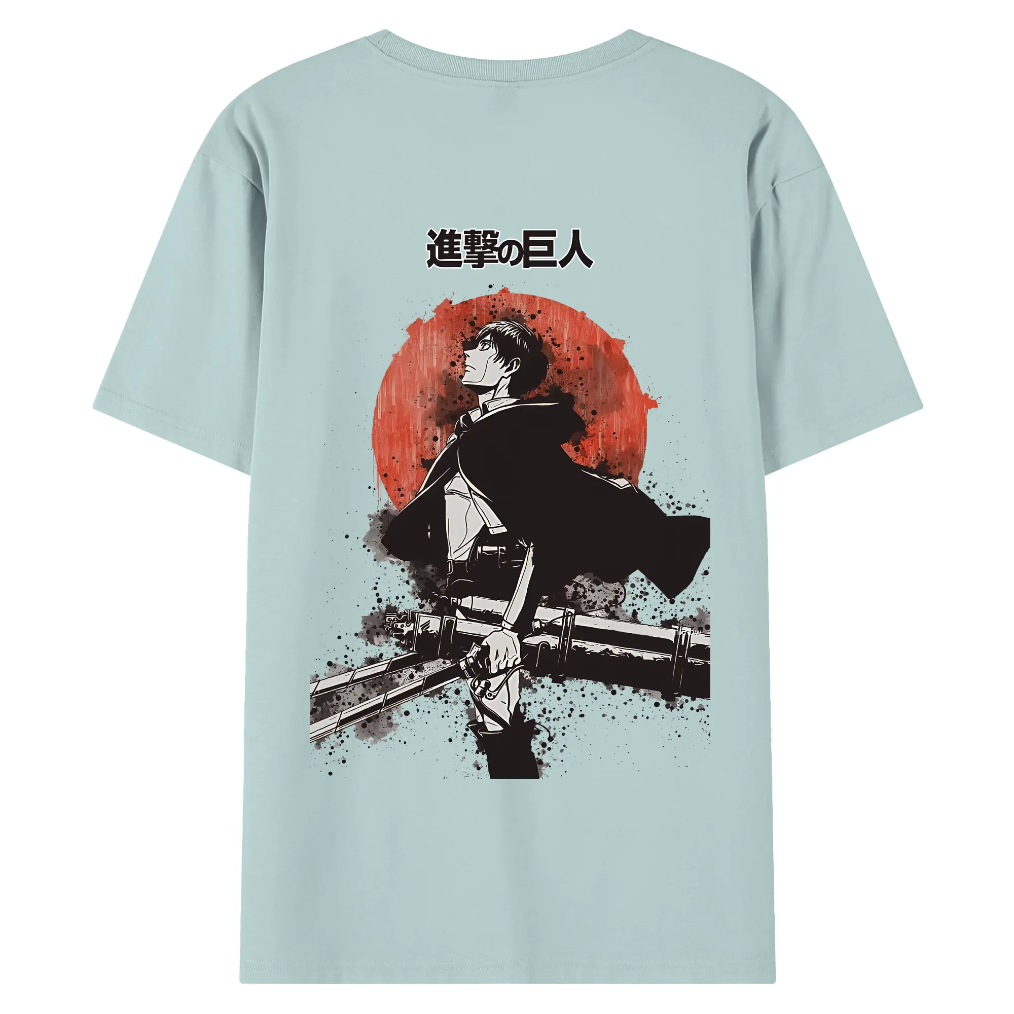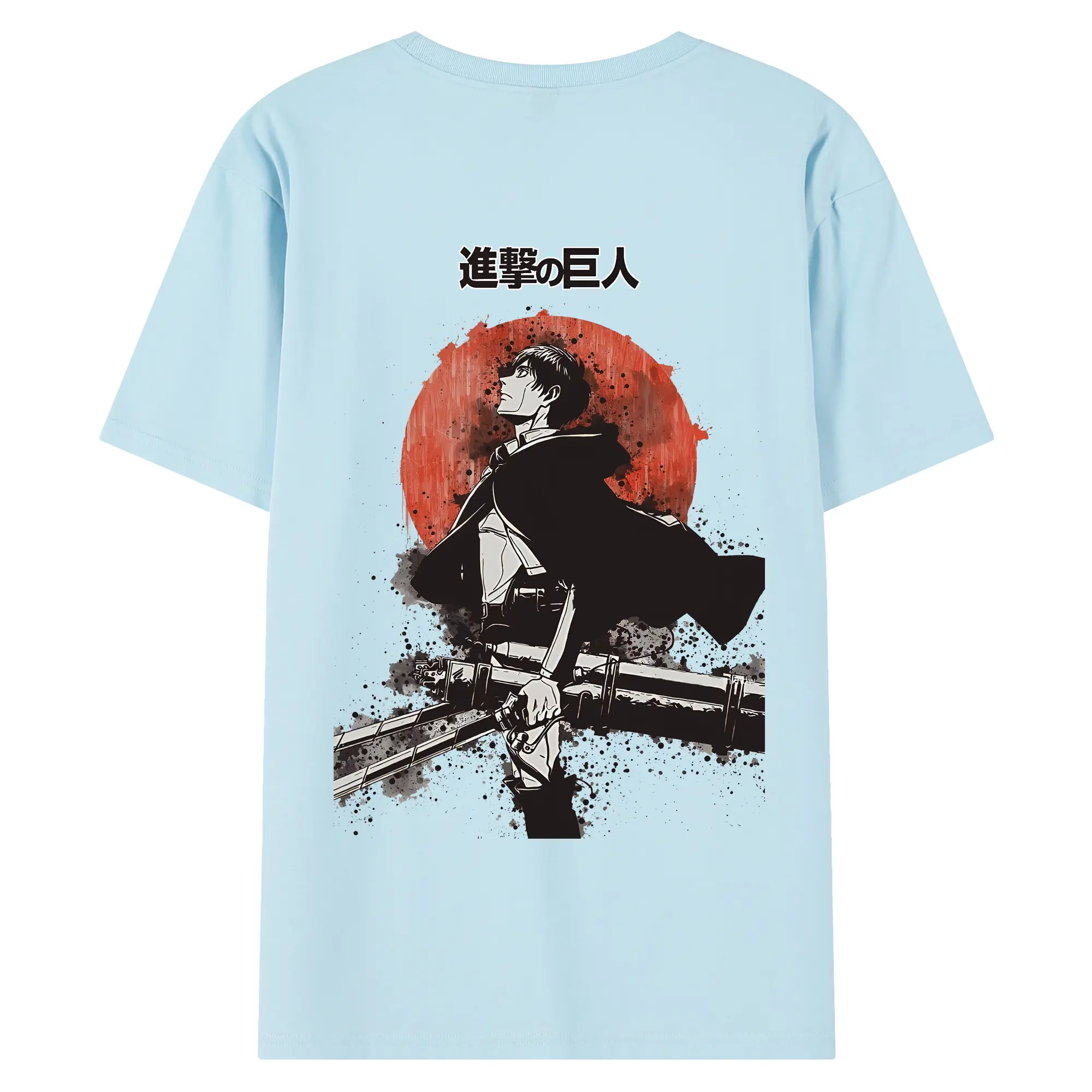 進撃の巨人 グッズ エレン・イェーガー - 綿100% 半袖Tシャツ ・ フロントプリント ・ 快適 通気性 ・ 日常使い 散歩 スポーツ用