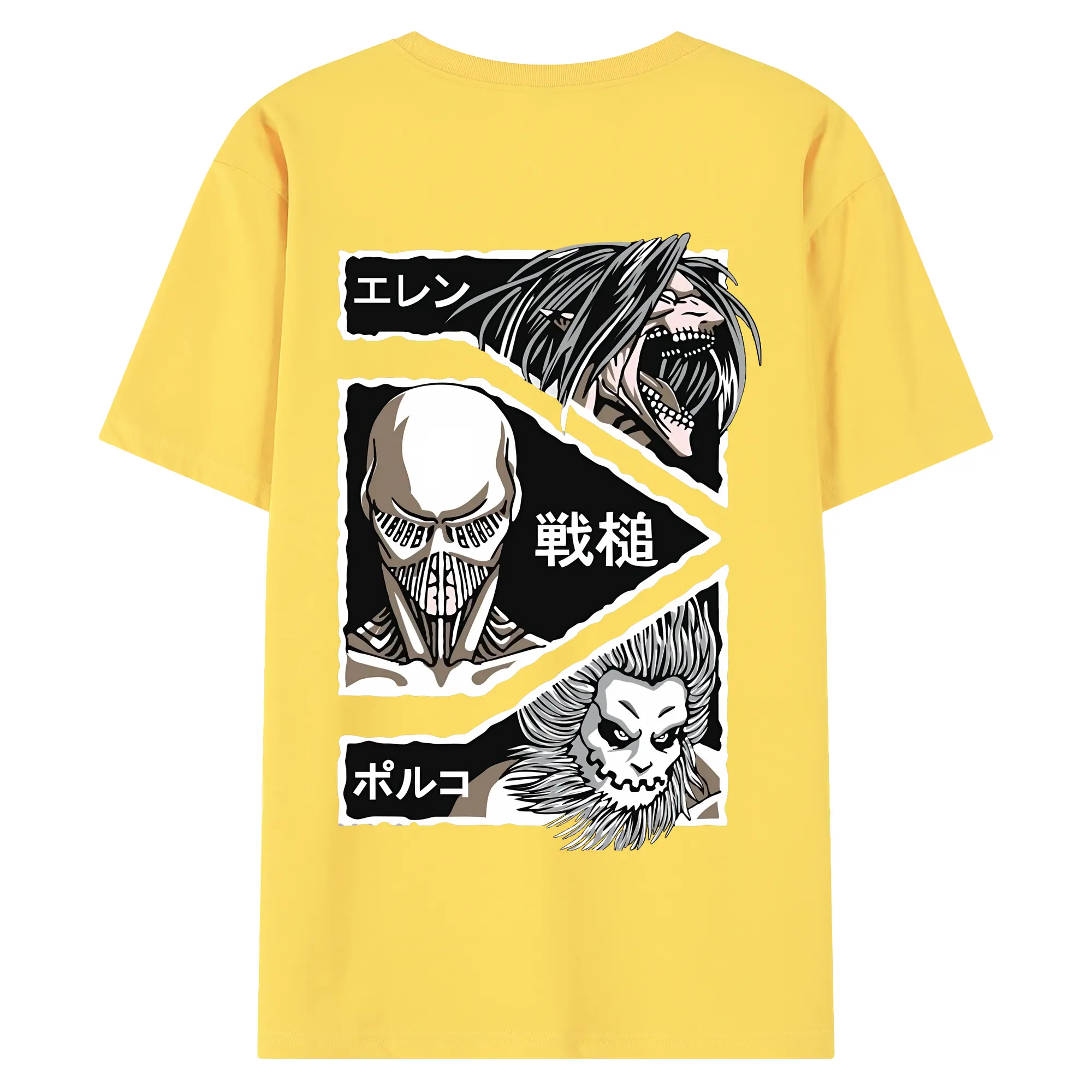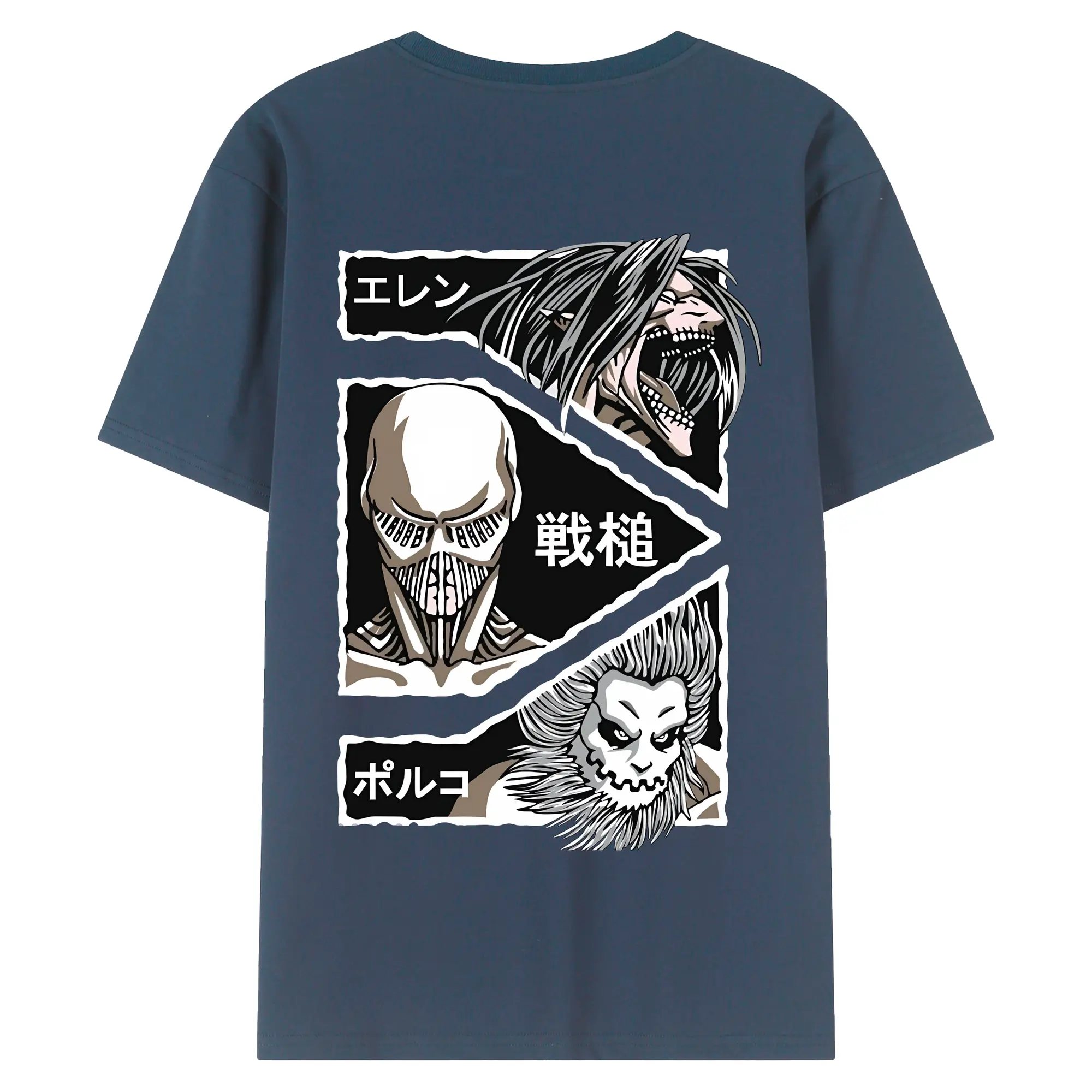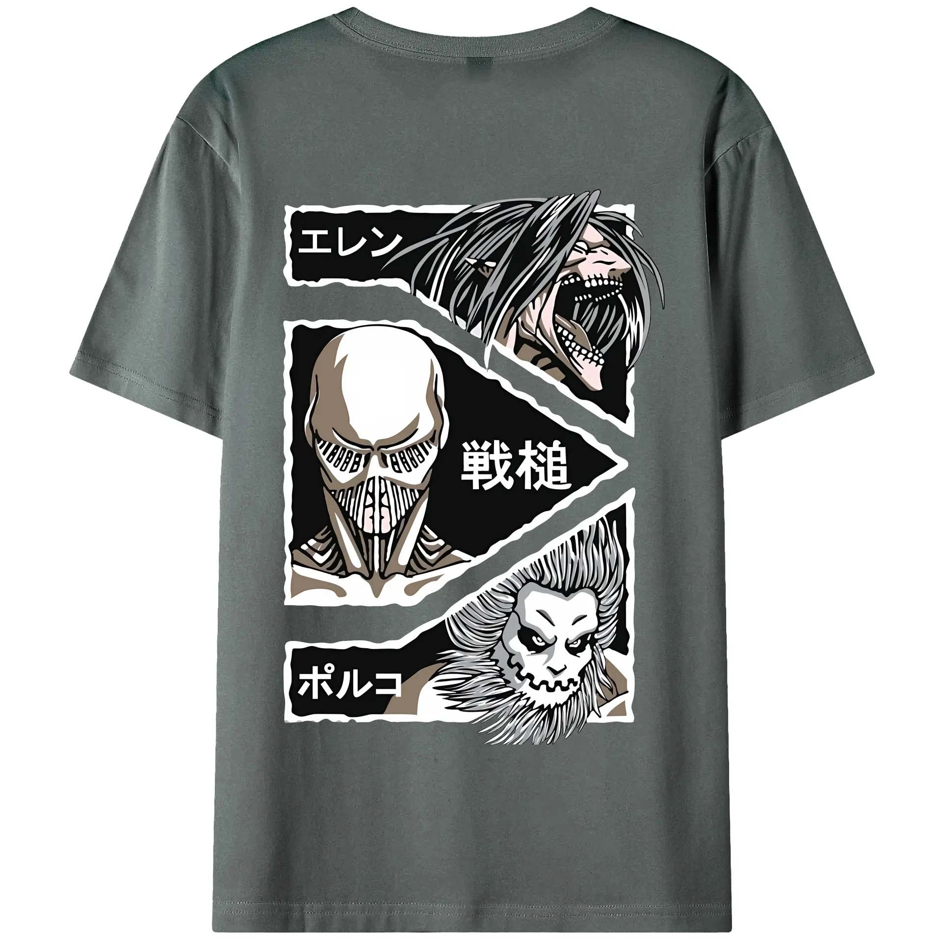 進撃の巨人 グッズ エレン・イェーガー - 綿100% ヴィンテージ風 半袖Tシャツ ・ 背面プリント ・ 柔らか肌触り ・ 通気性 快適 ・ スポーツ カジュアル 外出用