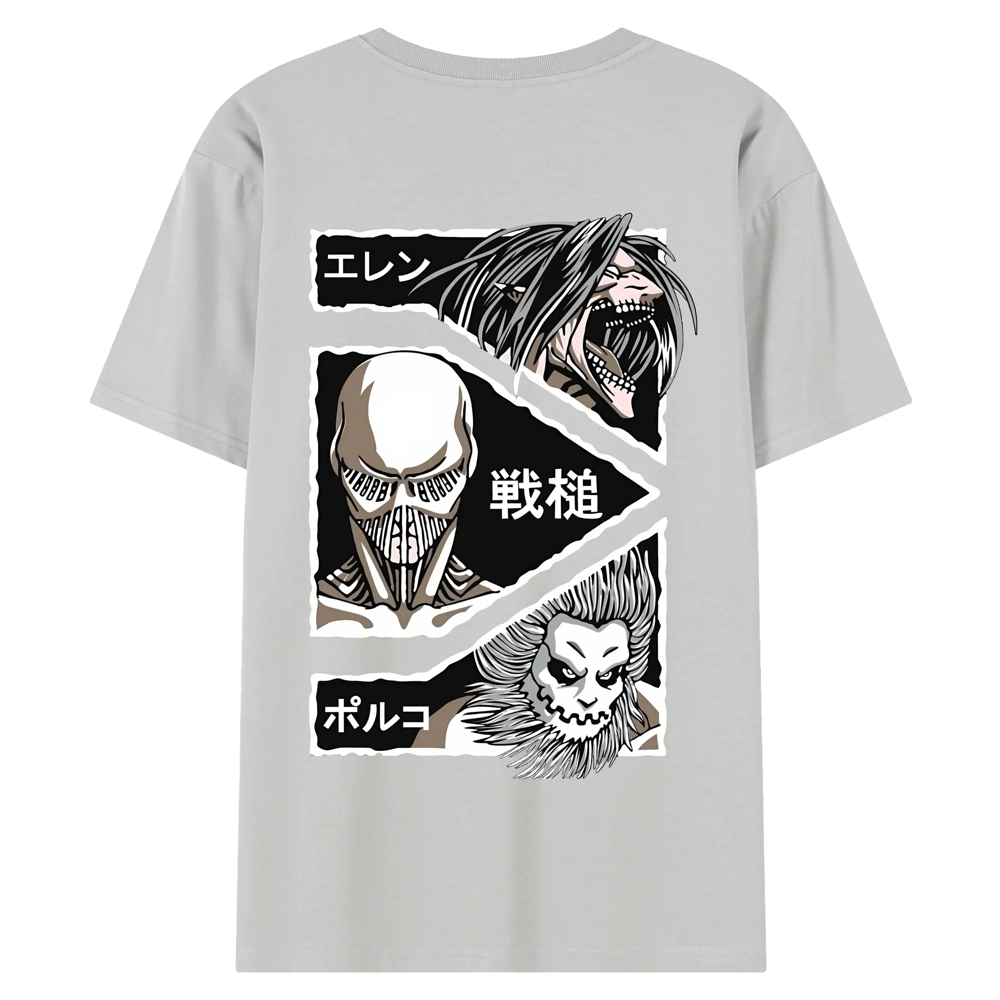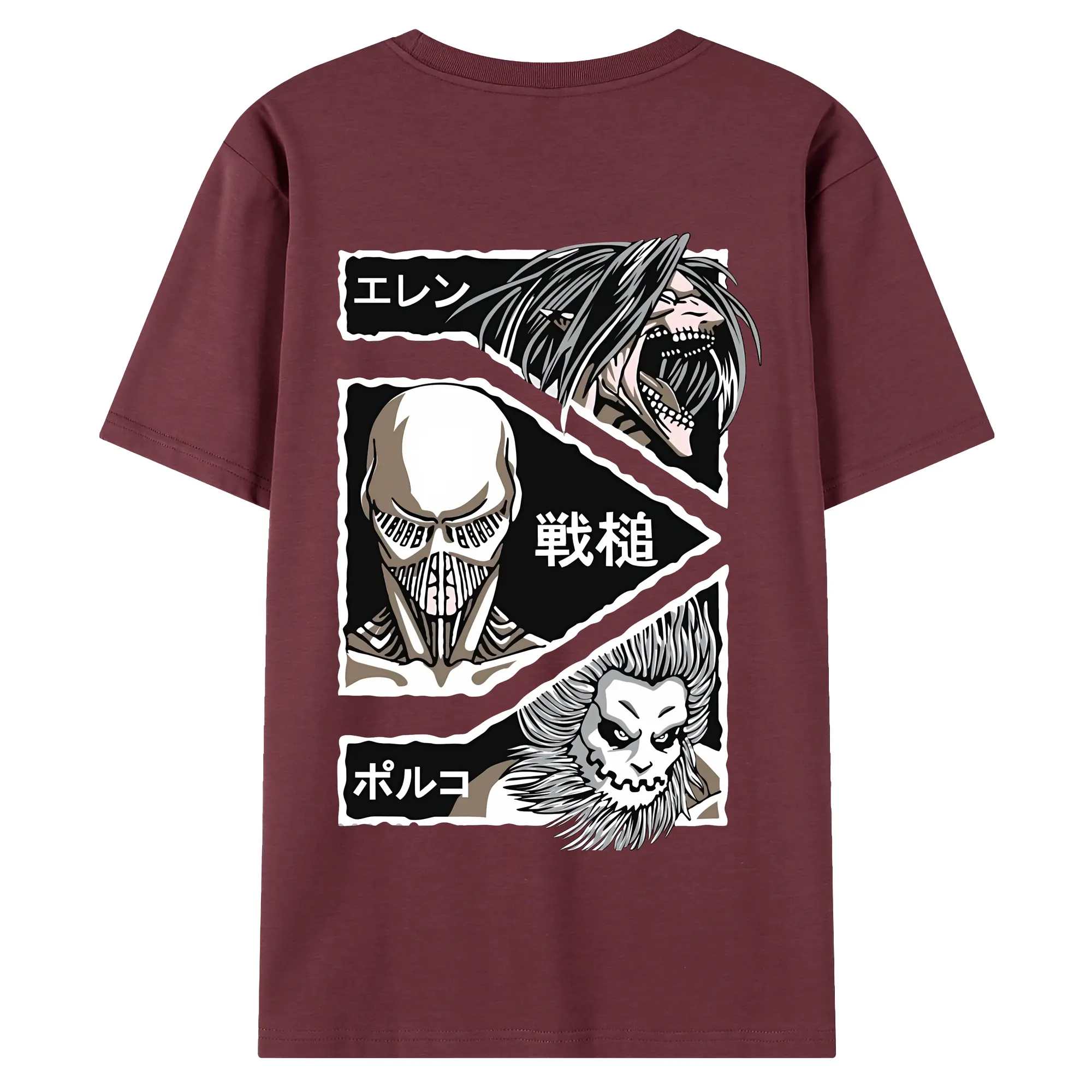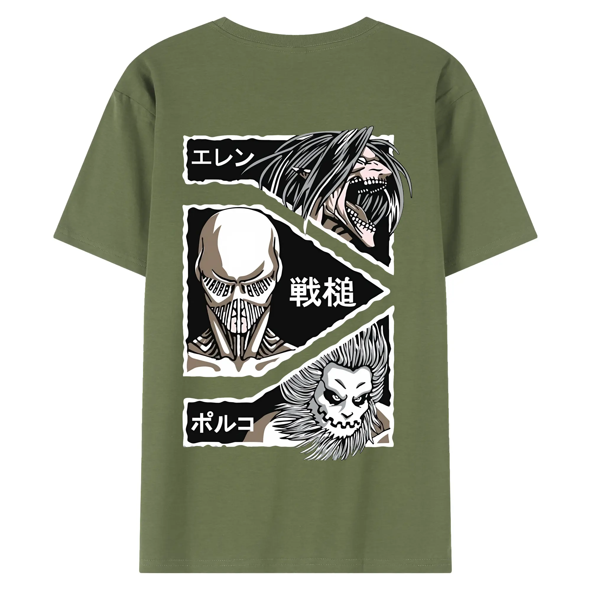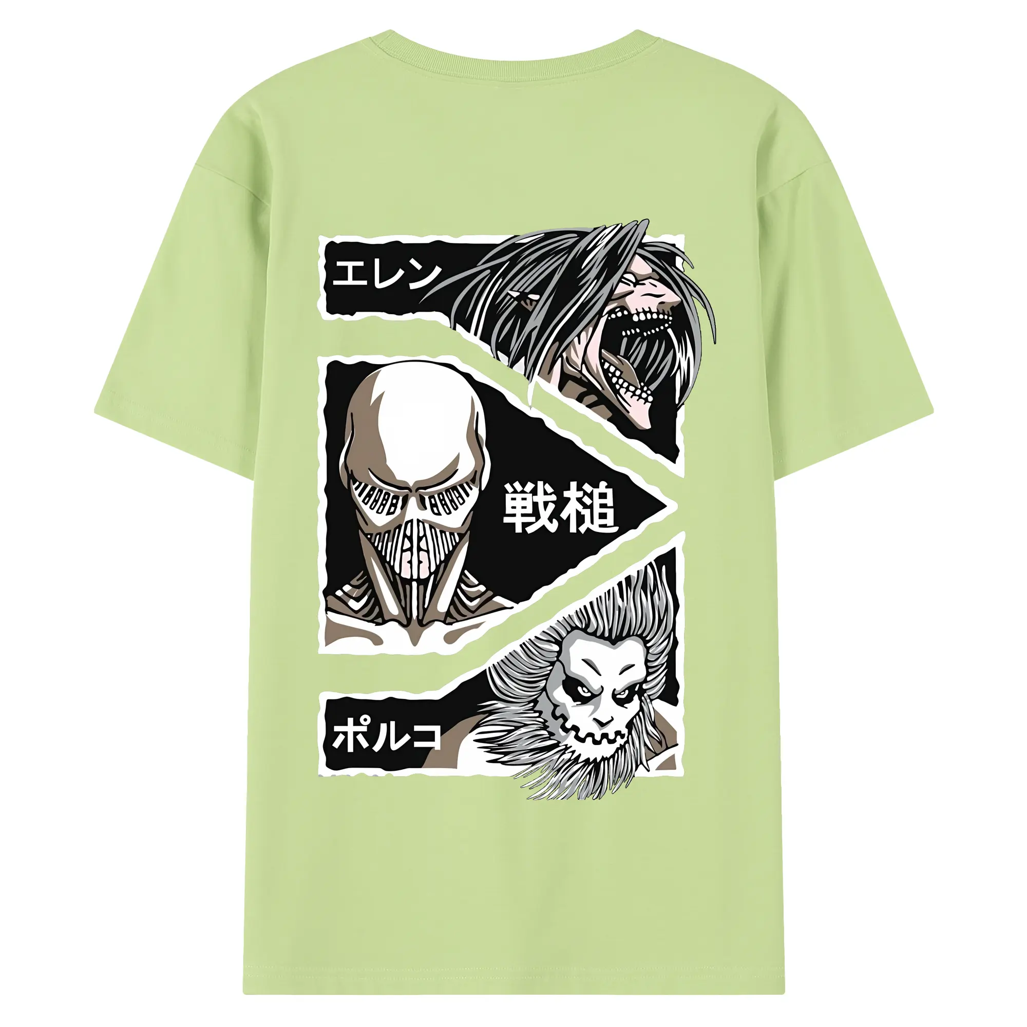 進撃の巨人 グッズ エレン・イェーガー - 綿100% ヴィンテージ風 半袖Tシャツ ・ 背面プリント ・ 柔らか肌触り ・ 通気性 快適 ・ スポーツ カジュアル 外出用