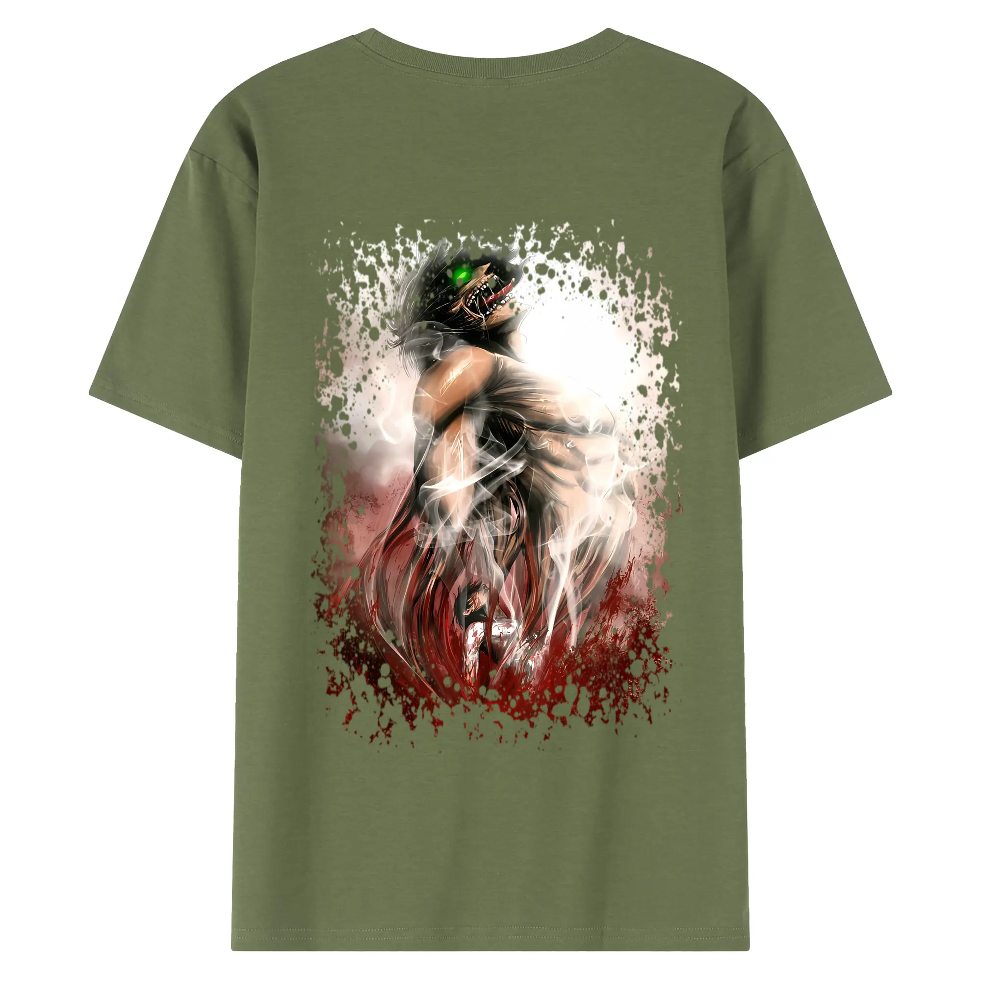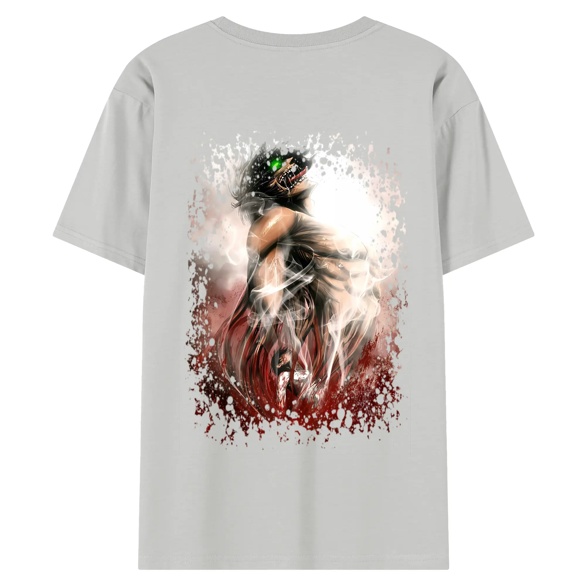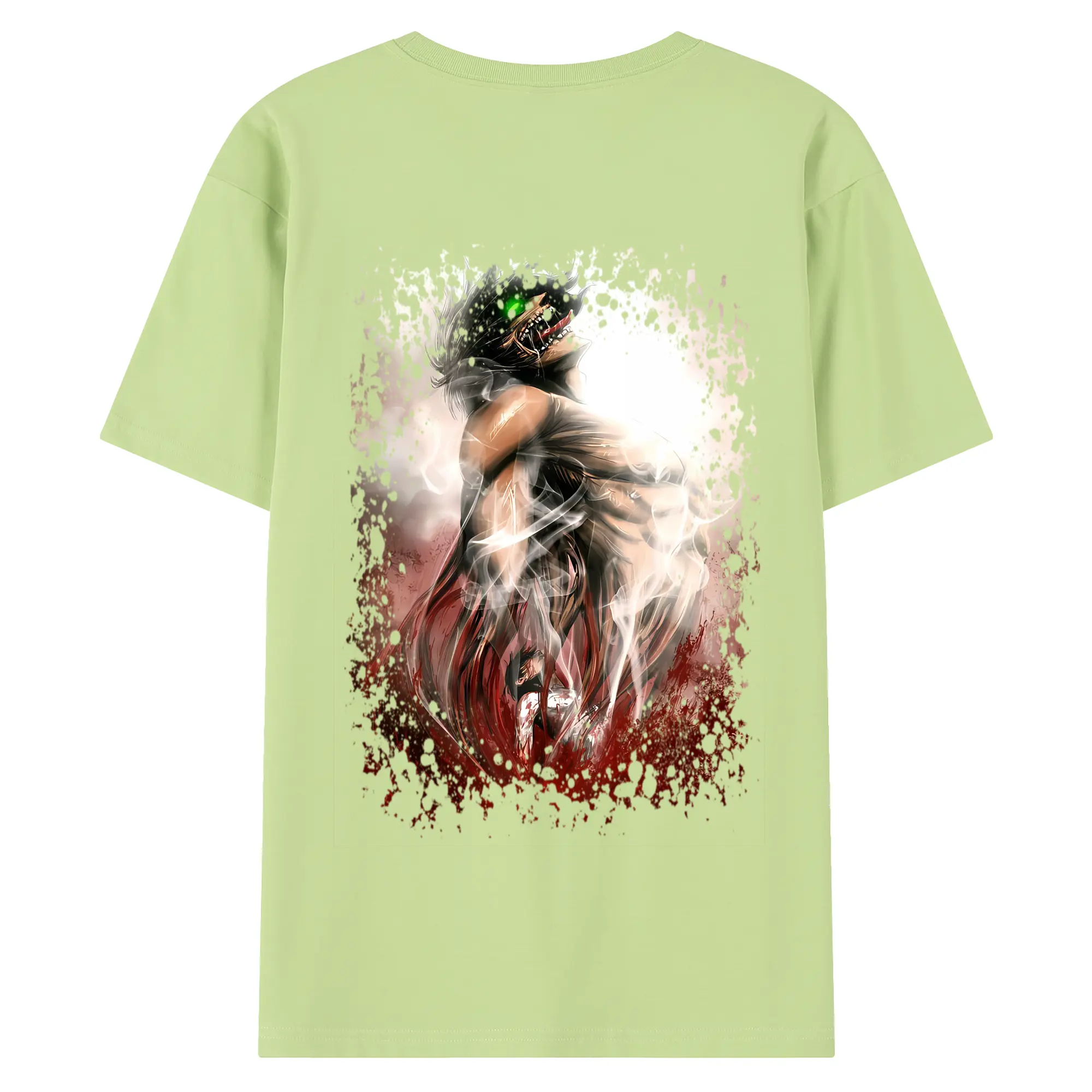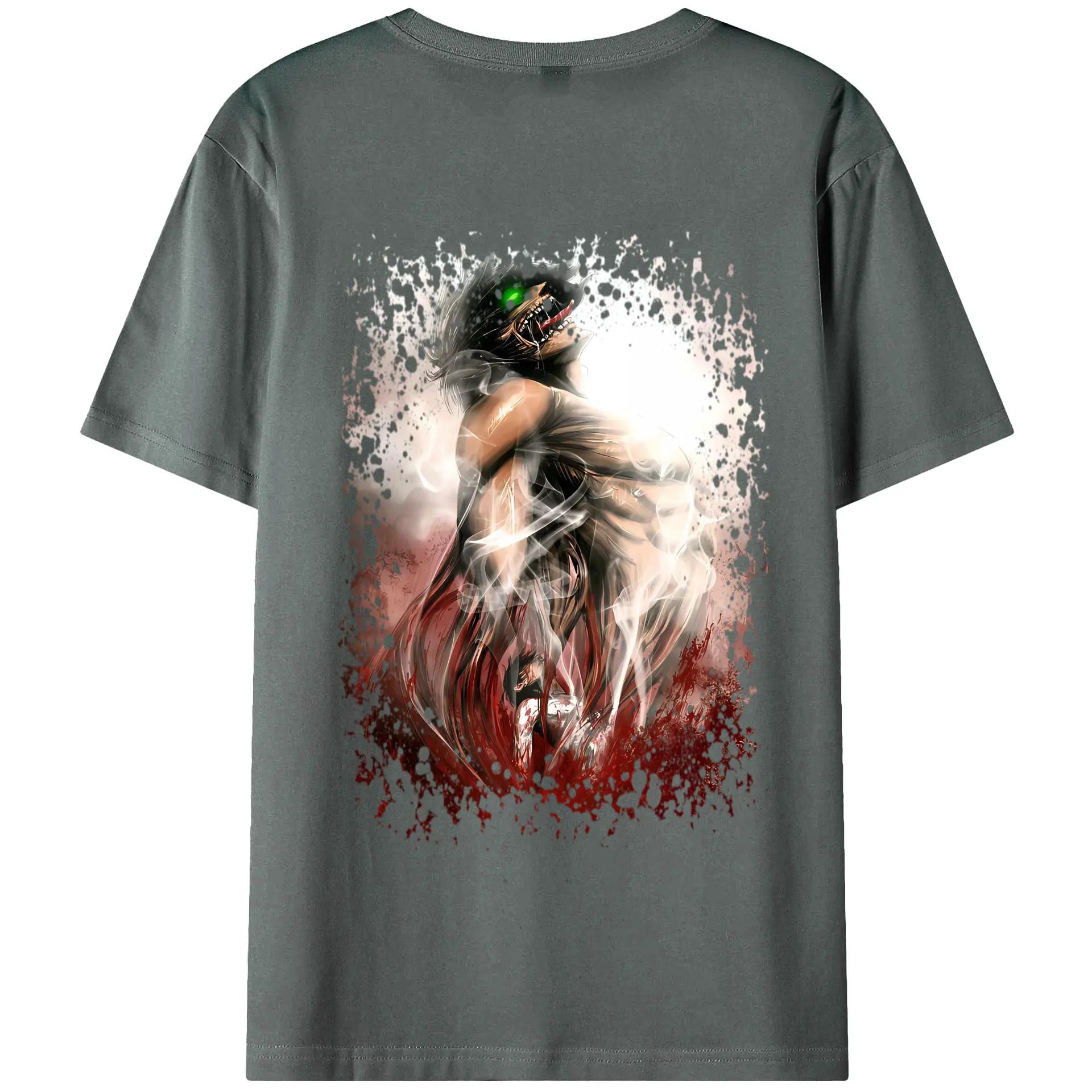 進撃の巨人 グッズ エレン・イェーガー - 綿100% ヴィンテージ風 半袖Tシャツ ・ 背面プリント ・ 柔らか肌触り ・ 通気性 快適 ・ スポーツ カジュアル 外出用