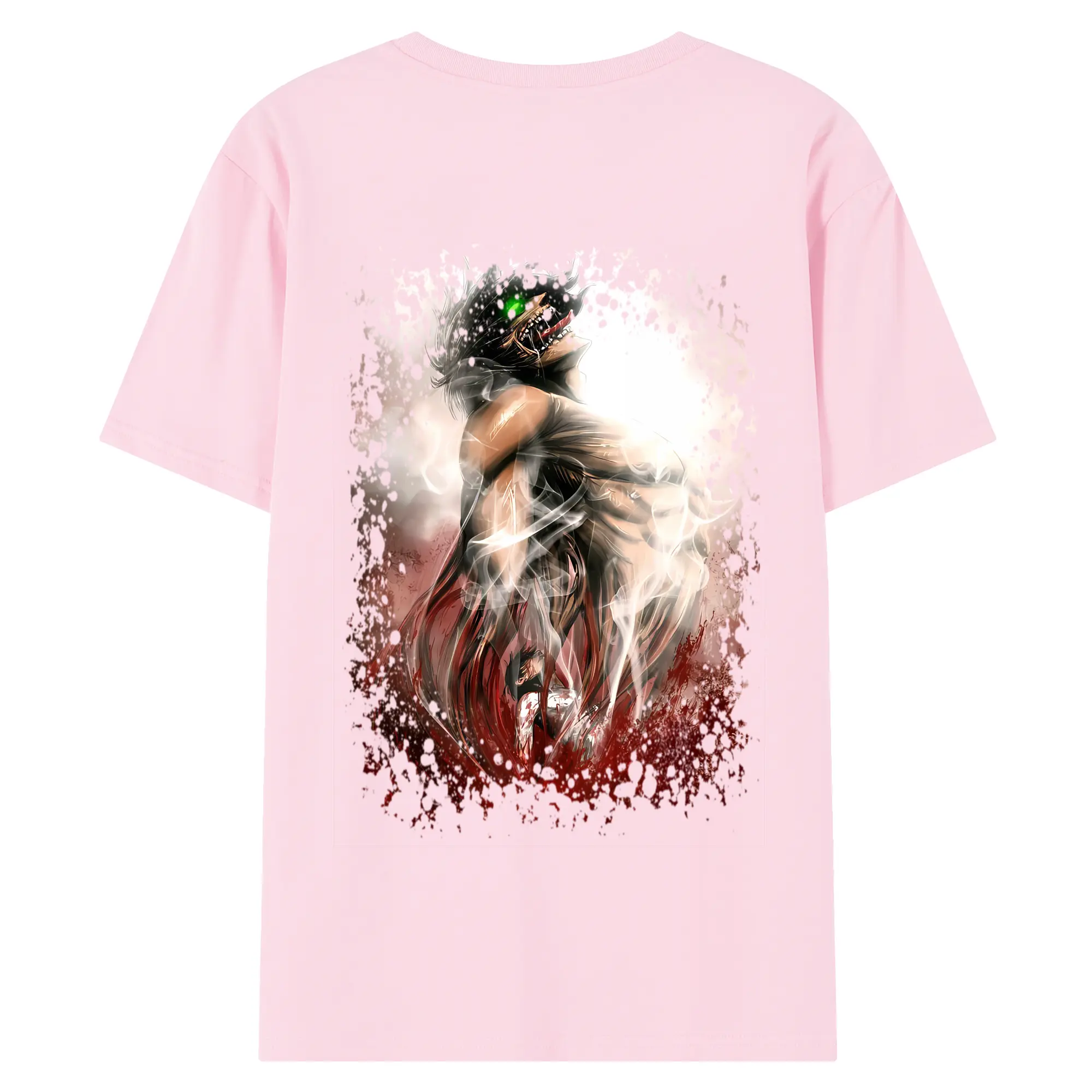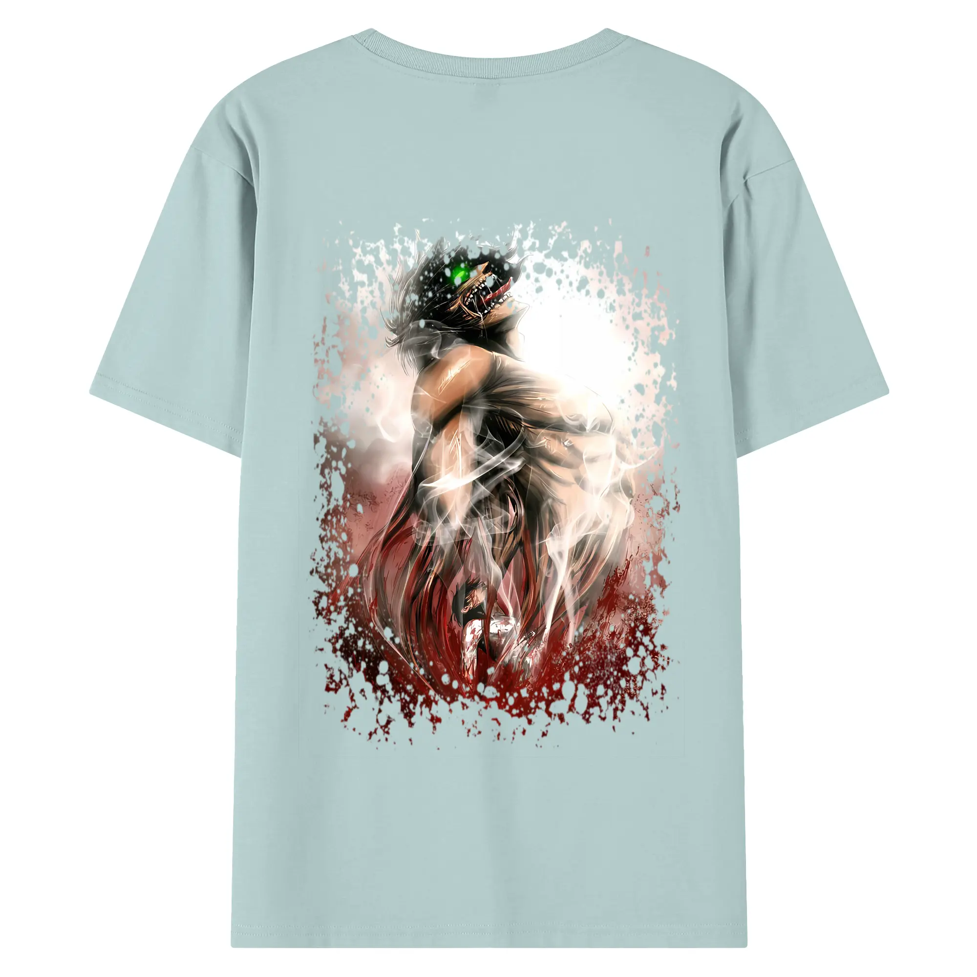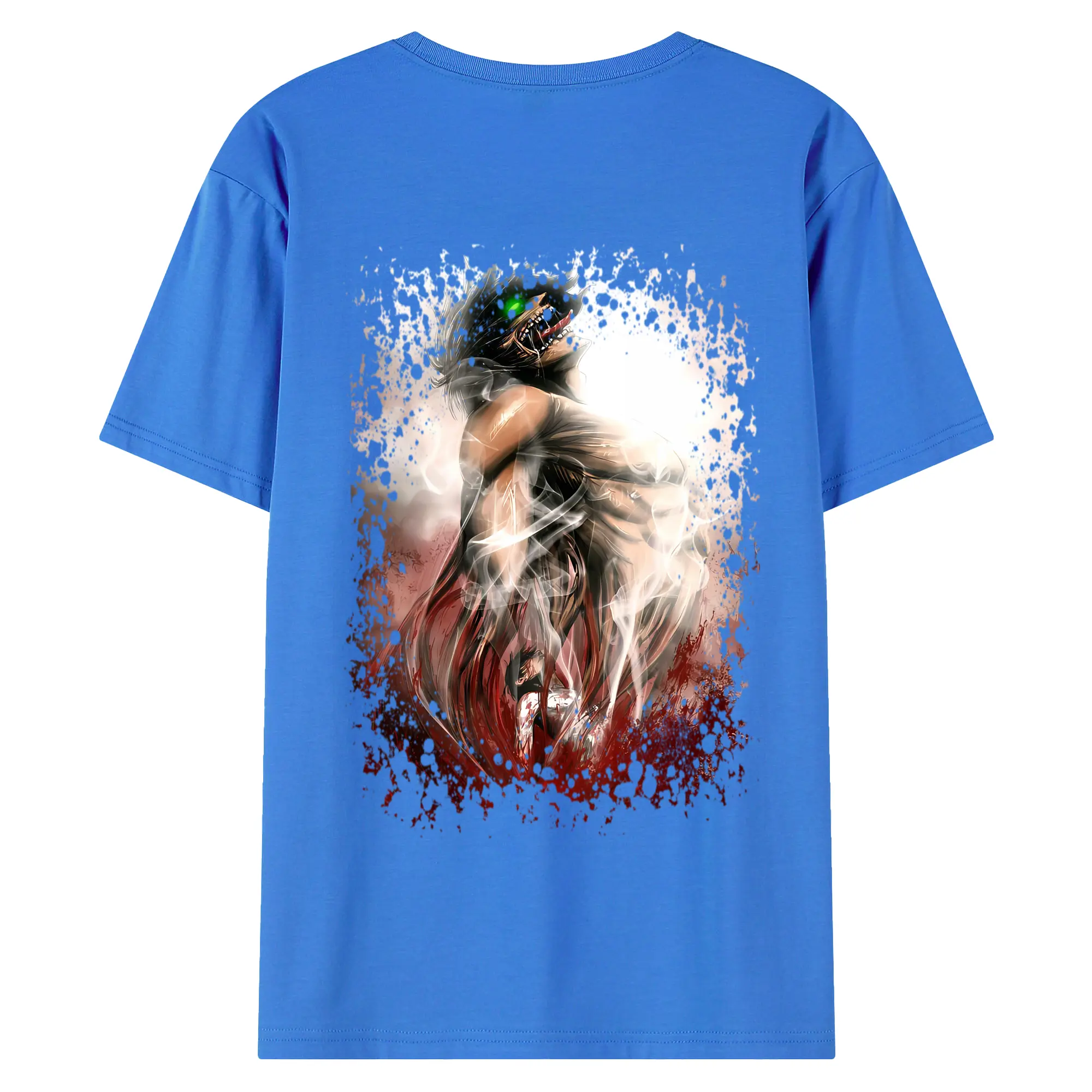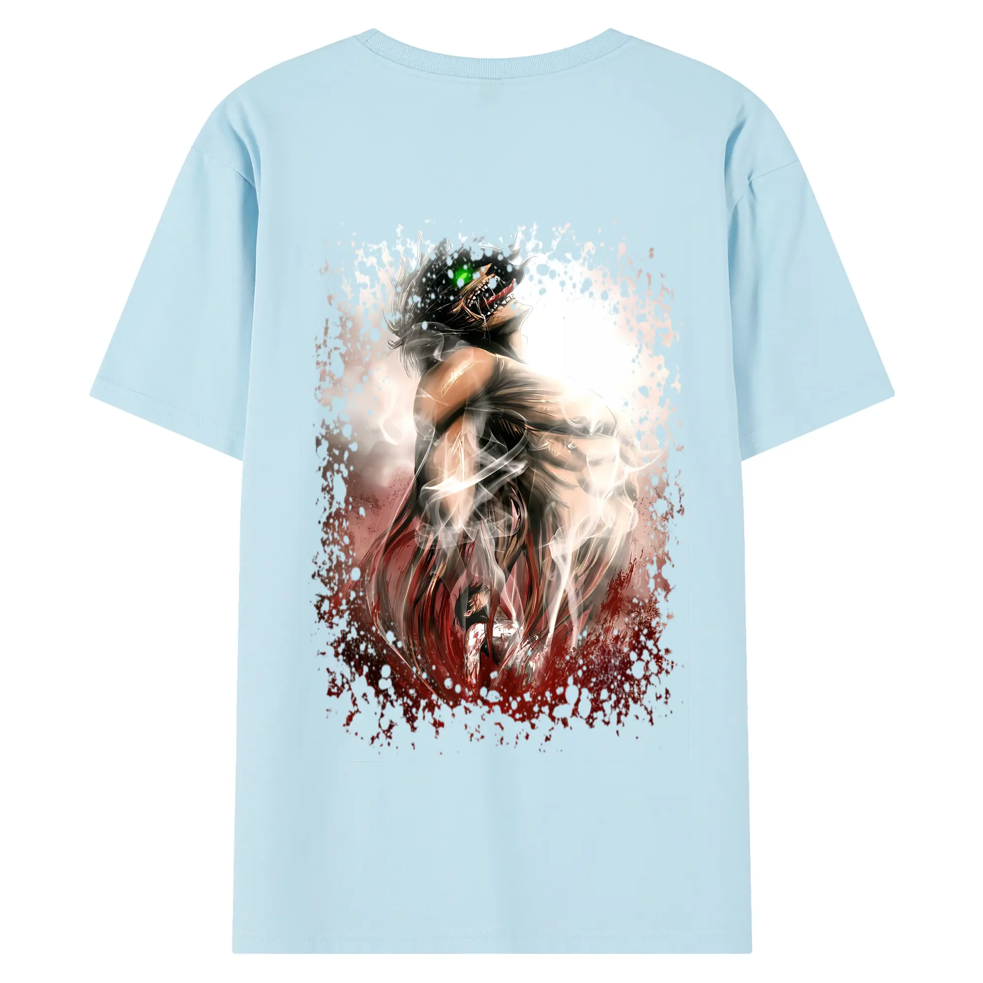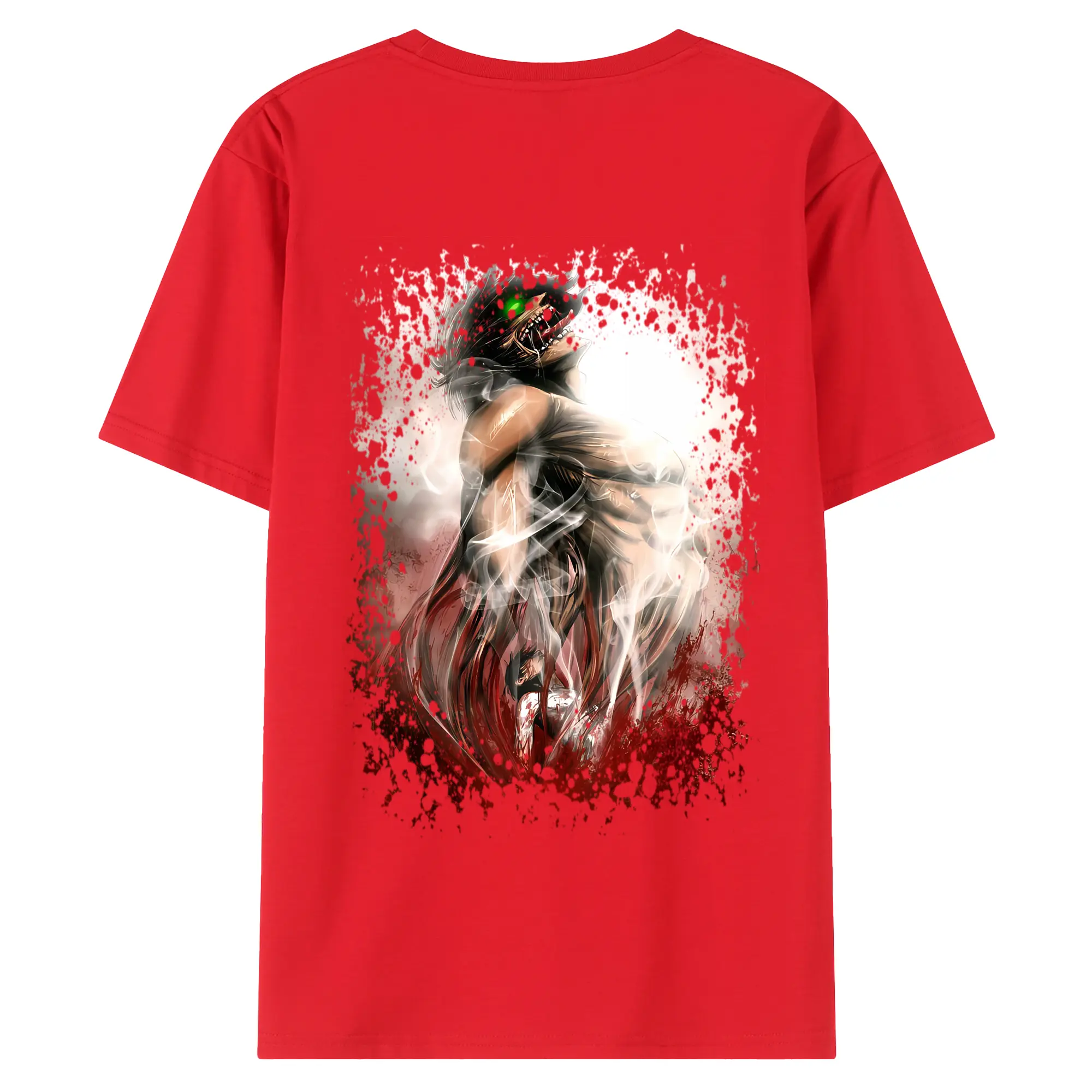 進撃の巨人 グッズ エレン・イェーガー - 綿100% 半袖Tシャツ ・ フロントプリント ・ 快適 通気性 ・ 日常使い 散歩 スポーツ用