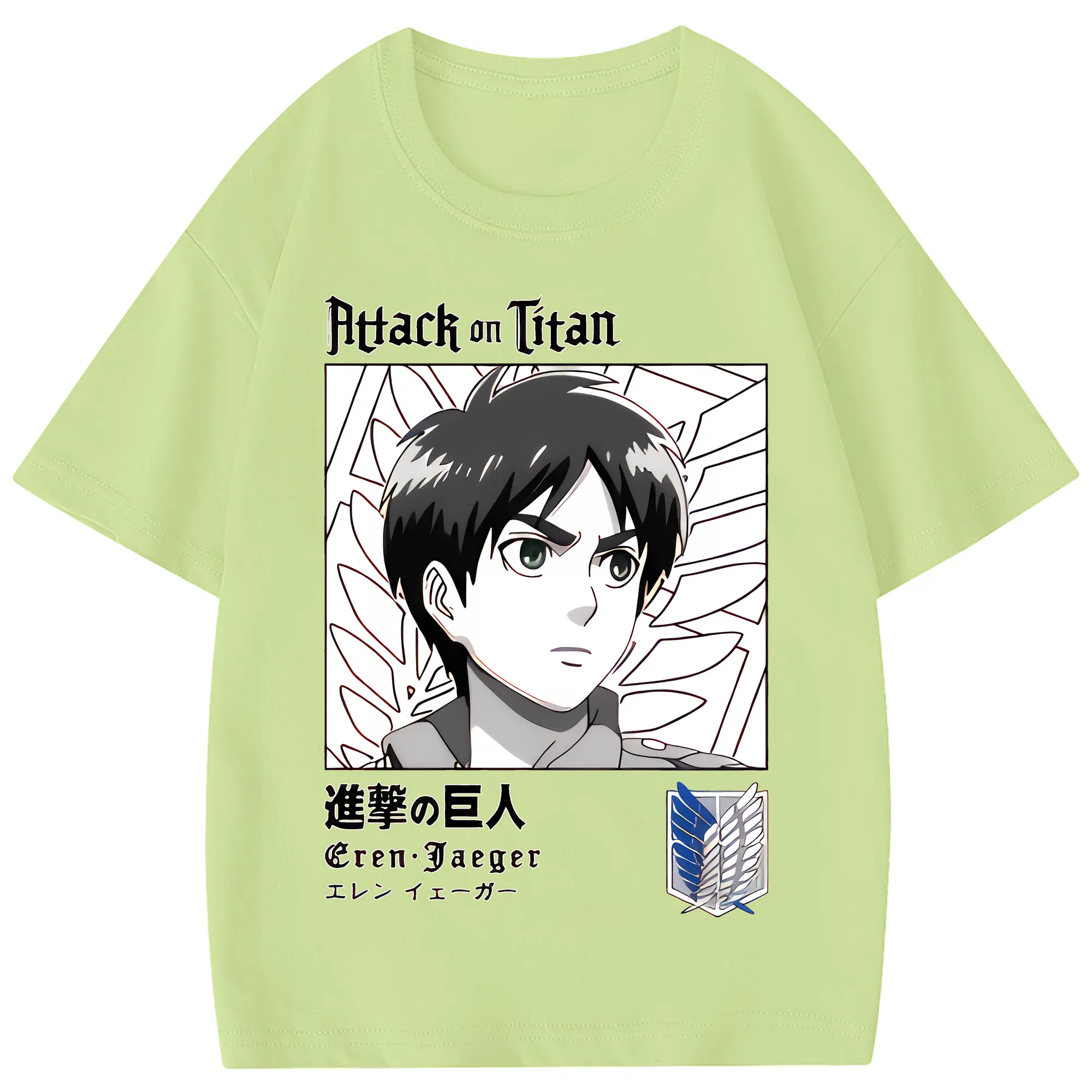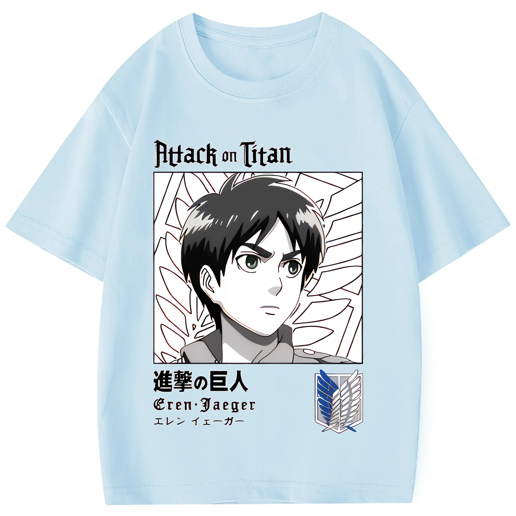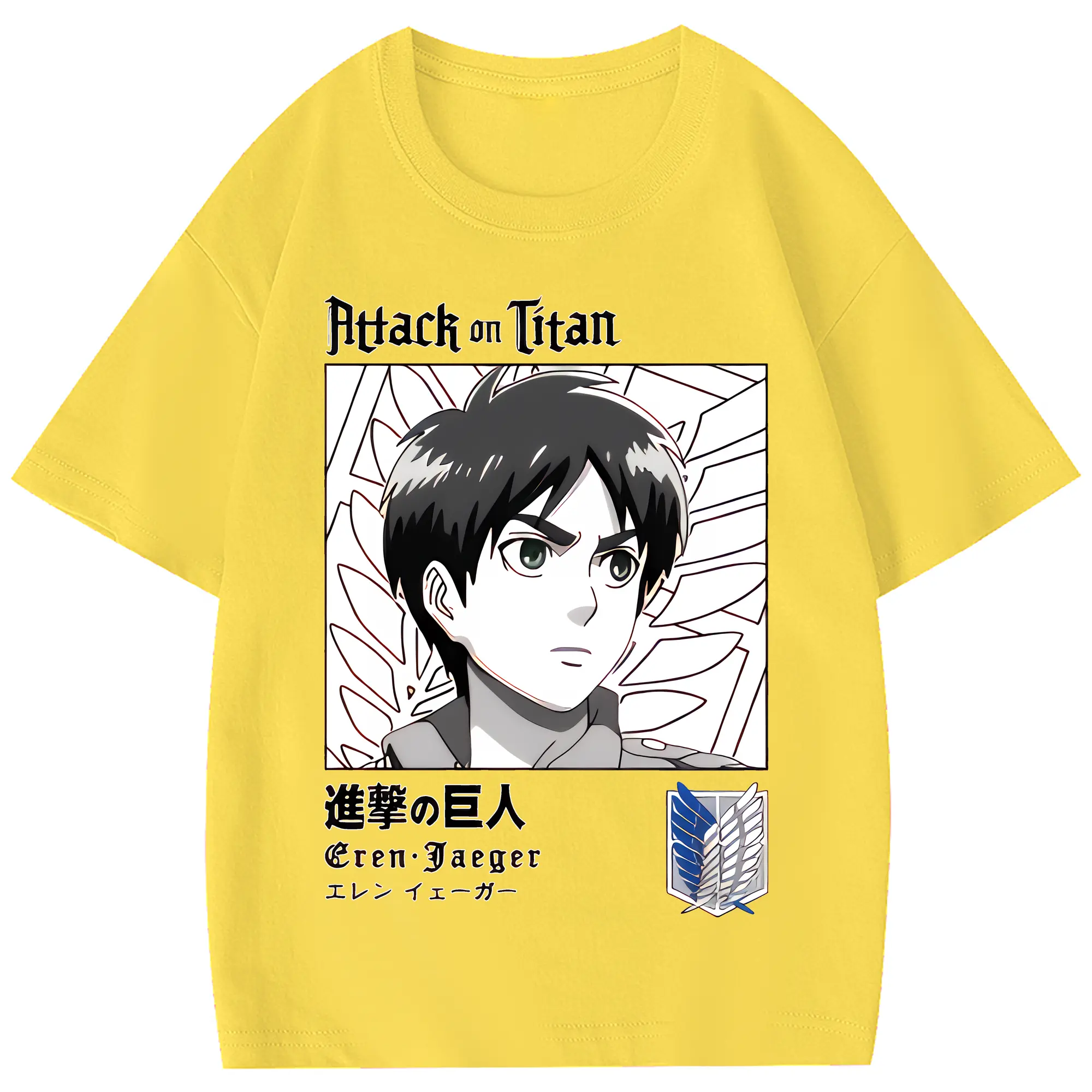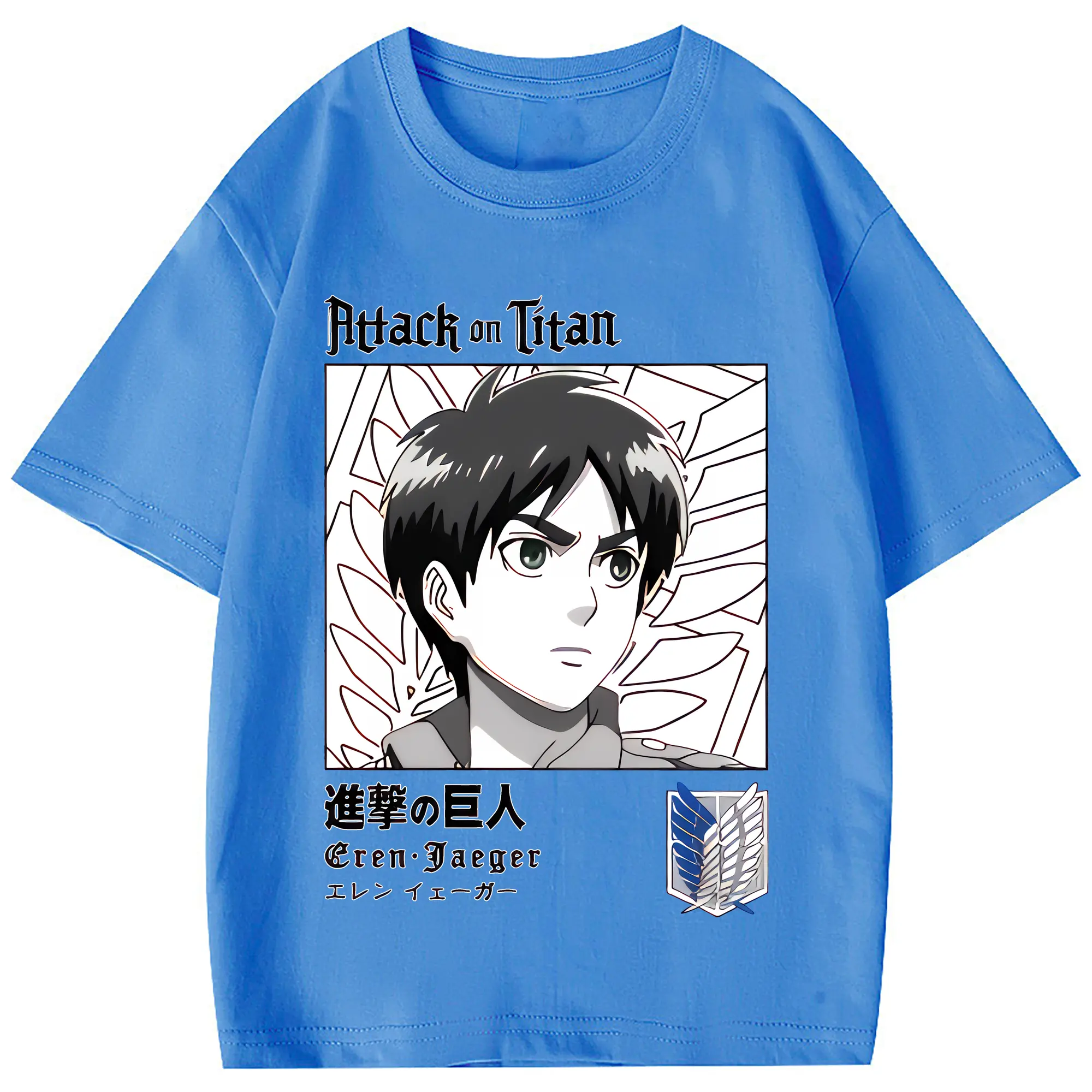 進撃の巨人 グッズ エレン・イェーガー - 綿100% 半袖Tシャツ ・ フロントプリント ・ 快適 通気性 ・ 日常使い 散歩 スポーツ用