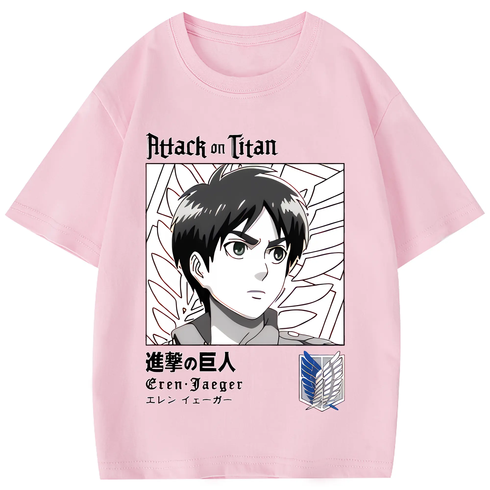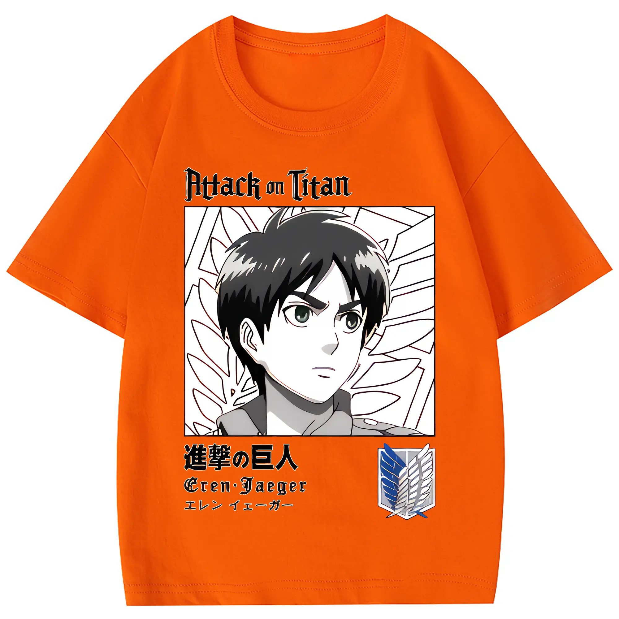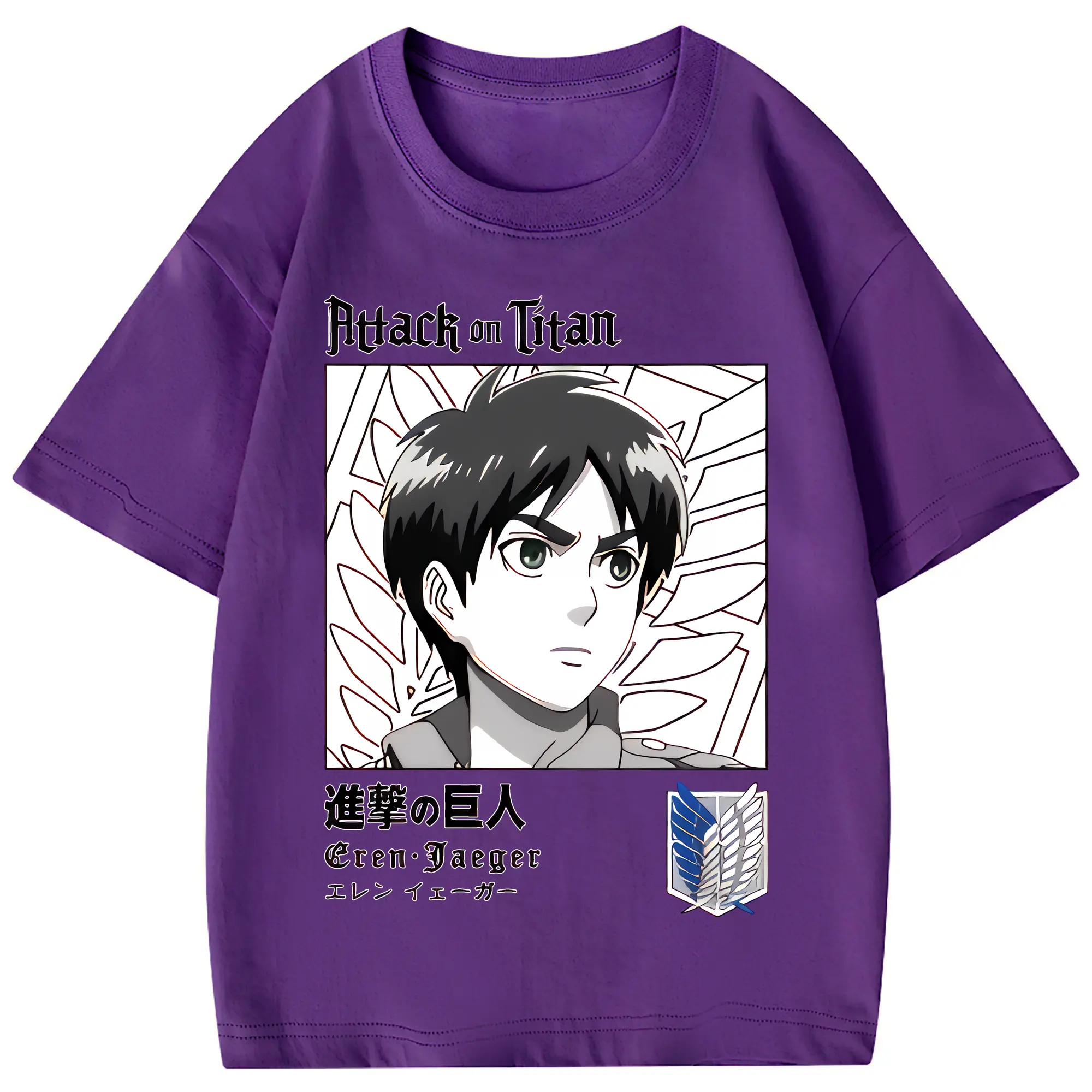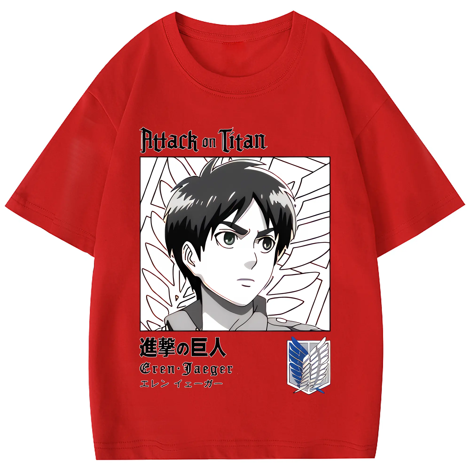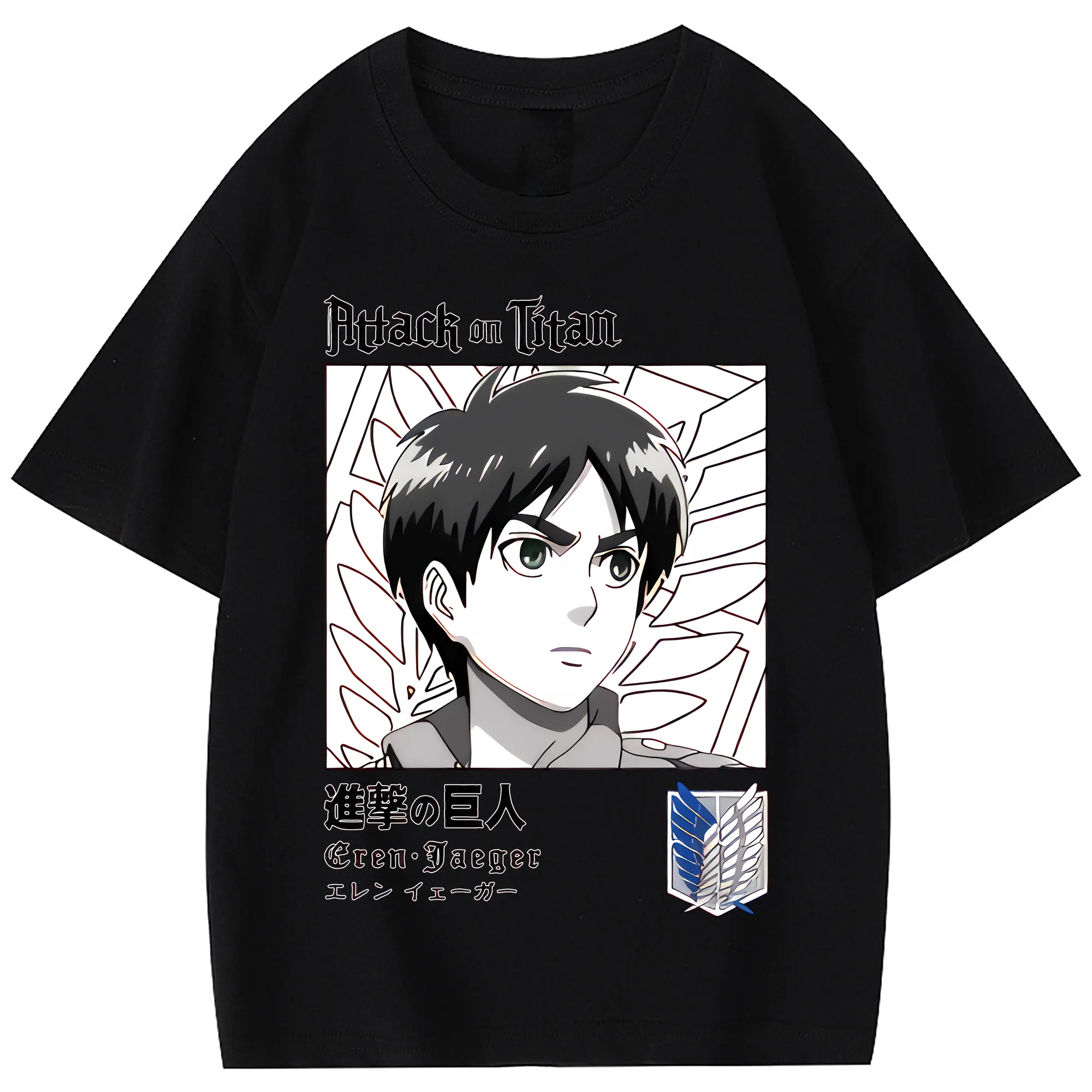 進撃の巨人 グッズ エレン・イェーガー - 綿100% 半袖Tシャツ ・ フロントプリント ・ 快適 通気性 ・ 日常使い 散歩 スポーツ用