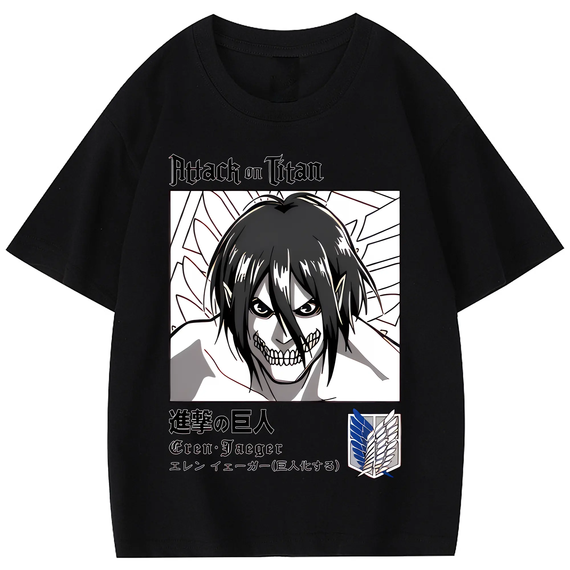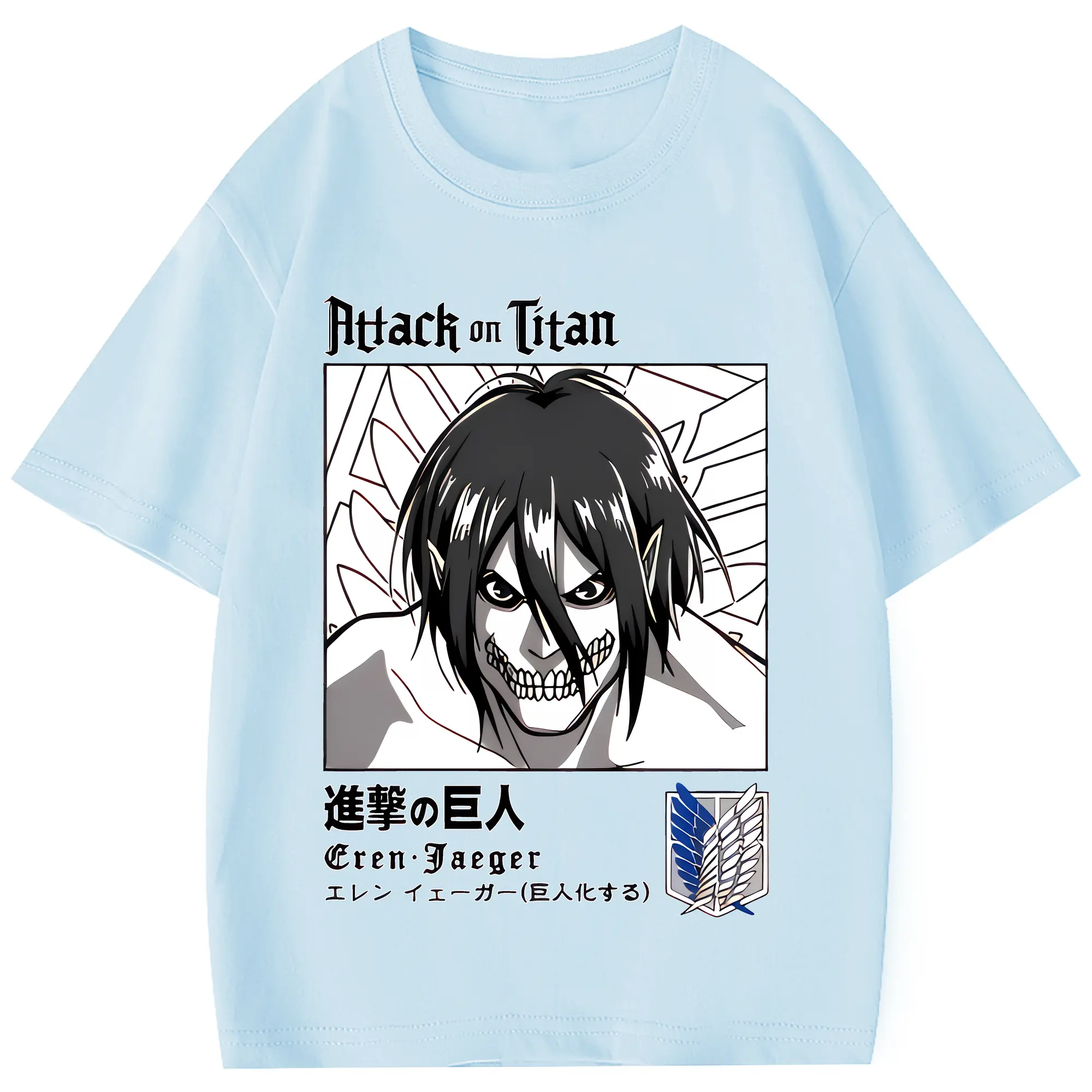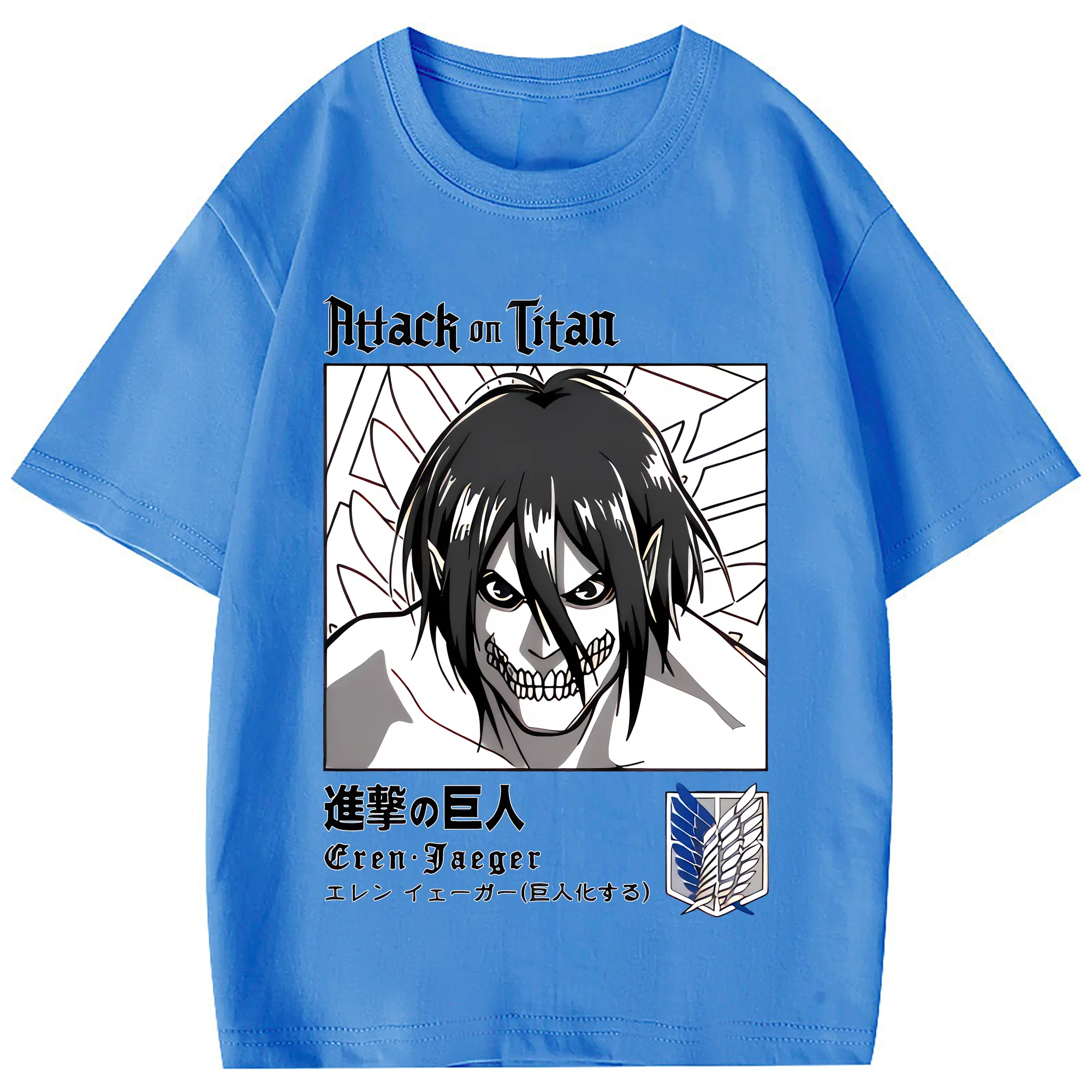 進撃の巨人 グッズ エレン・イェーガー - 綿100% 半袖Tシャツ ・ フロントプリント ・ 快適 通気性 ・ 日常使い 散歩 スポーツ用