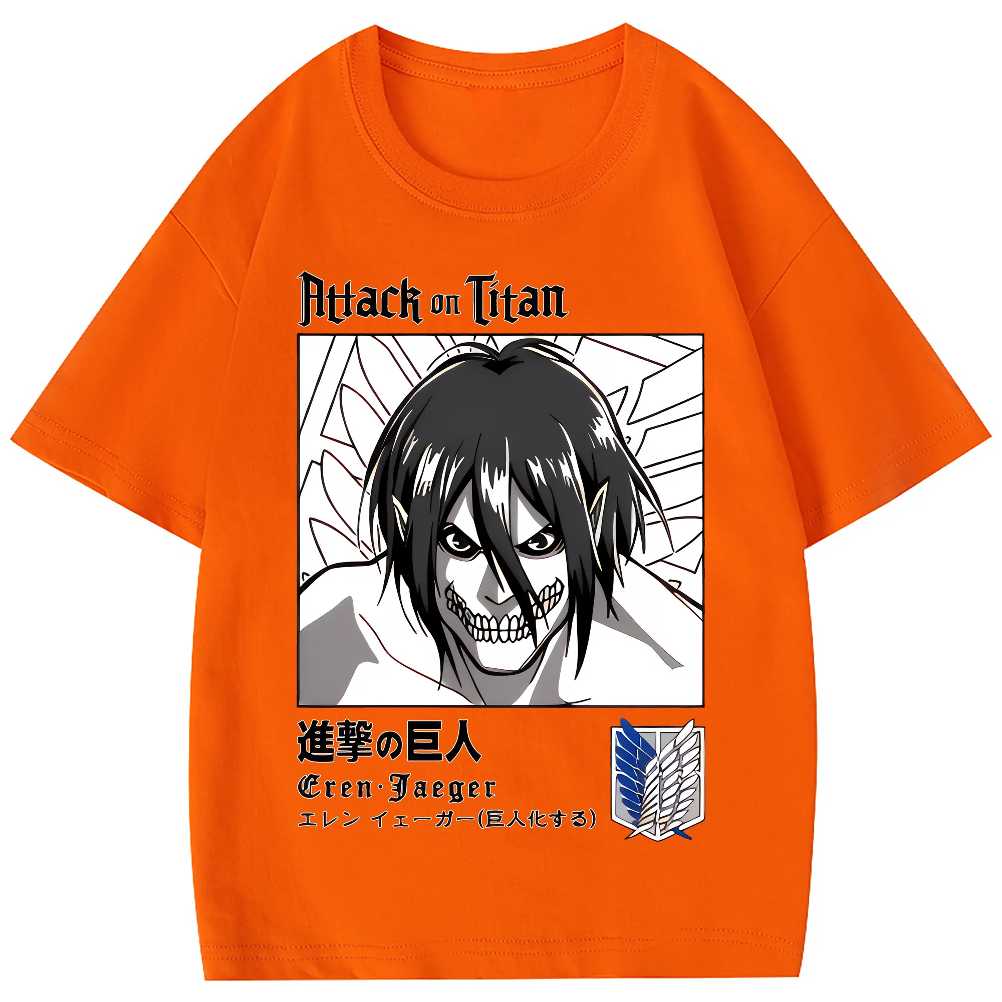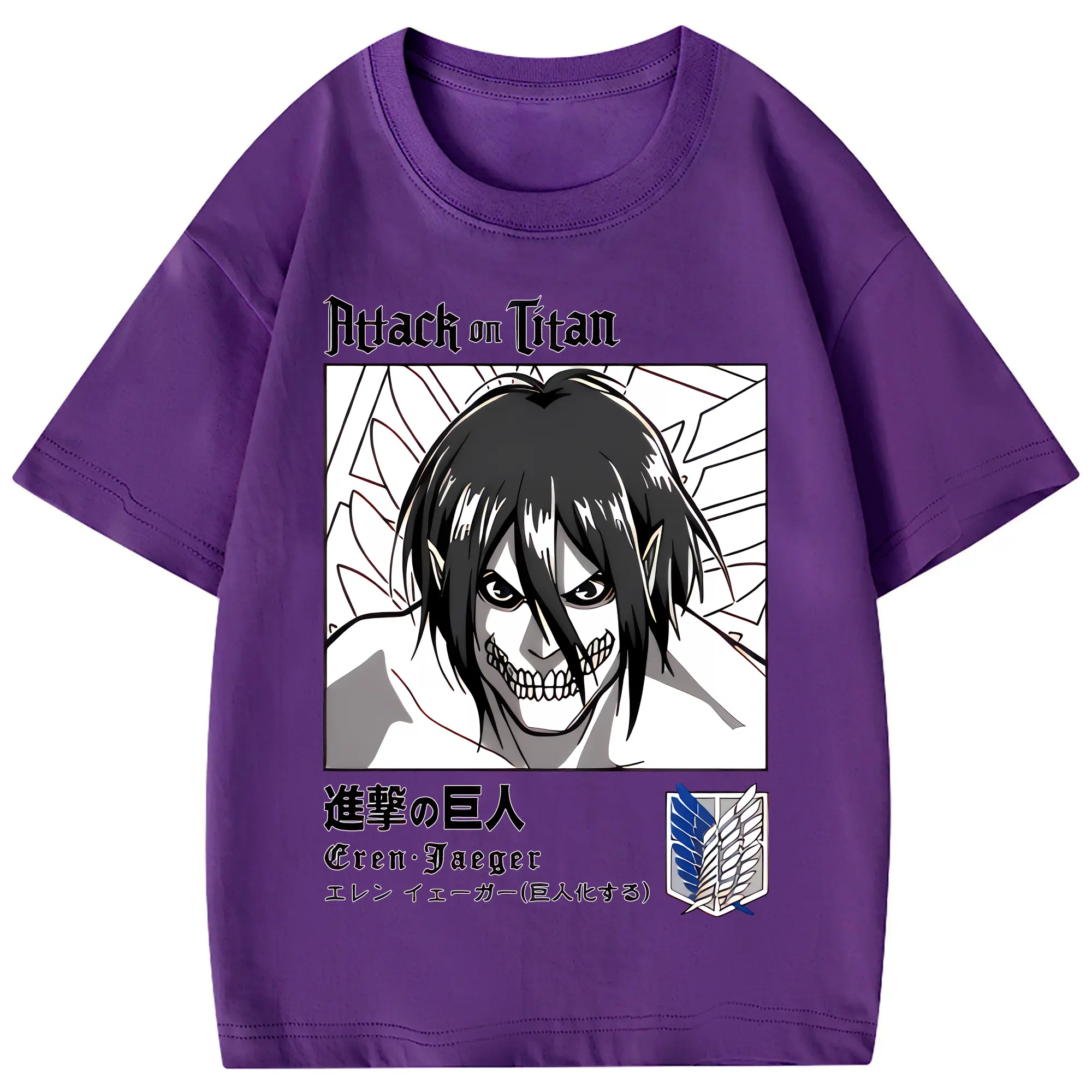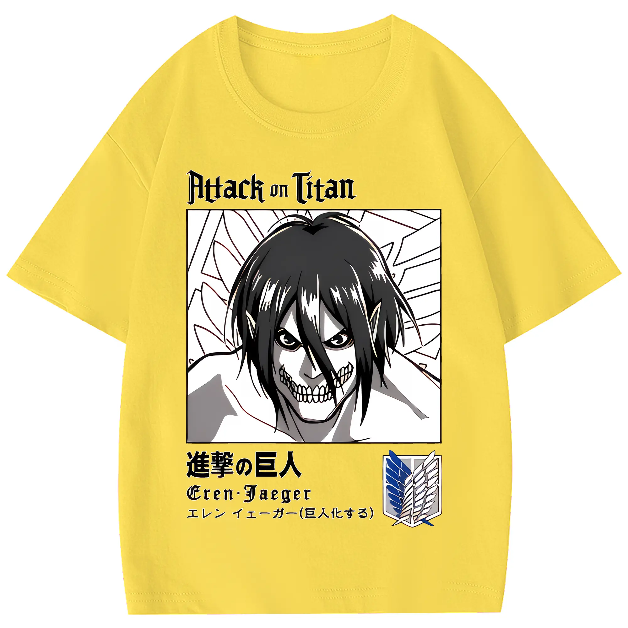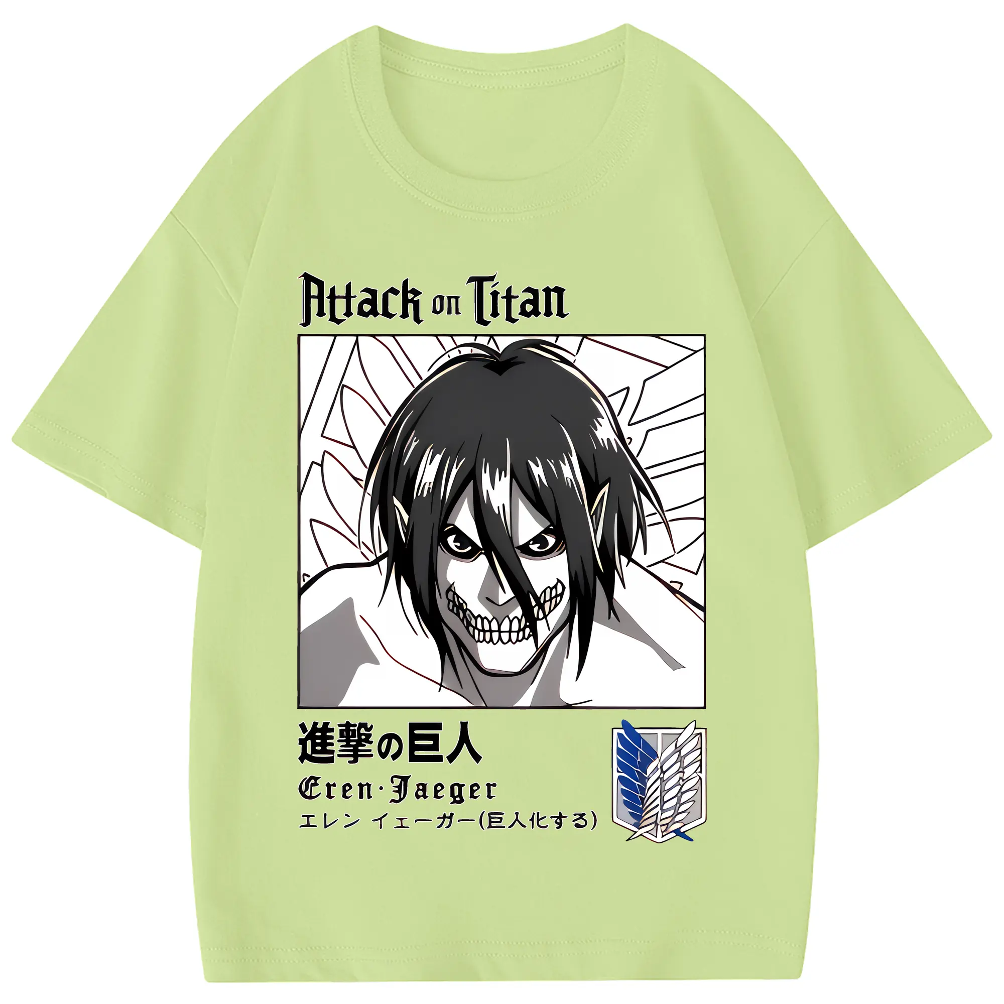 進撃の巨人 グッズ エレン・イェーガー - 綿100% 半袖Tシャツ ・ フロントプリント ・ 快適 通気性 ・ 日常使い 散歩 スポーツ用