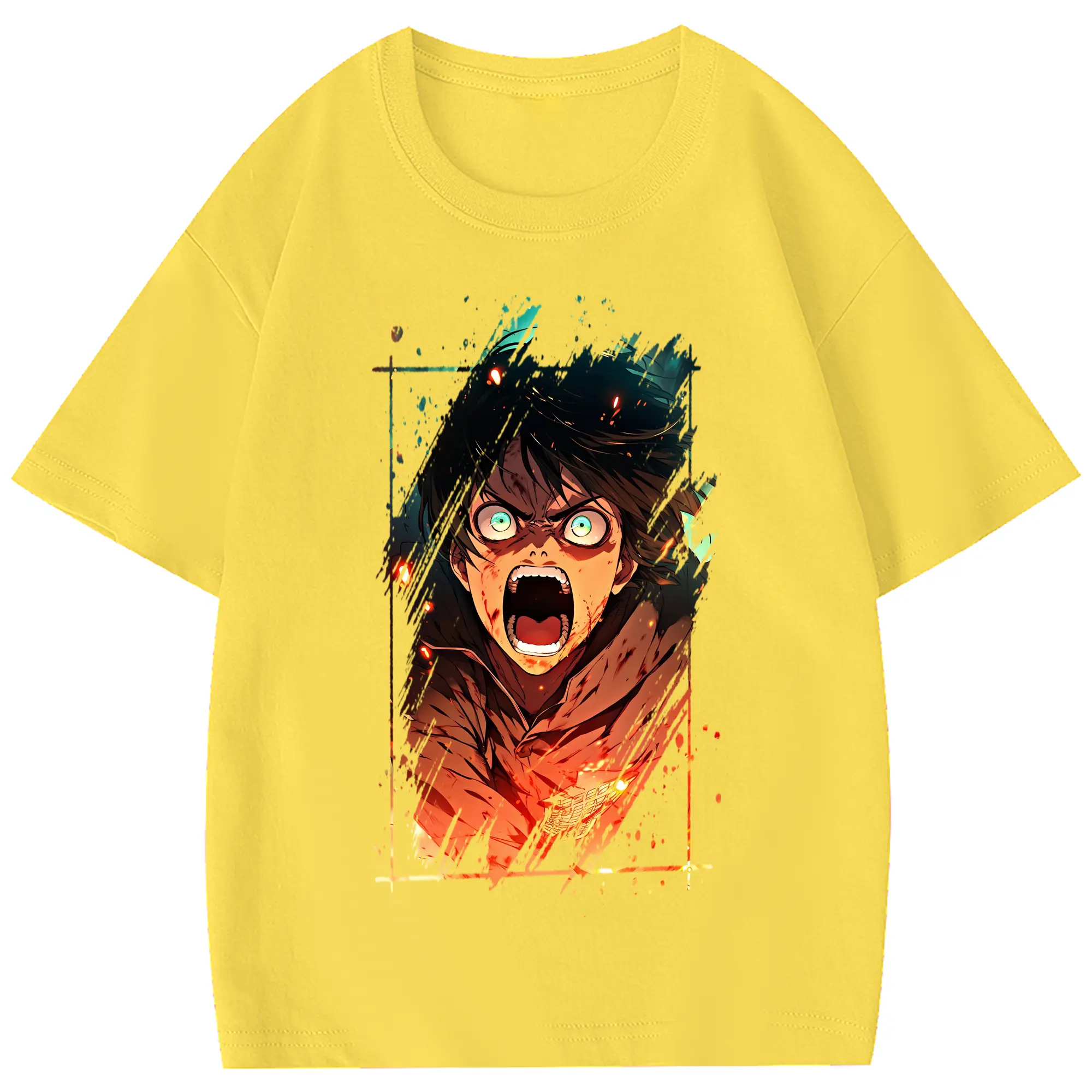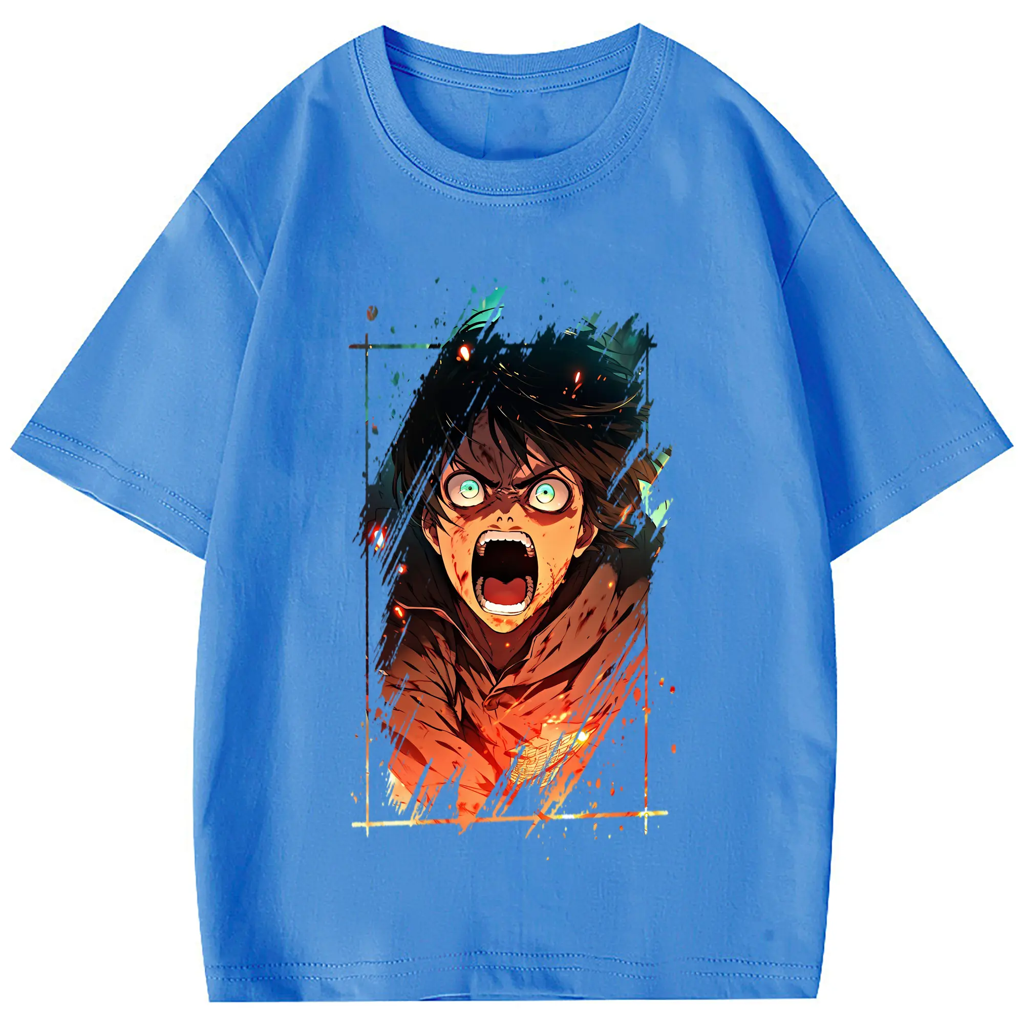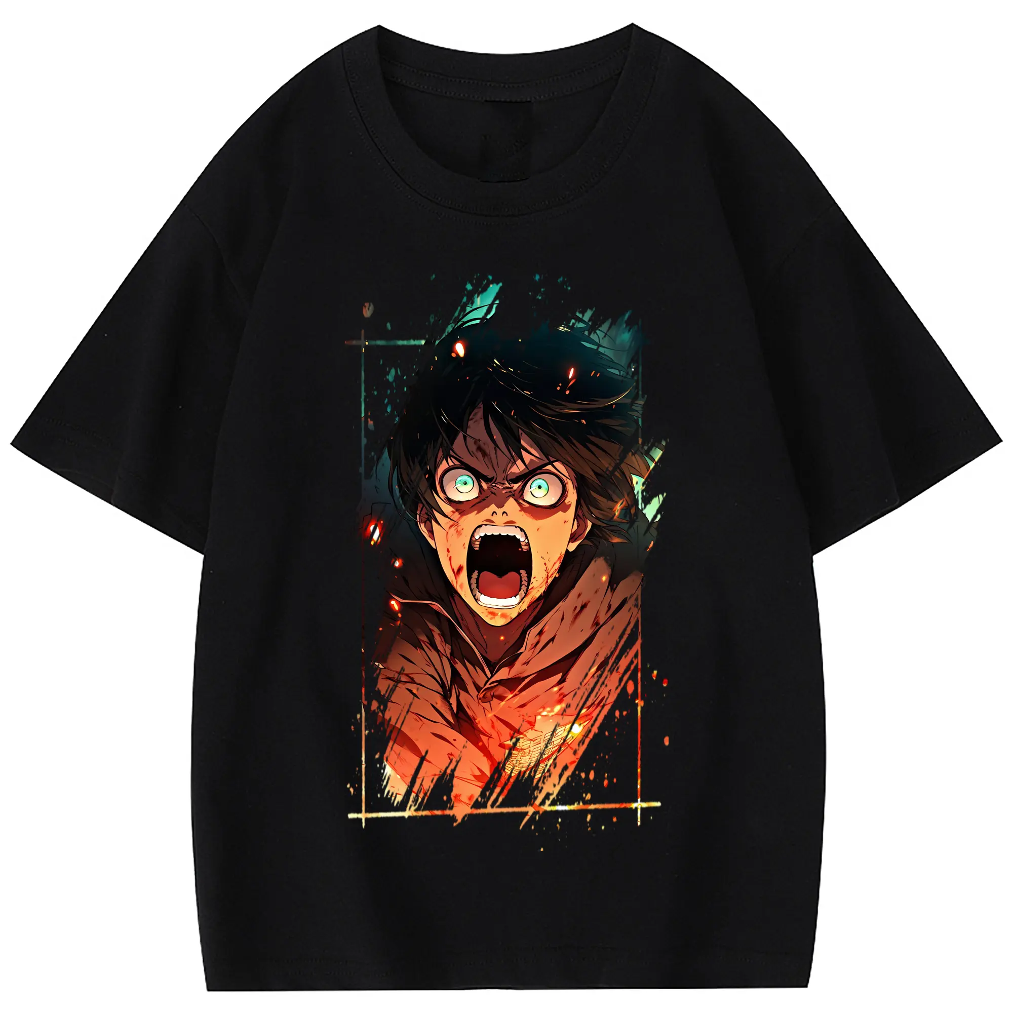 進撃の巨人 グッズ エレン・イェーガー - 綿100% 半袖Tシャツ ・ フロントプリント ・ 快適 通気性 ・ 日常使い 散歩 スポーツ用