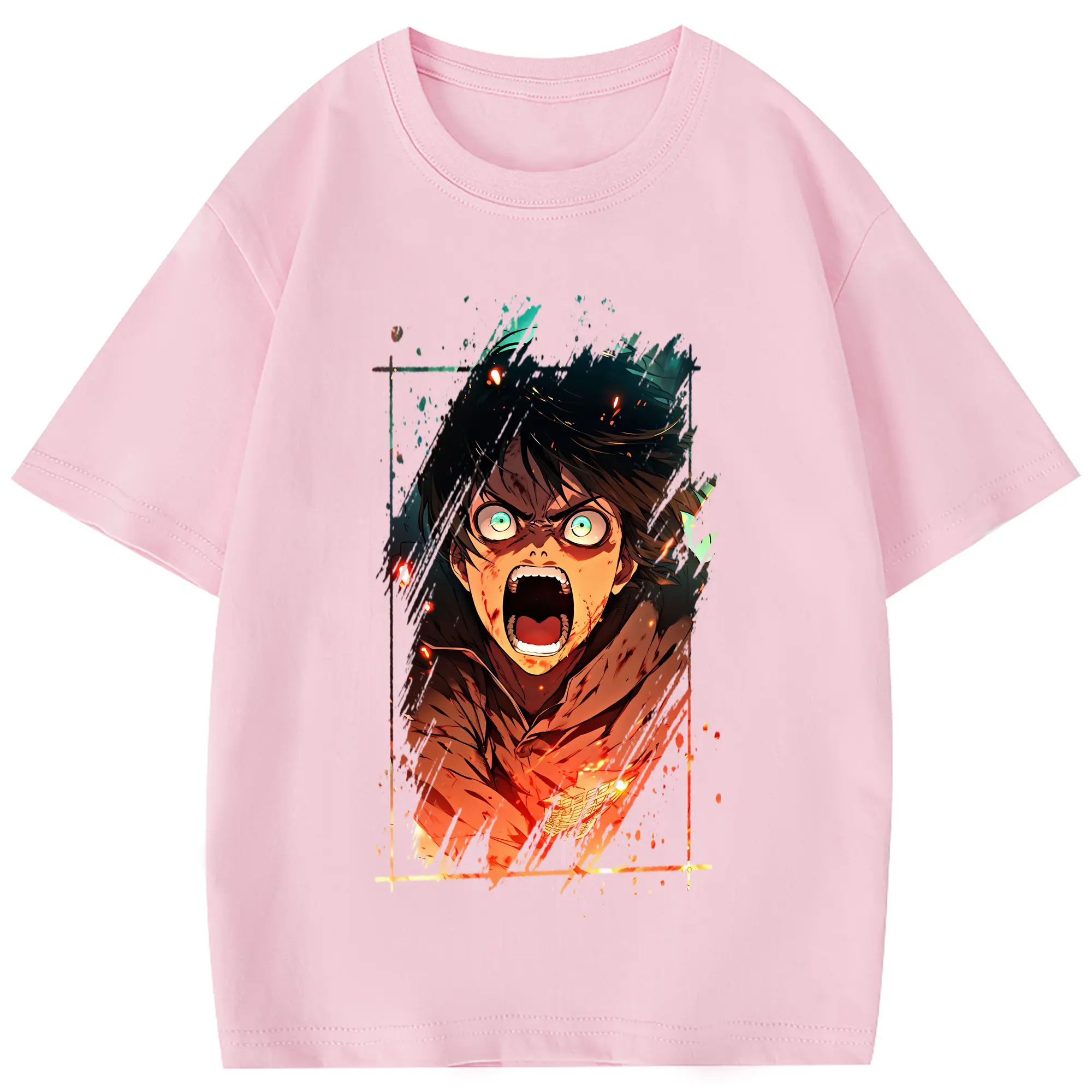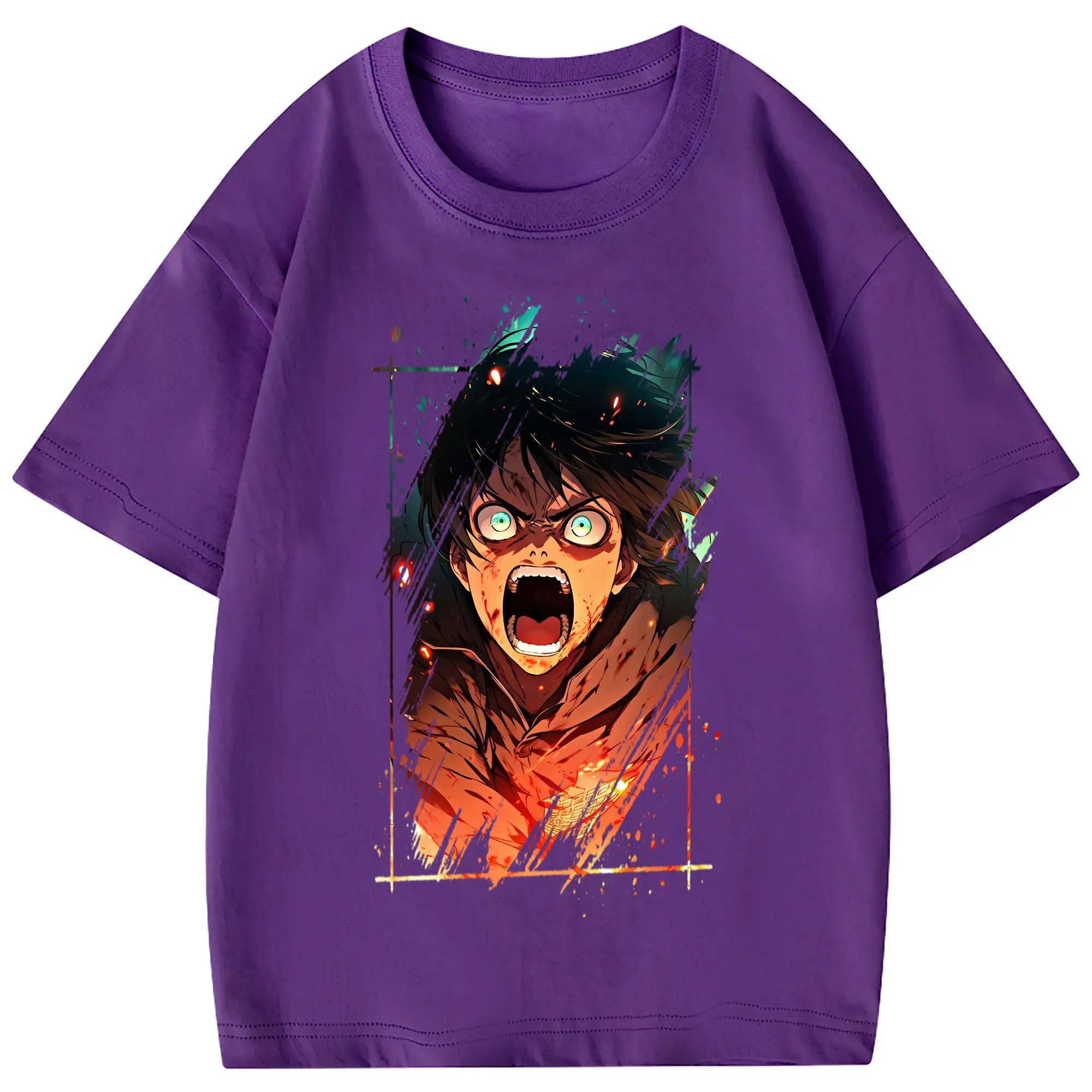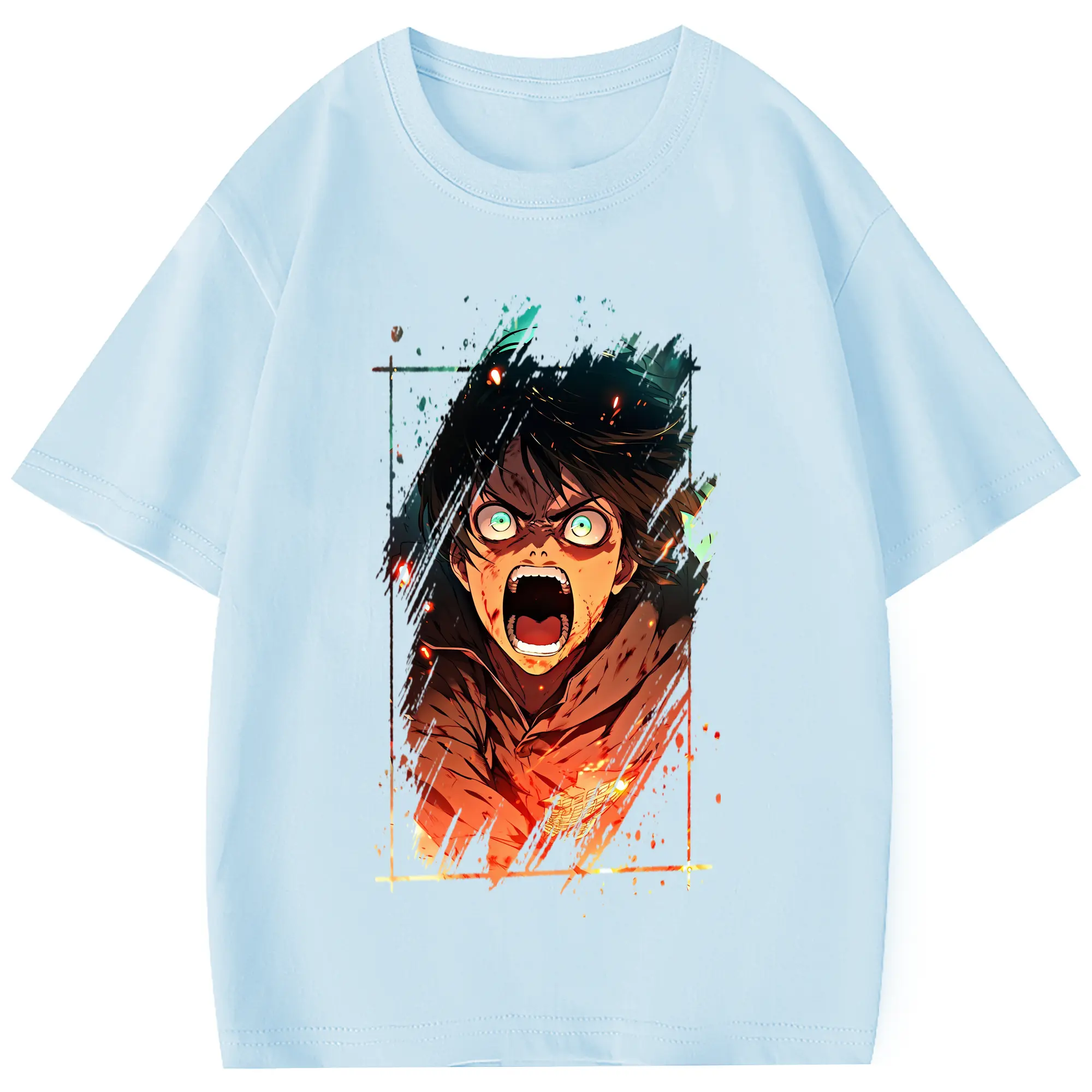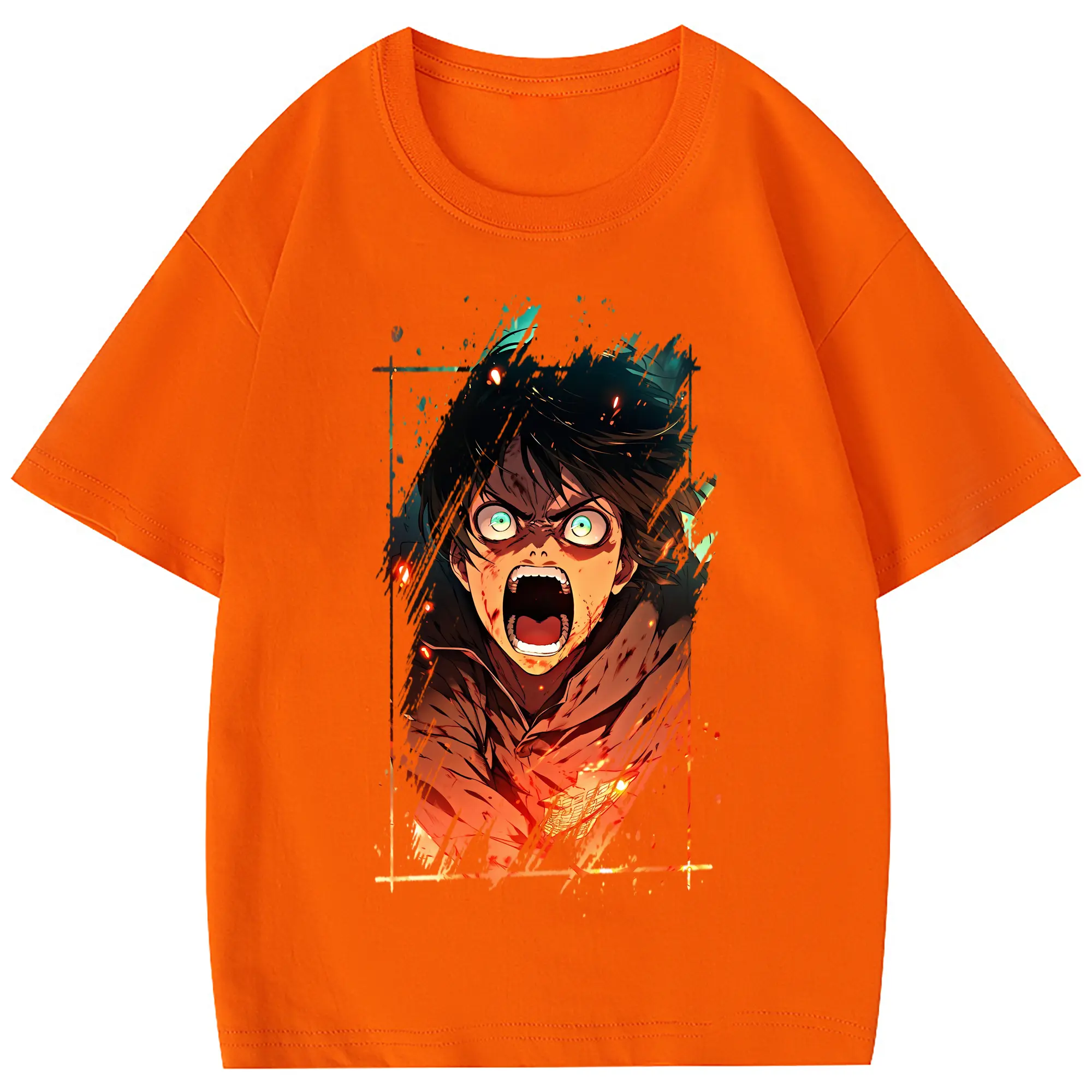 進撃の巨人 グッズ エレン・イェーガー - 綿100% 半袖Tシャツ ・ フロントプリント ・ 快適 通気性 ・ 日常使い 散歩 スポーツ用