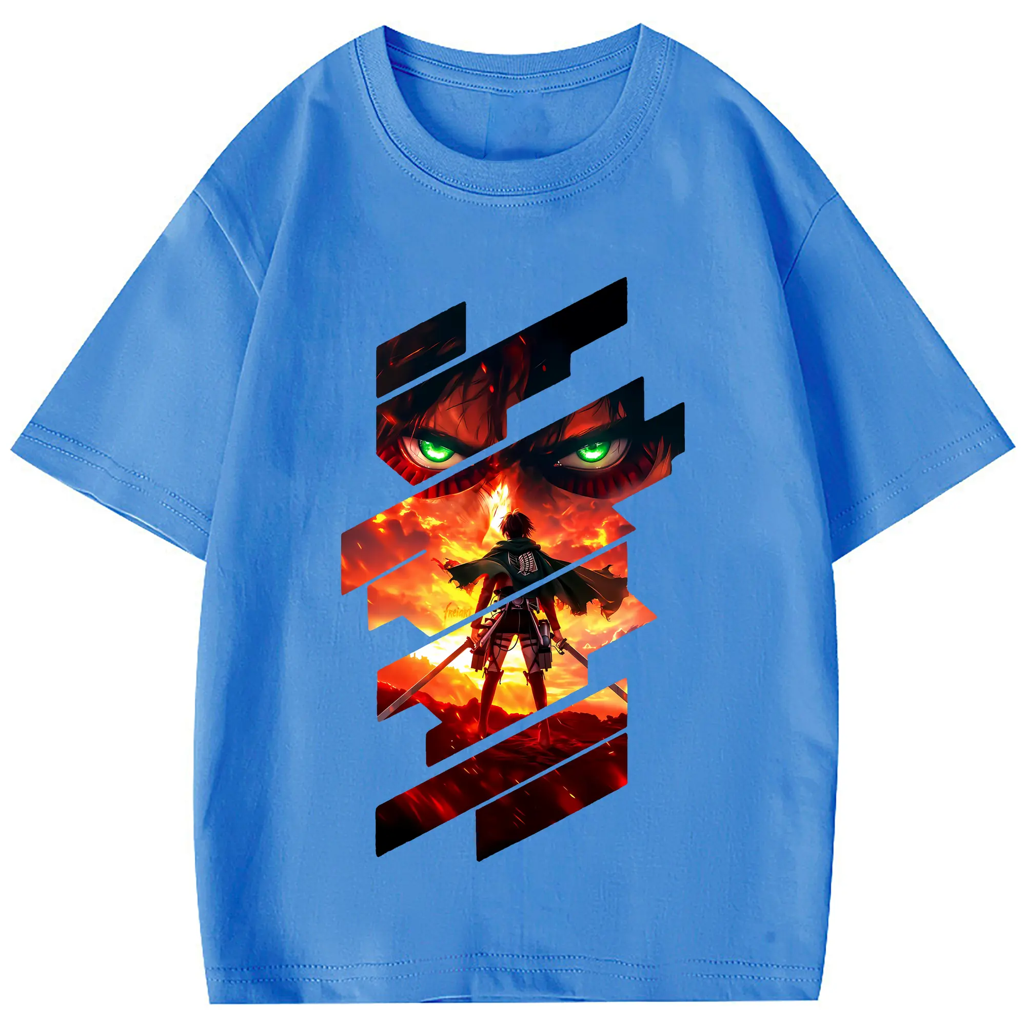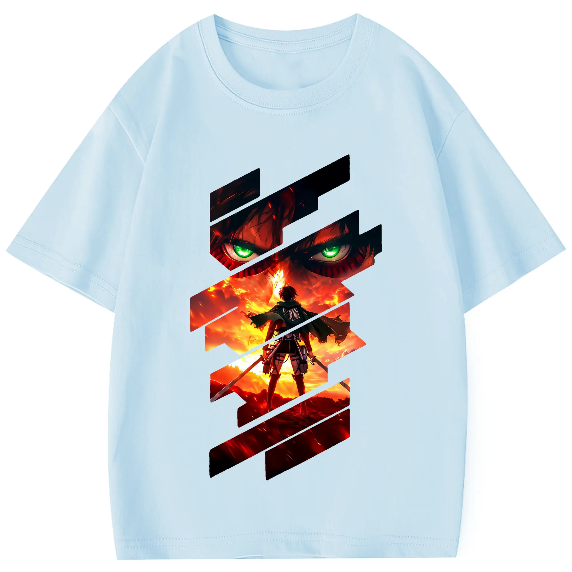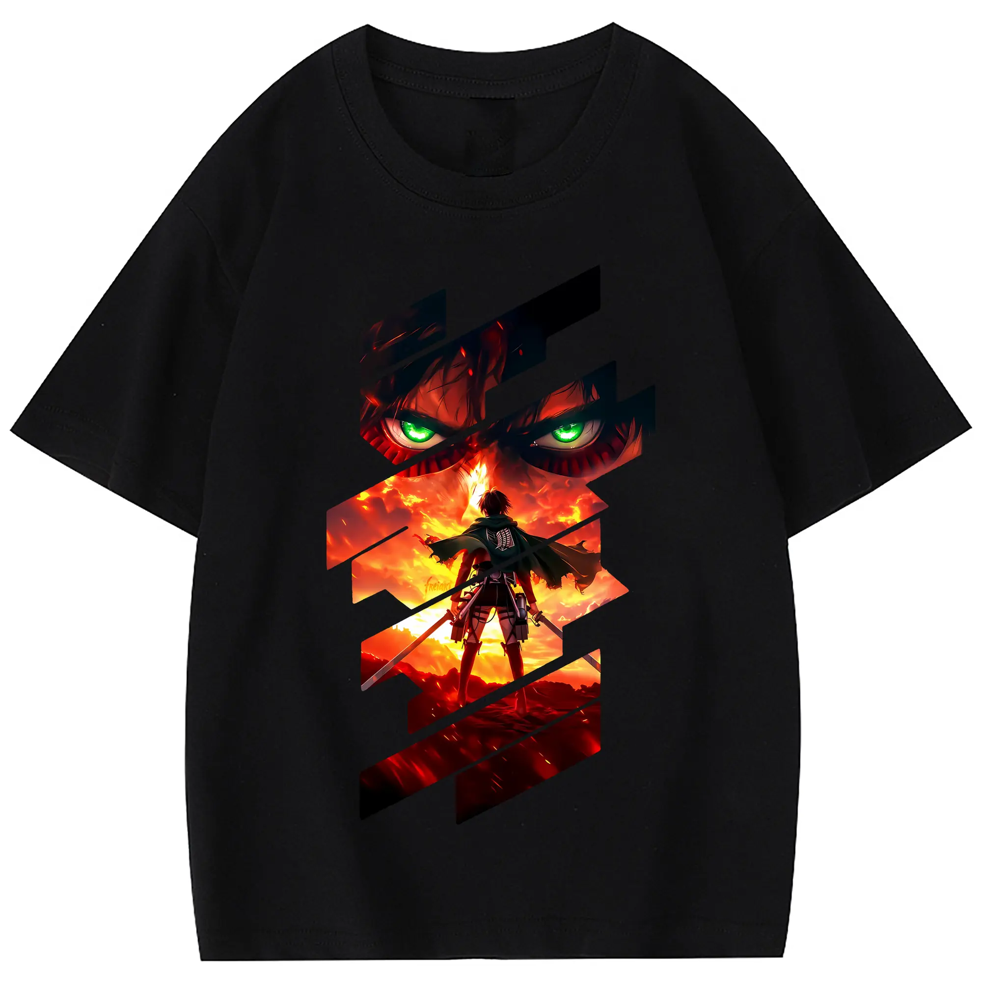 進撃の巨人 グッズ エレン・イェーガー - 綿100% 半袖Tシャツ ・ フロントプリント ・ 快適 通気性 ・ 日常使い 散歩 スポーツ用