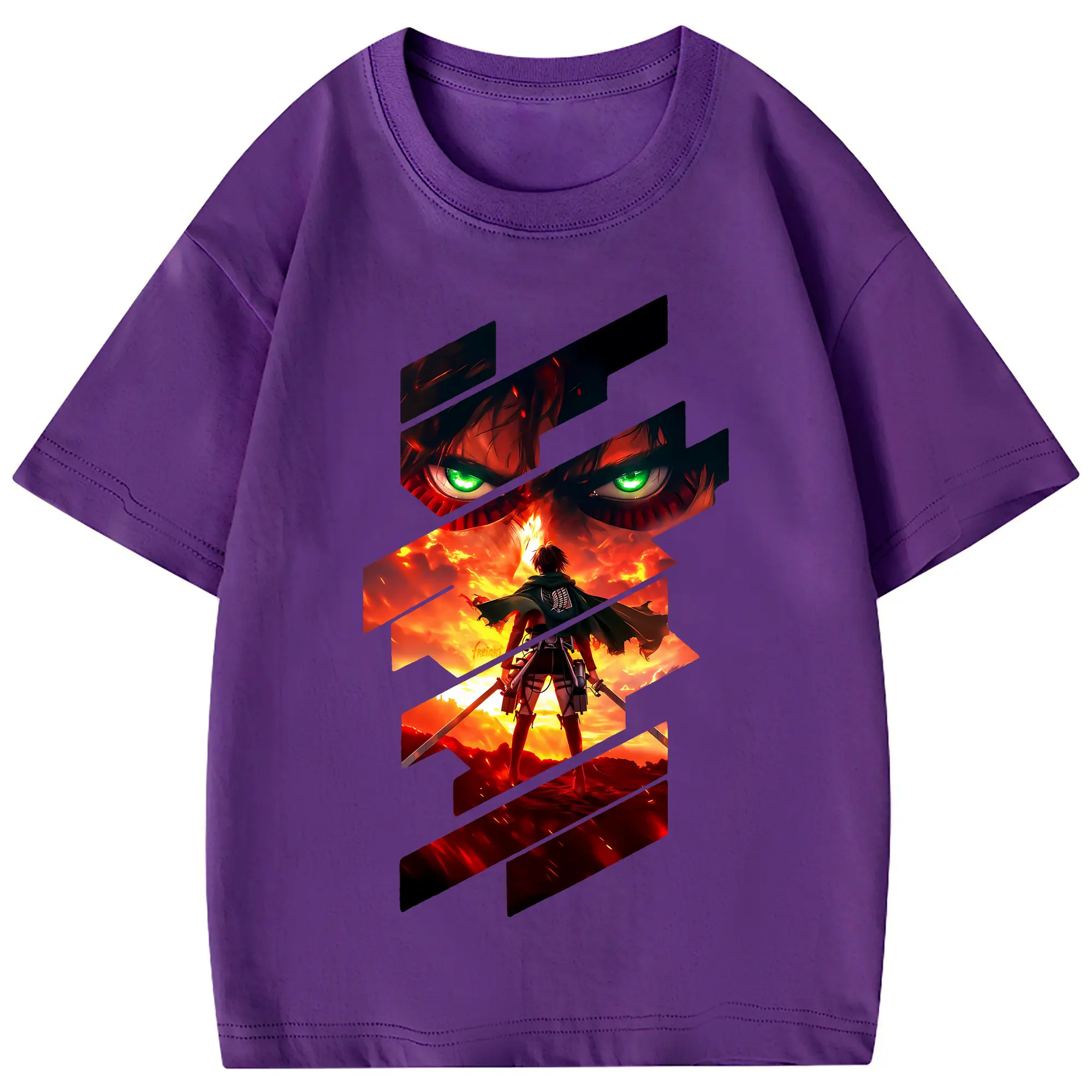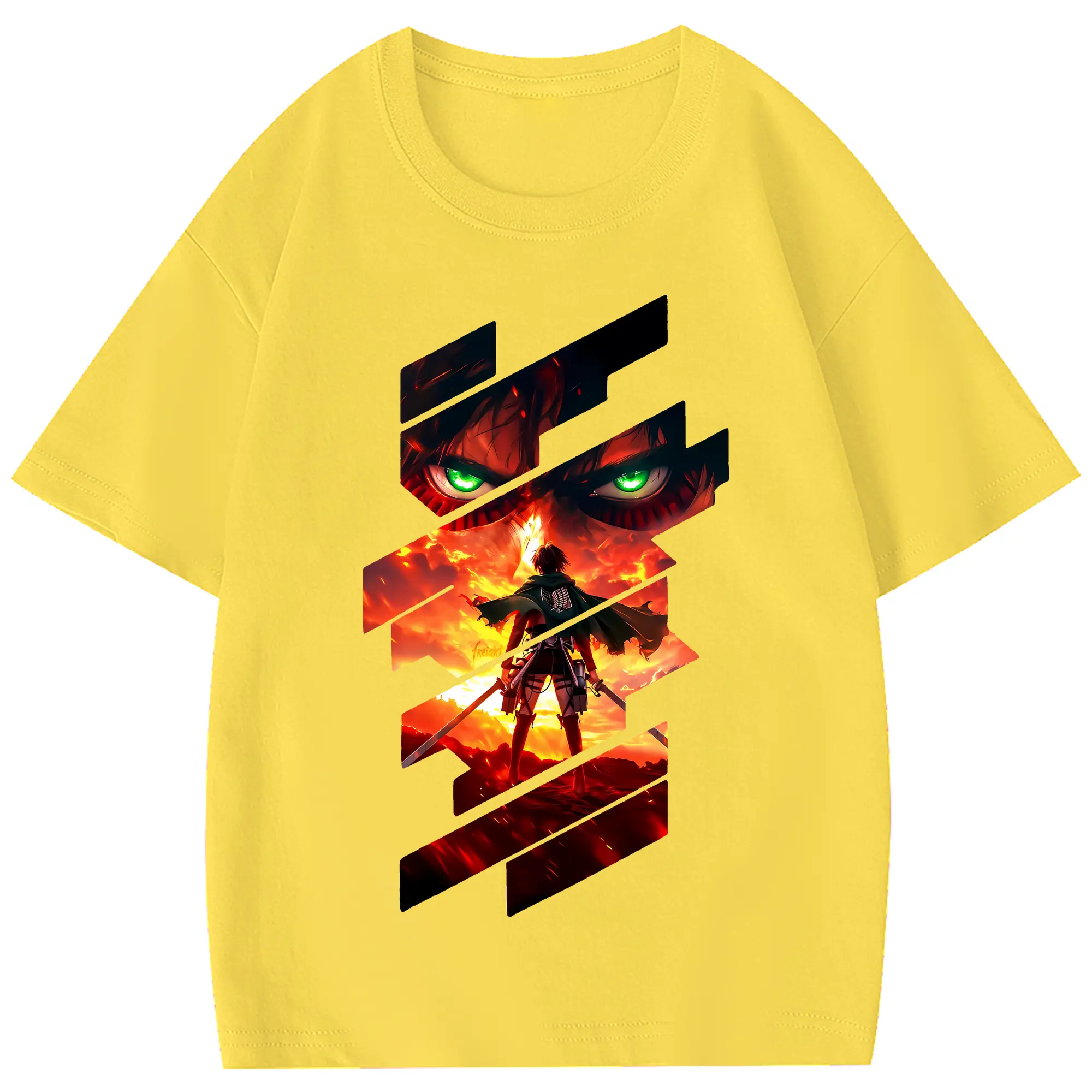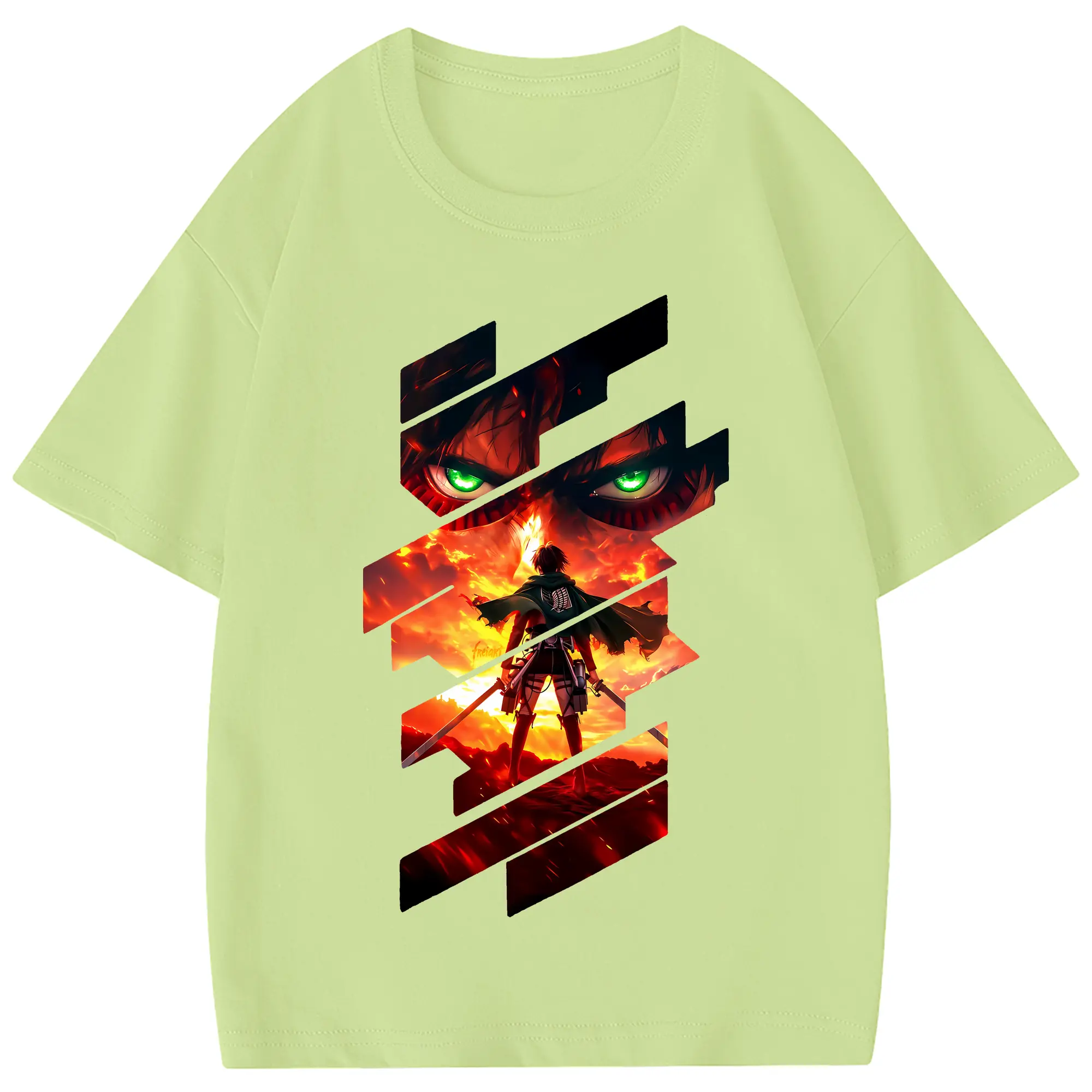 進撃の巨人 グッズ エレン・イェーガー - 綿100% 半袖Tシャツ ・ フロントプリント ・ 快適 通気性 ・ 日常使い 散歩 スポーツ用