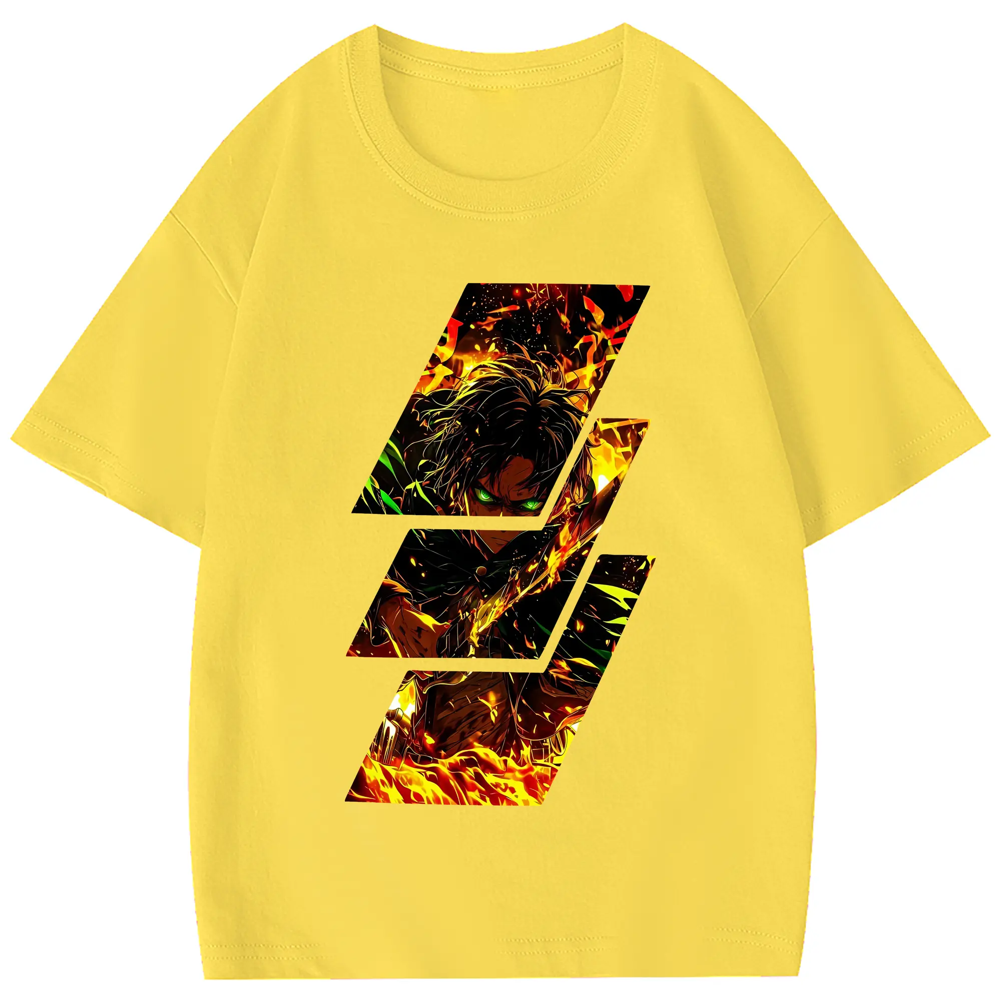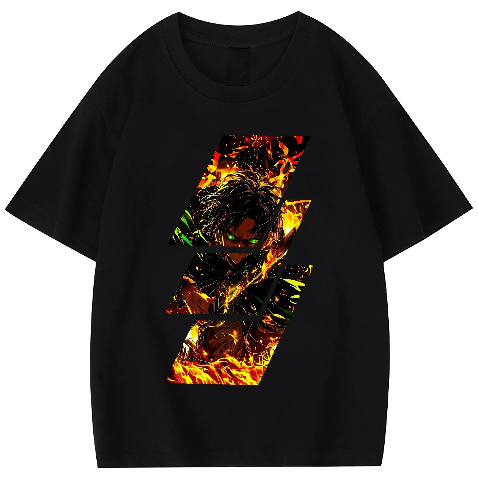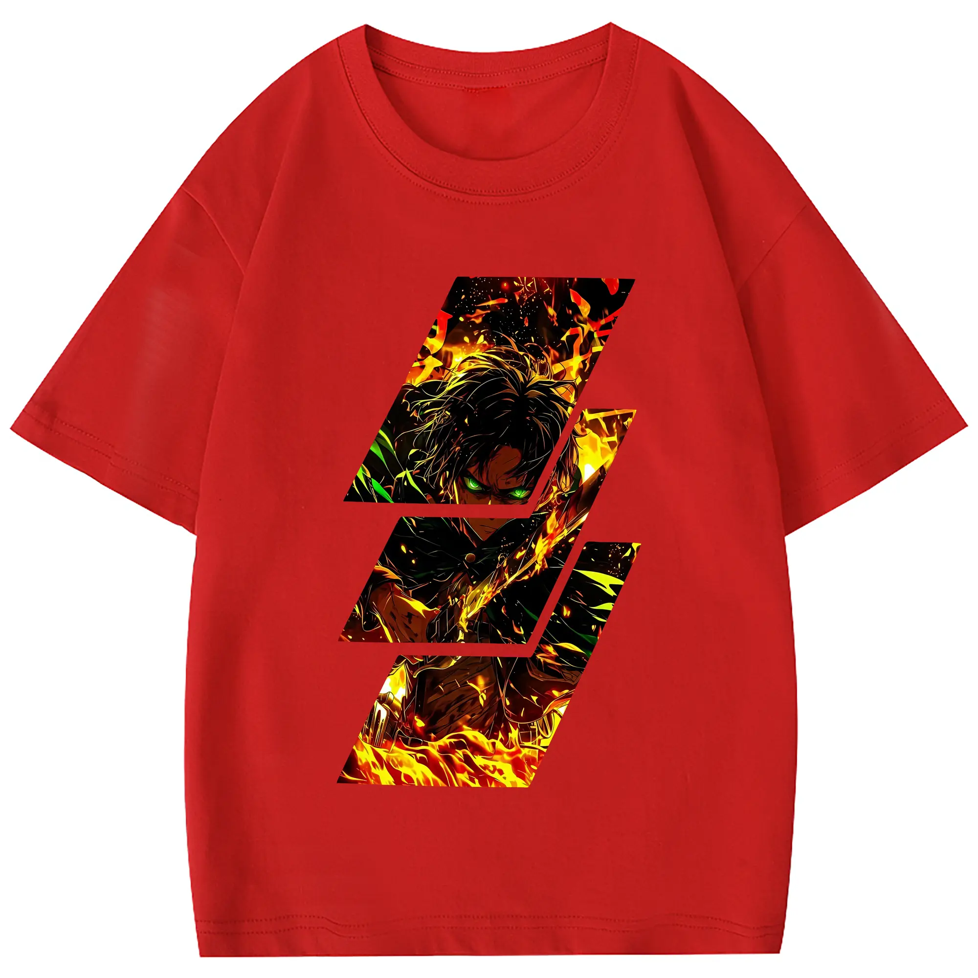 進撃の巨人 グッズ エレン・イェーガー - 綿100% 半袖Tシャツ ・ フロントプリント ・ 快適 通気性 ・ 日常使い 散歩 スポーツ用