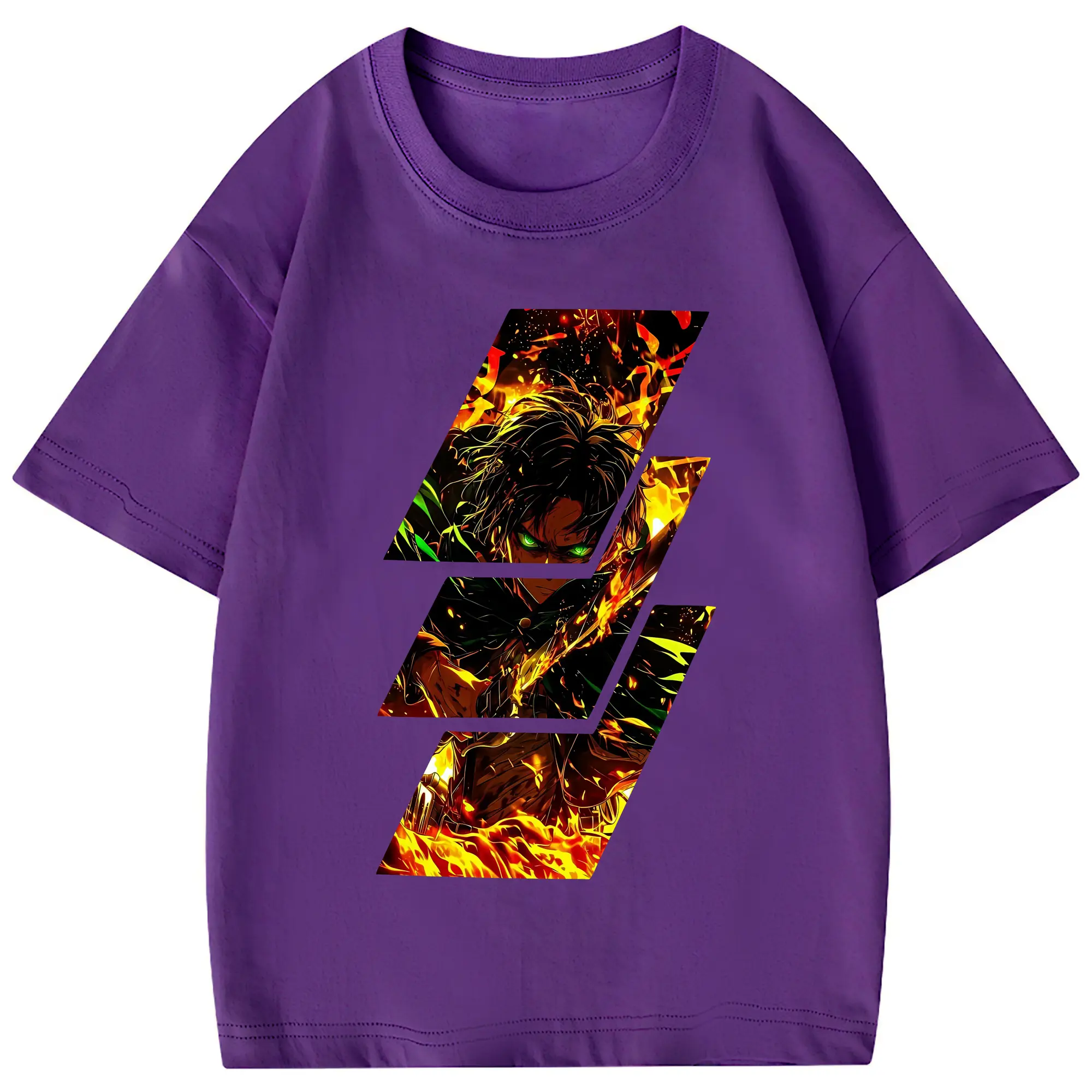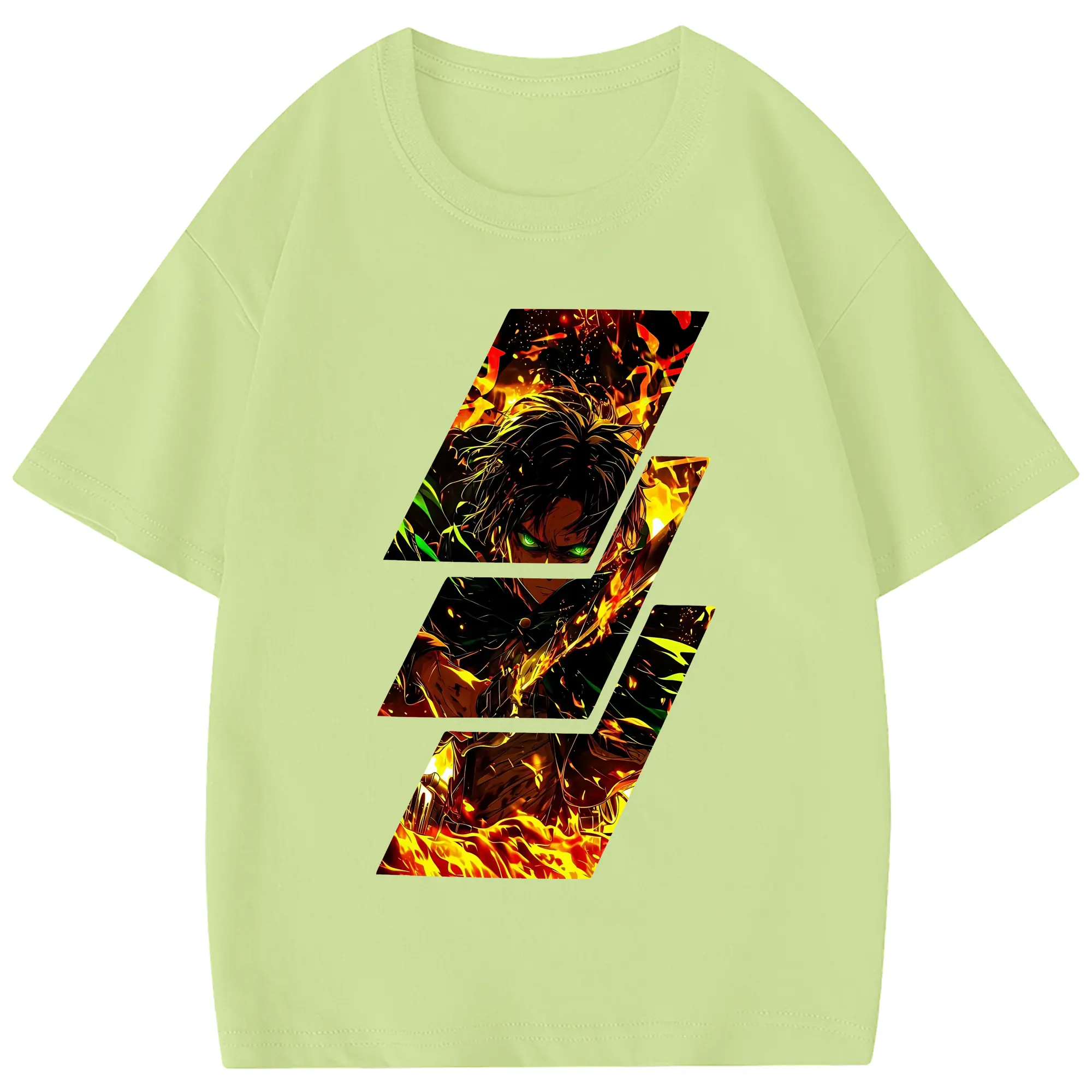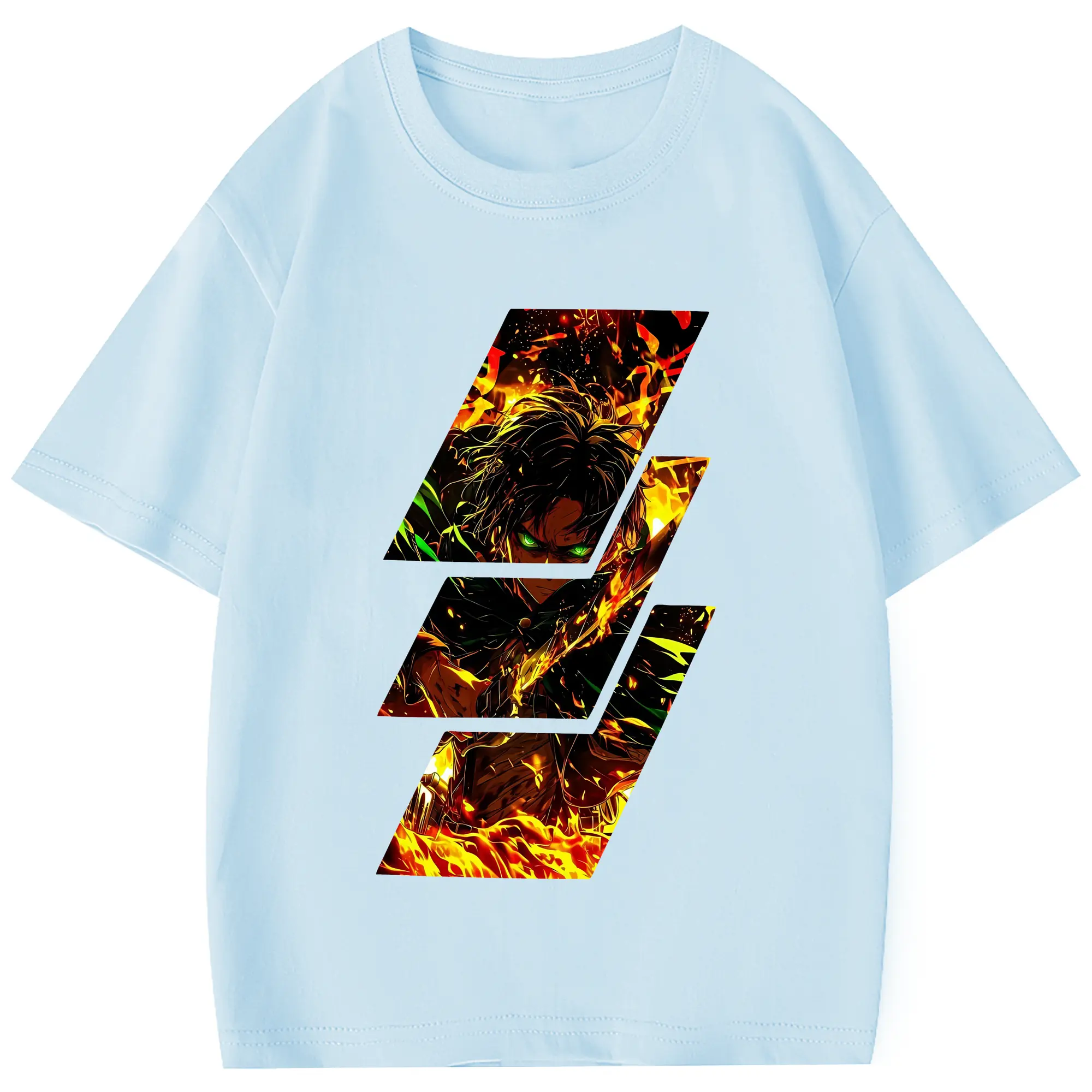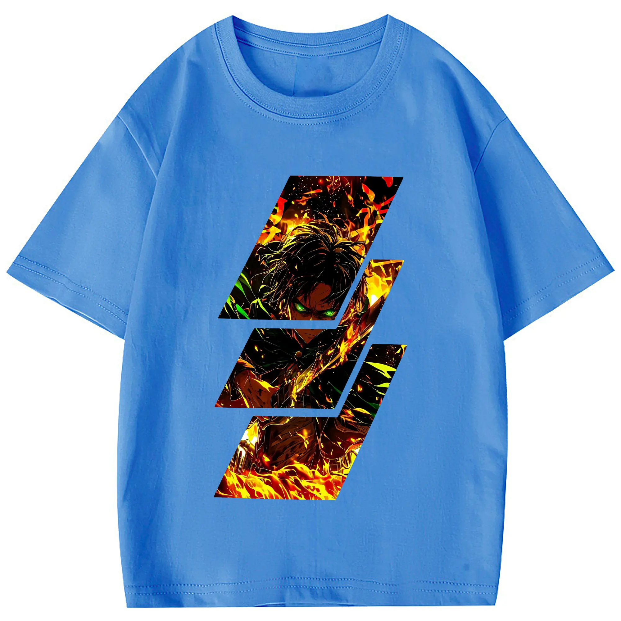 進撃の巨人 グッズ エレン・イェーガー - 綿100% 半袖Tシャツ ・ フロントプリント ・ 快適 通気性 ・ 日常使い 散歩 スポーツ用