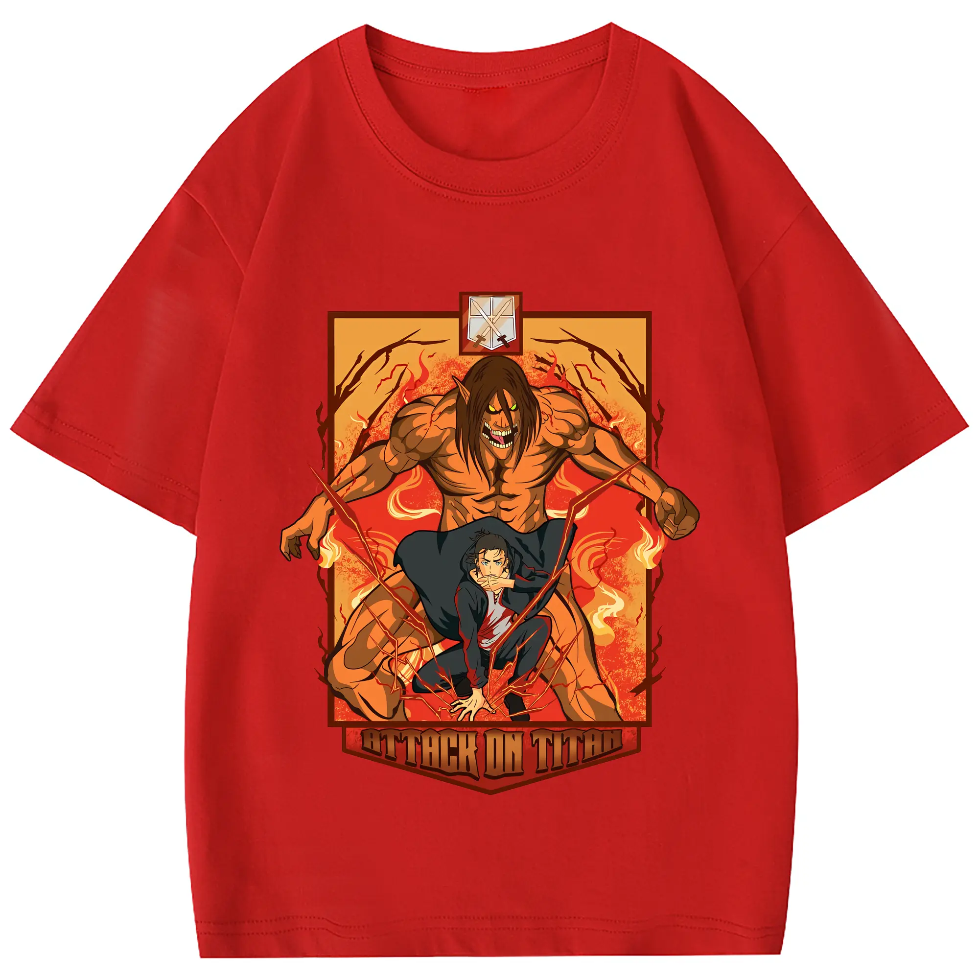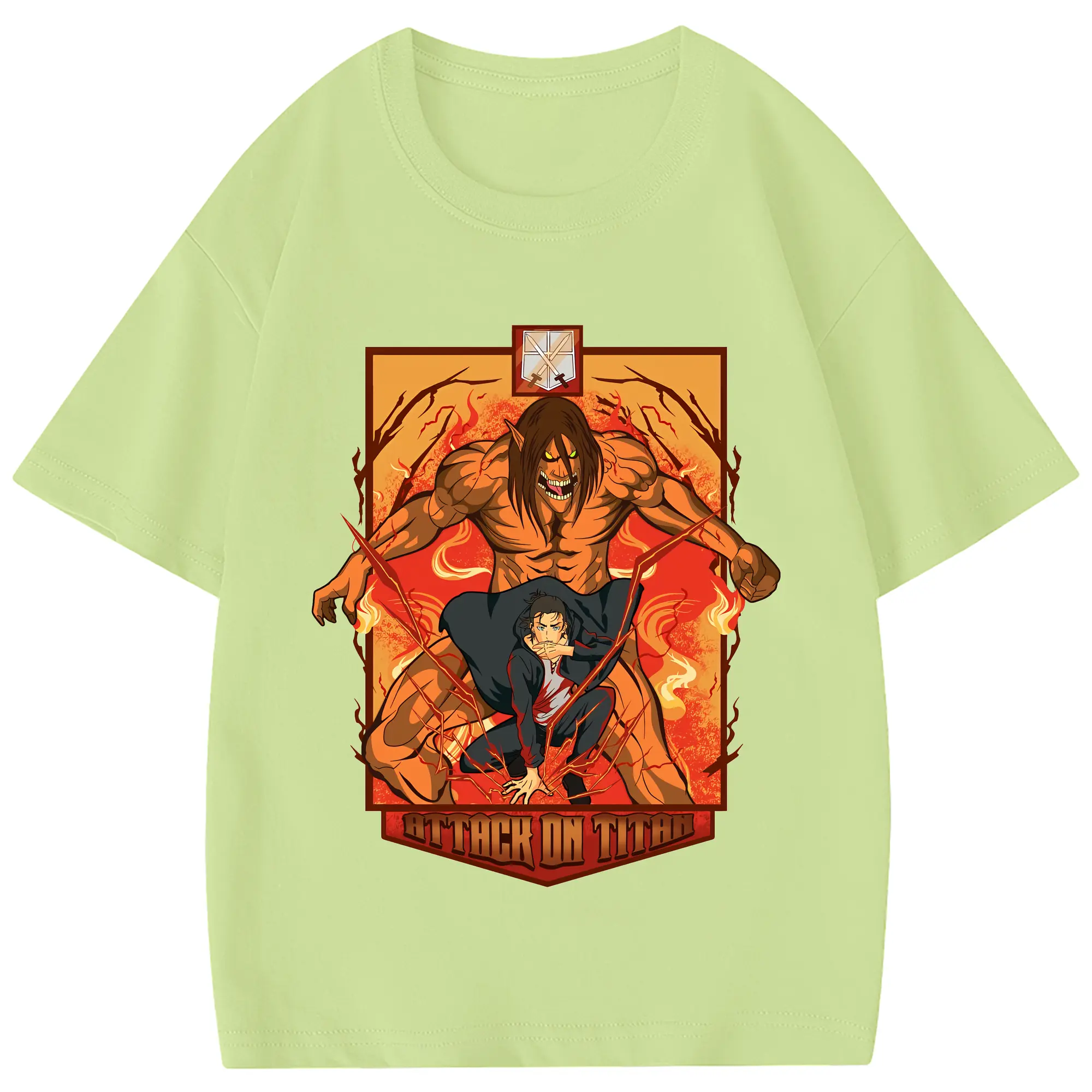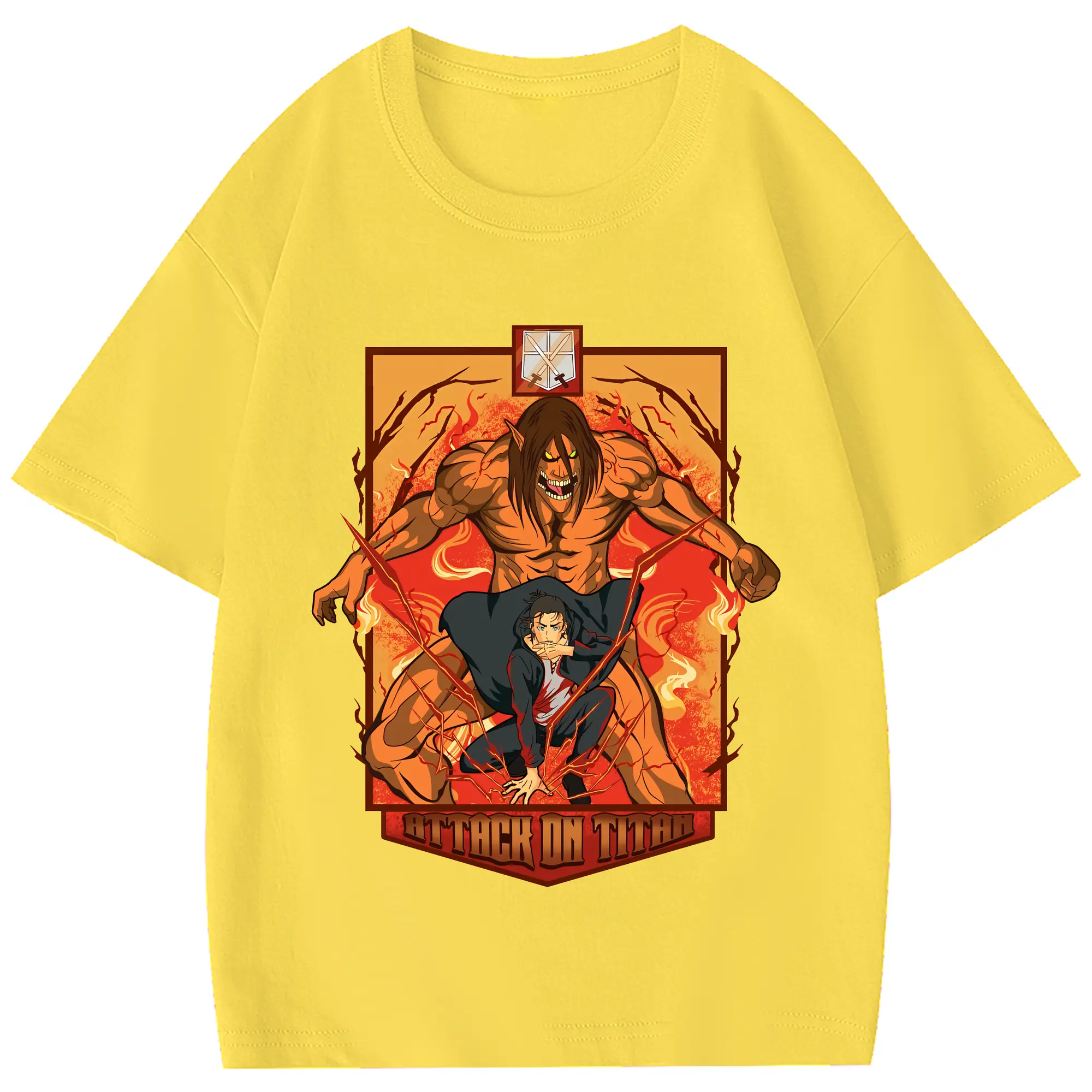 進撃の巨人 グッズ エレン・イェーガー - 綿100% 半袖Tシャツ ・ フロントプリント ・ 快適 通気性 ・ 日常使い 散歩 スポーツ用