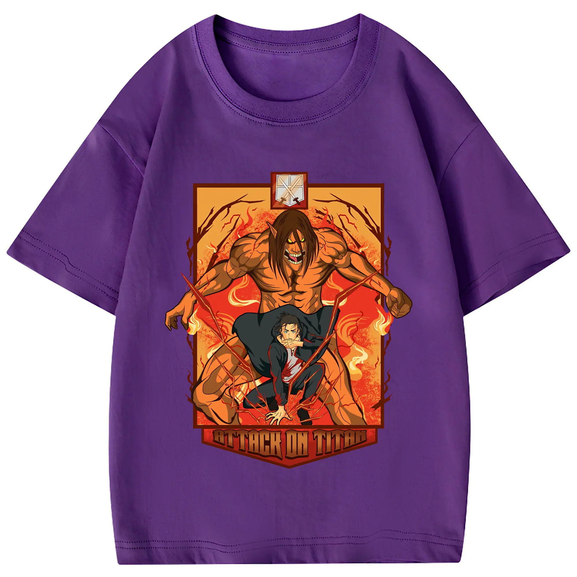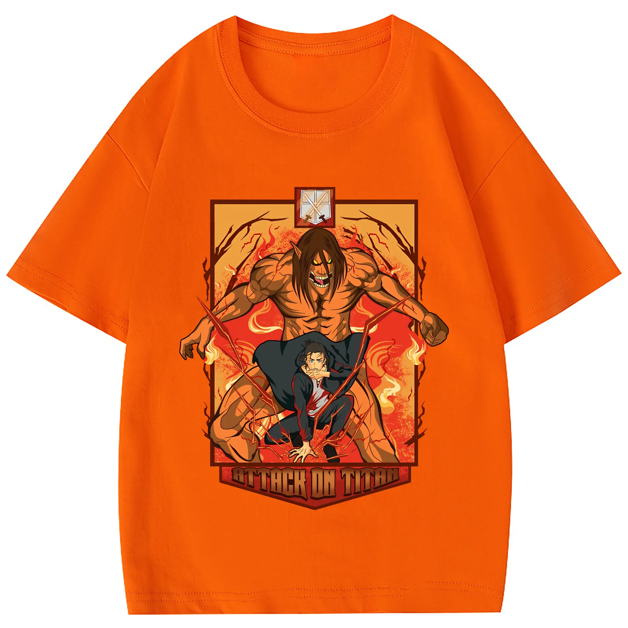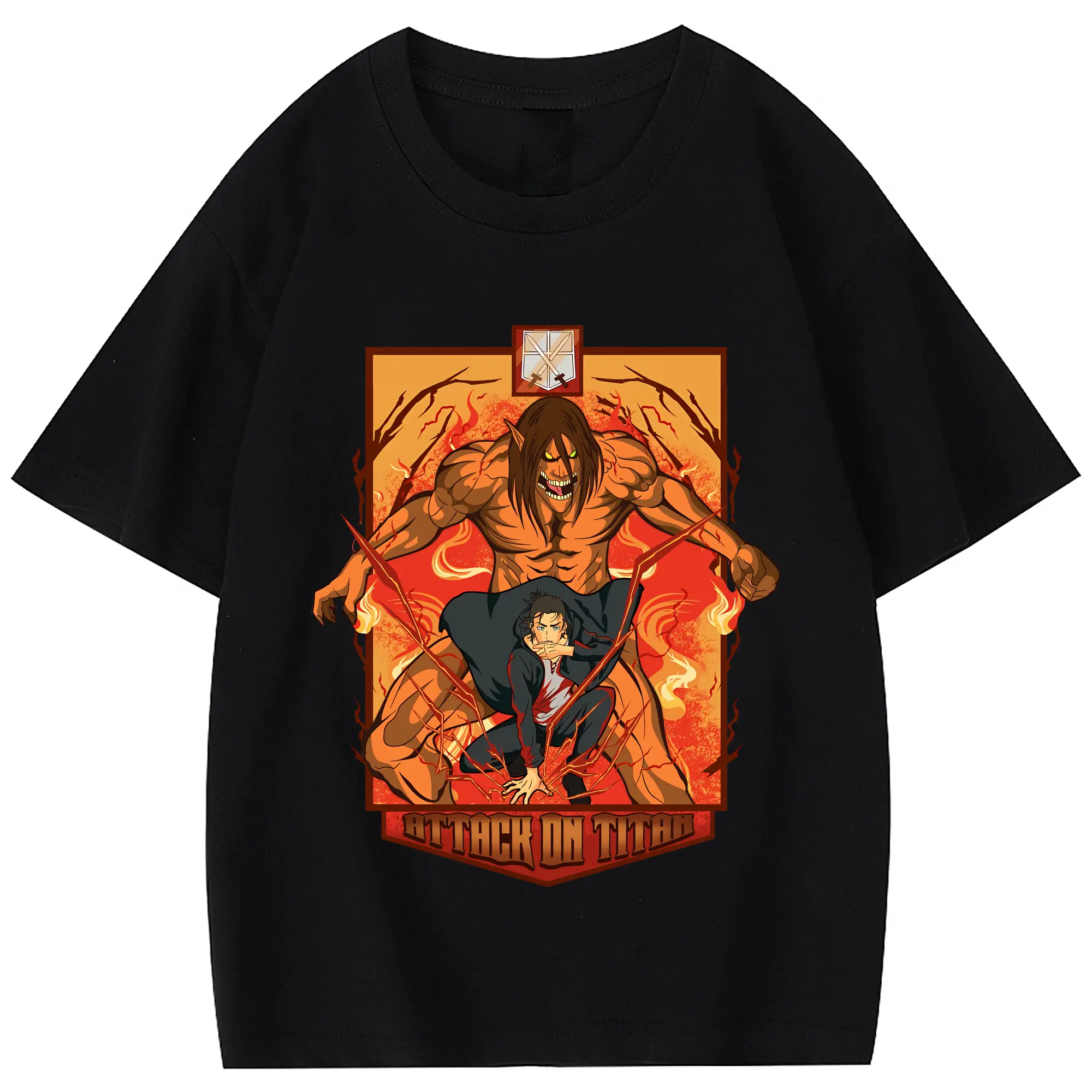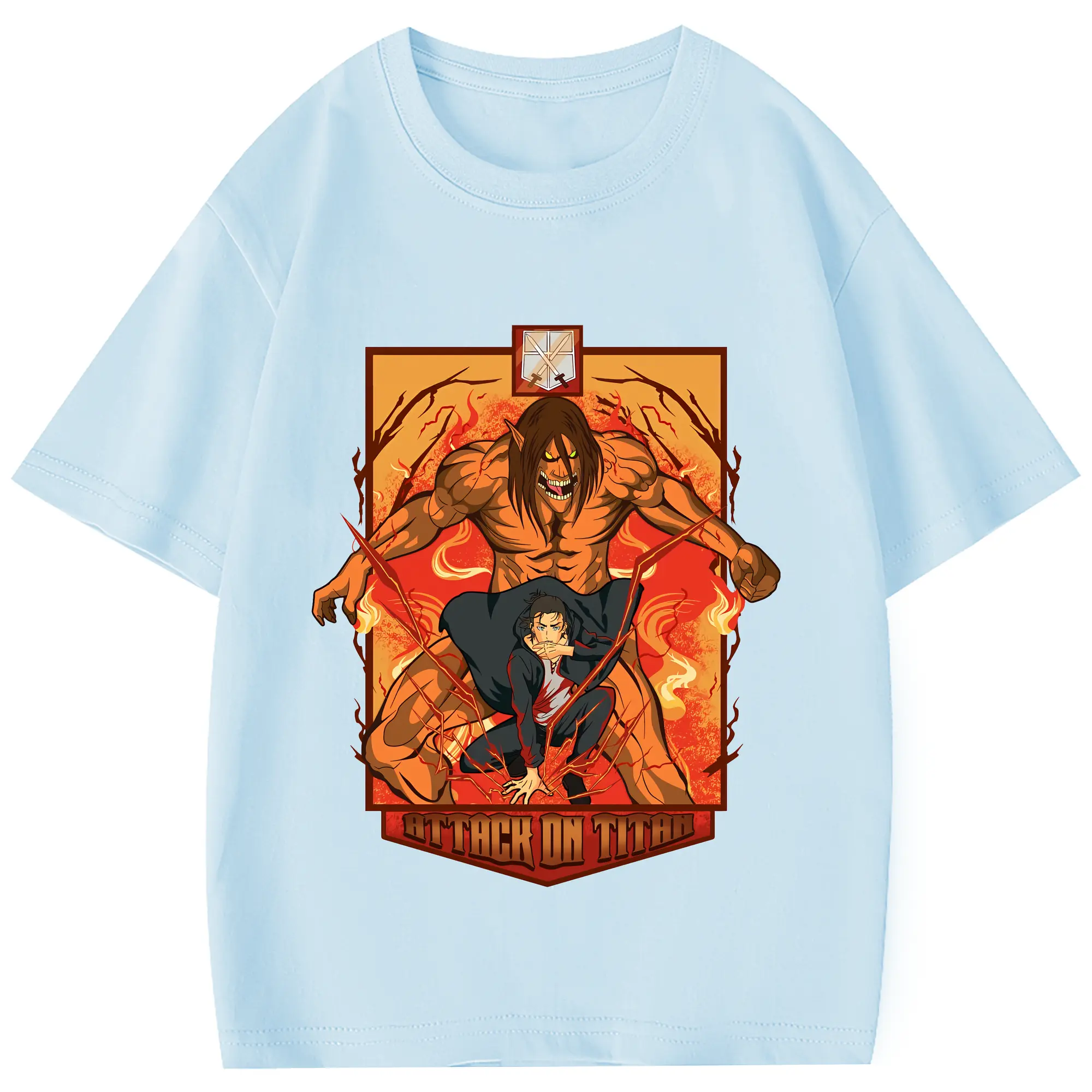 進撃の巨人 グッズ エレン・イェーガー - 綿100% 半袖Tシャツ ・ フロントプリント ・ 快適 通気性 ・ 日常使い 散歩 スポーツ用