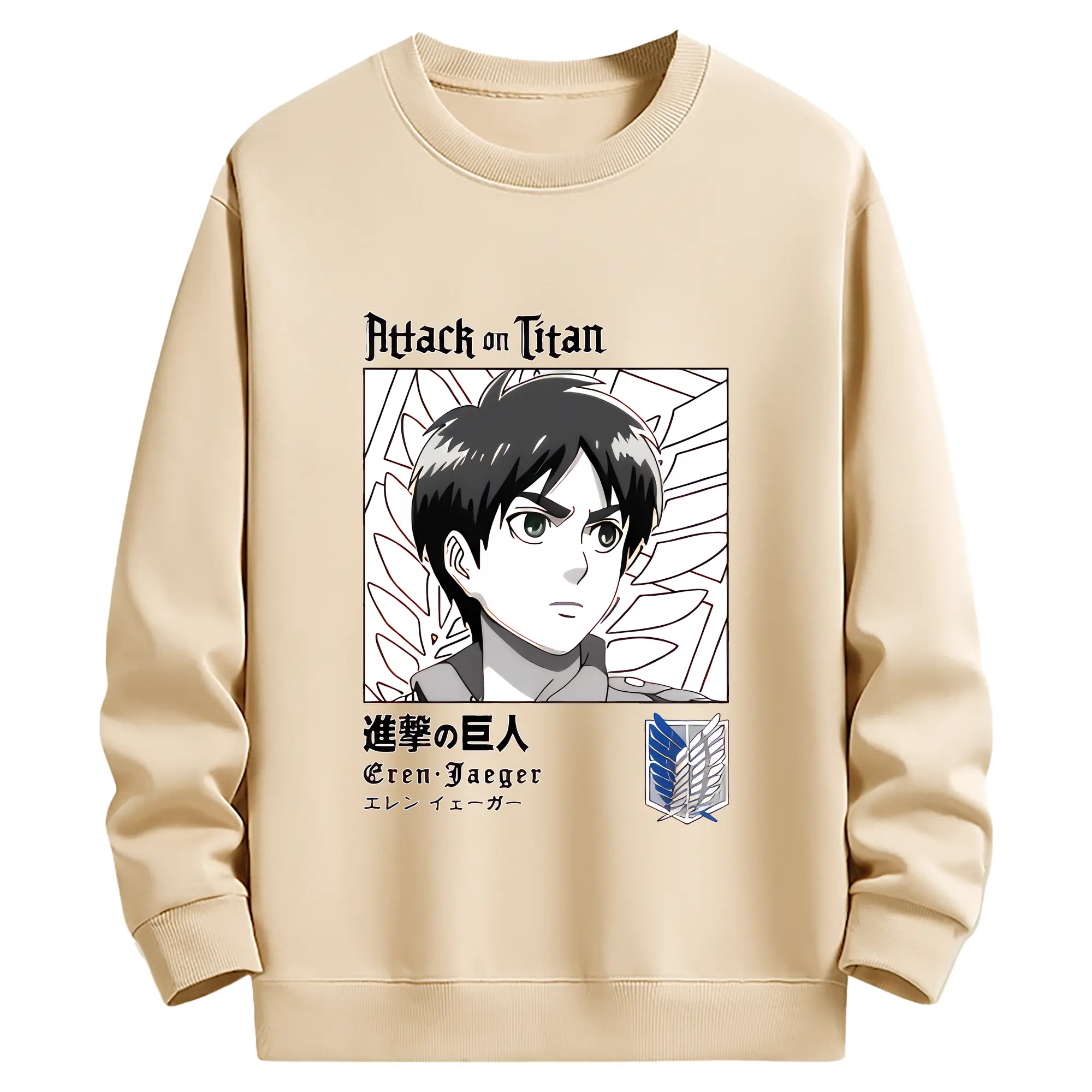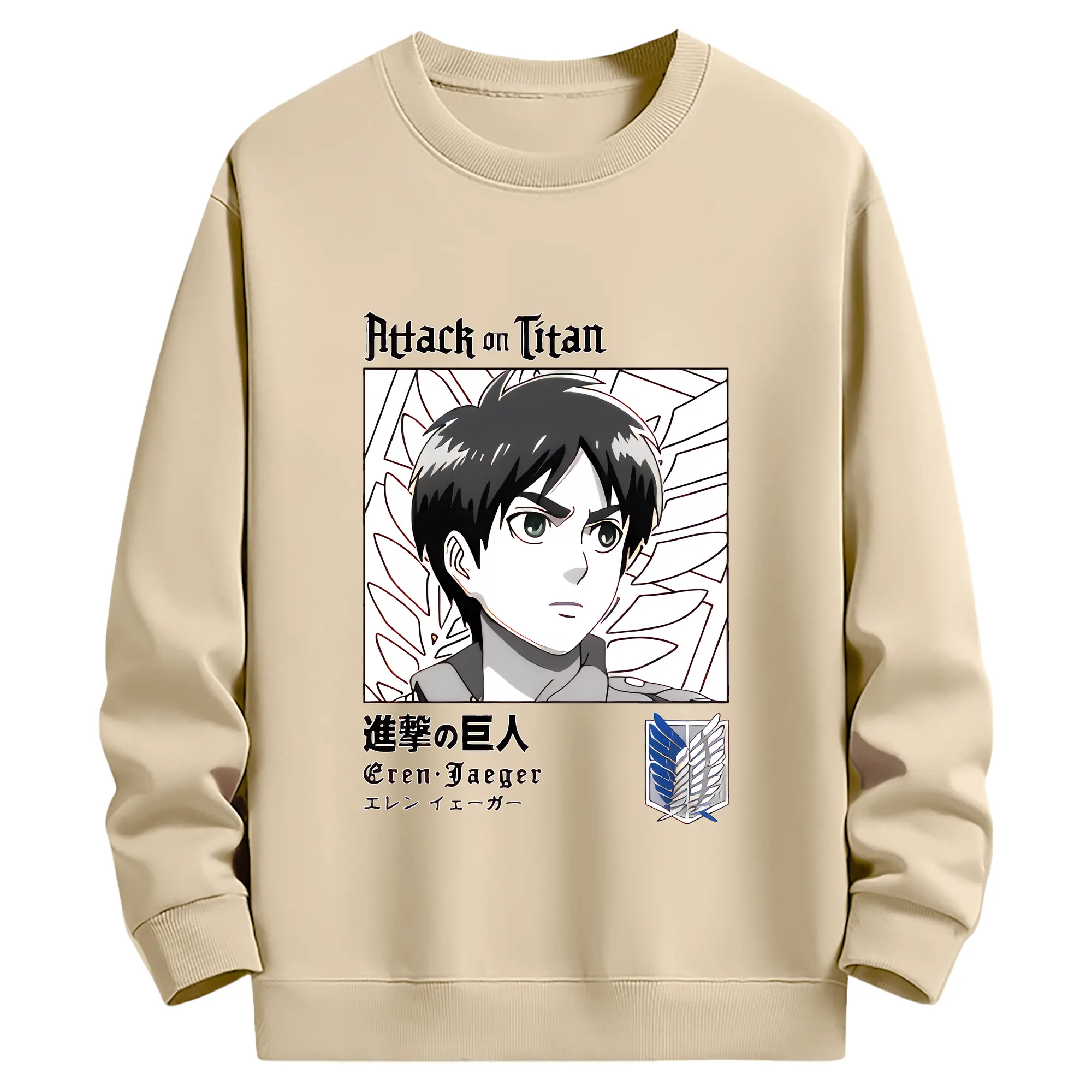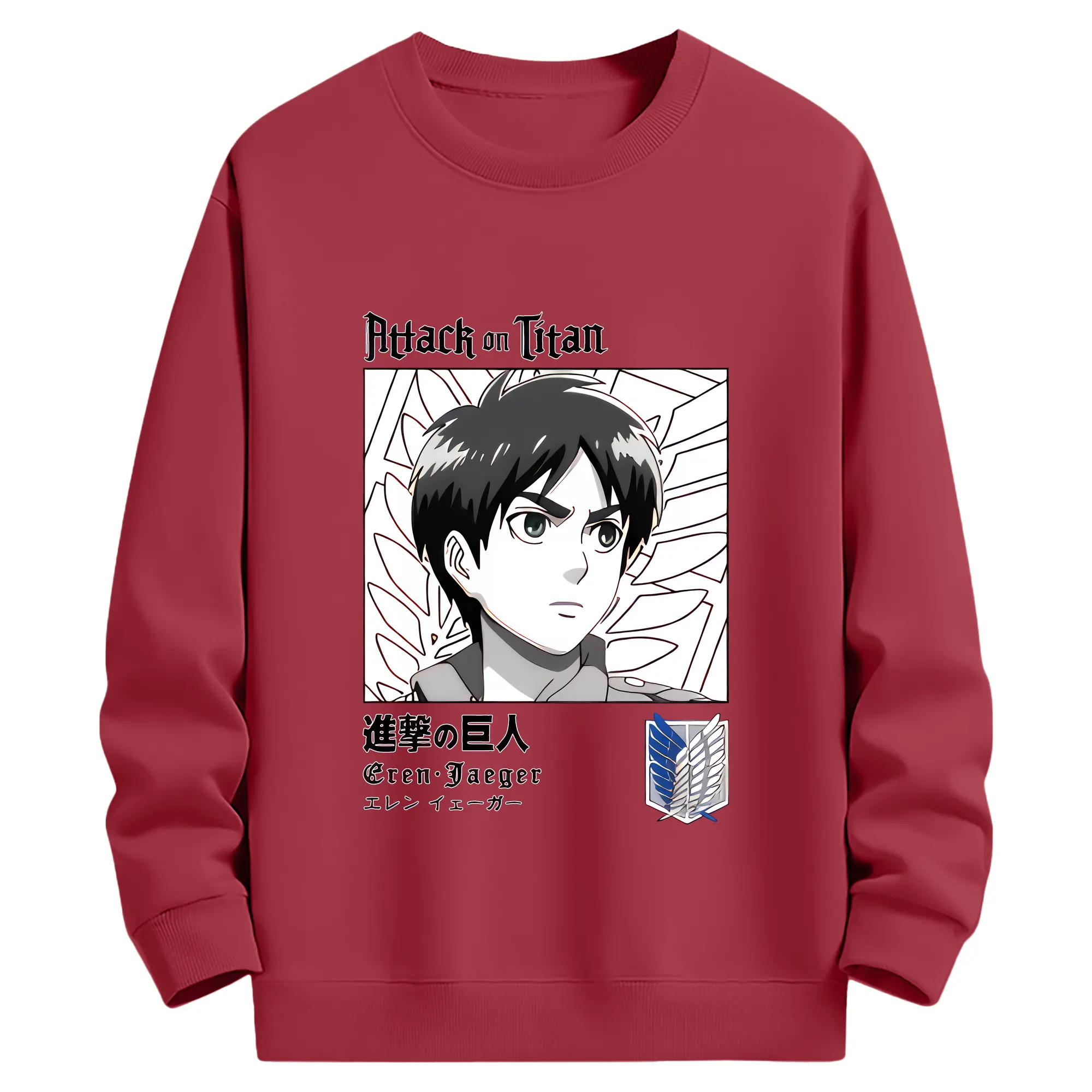 進撃の巨人 グッズ エレン・イェーガー - 薄手 クルーネック スウェット 裏毛260g · ポリエステル 春秋向け カジュアル 男女兼用 · トレーナー デイリー スポーツ 散歩に最適