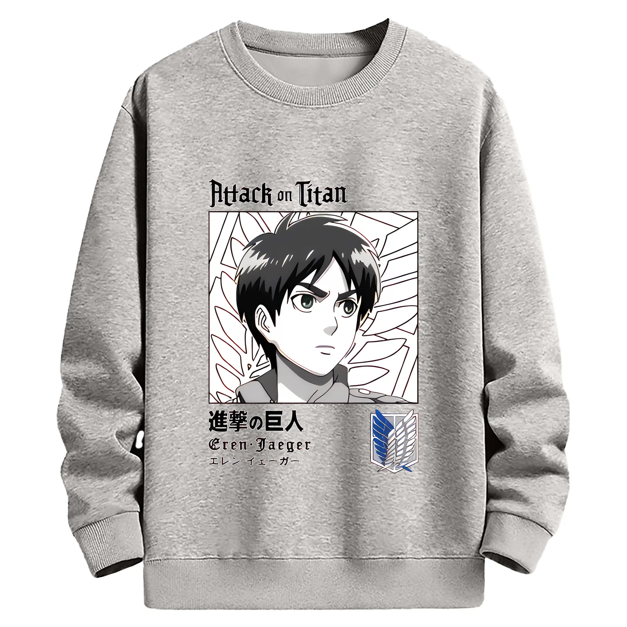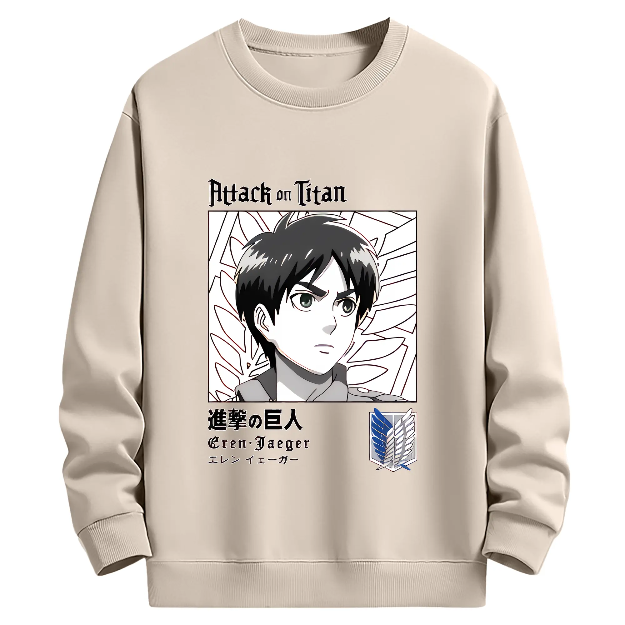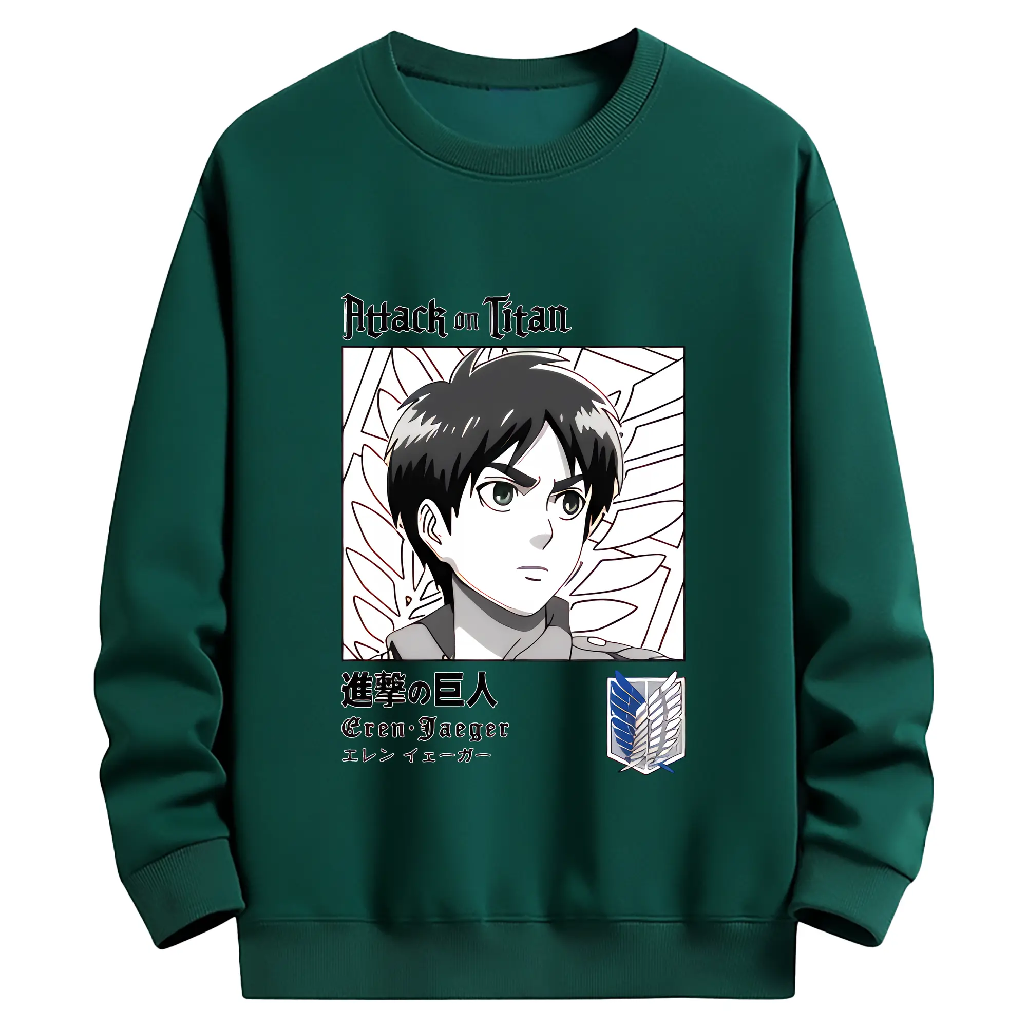 進撃の巨人 グッズ エレン・イェーガー - 薄手 クルーネック スウェット 裏毛260g · ポリエステル 春秋向け カジュアル 男女兼用 · トレーナー デイリー スポーツ 散歩に最適