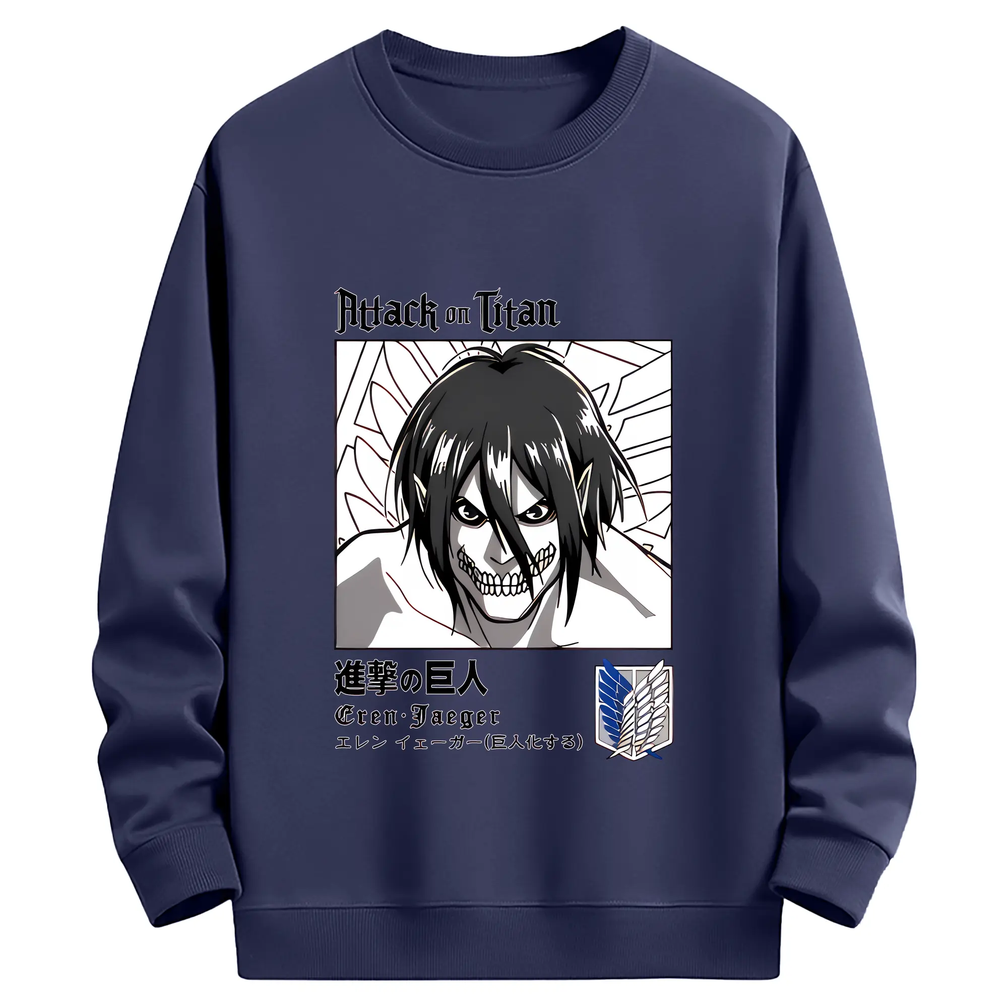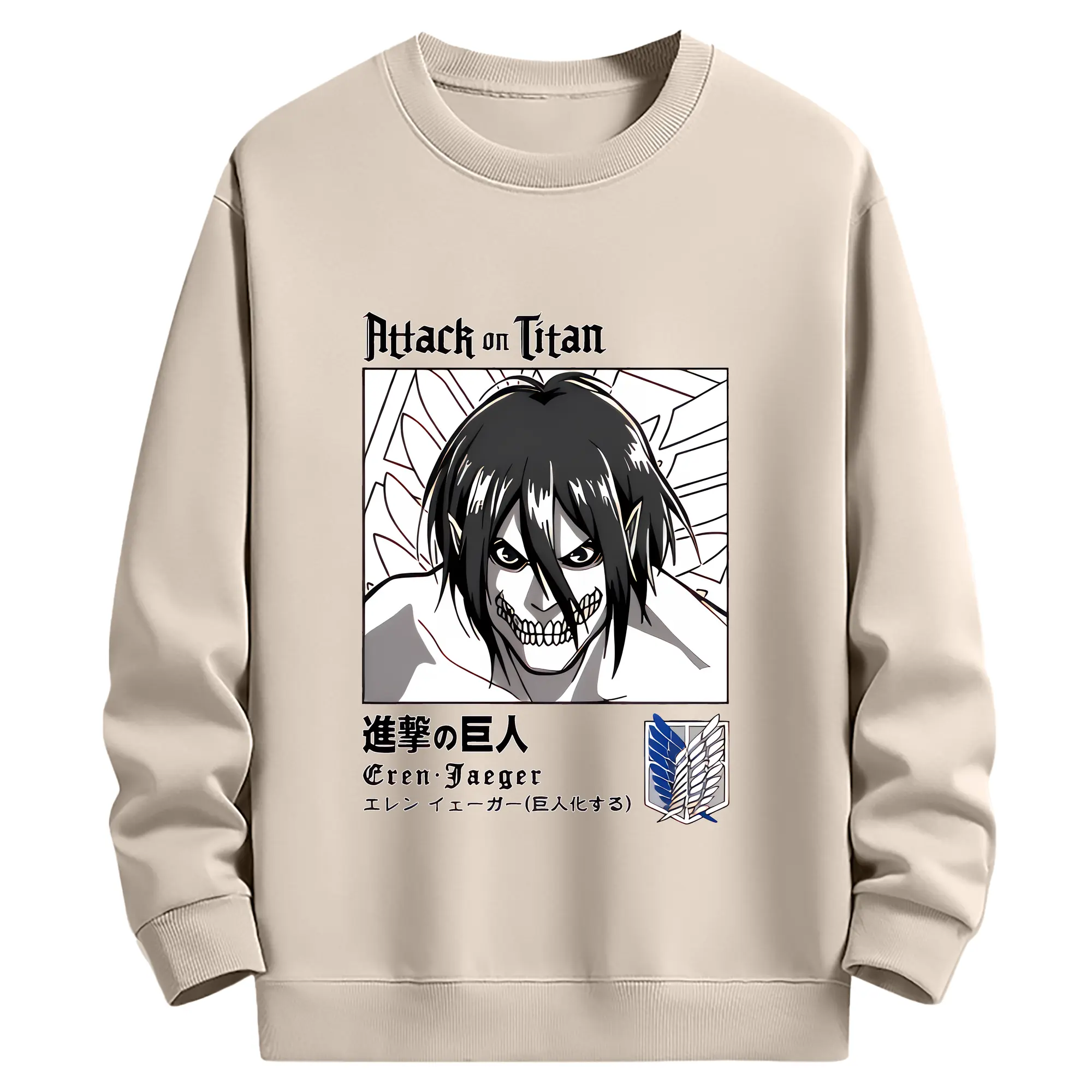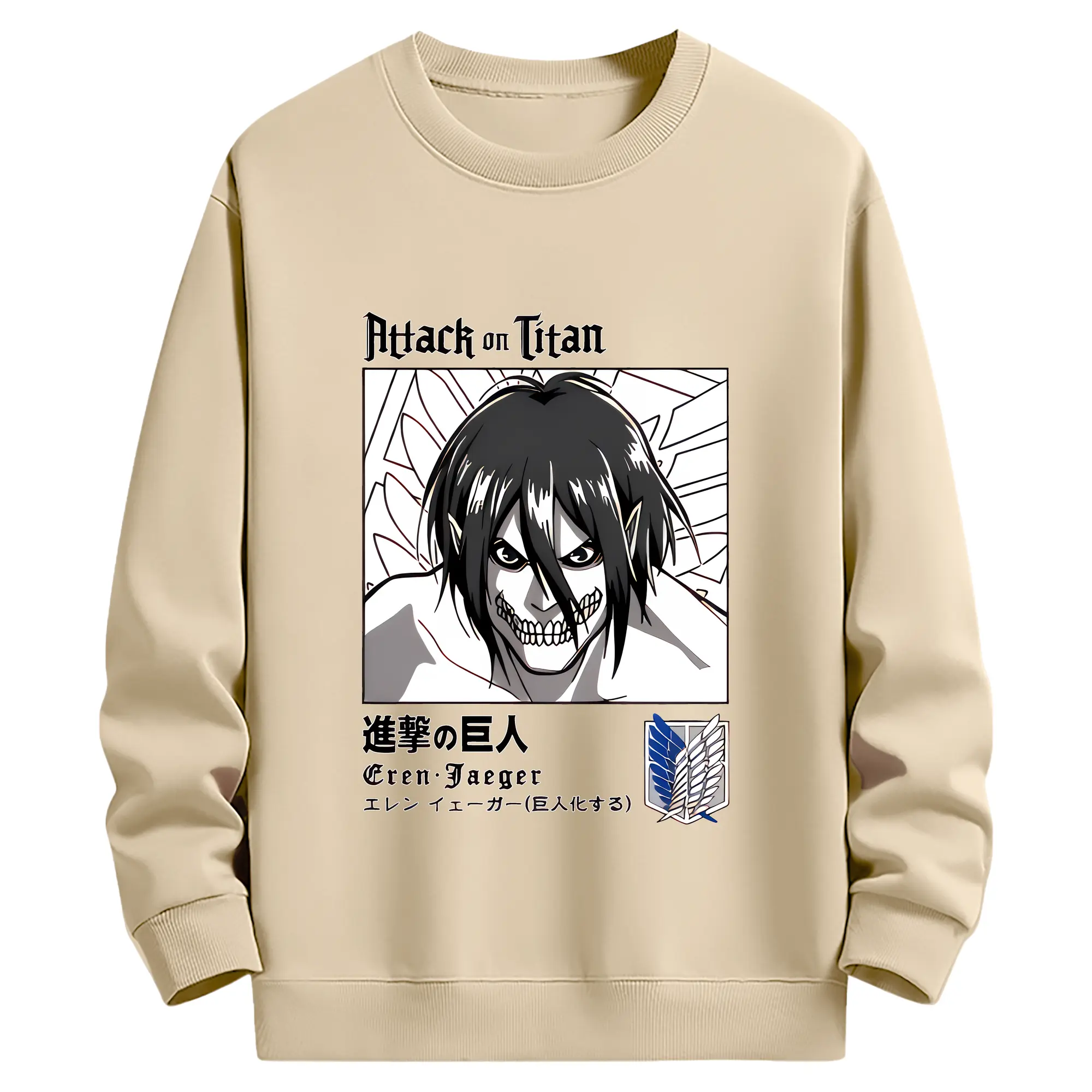 進撃の巨人 グッズ エレン・イェーガー - 薄手 クルーネック スウェット 裏毛260g · ポリエステル 春秋向け カジュアル 男女兼用 · トレーナー デイリー スポーツ 散歩に最適