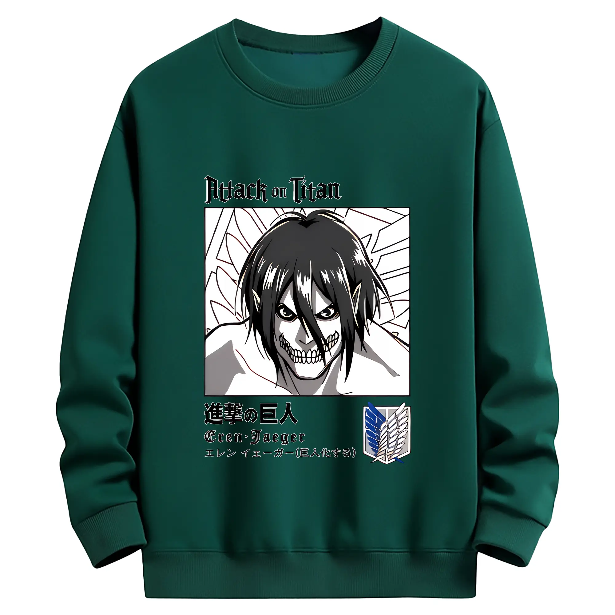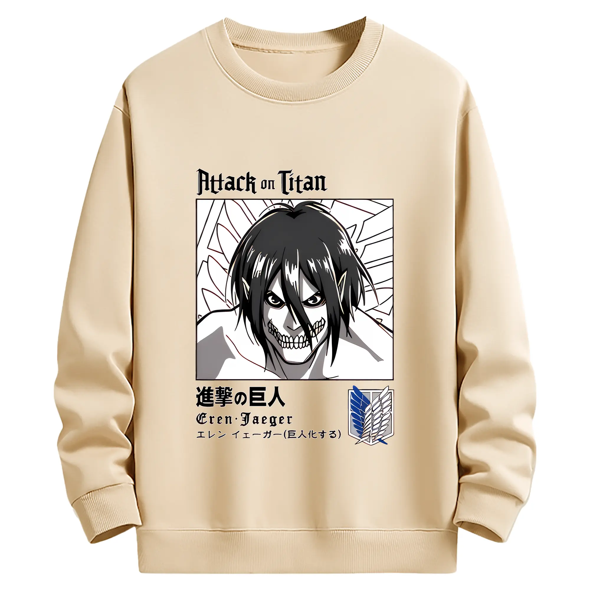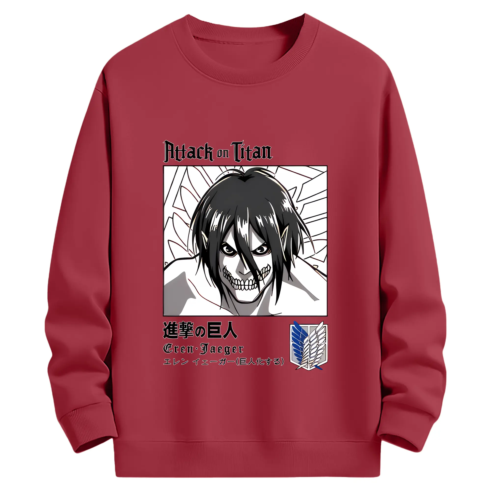 進撃の巨人 グッズ エレン・イェーガー - 薄手 クルーネック スウェット 裏毛260g · ポリエステル 春秋向け カジュアル 男女兼用 · トレーナー デイリー スポーツ 散歩に最適