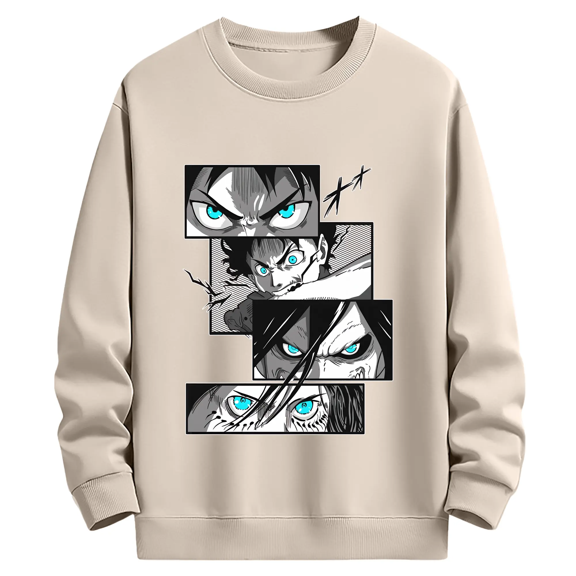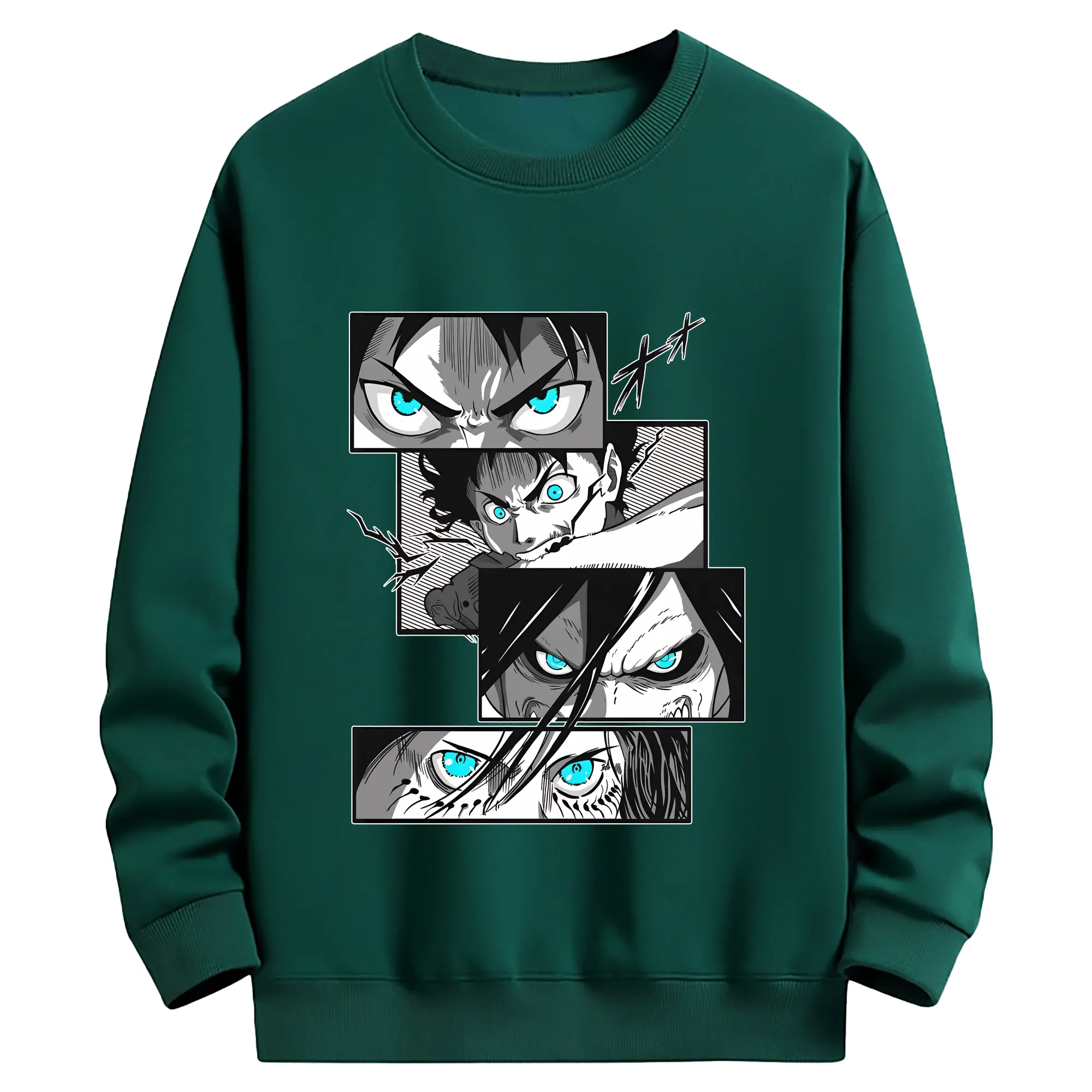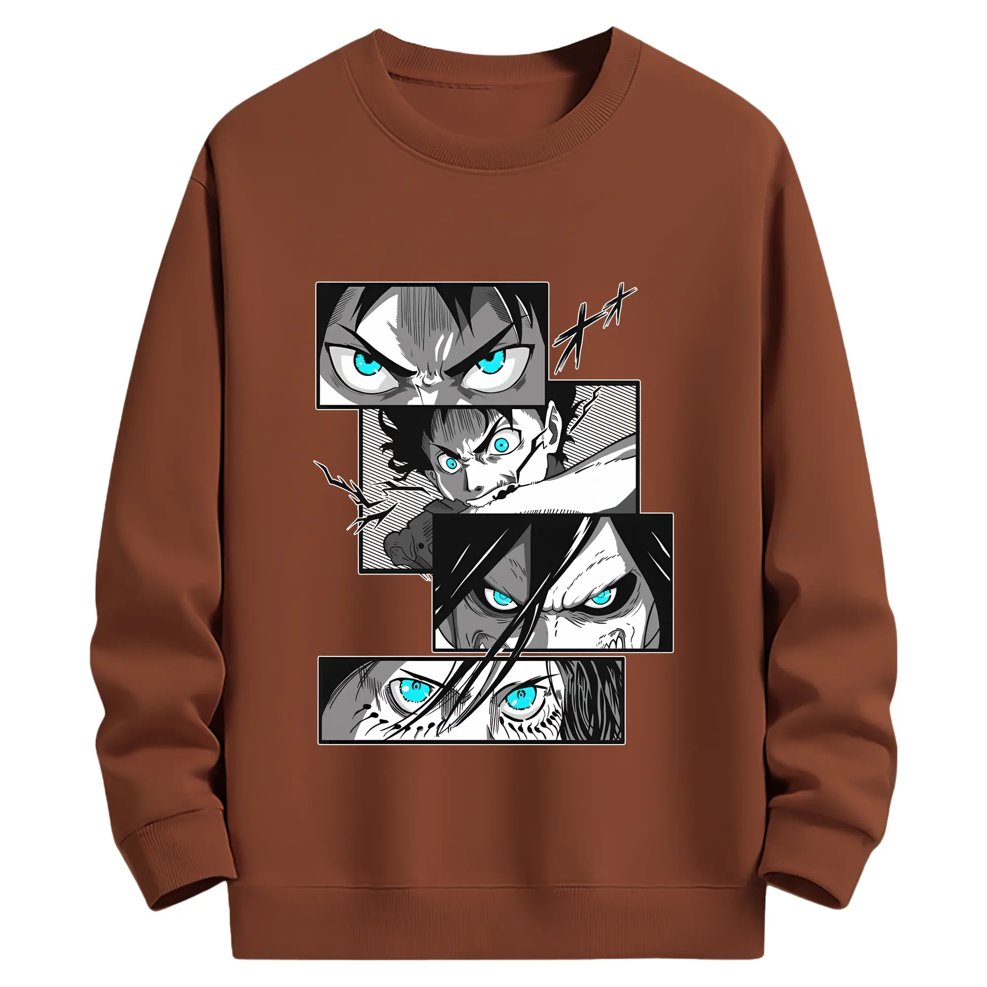 進撃の巨人 グッズ エレン・イェーガー - 薄手 クルーネック スウェット 裏毛260g · ポリエステル 春秋向け カジュアル 男女兼用 · トレーナー デイリー スポーツ 散歩に最適