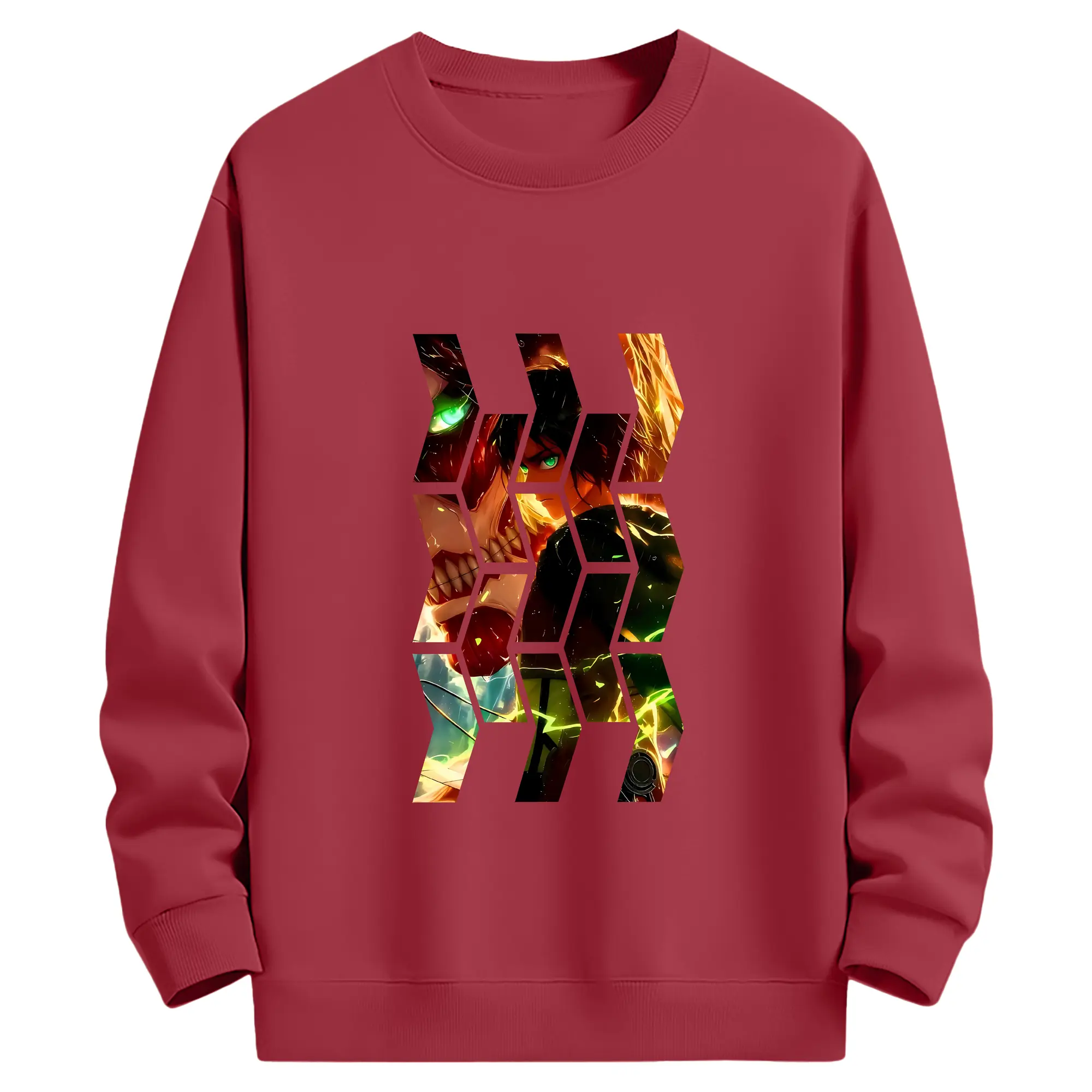 進撃の巨人 グッズ エレン・イェーガー - 薄手 クルーネック スウェット 裏毛260g · ポリエステル 春秋向け カジュアル 男女兼用 · トレーナー デイリー スポーツ 散歩に最適