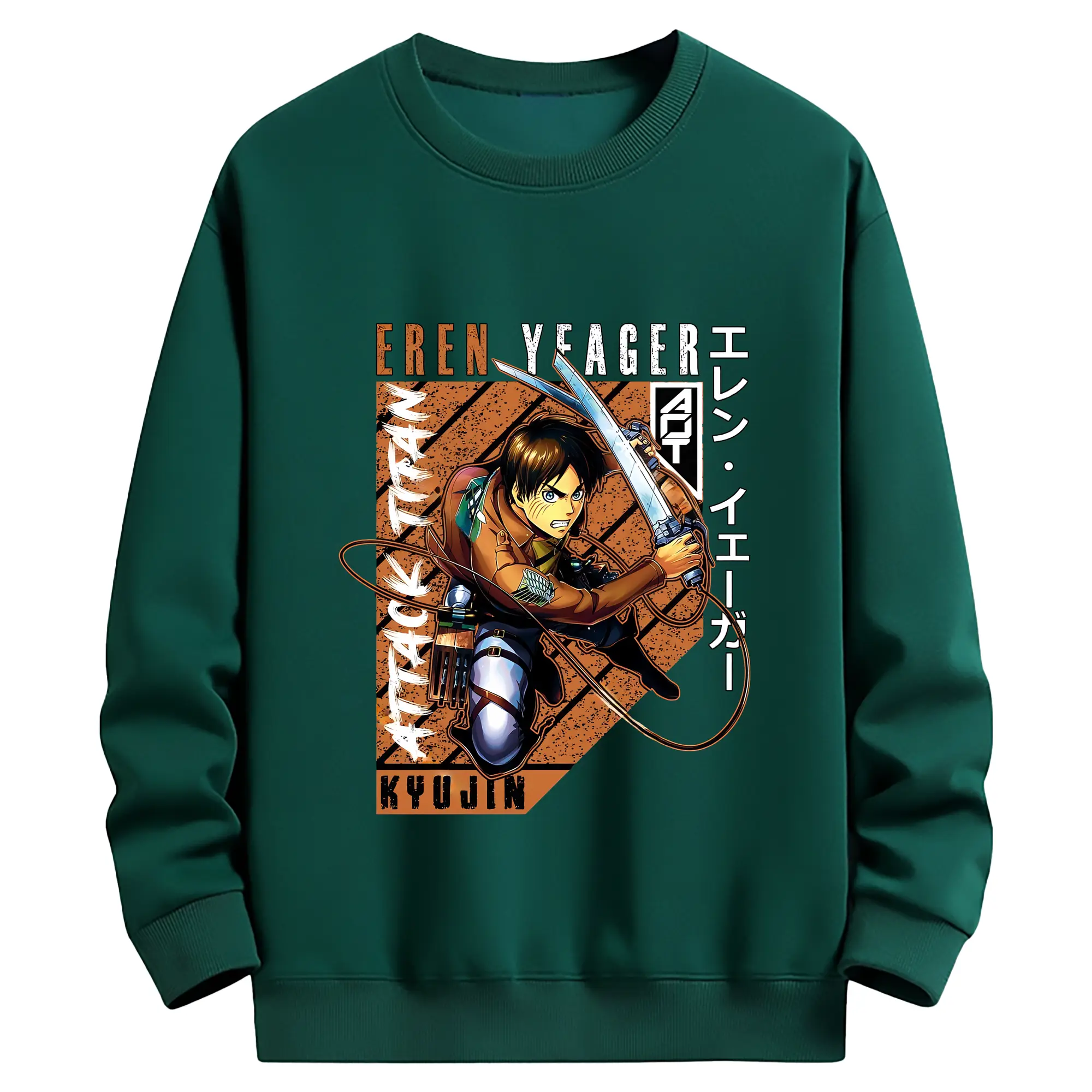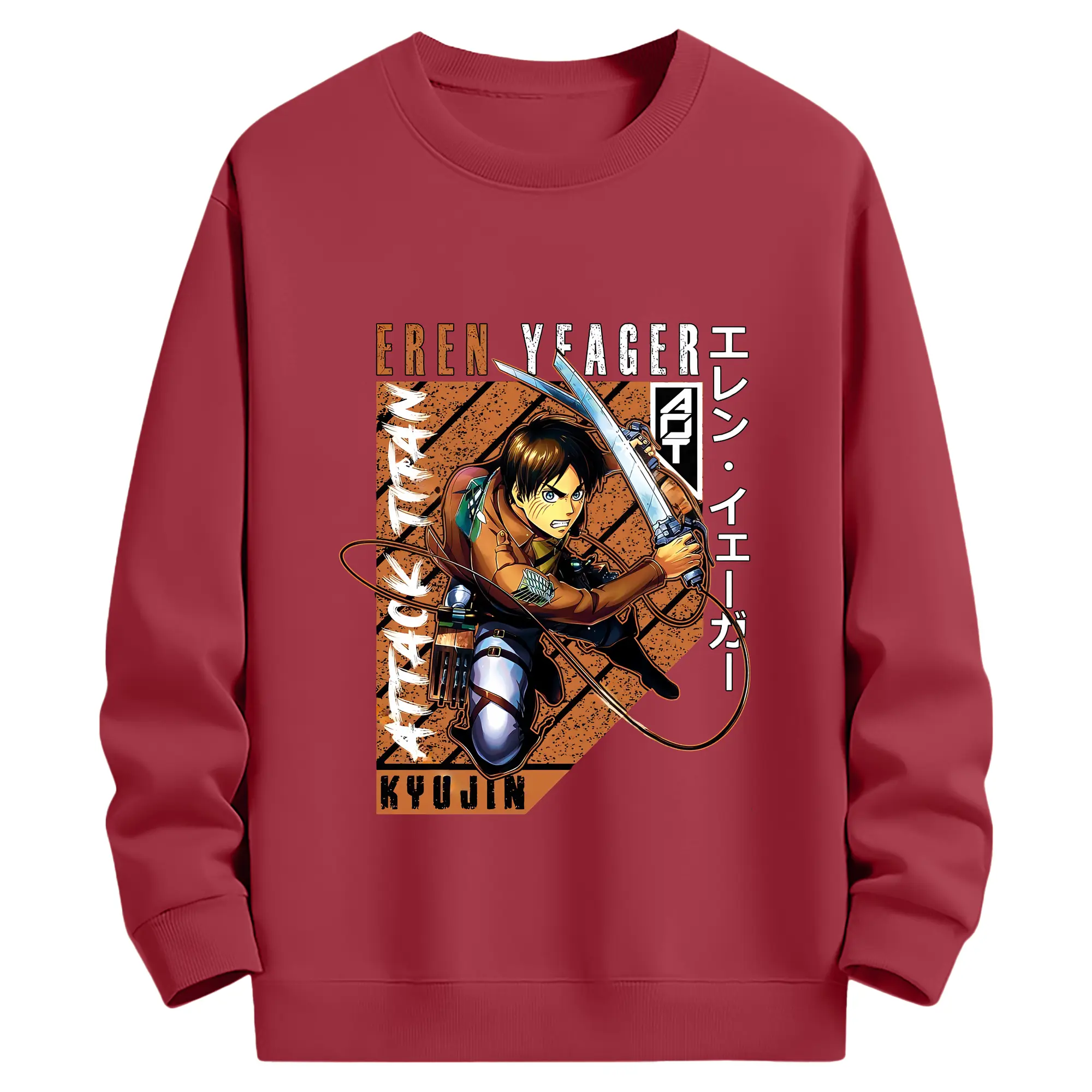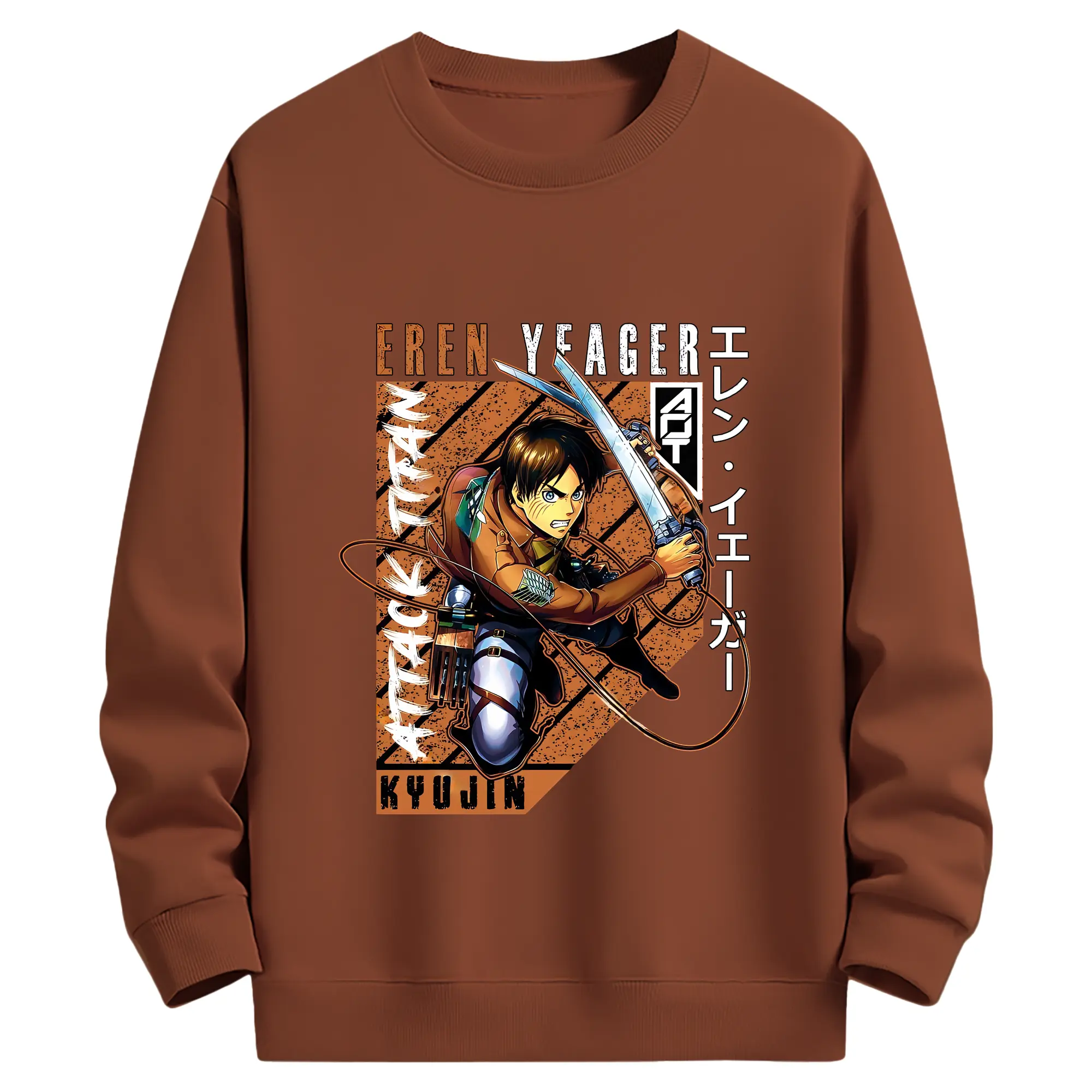 進撃の巨人 グッズ エレン・イェーガー - 薄手 クルーネック スウェット 裏毛260g · ポリエステル 春秋向け カジュアル 男女兼用 · トレーナー デイリー スポーツ 散歩に最適