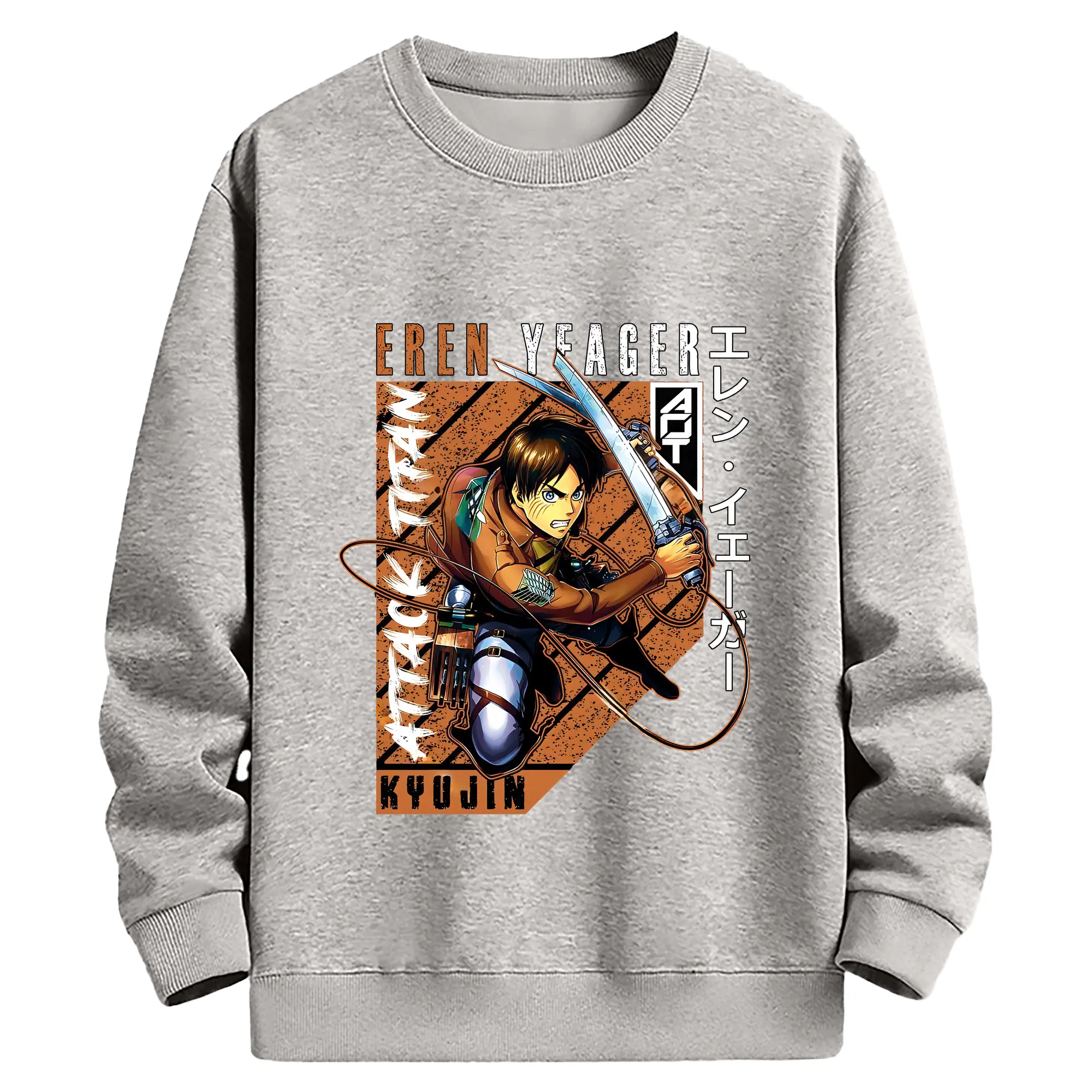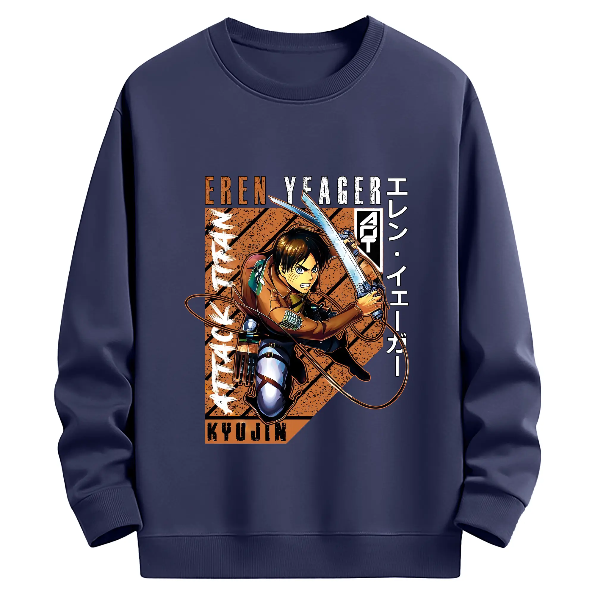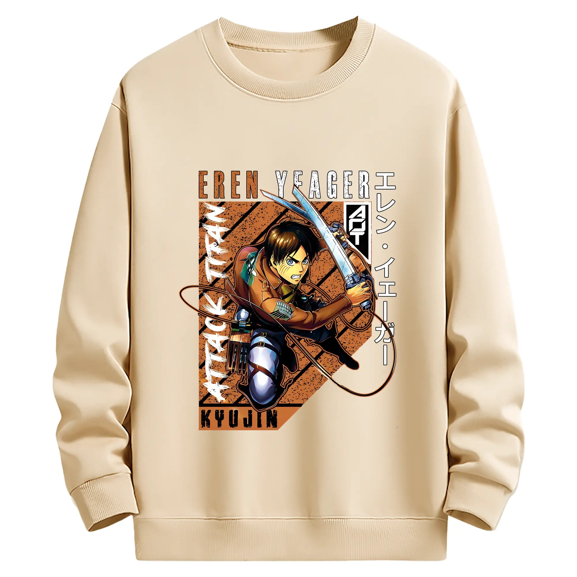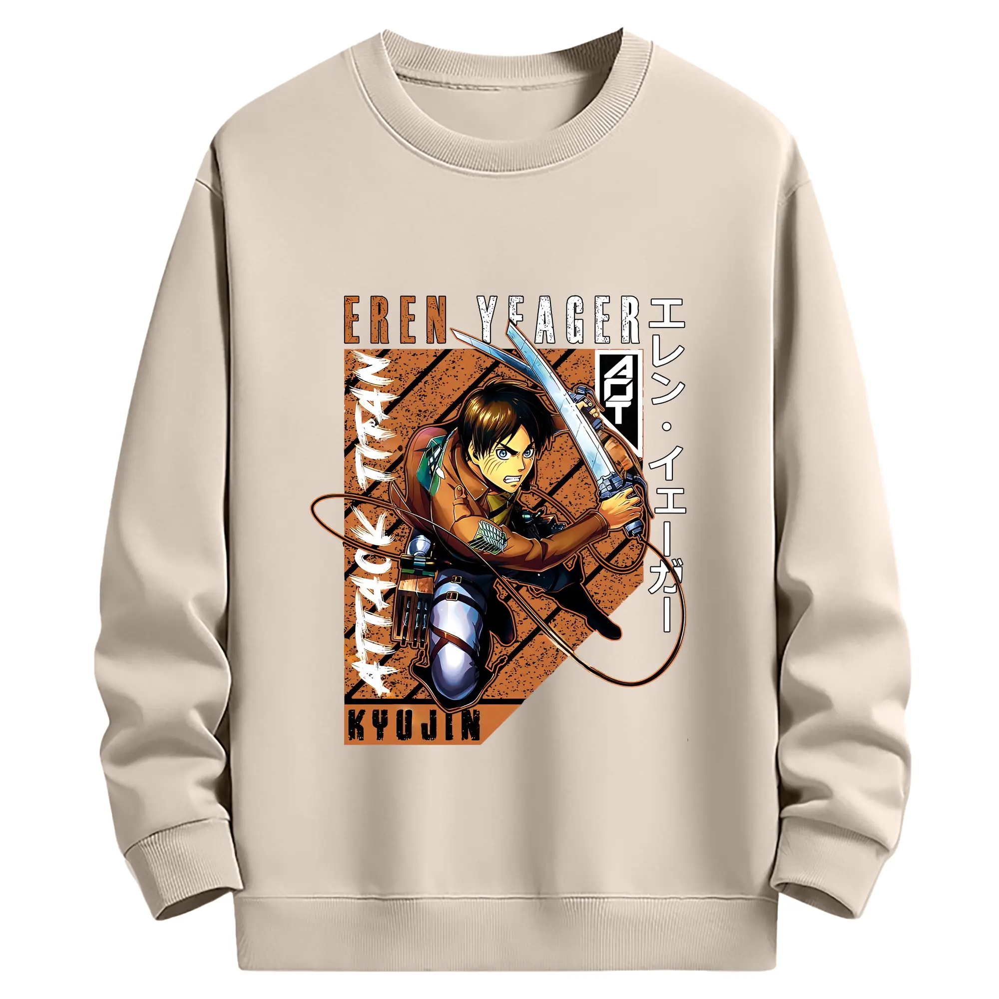 進撃の巨人 グッズ エレン・イェーガー - 薄手 クルーネック スウェット 裏毛260g · ポリエステル 春秋向け カジュアル 男女兼用 · トレーナー デイリー スポーツ 散歩に最適