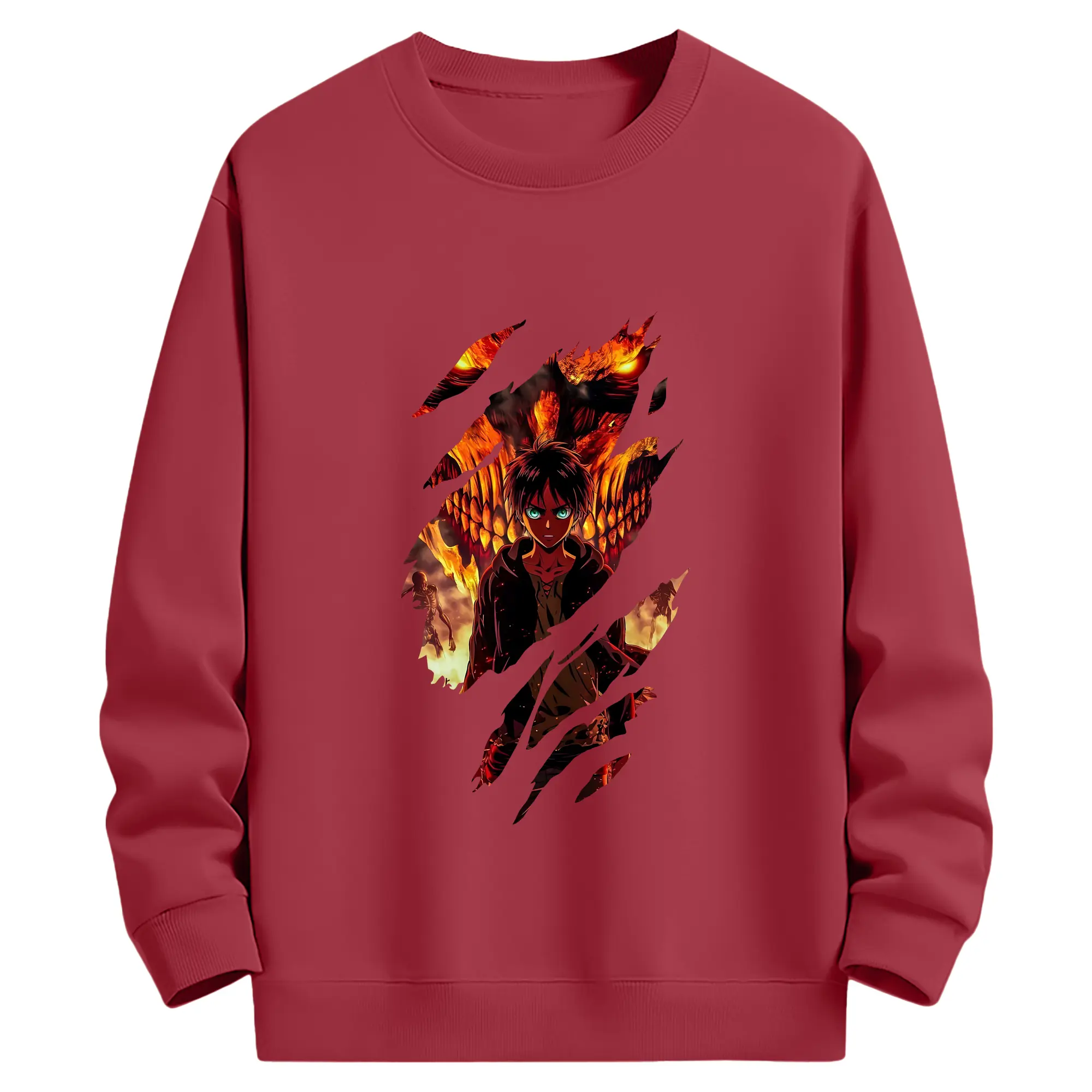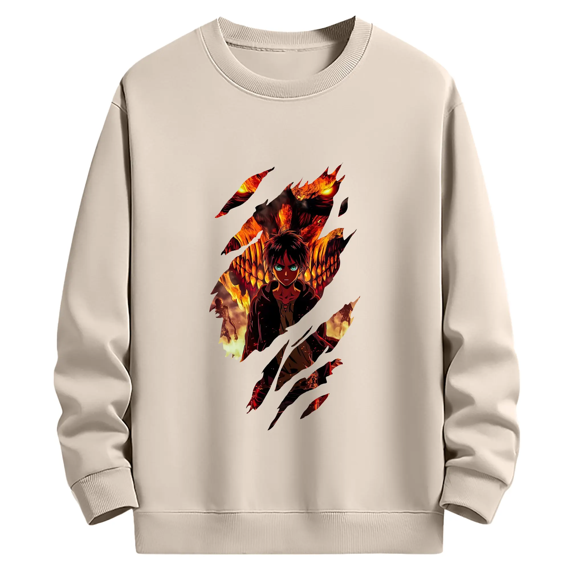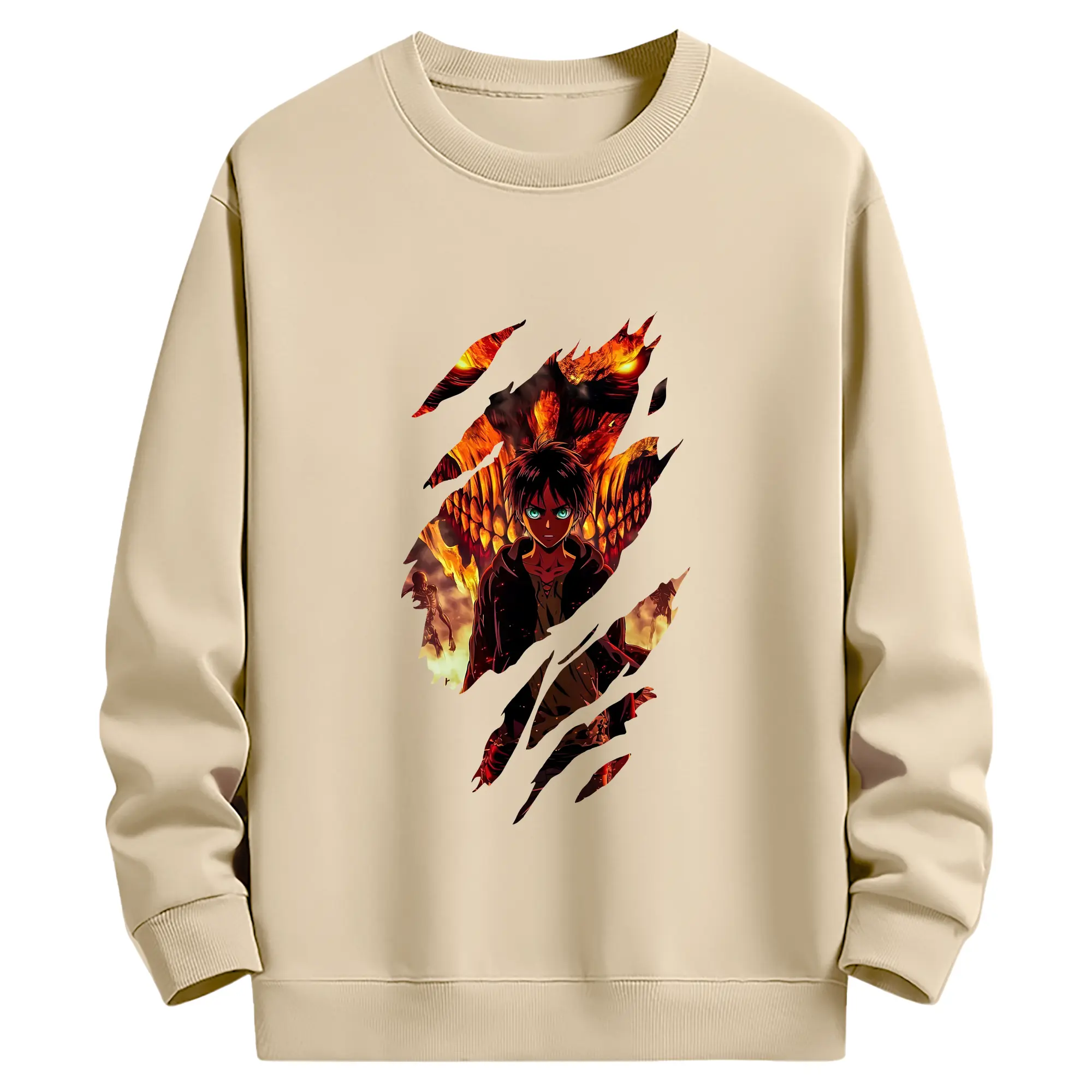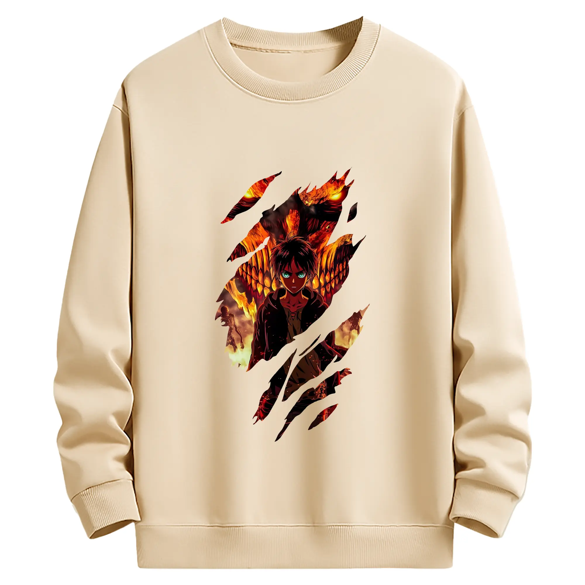進撃の巨人 グッズ エレン・イェーガー - 薄手 クルーネック スウェット 裏毛260g · ポリエステル 春秋向け カジュアル 男女兼用 · トレーナー デイリー スポーツ 散歩に最適