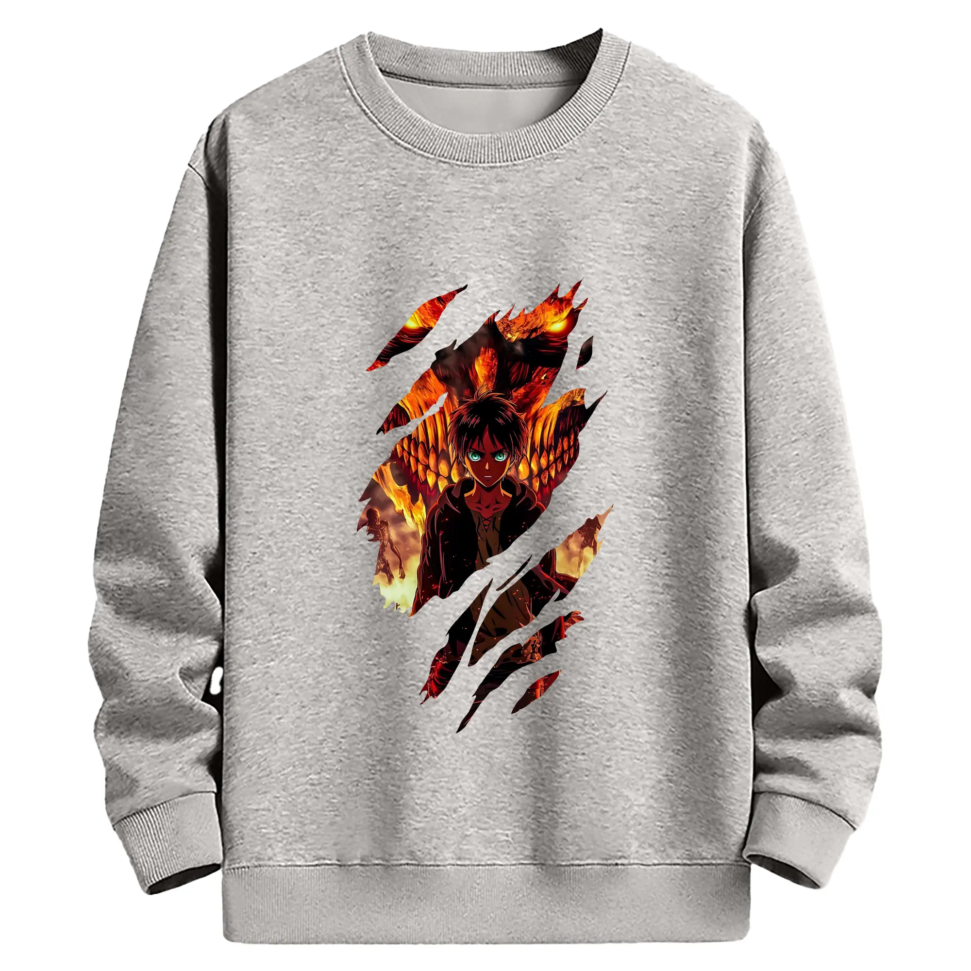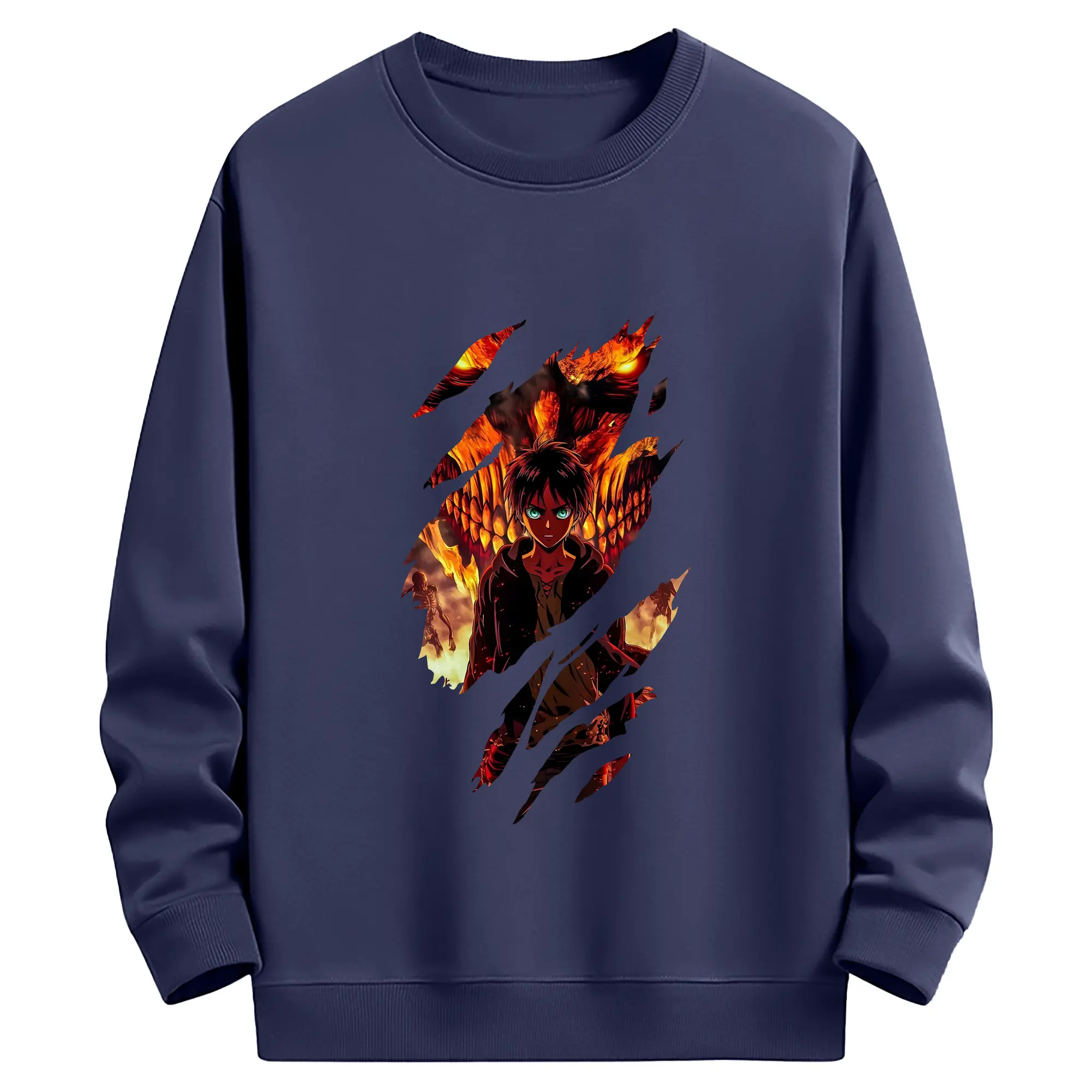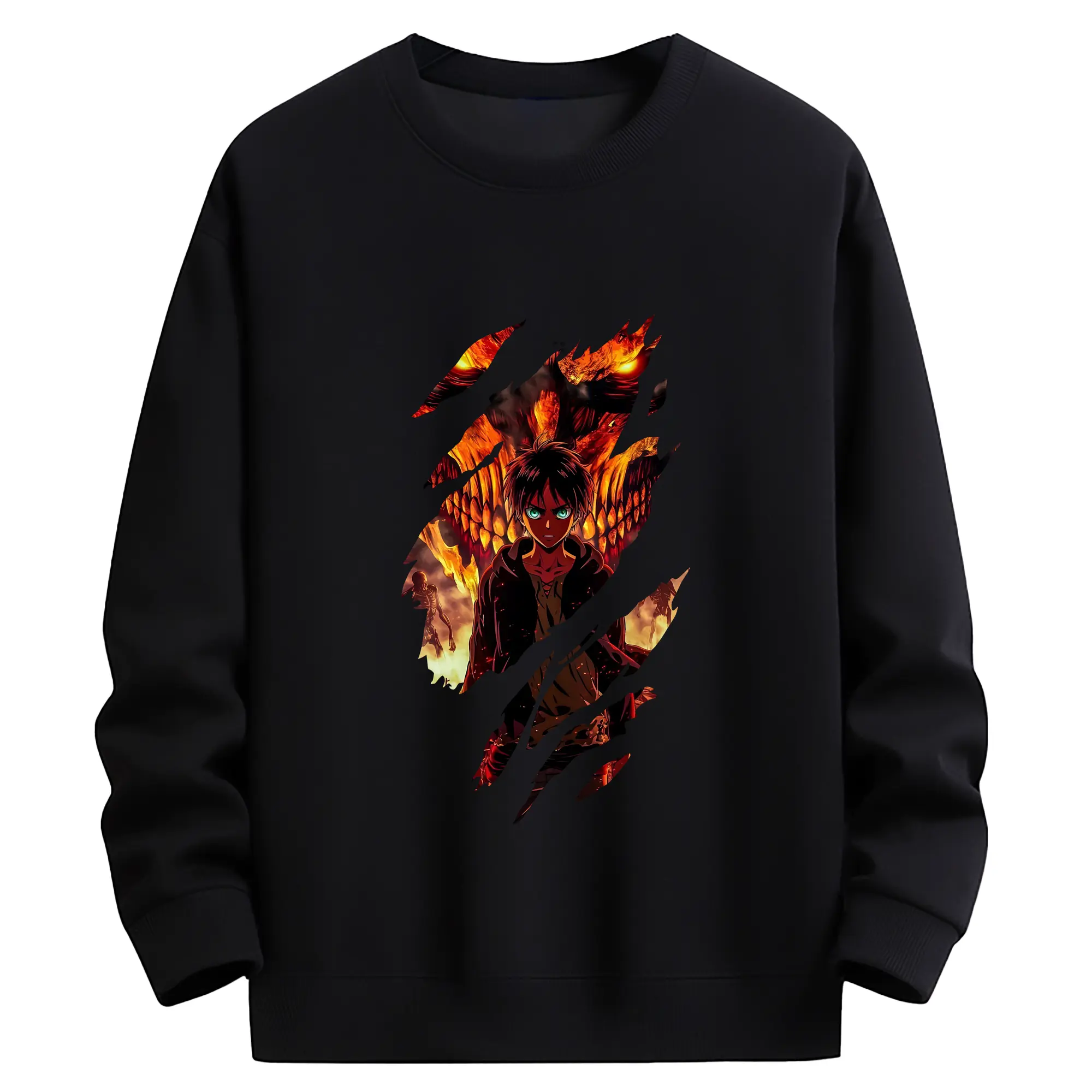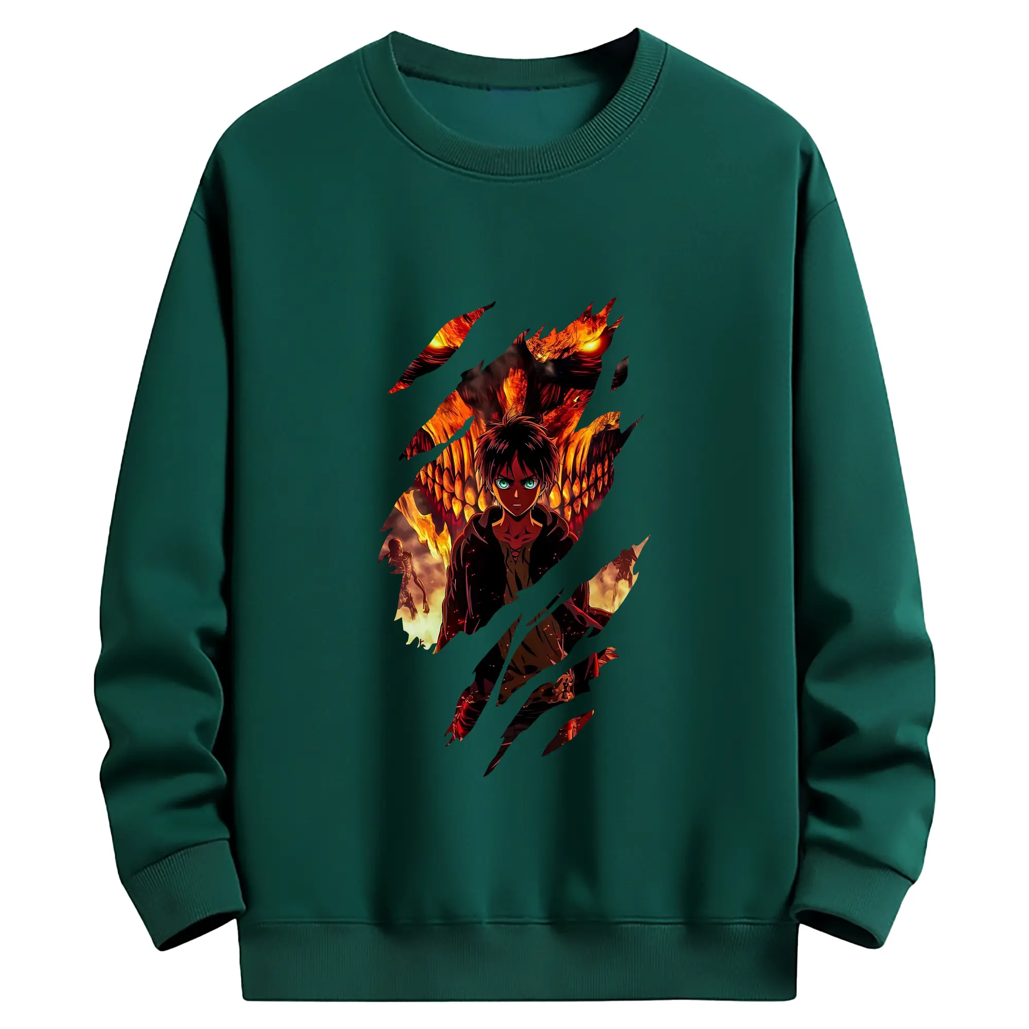 進撃の巨人 グッズ エレン・イェーガー - 薄手 クルーネック スウェット 裏毛260g · ポリエステル 春秋向け カジュアル 男女兼用 · トレーナー デイリー スポーツ 散歩に最適