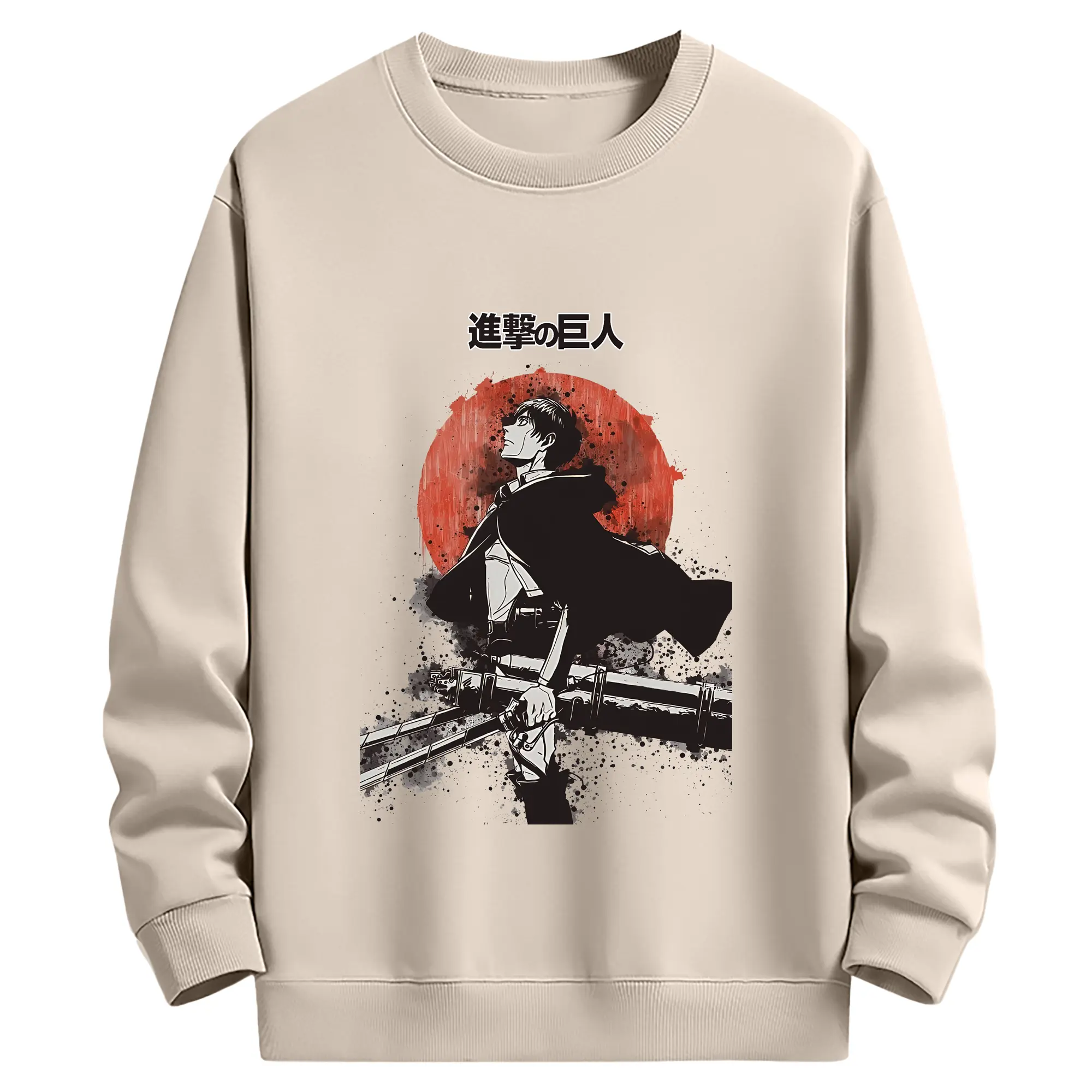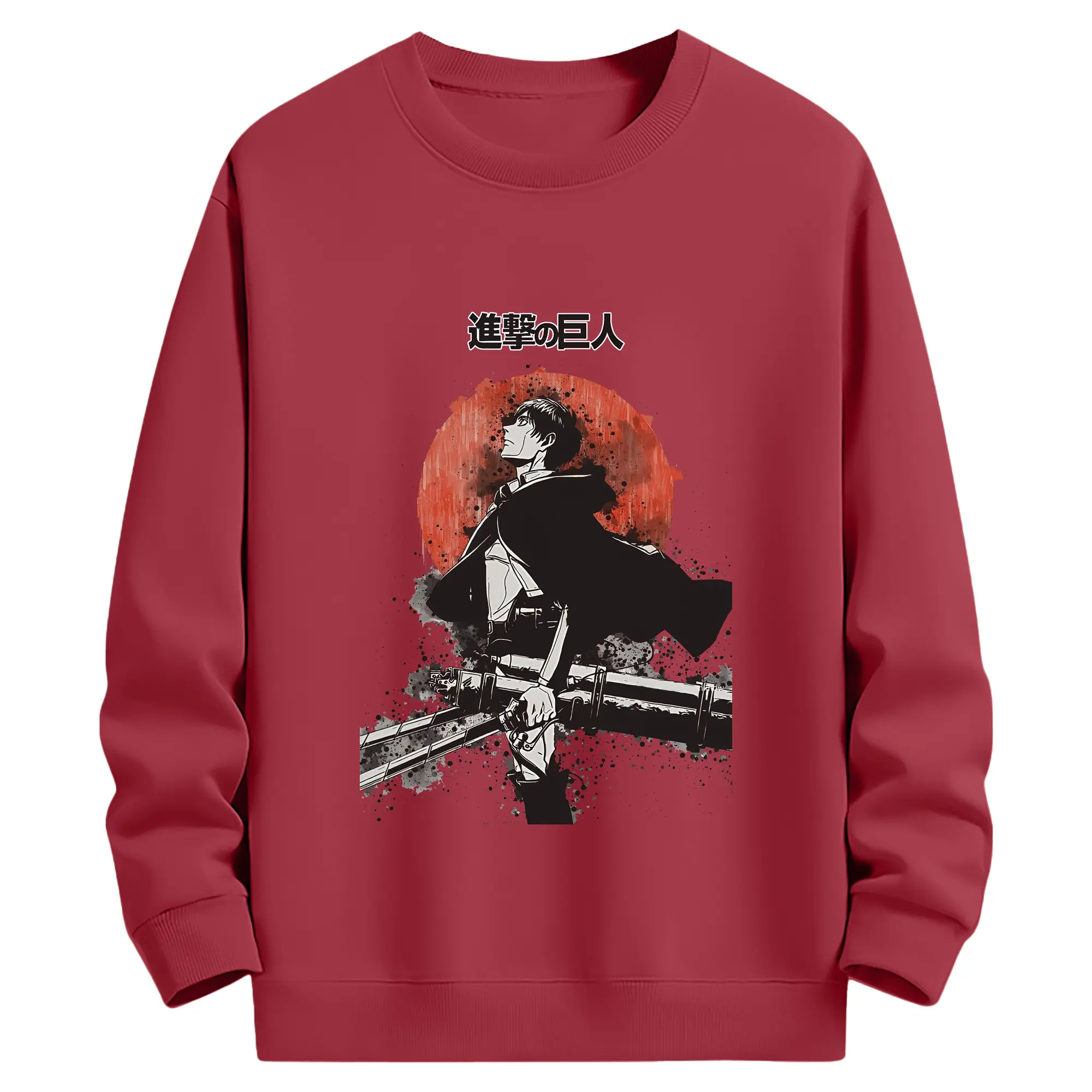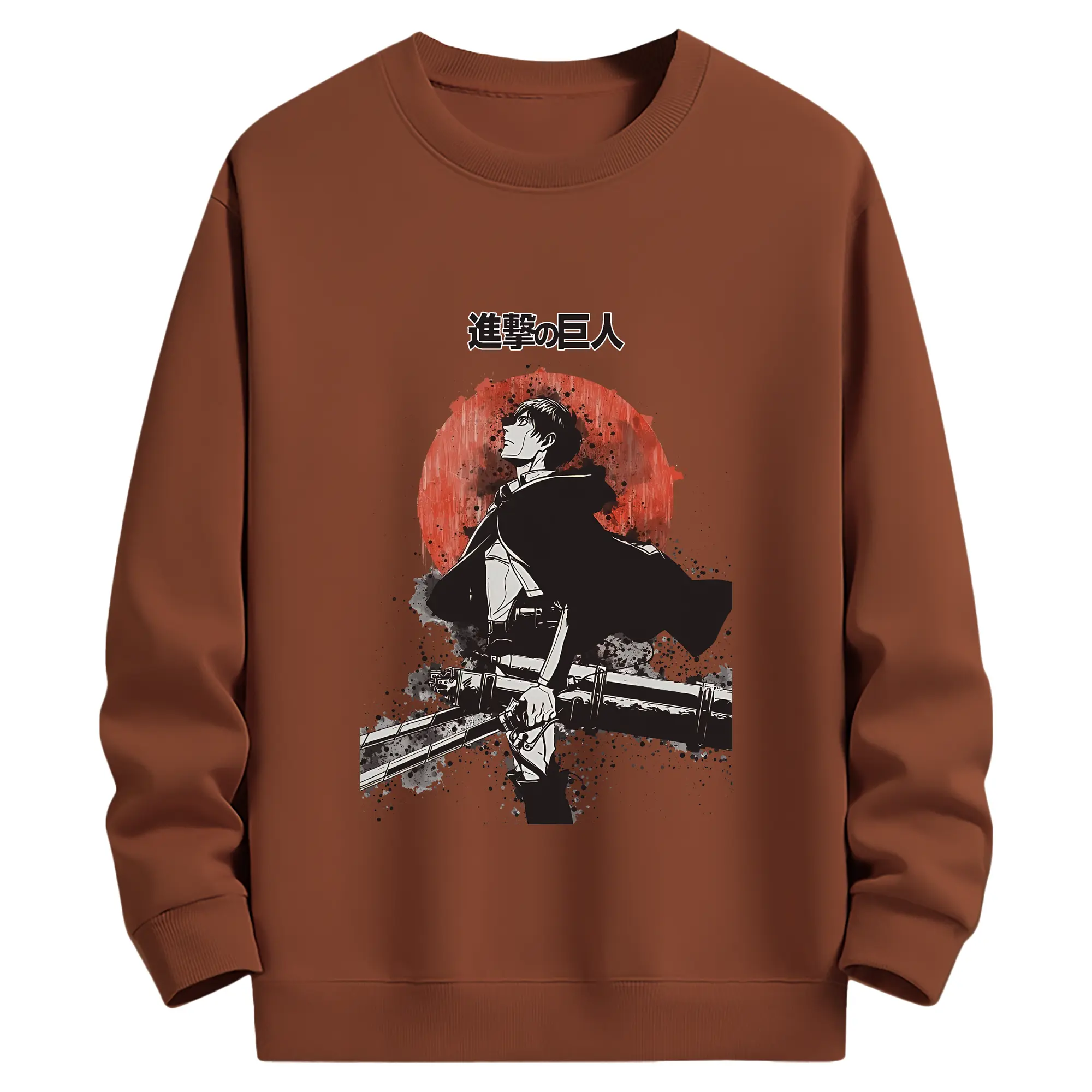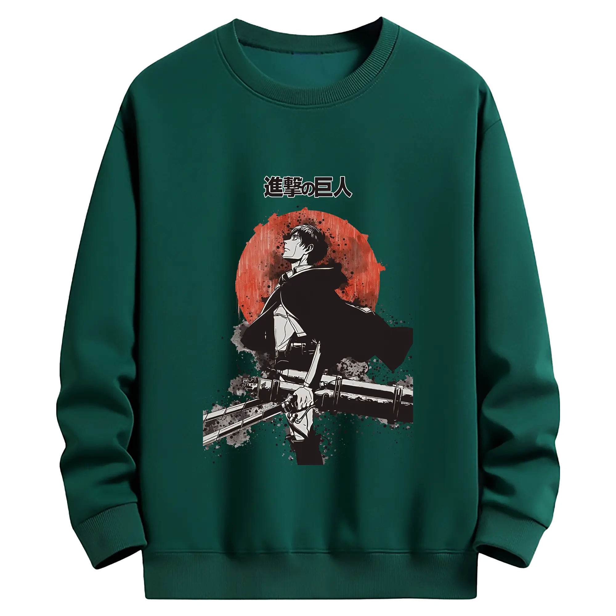 進撃の巨人 グッズ エレン・イェーガー - 薄手 クルーネック スウェット 裏毛260g · ポリエステル 春秋向け カジュアル 男女兼用 · トレーナー デイリー スポーツ 散歩に最適